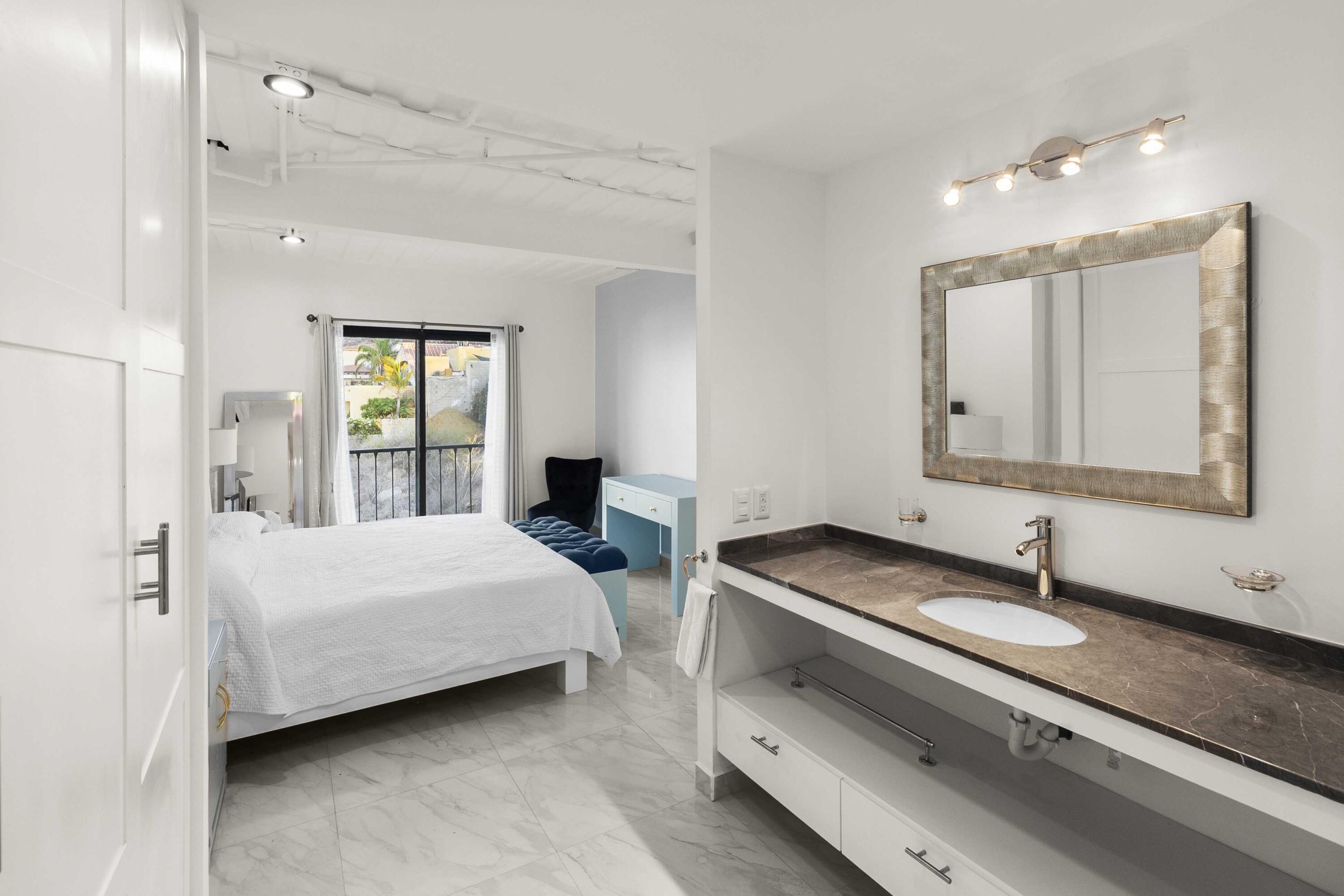Morgan Residences is the ultimate investment Condo Hotel in Cabo! Located just 1.6 km from the Marina and Medano beach…it’s all about location. Nightlife, restaurants and personal enjoyment just a short walk away. You will find All resort amenities, 2 pools, snack bar, luxurious restaurant, bar & lounge with amazing panoramic view, spa and gym. Front desk with concierge on site, makes this complex ideal for vacation rentals. We make your life easier by providing property managementand rental program. This particular unit is a lock-off, which allows to split it into a studio and one bedroom. Live in it or rent it!