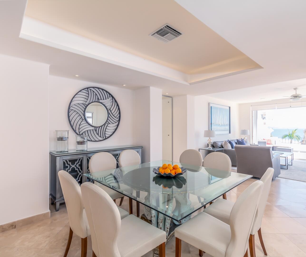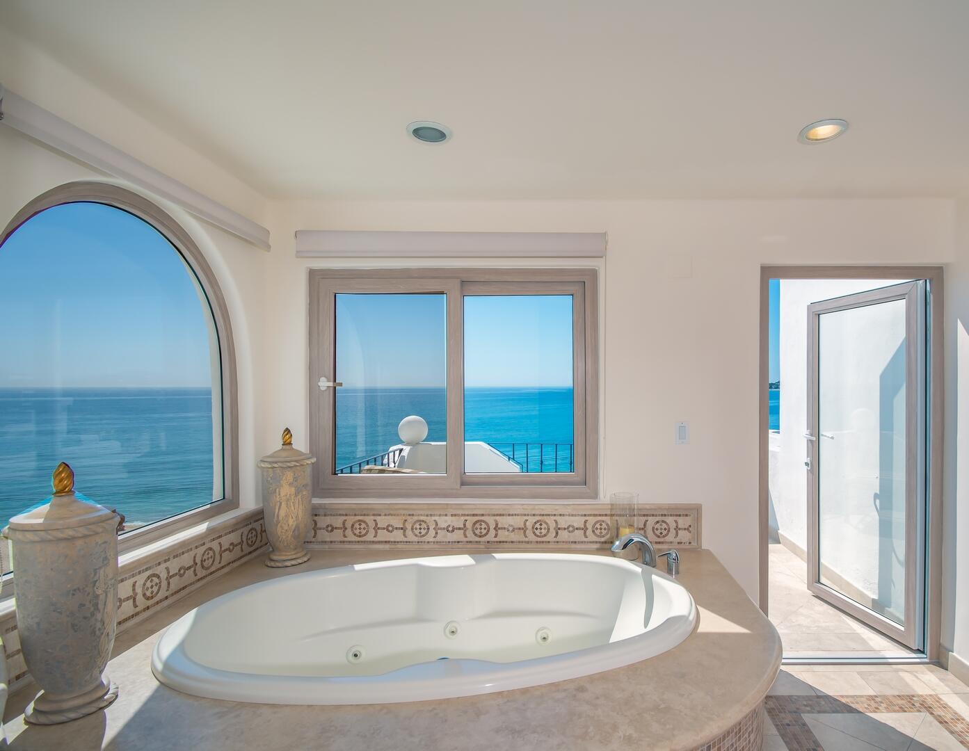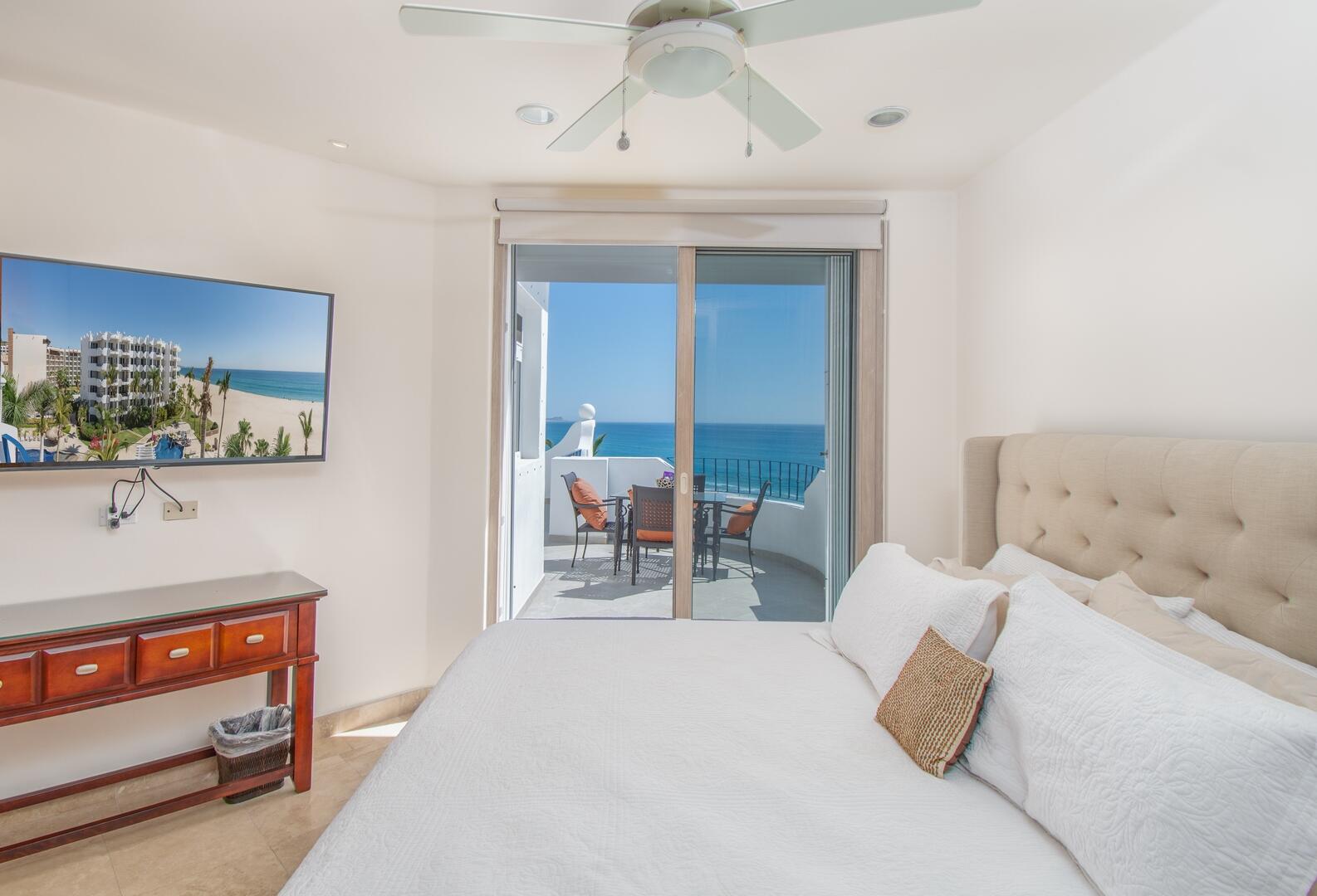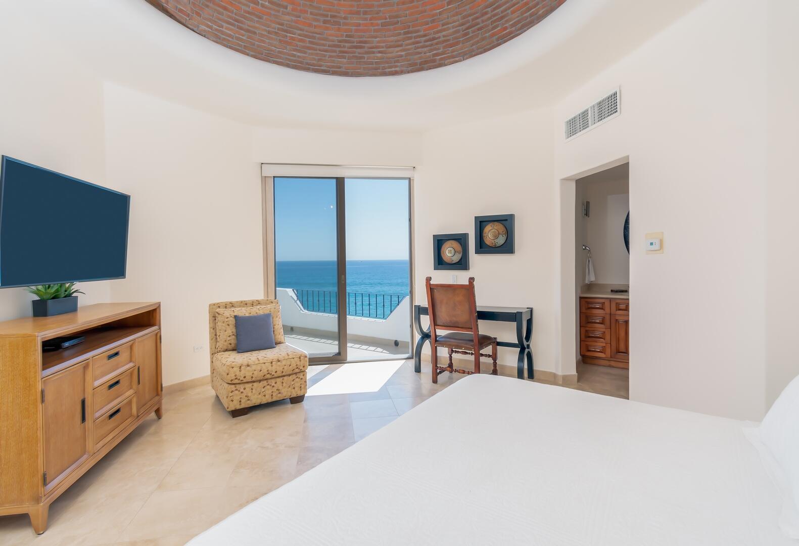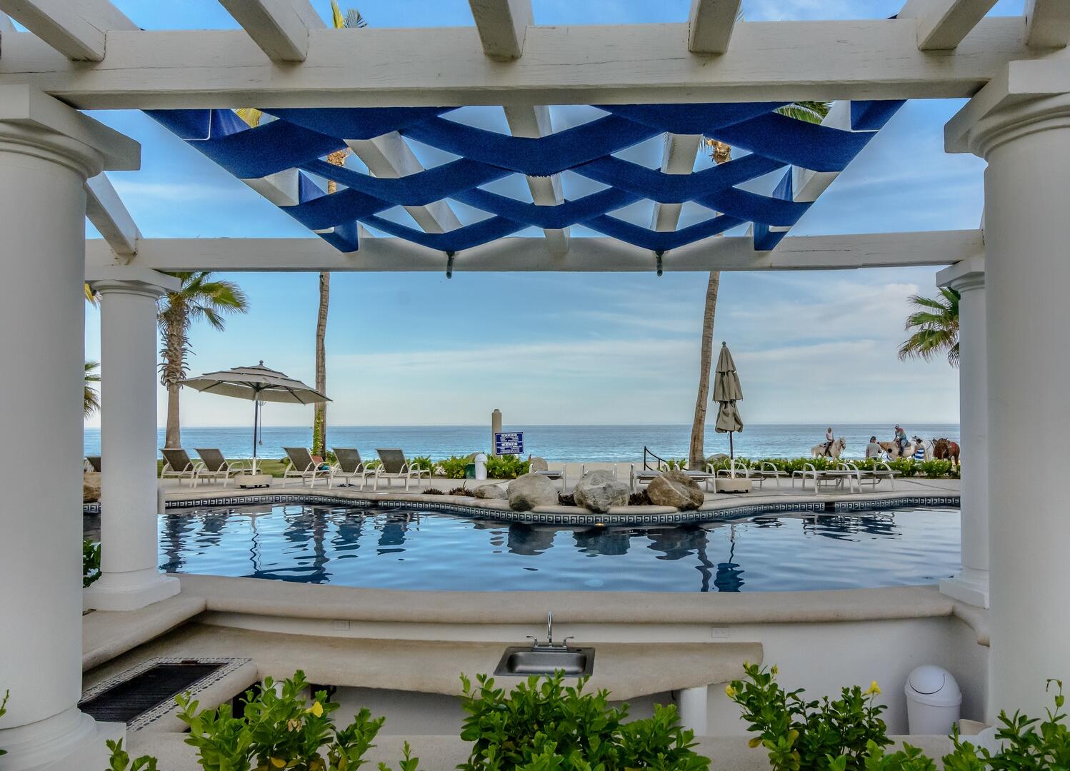 Enjoy unobstructed, 180 degree views from Punta Gorda to Punta Palmilla in this fabulous newly renovated two story 3 BR, 3 BA oceanfront penthouse at Mykonos Bay Resort. Spacious floor plan, sea and surf views from every room, boveda brick cupola domes in ceilings, four terraces including wrap around terrace at great room. Sliders and oversized windows fill the rooms with light and the sounds of the Sea of Cortez lapping the shores below. New high end appliances, furnishings, doors and windows throughout. Mykonos community amenities include 3 oceanfront pools, a well-equipped sea view fitness center and tennis / pickleball court. A hot tub, fire pit and lots of lounging areas, all with a great view and direct access to the beach are shared with only 72 units. Gated and secure grounds are