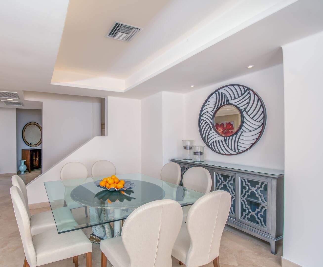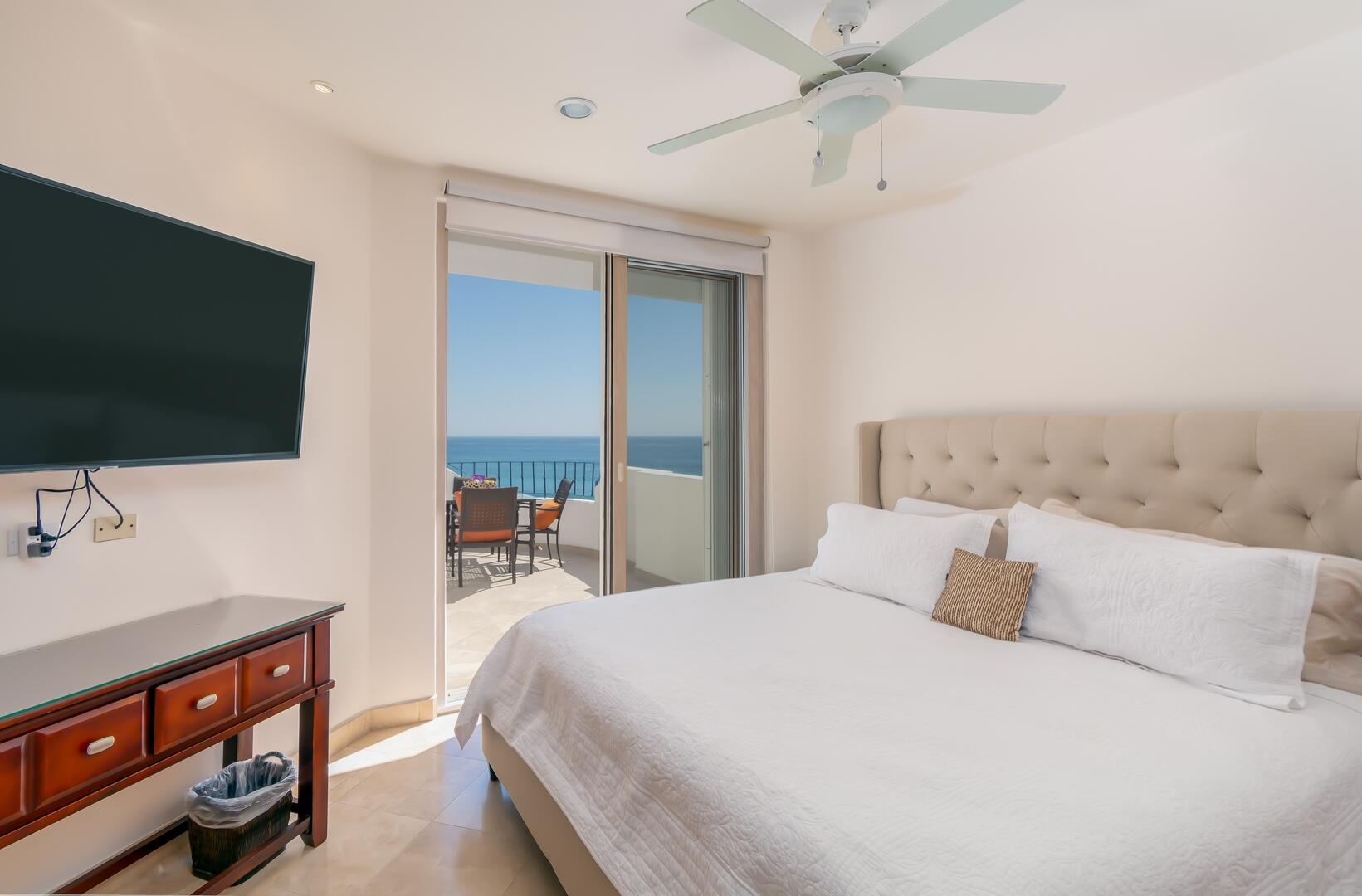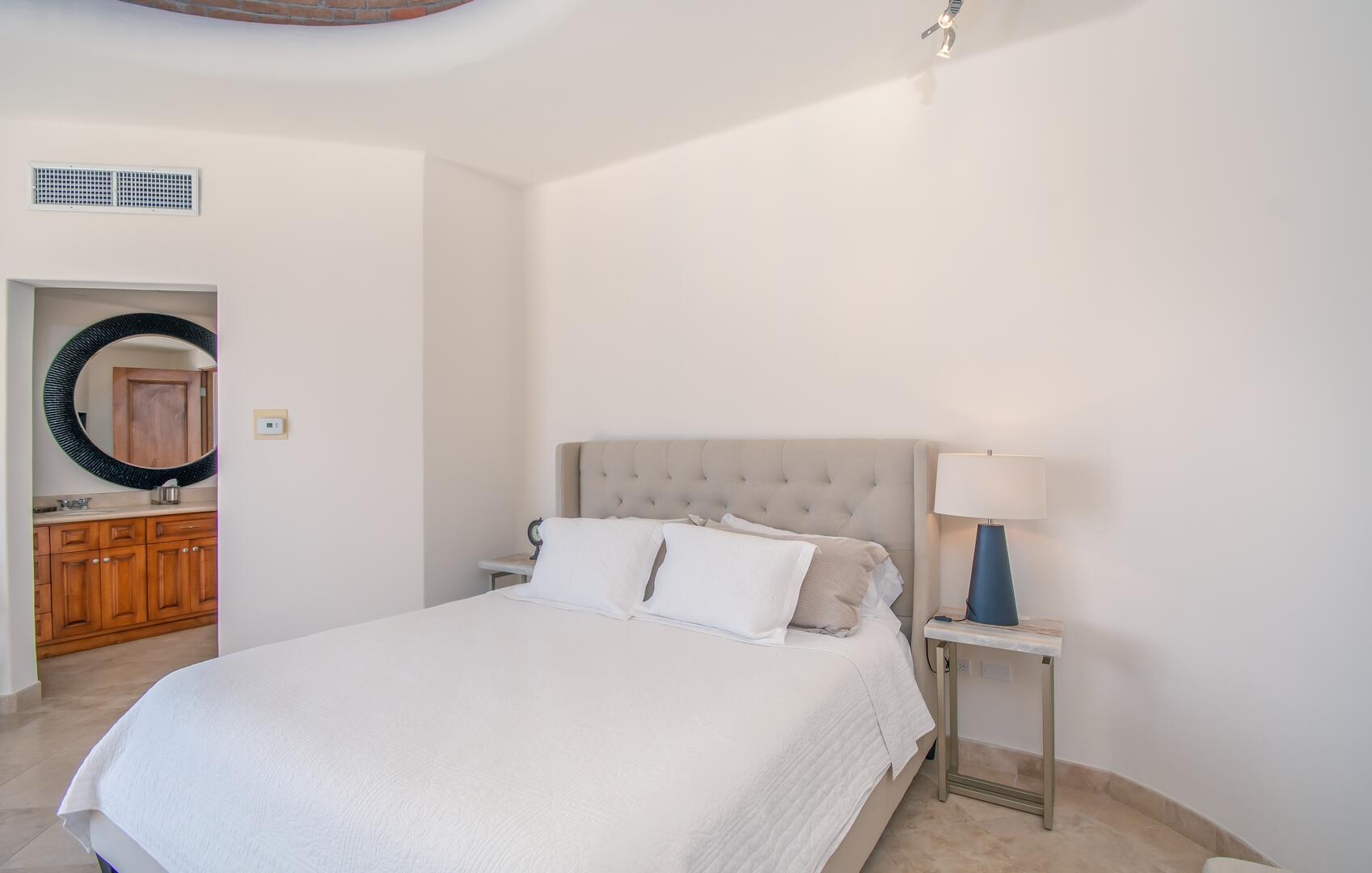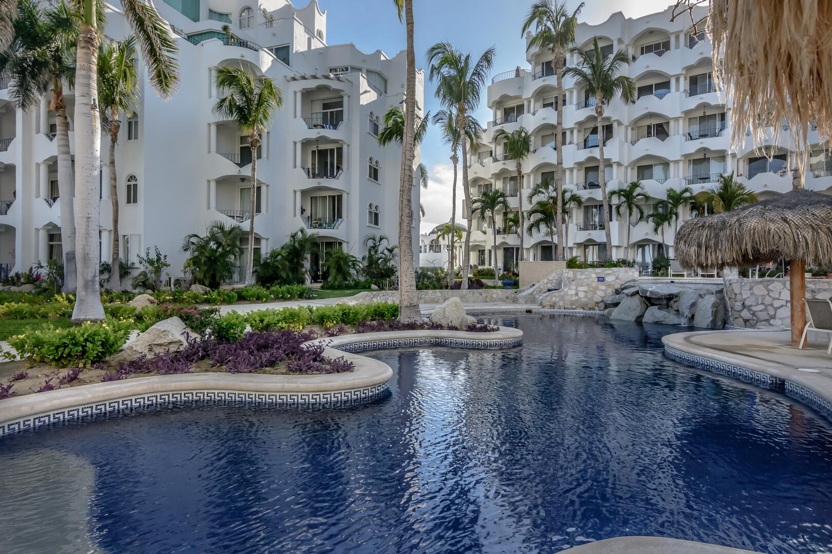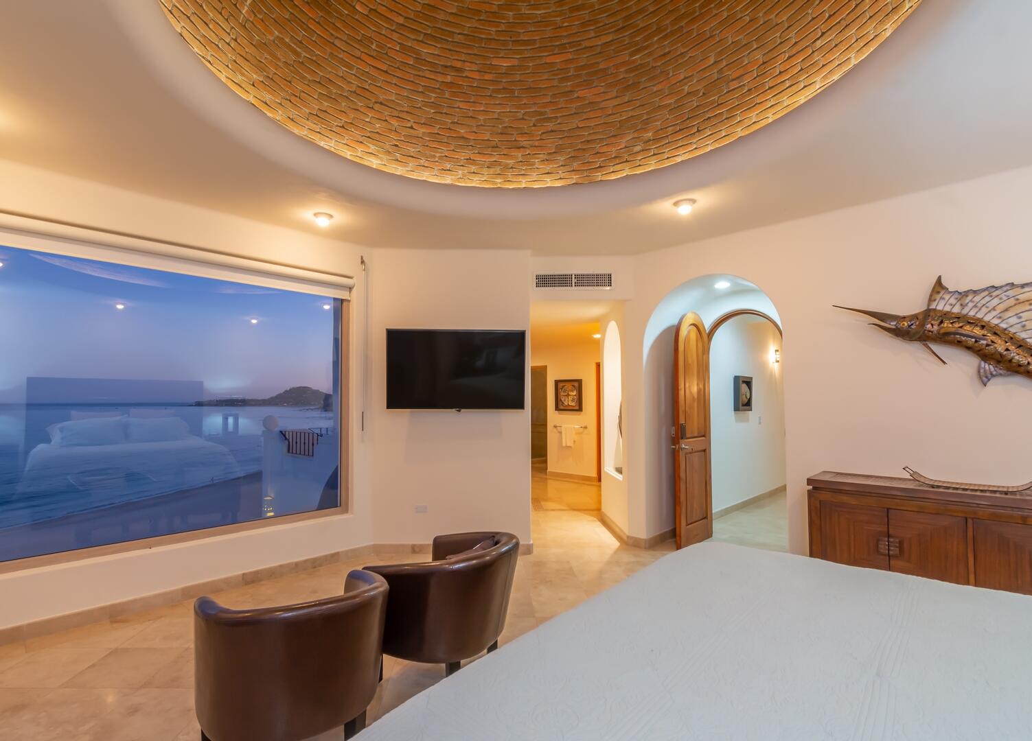 Enjoy unobstructed, 180 degree views from Punta Gorda to Punta Palmilla in this fabulous newly renovated two story 3 BR, 3 BA oceanfront penthouse at Mykonos Bay Resort. Spacious floor plan, sea and surf views from every room, boveda brick cupola domes in ceilings, four terraces including wrap around terrace at great room. Sliders and oversized windows fill the rooms with light and the sounds of the Sea of Cortez lapping the shores below. New high end appliances, furnishings, doors and windows throughout. Mykonos community amenities include 3 oceanfront pools, a well-equipped sea view fitness center and tennis / pickleball court. A hot tub, fire pit and lots of lounging areas, all with a great view and direct access to the beach are shared with only 72 units. Gated and secure grounds are