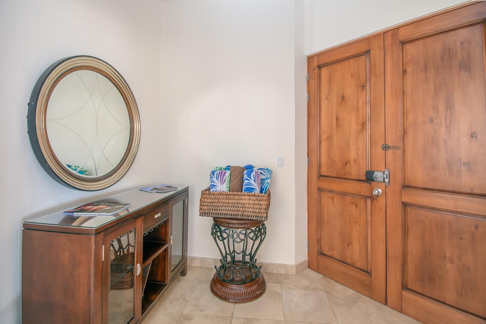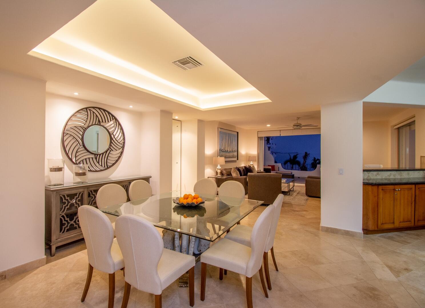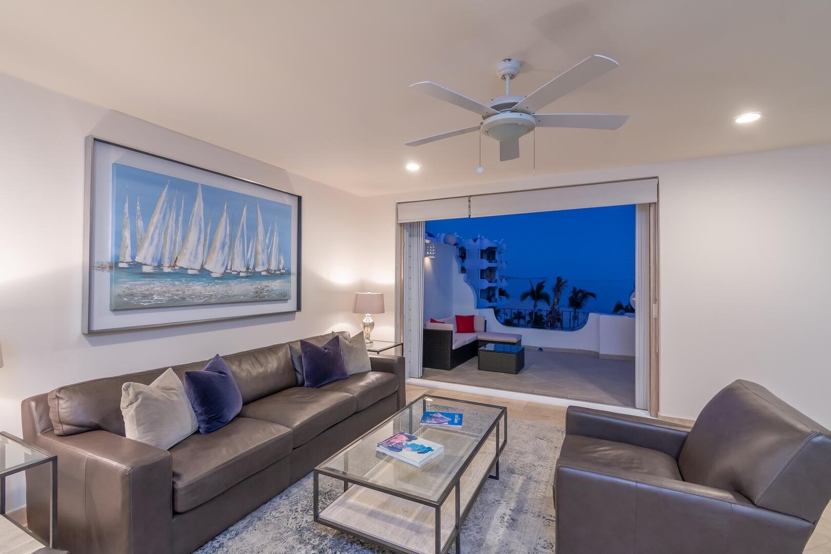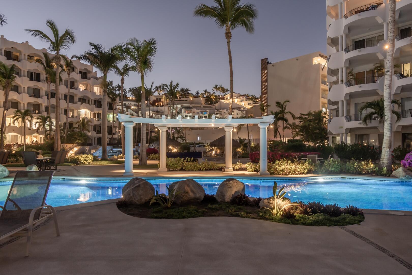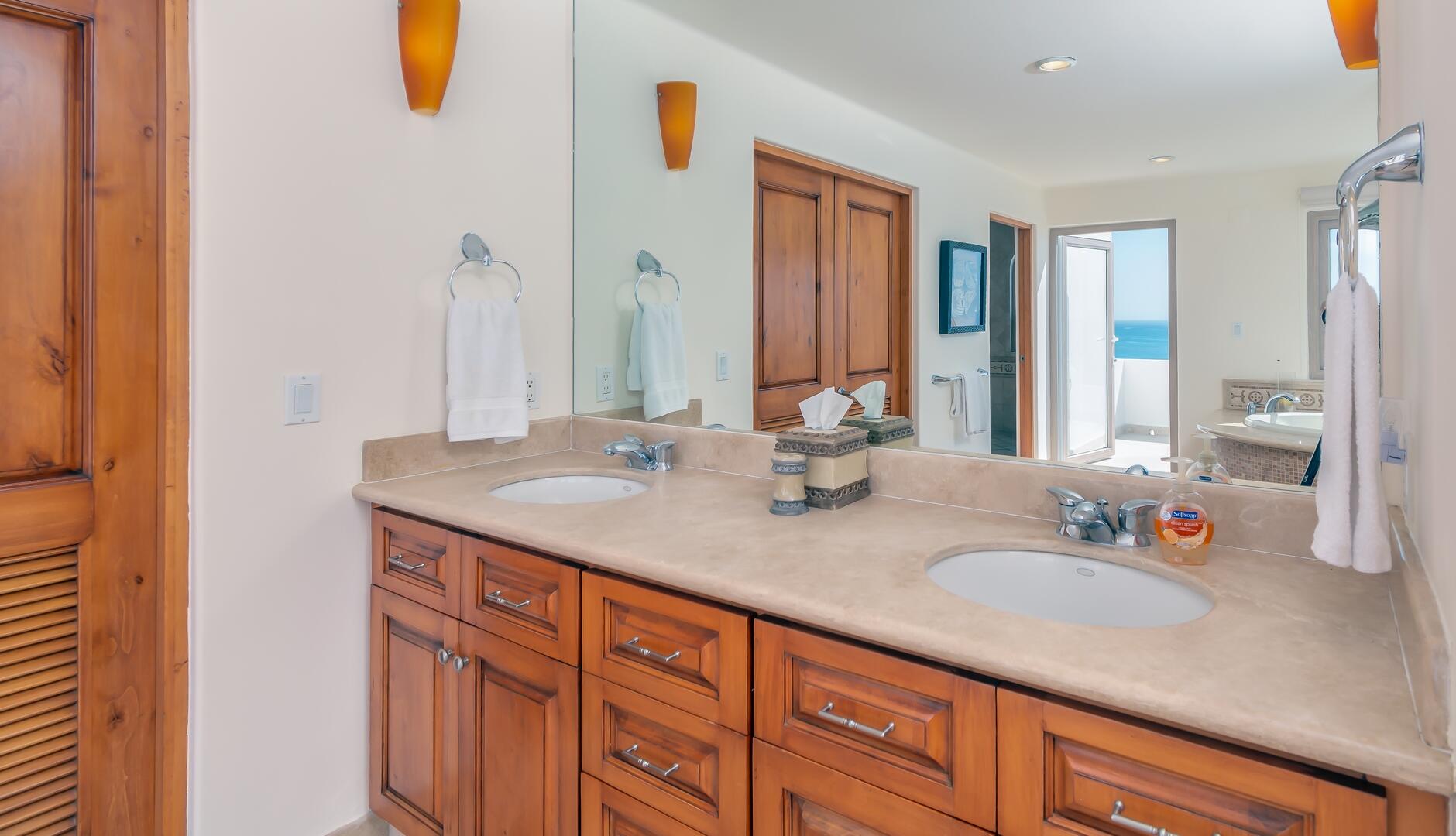Enjoy unobstructed, 180 degree views from Punta Gorda to Punta Palmilla in this fabulous newly renovated two story 3 BR, 3 BA oceanfront penthouse at Mykonos Bay Resort. Spacious floor plan, sea and surf views from every room, boveda brick cupola domes in ceilings, four terraces including wrap around terrace at great room. Sliders and oversized windows fill the rooms with light and the sounds of the Sea of Cortez lapping the shores below. New high end appliances, furnishings, doors and windows throughout. Mykonos community amenities include 3 oceanfront pools, a well-equipped sea view fitness center and tennis / pickleball court. A hot tub, fire pit and lots of lounging areas, all with a great view and direct access to the beach are shared with only 72 units. Gated and secure grounds are
