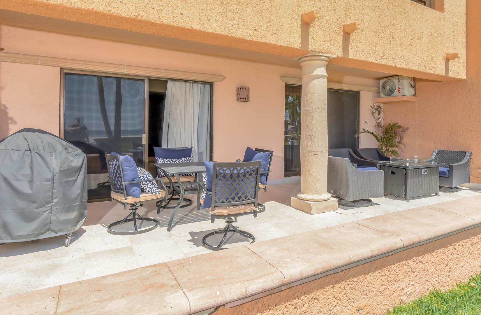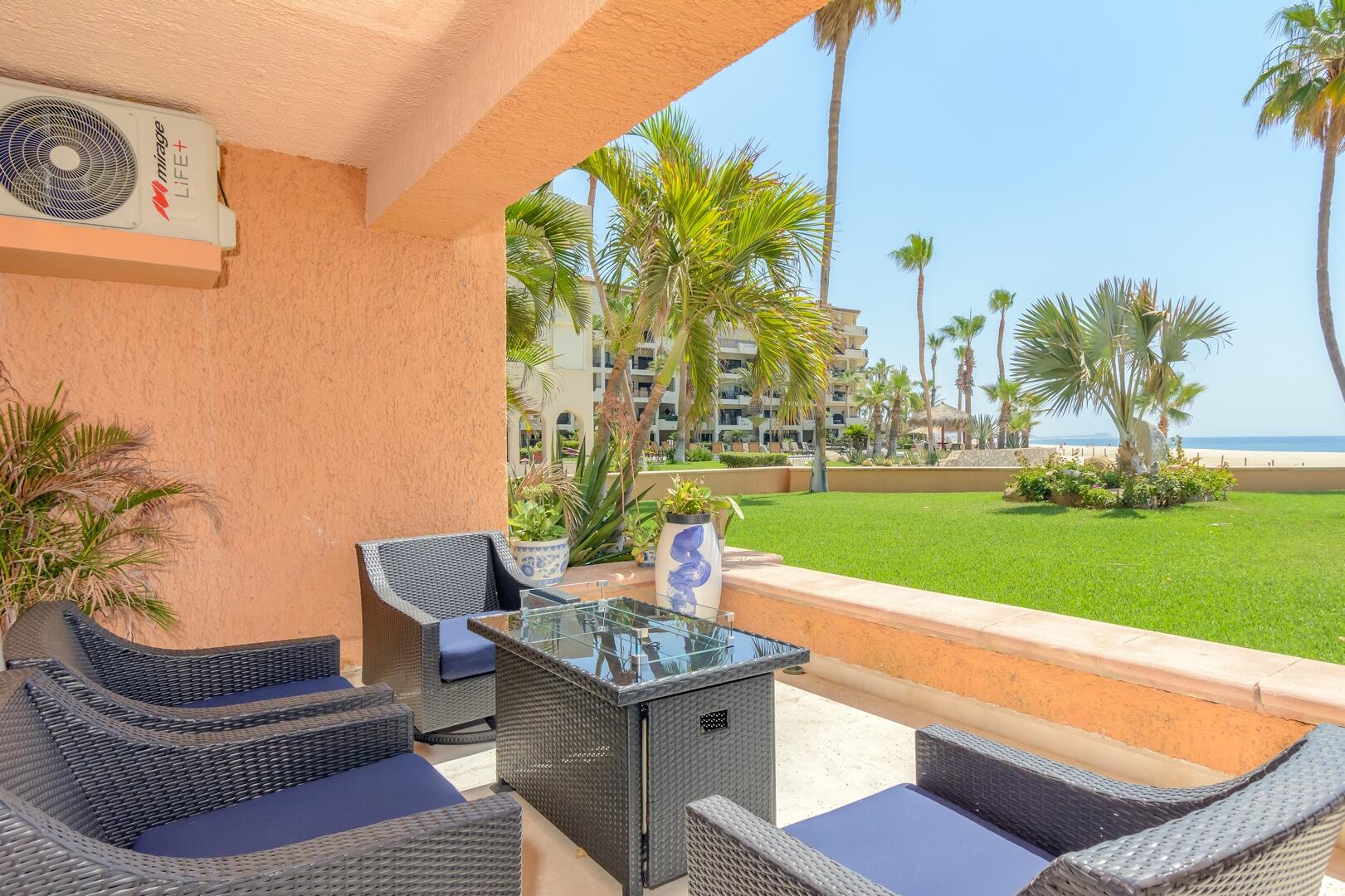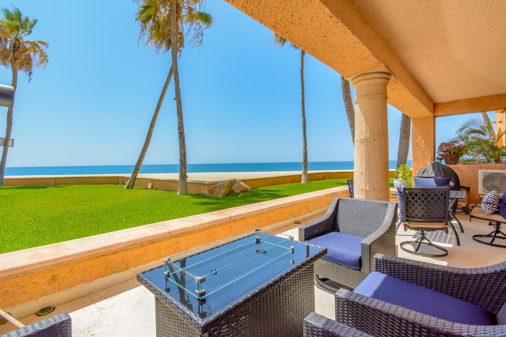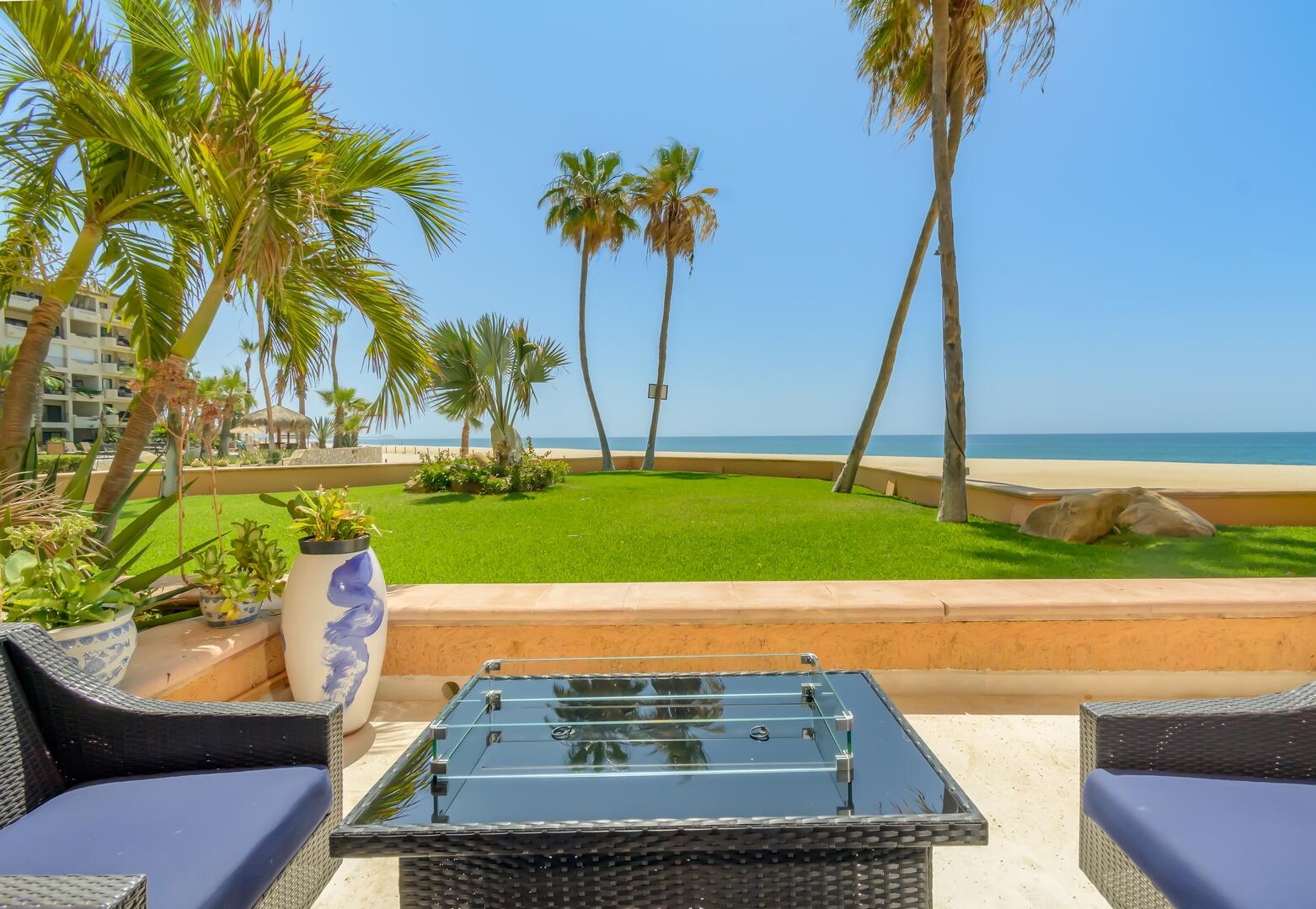 Rare Find. Oceanfront ground floor condo overlooking the white sand beach of Costa Azul with views to Punta Gorda, Palmilla and the blue waters of the Sea of Cortez. This complely remodeled ground level residence has two bedrooms and two bathrooms. The only sound you will hear is the sound of the ocean waves. Enjoy over 1200 square feet of living space with kitchen, dining and living area. La Jolla is a low-density condominium resort close to San Jose del Cabo. La Jolla features two swimming pools and tropical lush gardens. Walk to shopping, surf and restaurants. Beachfront living at its finest. Come see and listen to the waves as the hit the beach.