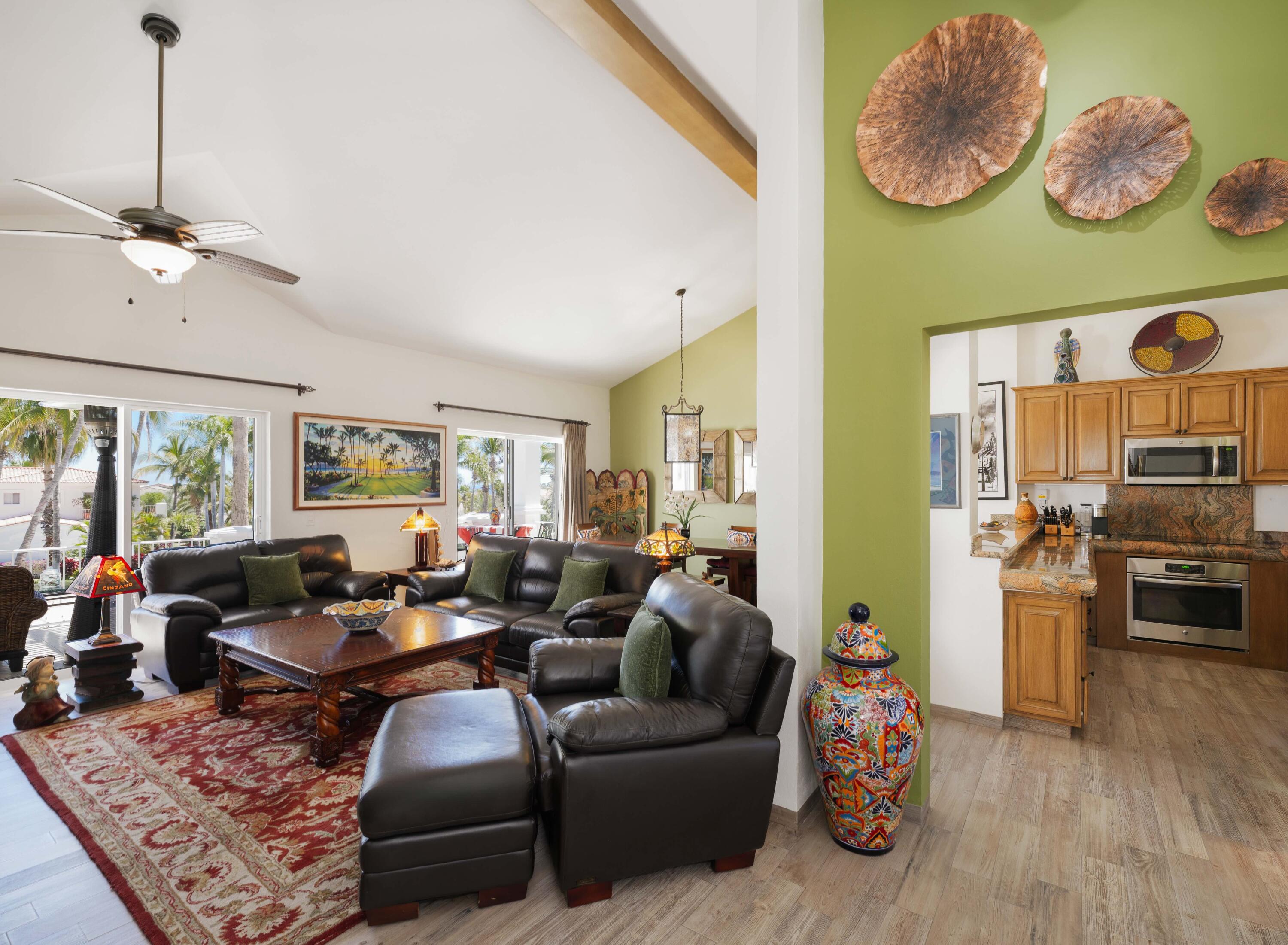 Onix 502 is a 3 bedroom, 3.5 bath spacious, updated, move-in ready 2nd floor condo with an open floorplan perfect for entertaining guests. Just off the main road, this serene condo has high ceilings throughout that allow natural light and an amazing natural cross breeze throughout the year. The two primary bedrooms feature a private en-suite bathroom with views of the ocean and community pool. The third bedroom with two queens and an en-suite bathroom overlooks Hole 1 of the Palmilla Ocean course.Onix 502 comes with a 2-car garage + golf cart space with 4 additional parking spaces behind for friends and family.