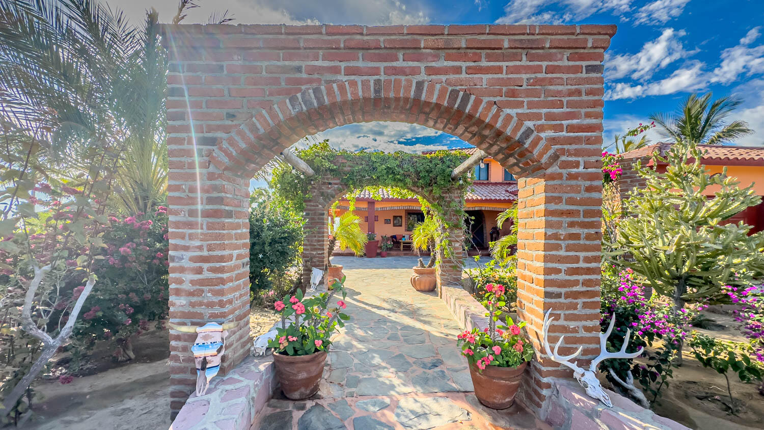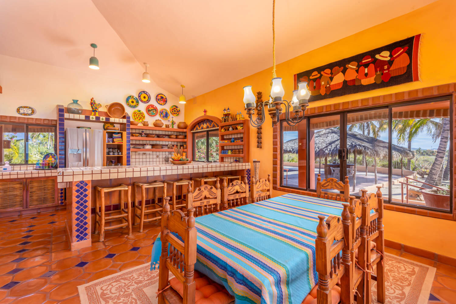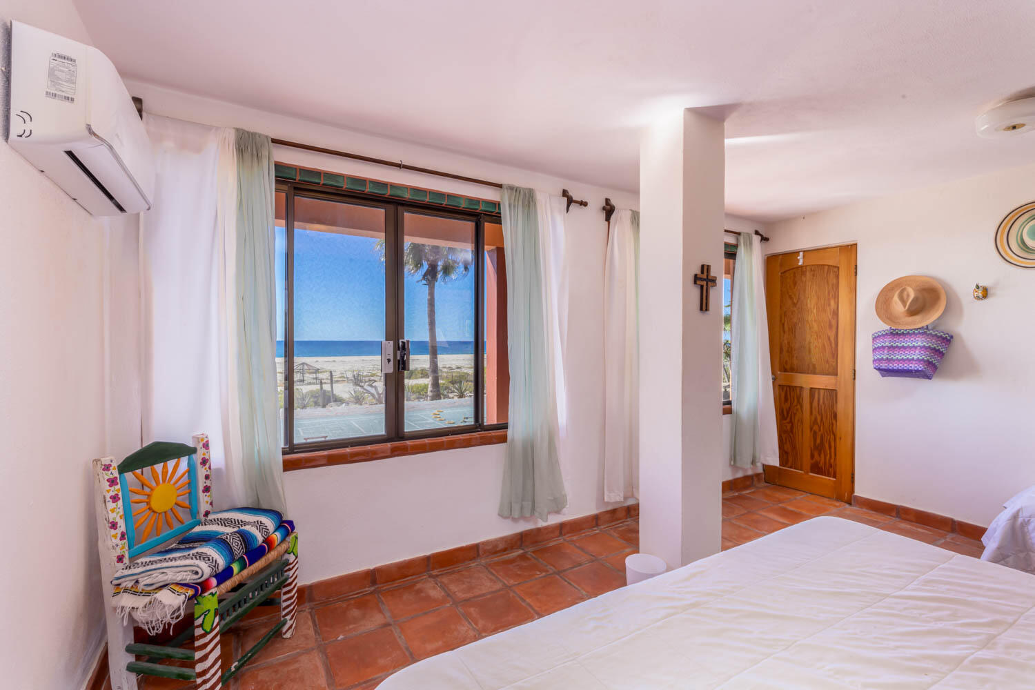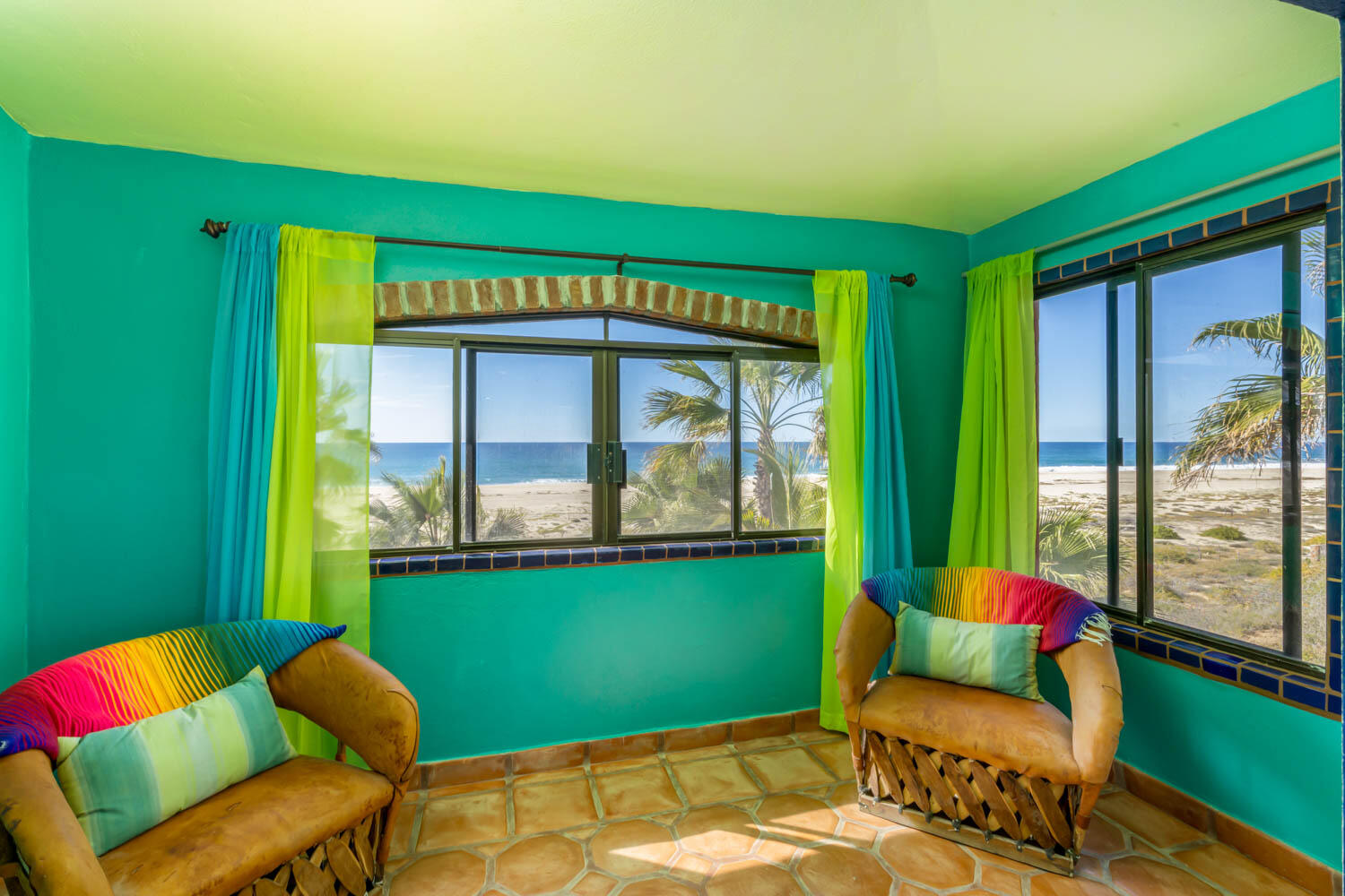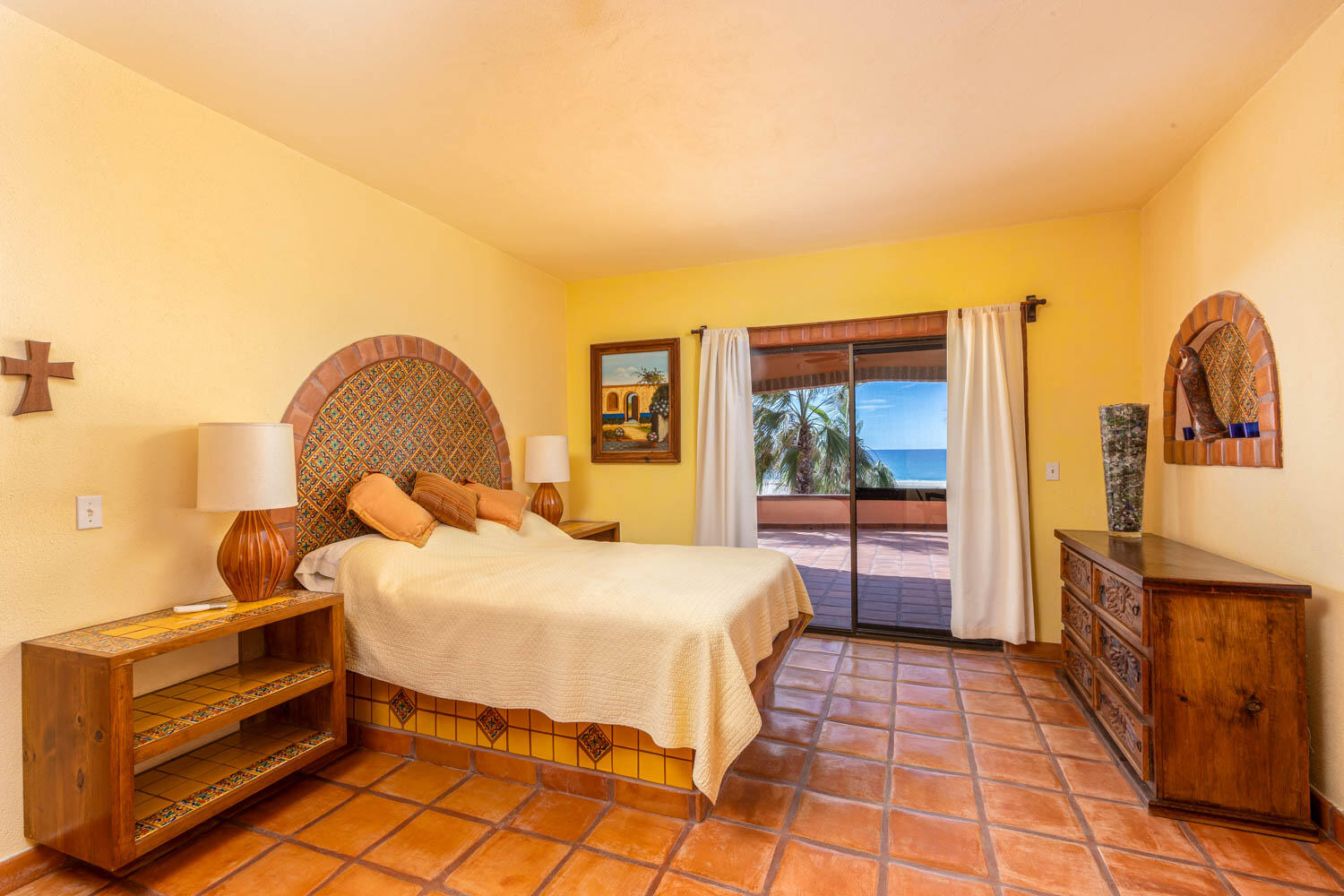 The quintessential Baja beachfront dream home. Enter the welcoming arched electric gates and you enter into the past and the old Baja California Sur before paved roads and gated communities. 2 1/2 acres of total privacy fronting the spectacular white sand beach on the Pacific Ocean in the quaint hamlet of Elias Calles. Bring the kids, families, and friends as there is something to do for everyone here in the charming fully landscaped gardens including a 39 X 17 ft swimming pool with jacuzzi, tennis court, and beachfront shuffle board. The house the master bedroom on the ground floor and the large oversize kitchen/living dining area all with sliders leading out the covered wrap around deck and big picture windows taking in the sea views. The upstairs has 2 guest bedrooms and 1 full bath.