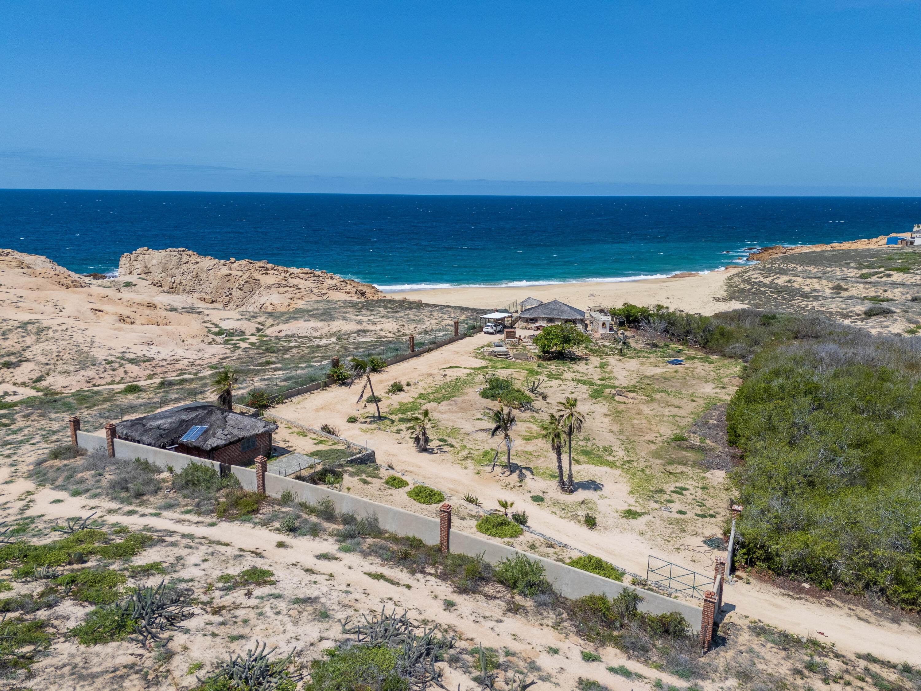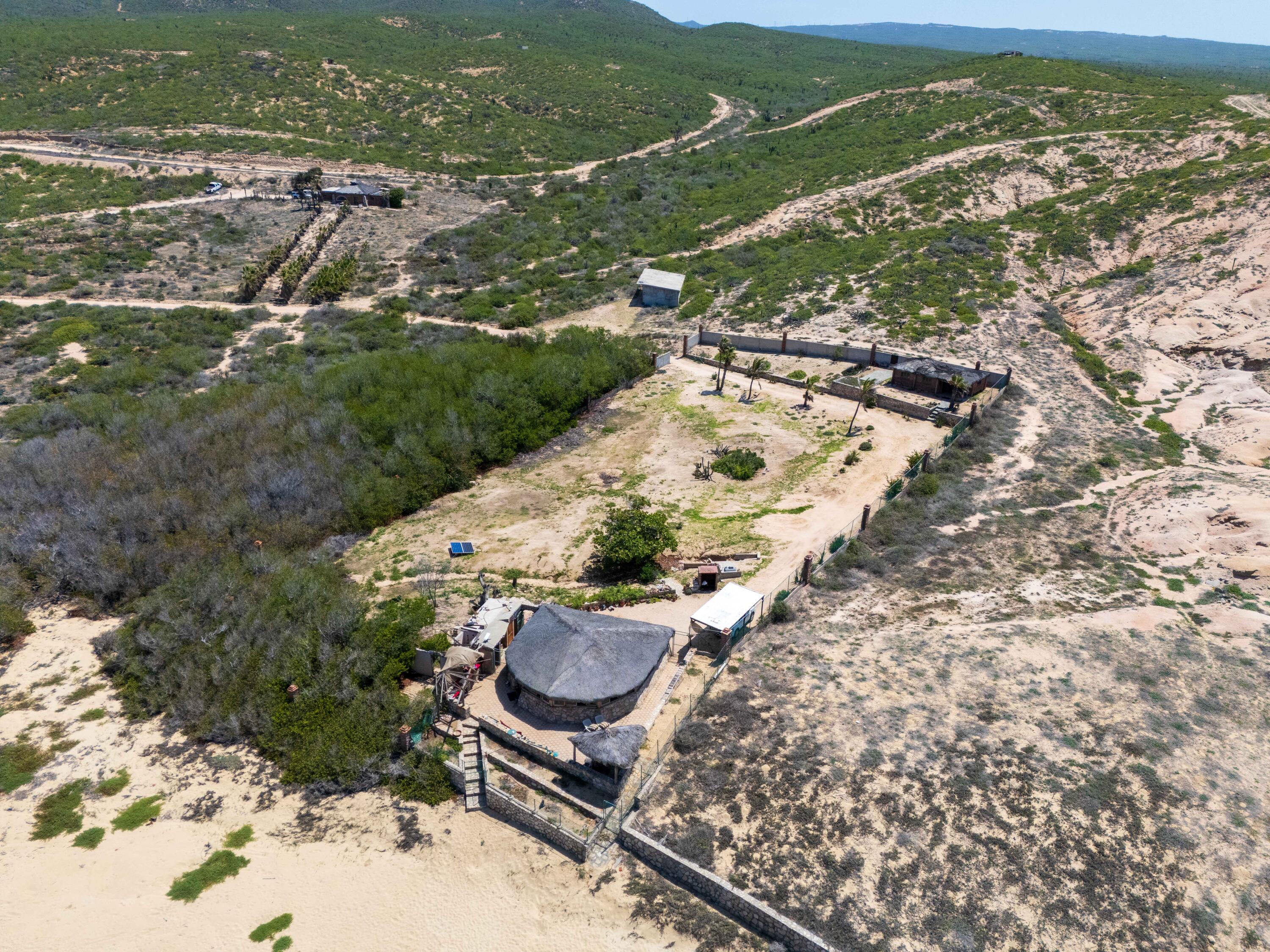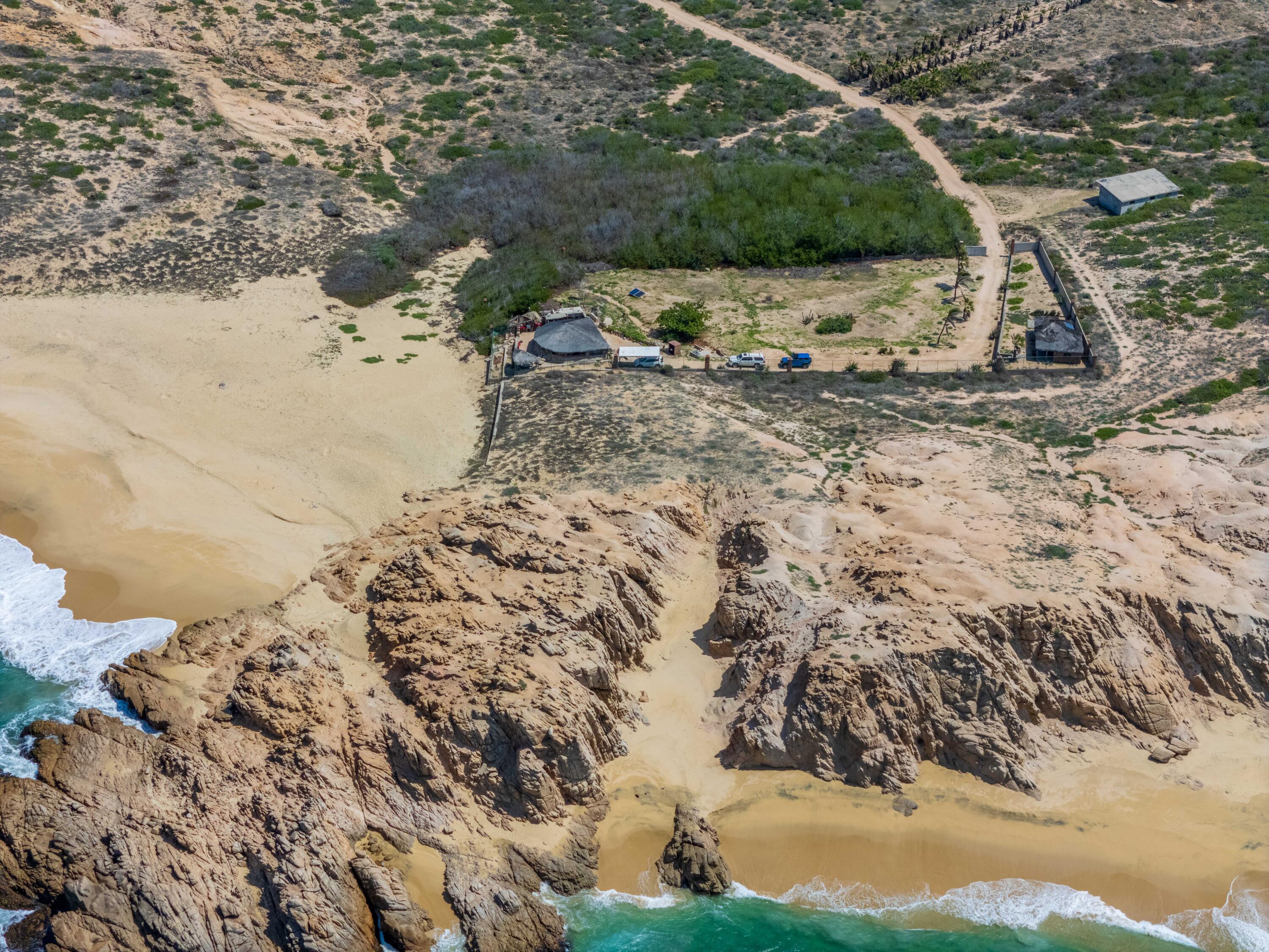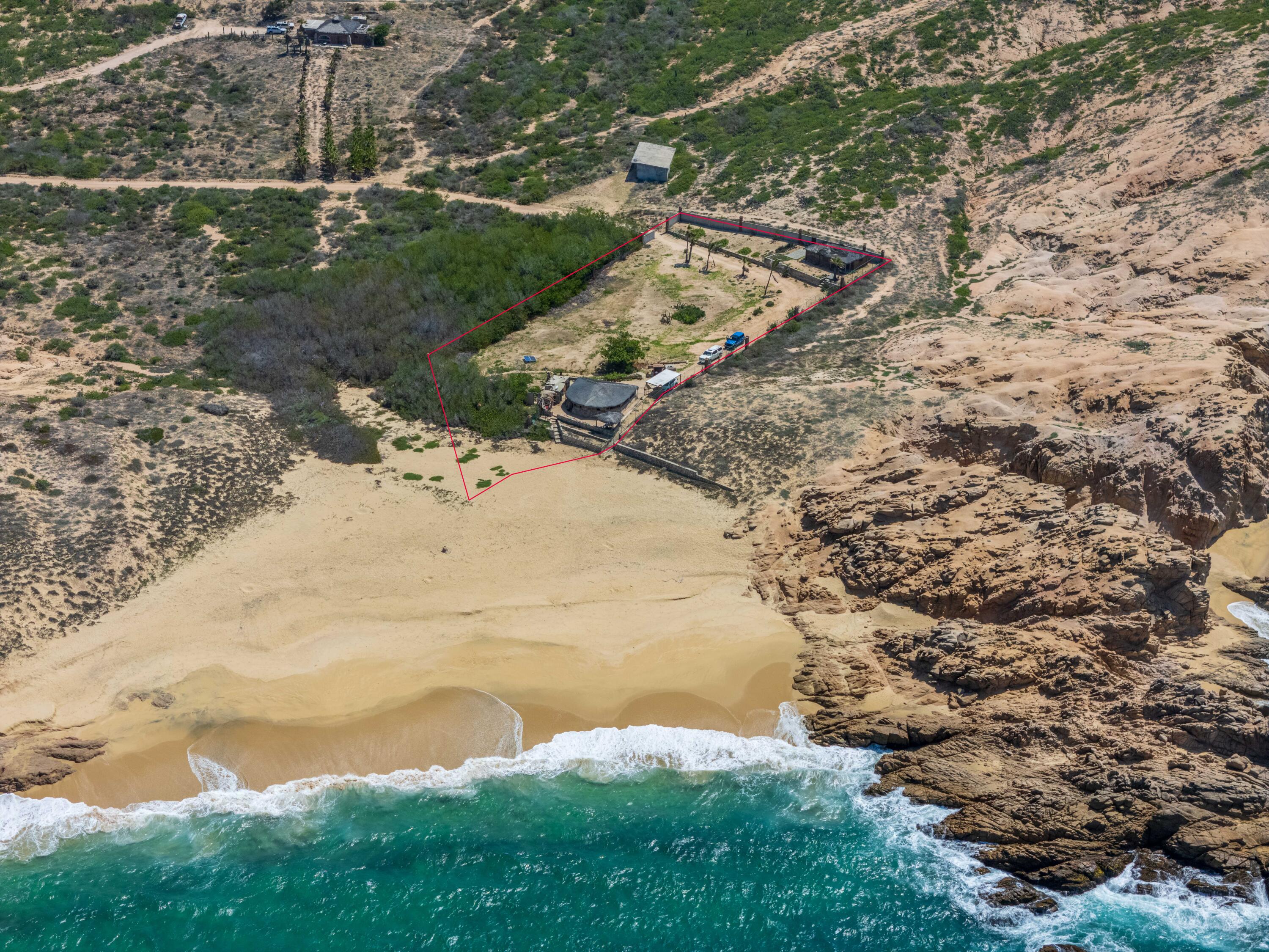 A true gem on the Pacific side can be yours! An oceanfront oasis, a large flat lot located on a private cove within the quiet community of Rancho Las Margaritas is a true paradise on the Pacific. With rock formations along the beach a cove tucked in between this unique landscape has something few offer on the Pacific, privacy while being on the oceanfront. There is a single story palapa home on the property and also a cozy casita. Surf break can be seen from the furthest part of the lot and there are steps right to the sand. Turtles nest on the beach, whales can be seen off shore, if you are looking for a peaceful lifestyle with nature on your doorstep, look no further! The perfect site for a future residence or multiple dwellings and the cove isl zoned for a boutique hotel.