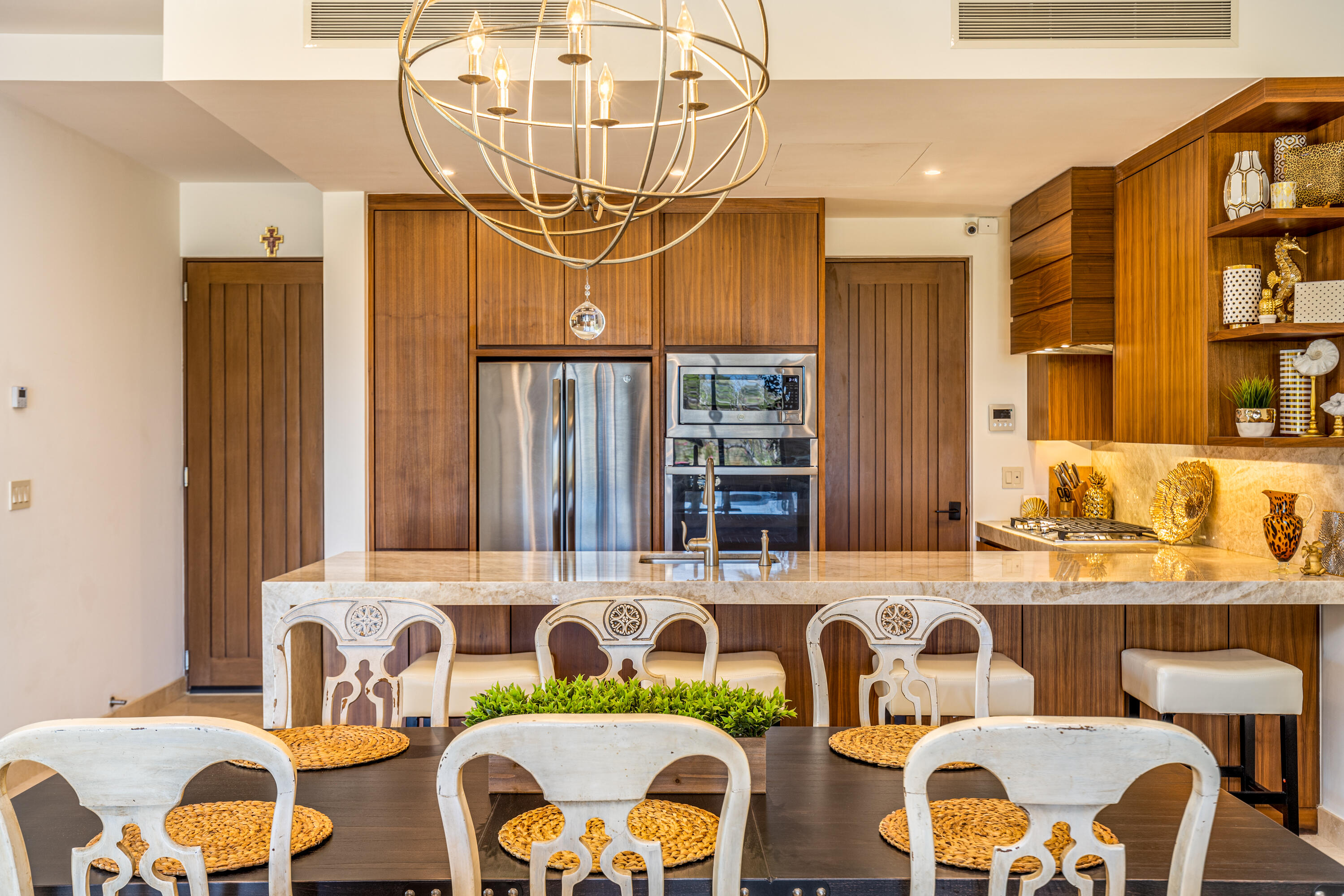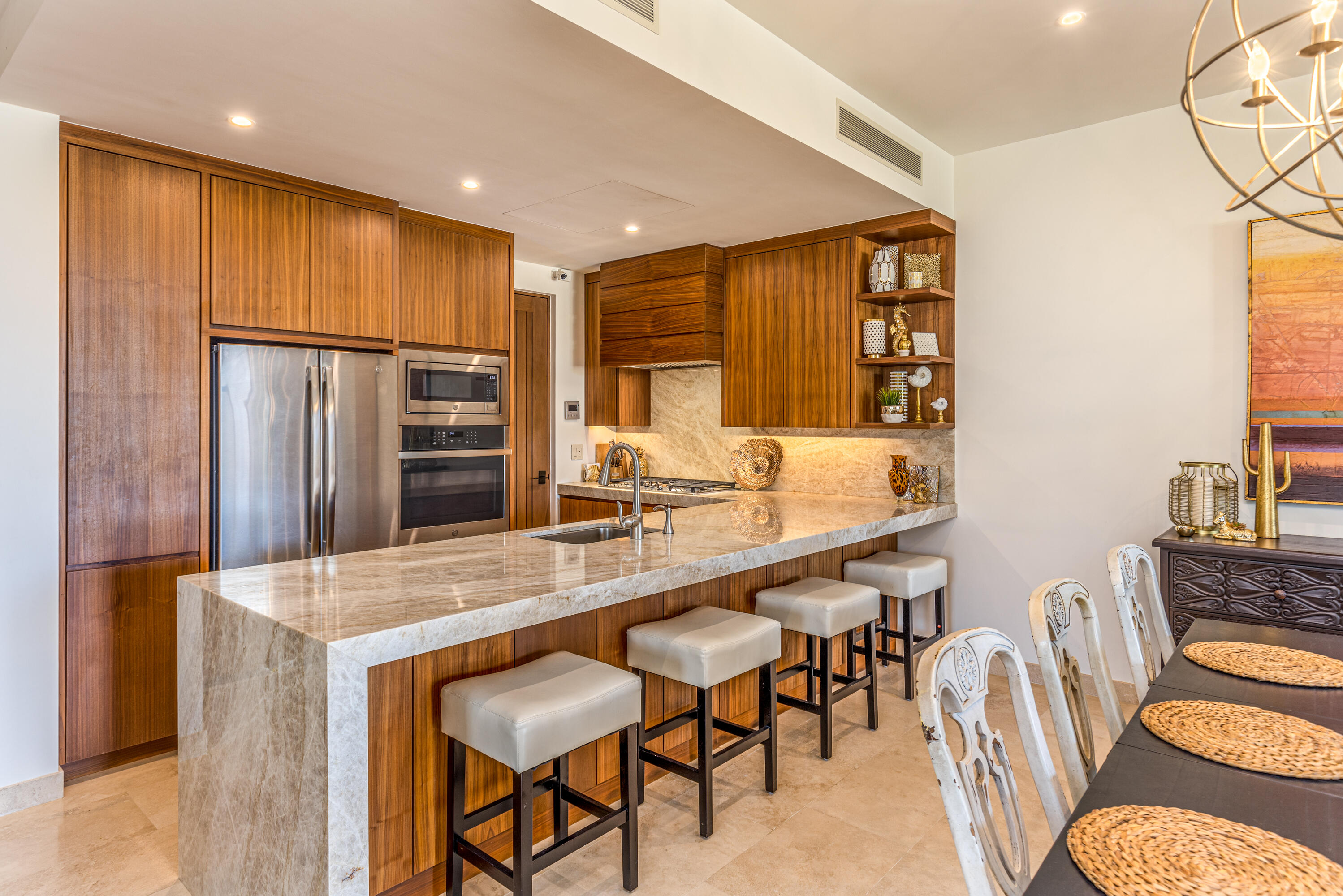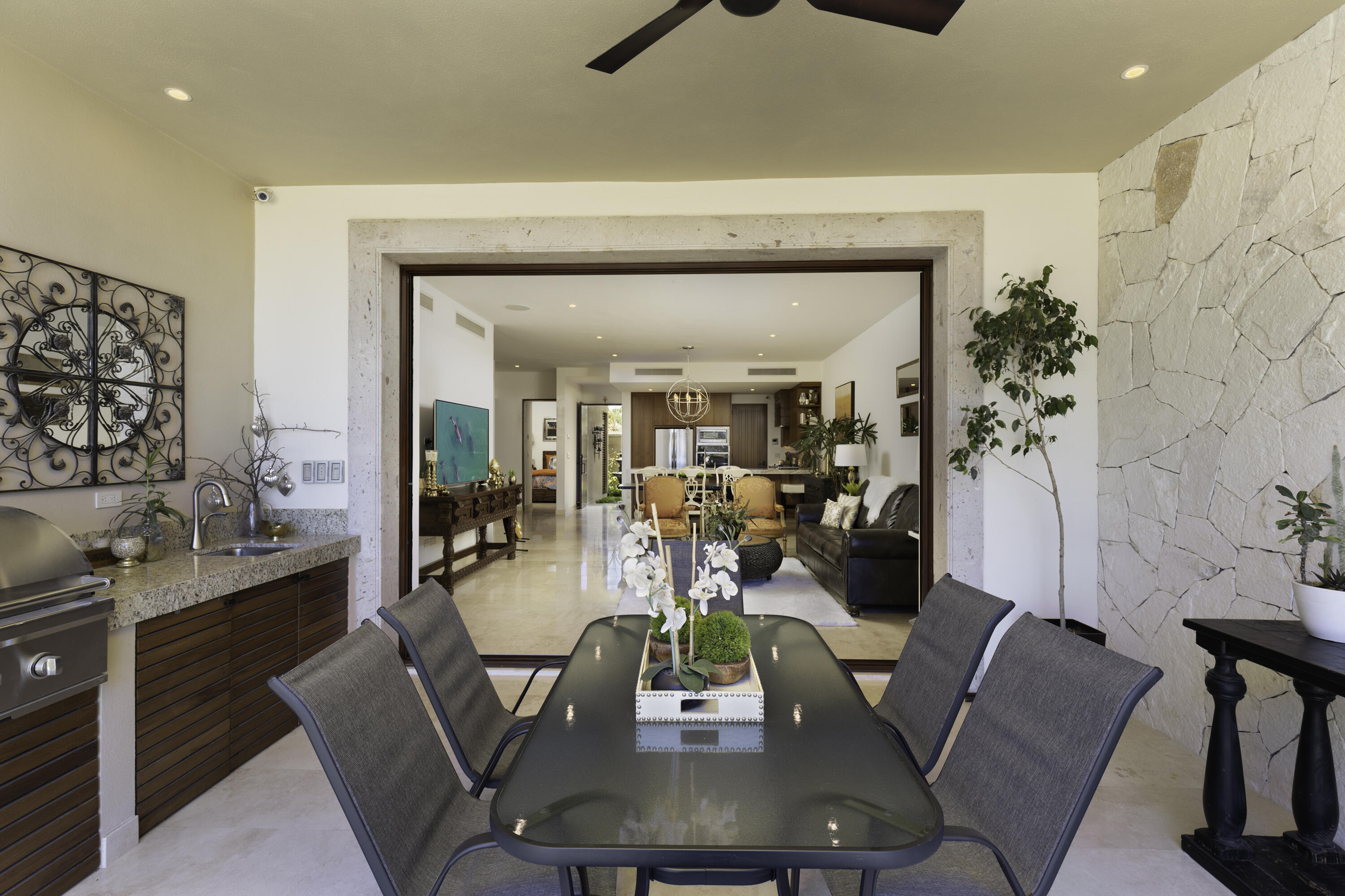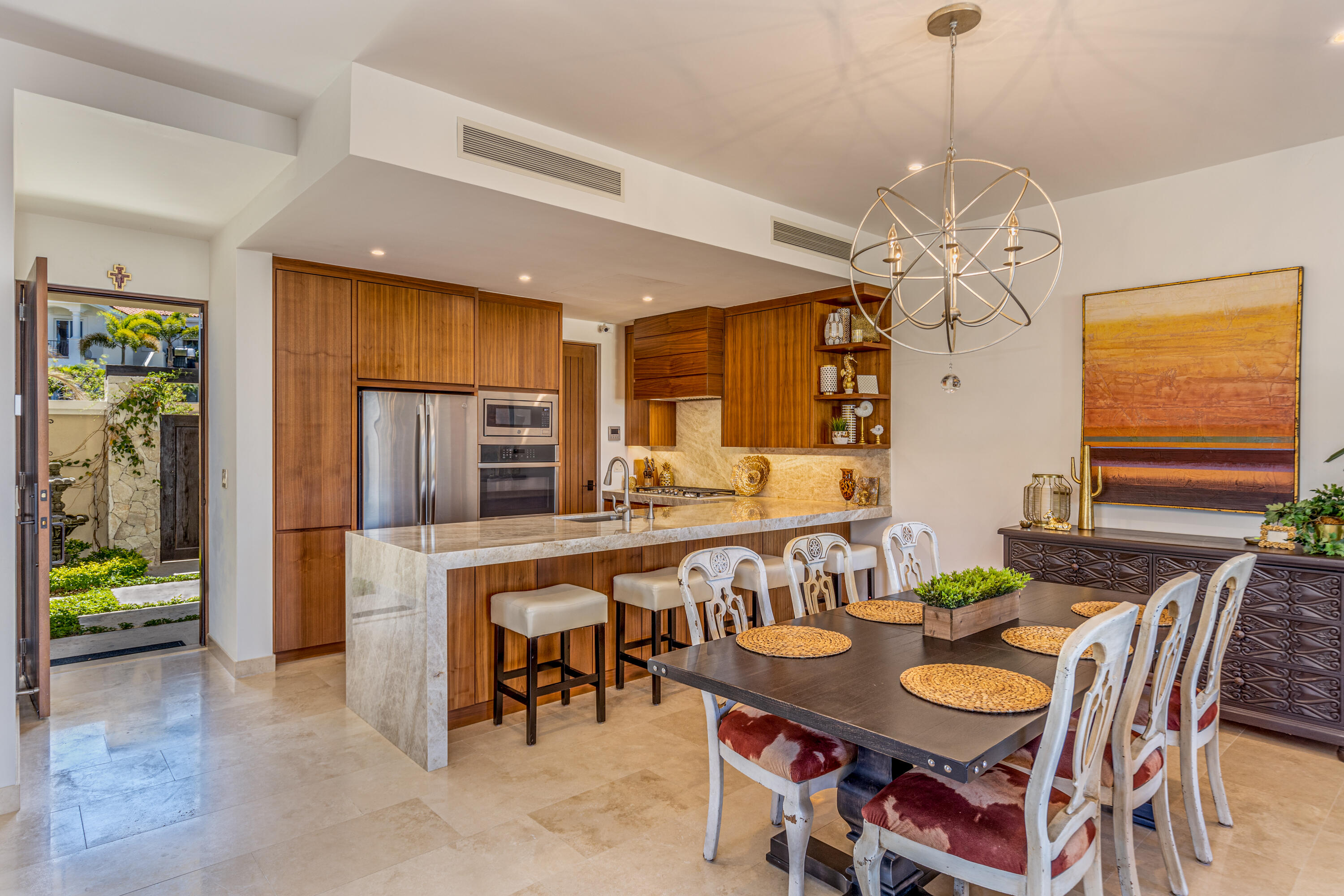 This beautiful home combines great design and convenient living in one perfect package. Welcome to Palmilla Dunes 612, first you will pass through the beautiful private courtyard finely landscaped with the tranquil sounds of the fountain as you reach the front door. Entering the front door you get your first view of the open concept living area. The kitchen features quality appliances, Parota hardwood cabinetry and a beautiful marble counters ending in a waterfall edge. Flowing straight through into the dining area with space to seat 8 and on to the comfortable family room perfectly suited for relaxing or entertaining. A large 4 panel sliding glass pocket door opens up to provide indoor/outdoor living.