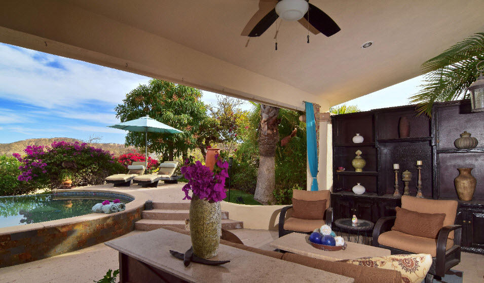 Set within the splendor of Palmilla, one of Baja California Sur’s most prestigious resort communities, is Palmilla Fairways. From the relaxed lifestyle of this single level home, every vantage points to a dazzling backdrop, including the Sea of Cortez, the mountains and the manicured fairways of Mexico’s first Jack Nicklaus Signature golf course. Entered through a private courtyard, the living room, dining room and kitchen combine as one great room, maximizing the views and accentuating casual resort living..indoors and out. Pool area with cantera flooring.