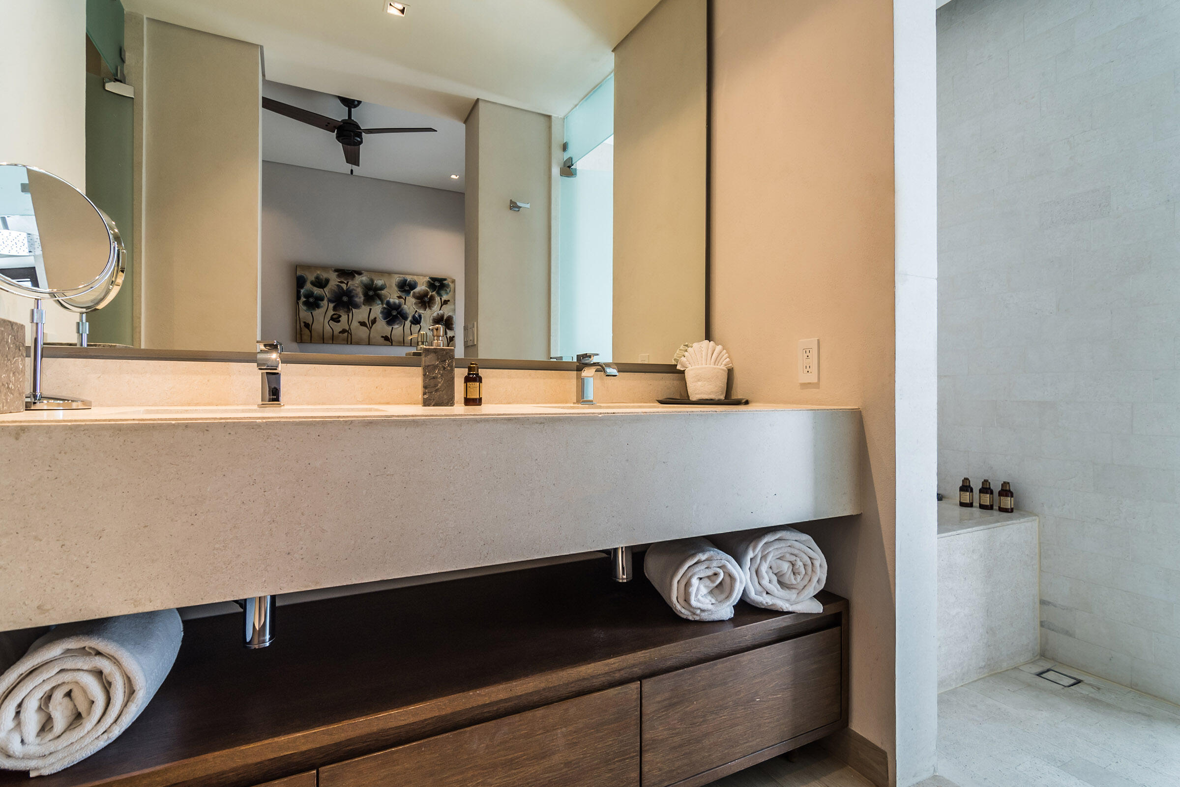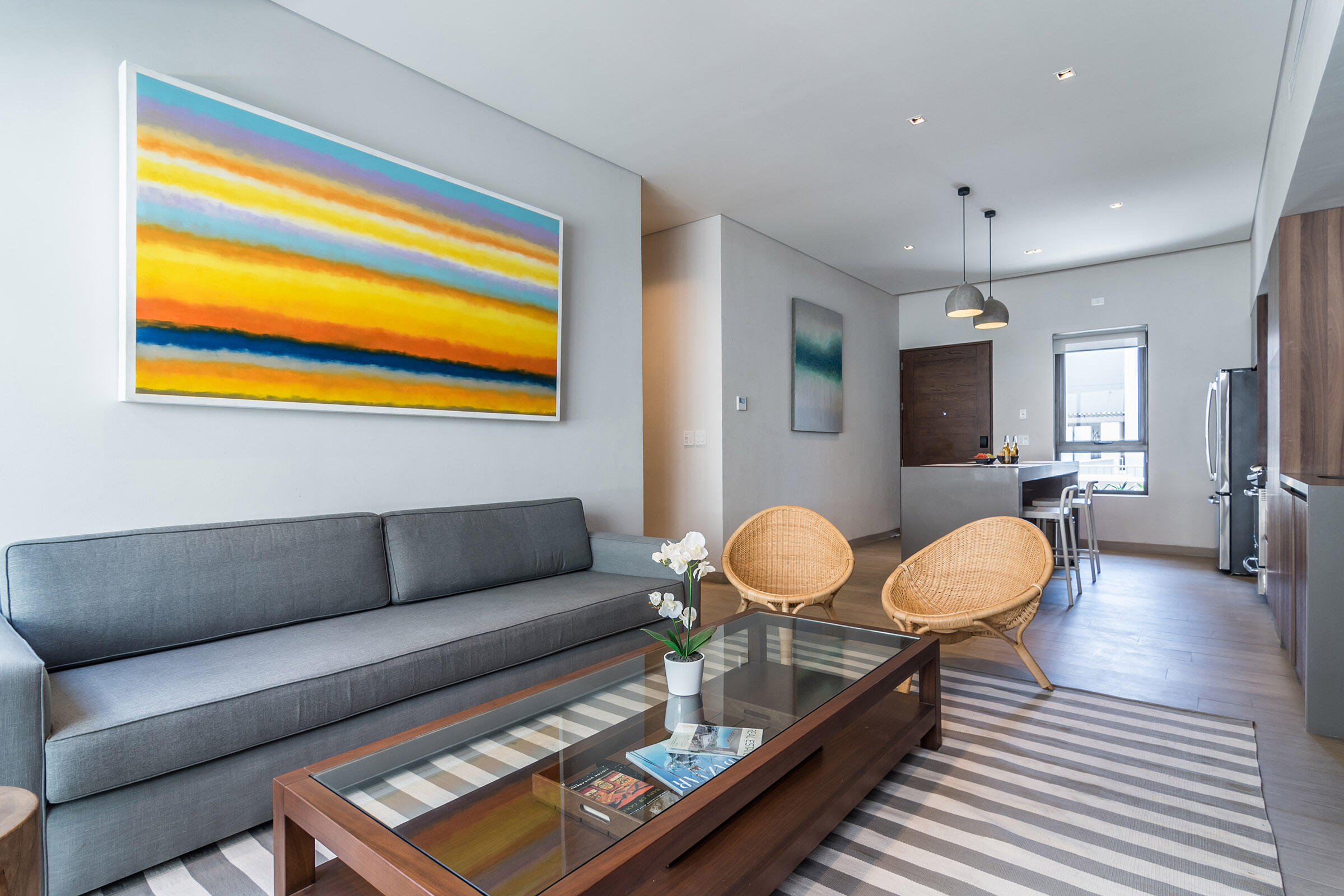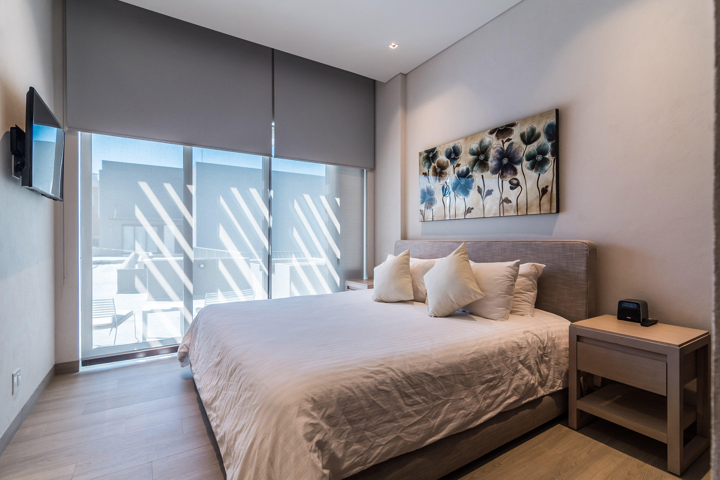 Beautiful Condo located in The Paraiso Residences, a modern new complex of luxury condominiums located at Puerto Paraiso Mall. In the middle of the Cabo San Lucas Marina, known to host ultra luxury yachts, one of the biggest sport fishing annual competitions ”Bisbee’s”, plus plenty of restaurants for early breakfast or fine dining, as well as the top Cabo night spots.This Condo features modern decoration in perfectly illuminated spaces, kitchen fully equipped. A spacious and fun living room perfect to entertain and relax, with a comfortable couch that can make extra sleeping space. Two well sized bedrooms, Master with King size bed and ensuite shower bathroom as well, both with spacious closet space. The living room pocket doors open to extend your social area to the exterior terrace
