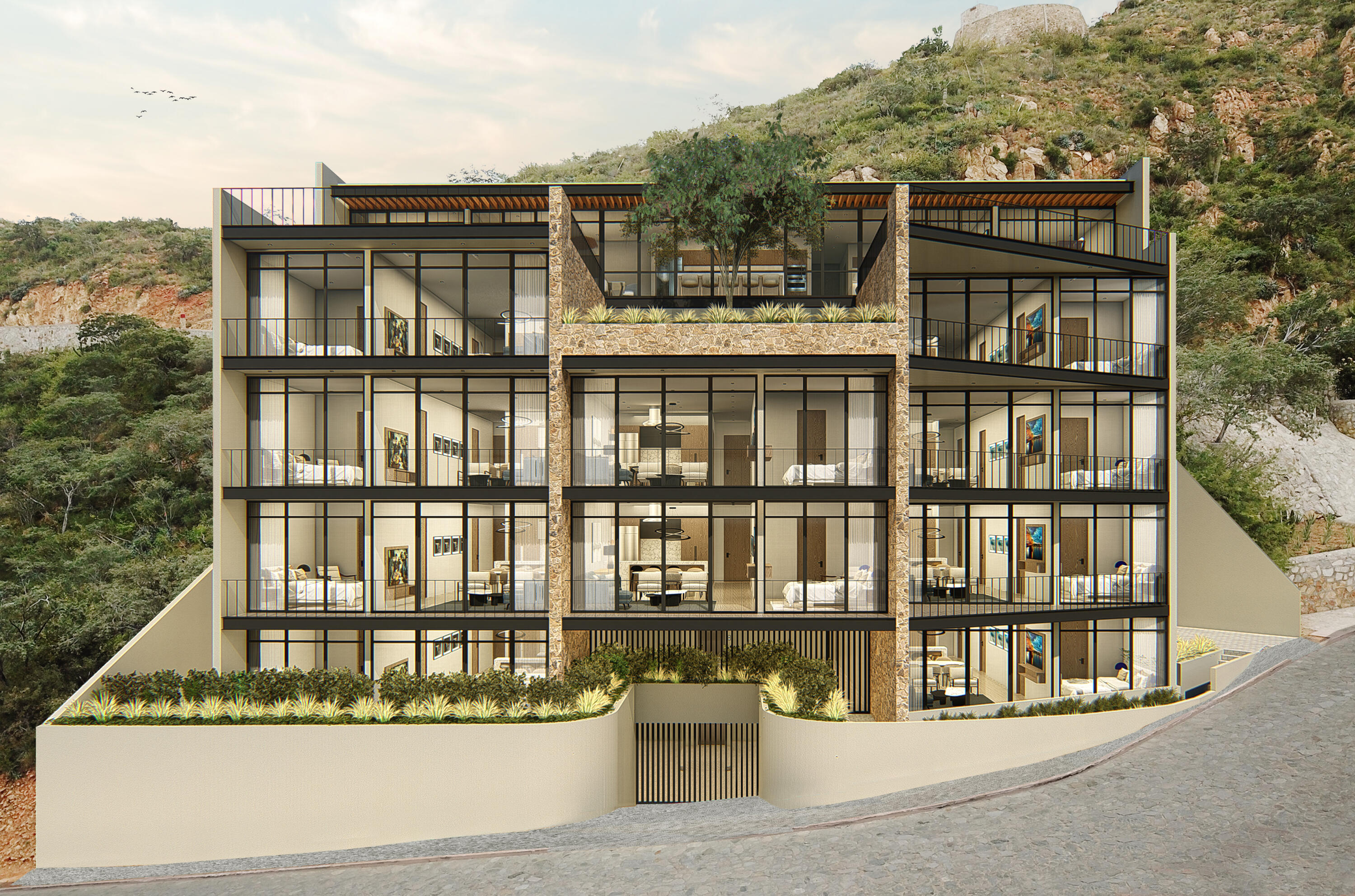 Pedregal One is the newest condo development, boutique, low density project with a concept Pool, Marina and City Views like no other. Pedregal One offers 12 pre-construction condos in an elevator building. This SECOND floor condo is a 2 bedroom / 2 bathroom unit with over all modern and contemporary finishes, offering beautiful city views. It comes with 2 covered parking spaces. Enjoy the gated, secured community of Pedregal, Beach, spa, tennis courts, Pickleball, Spa, Organic Market, Desalination Plant, and restaurants all within walking distance or a short ride from your unit. – Pre-construction pricing is offered and finishing packages too. **Ask us about our co-ownership program**