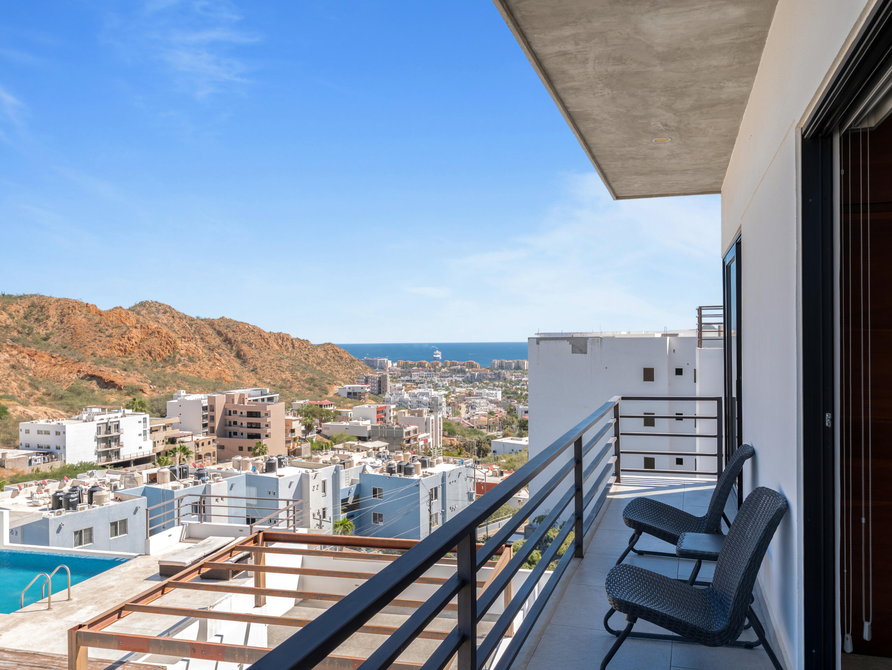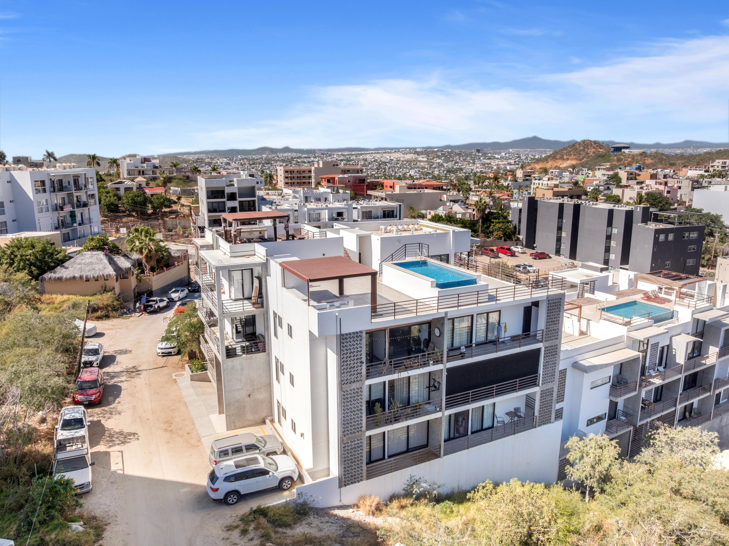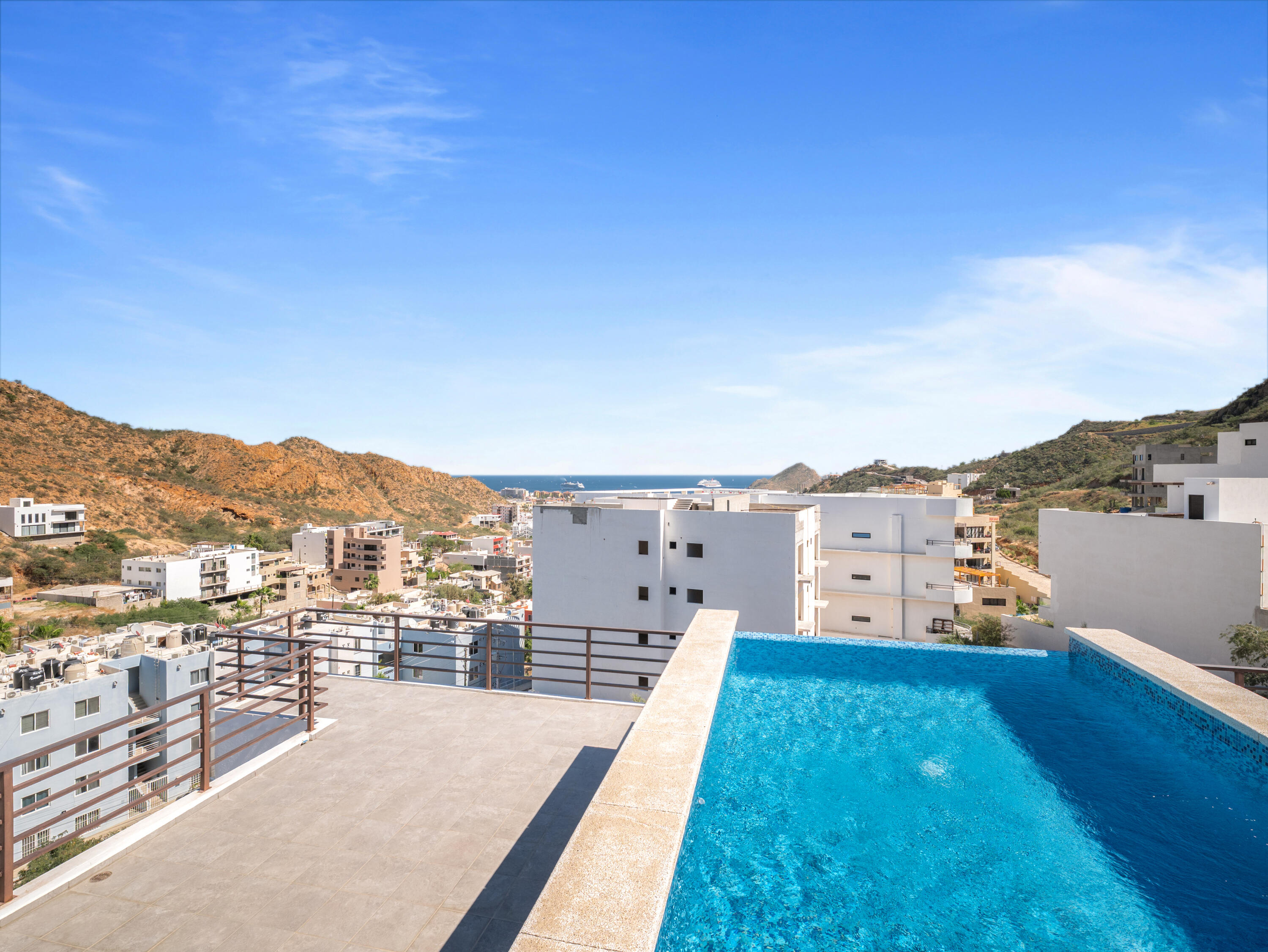 Proven vacation rental with strong performance, this penthouse 2-bedroom, 2-bath condo offers an ideal opportunity for investors, first-time buyers, or a low-maintenance Cabo getaway. One of only two units on the top floor, this third-level residence features exceptional privacy, abundant natural light, and steps-away access to the rooftop infinity pool. Large windows in the living area and primary bedroom provide year-round sunlight and protected views, with no future construction allowed to block them. Located in the quiet Sunset area with quick access to downtown Cabo, the Marina, beaches, restaurants, and city services. Turn-key, with parking and storage included. Excellent option for full-time living, seasonal use, or short- and long-term rental income.