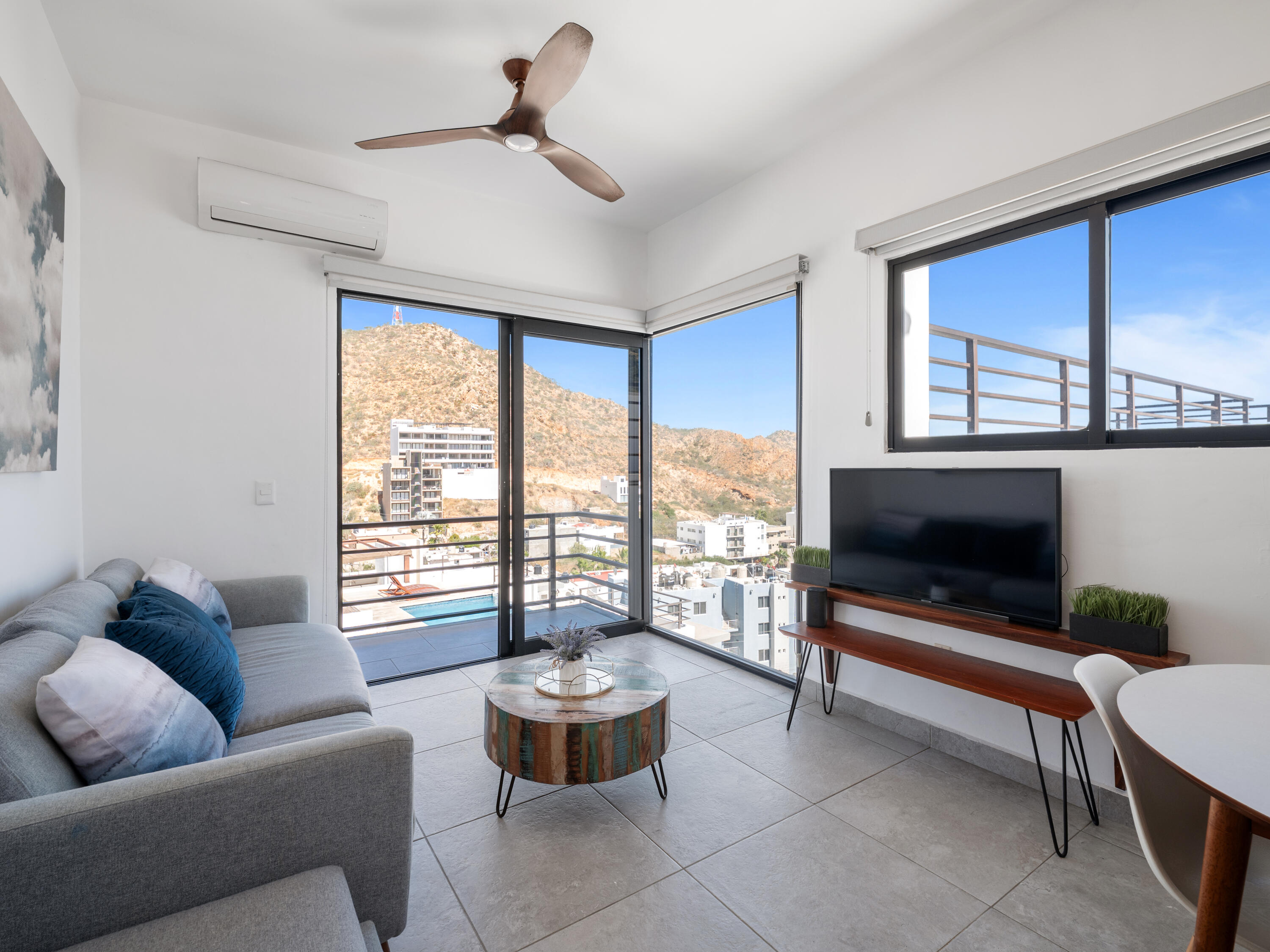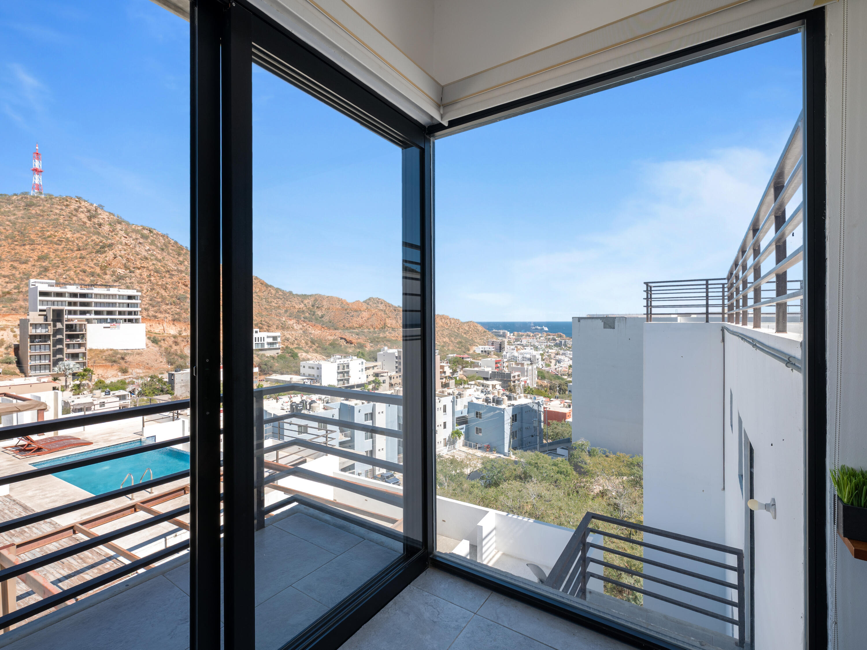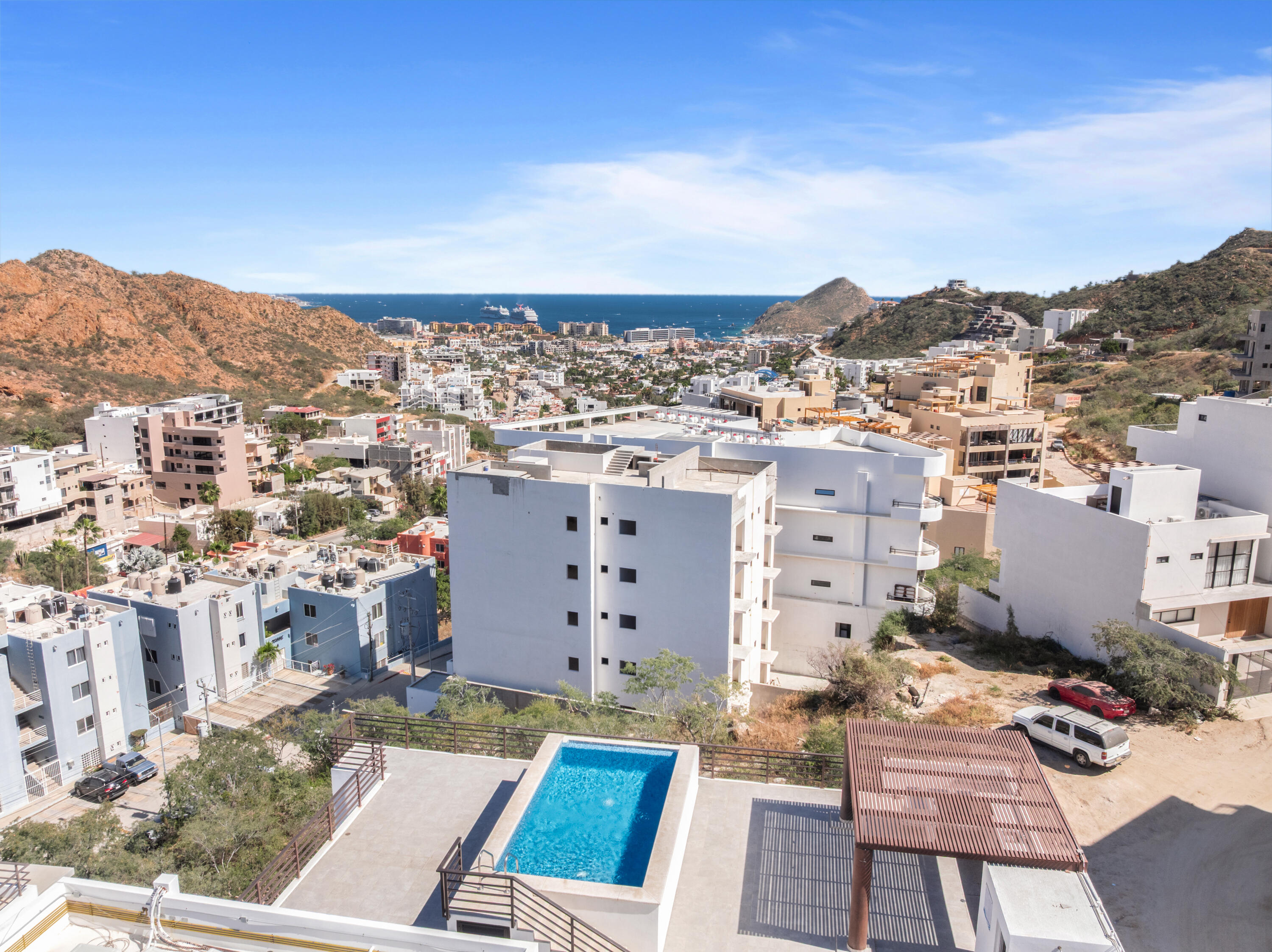 Proven vacation rental with strong performance, this penthouse 2-bedroom, 2-bath condo offers an ideal opportunity for investors, first-time buyers, or a low-maintenance Cabo getaway. One of only two units on the top floor, this third-level residence features exceptional privacy, abundant natural light, and steps-away access to the rooftop infinity pool. Large windows in the living area and primary bedroom provide year-round sunlight and protected views, with no future construction allowed to block them. Located in the quiet Sunset area with quick access to downtown Cabo, the Marina, beaches, restaurants, and city services. Turn-key, with parking and storage included. Excellent option for full-time living, seasonal use, or short- and long-term rental income.