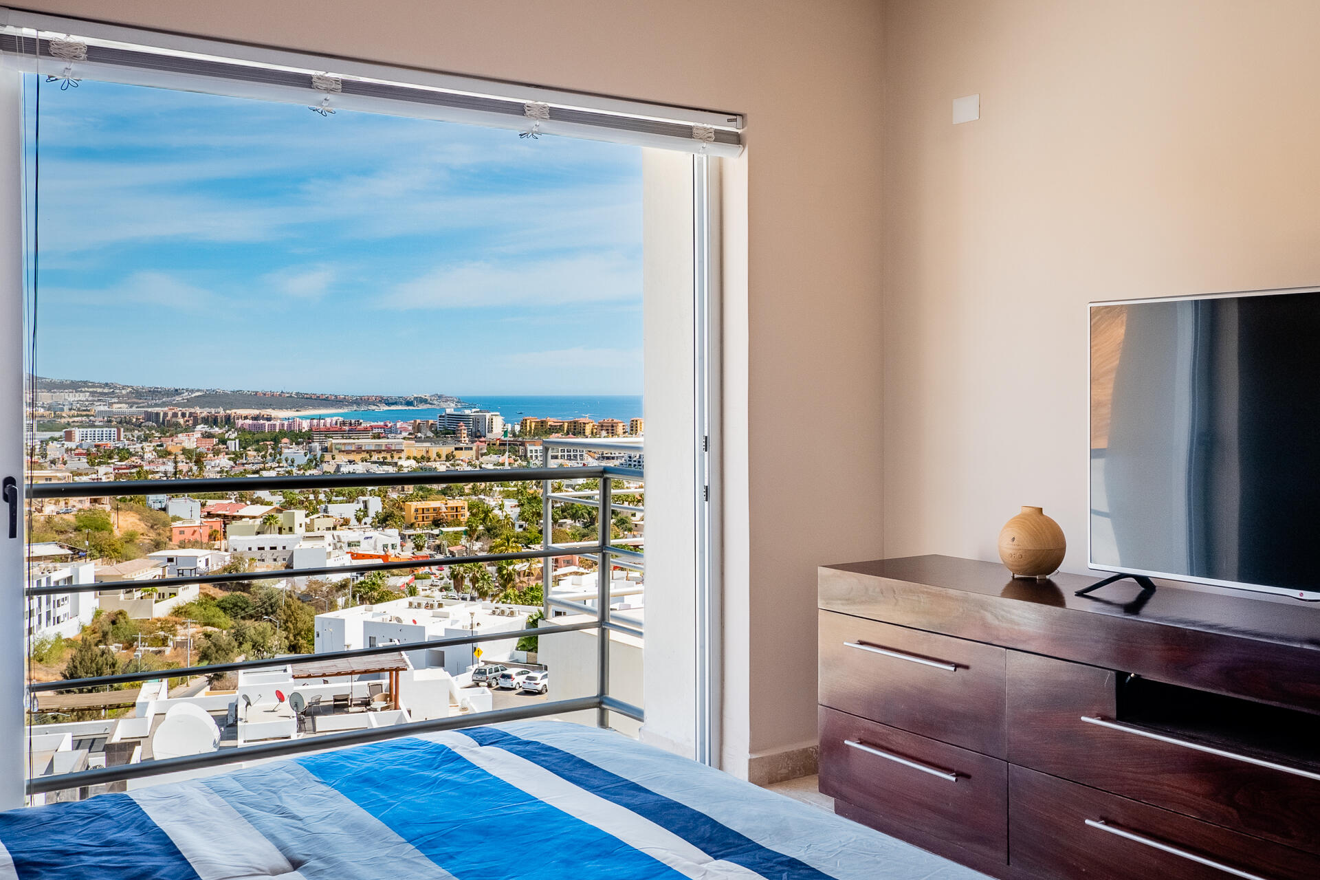 Enjoy spectacular views of Downtown Cabo San Lucas, Medano Bay and the Marina, from this stunning 3BR/2.5BA Penthouse Condo in the quaint community of San Charbel.Priced to sell and ready to move-in. This one won’t last! Call to schedule an appointment.