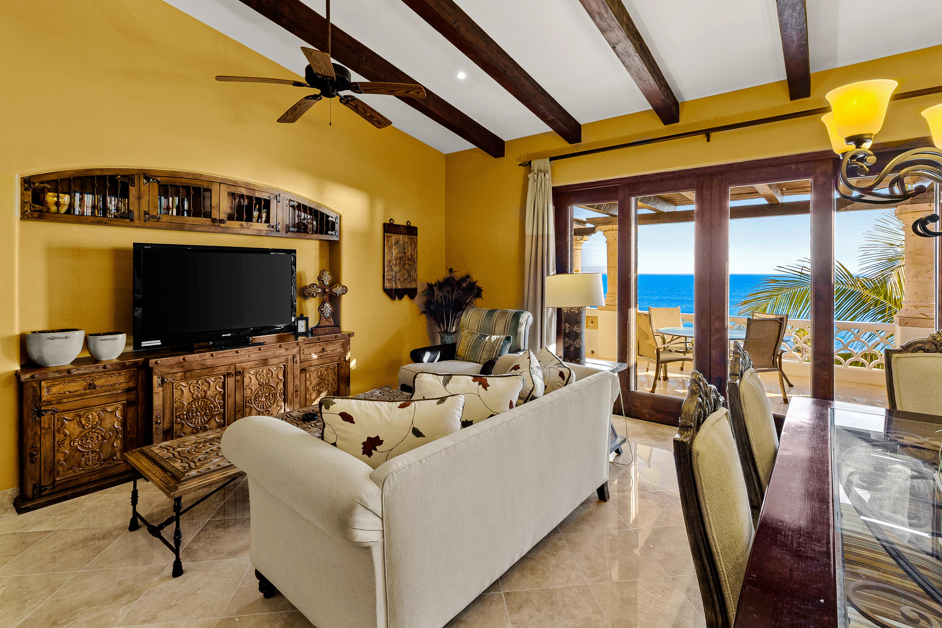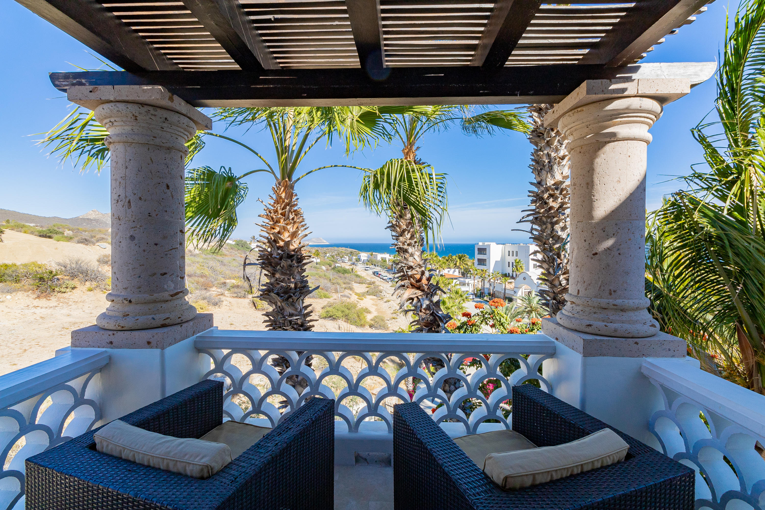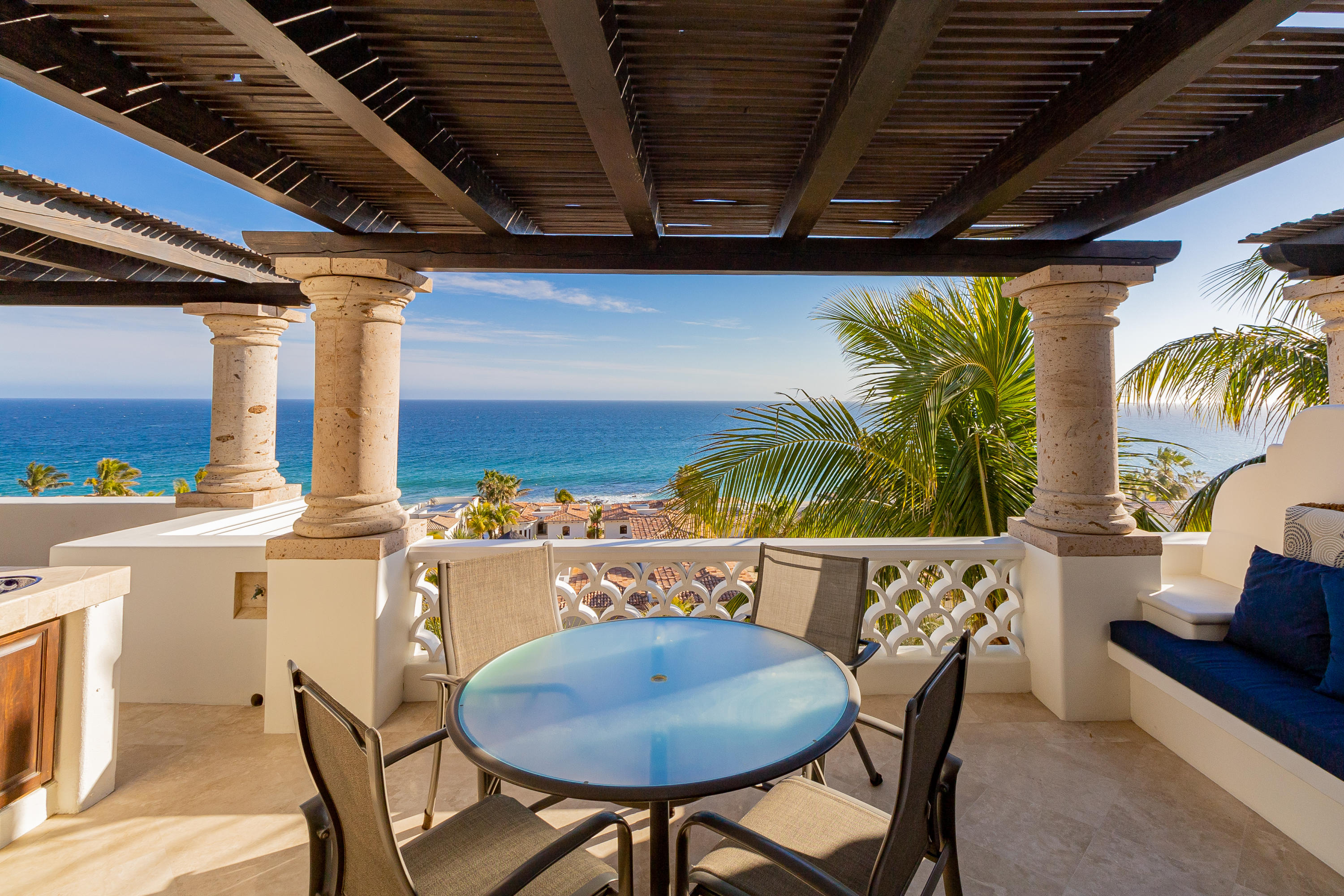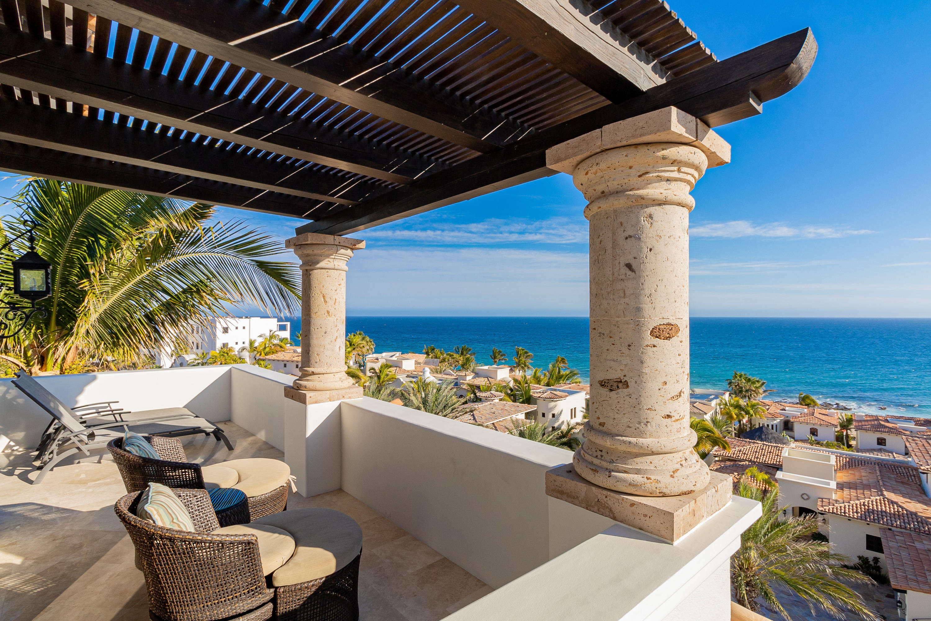 This is a must see two-bedroom Penthouse with unobstructed ocean views that sweep across the Sea of Cortez! Situated to capture picture-perfect sunrises and sunsets while listening to the sound of the waves. For those looking for a quiet getaway this residence has a spacious wraparound terrace and plenty of privacy. The common area includes an infinity edge pool, Jacuzzi and swim-up palapa bar shared with only 21 owners and reasonable HOA costs. The charm of this gated beachfront community is its secluded beach, new Beach Club & Restaurant with only a short drive into downtown San Jose del Cabo and the Puerto Los Cabos Marina. This is a must-see condo that comes fully furnished with a single car garage making it the perfect place to call home.