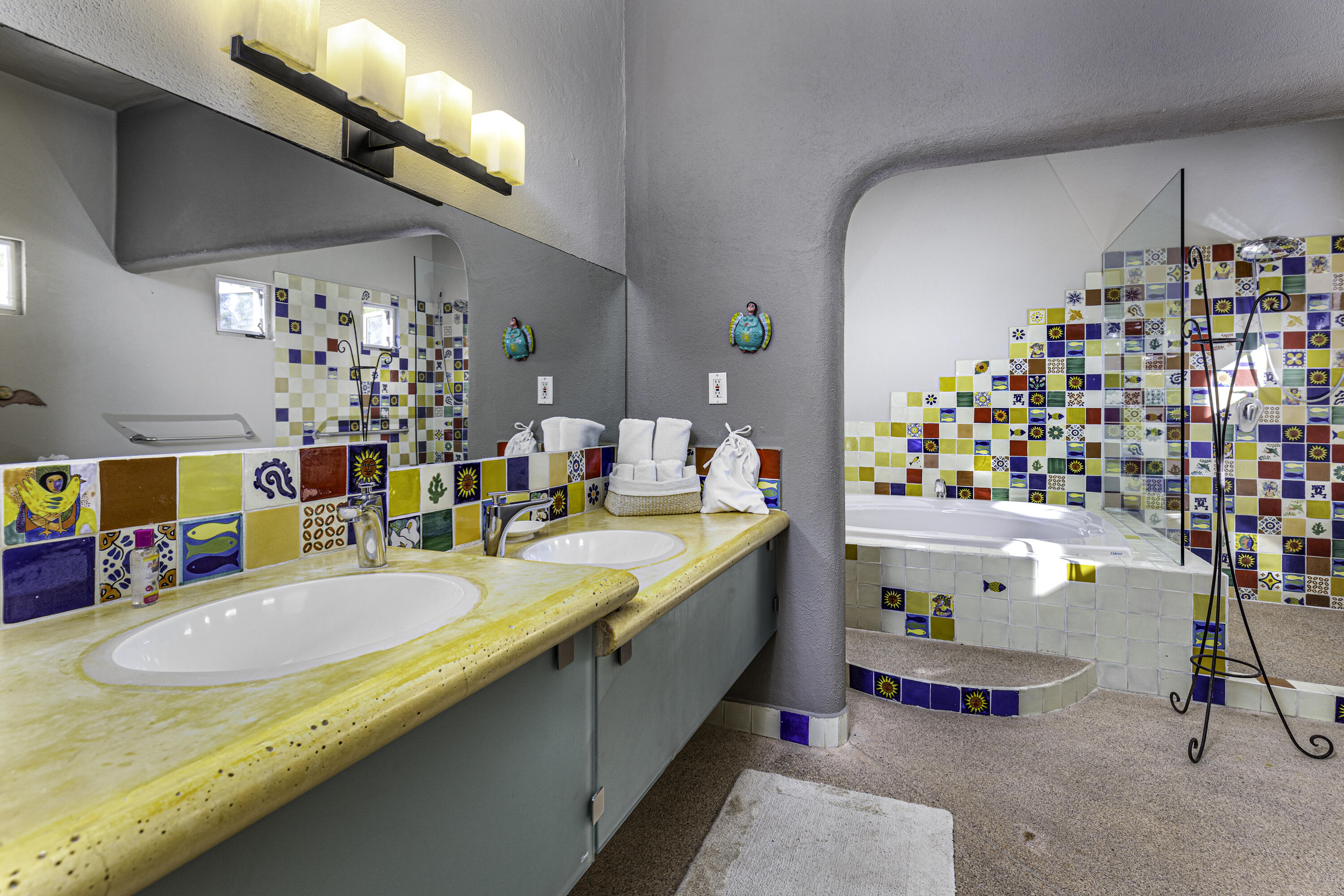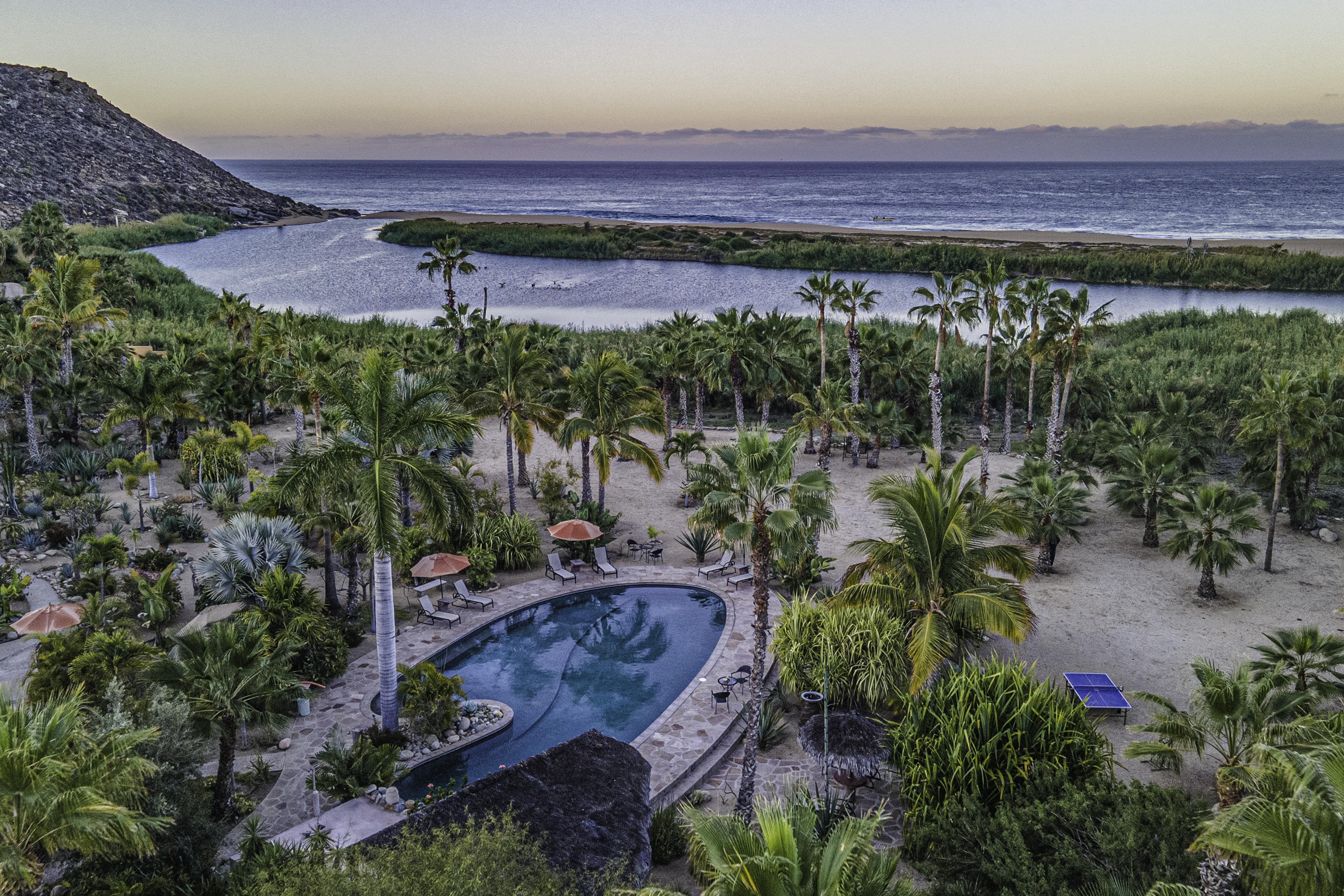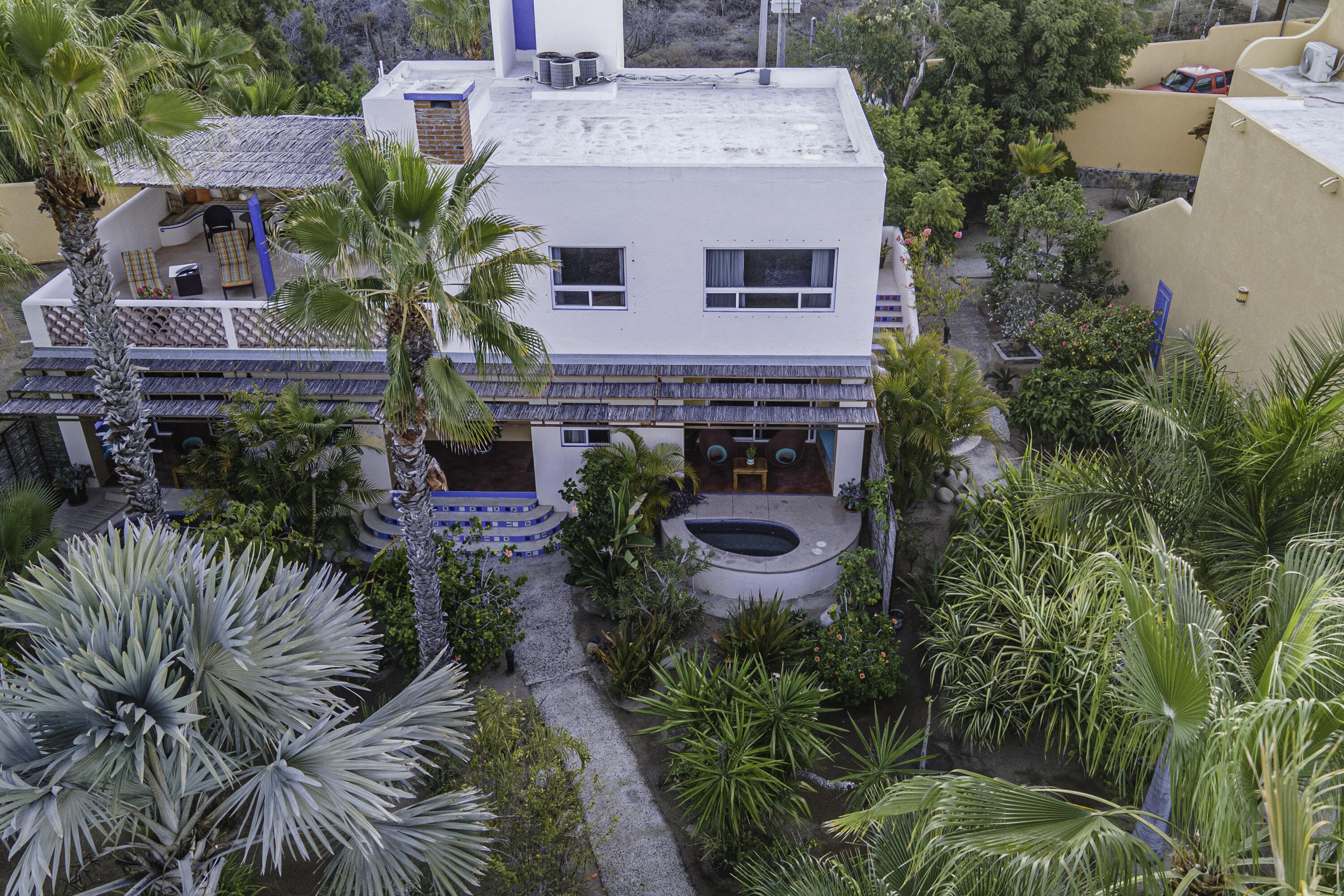 POSADA LA POZA. Just minutes from downtown Pueblo Magico Todos Santos, you will feel the magic over 3 1/2 acres of beautiful lush landscape, open spaces and an abundance of exotic palms and plants.The tone is set for what awaits you, quite private Estate Property on the verge of being a 5 star small boutique hotel of the world. On the main property are 8 bedrooms, 7 are guest suites, all with full bathrooms and Jacuzzi tubs and private terraces, a full bar and restaurant kitchen with inside and outside dining or lounge areas, an amazing rooftop terrace rated in the top 10 destinations in Baja. A perfect location for a Sunday Brunch, dinner dining or live entertainment venue.