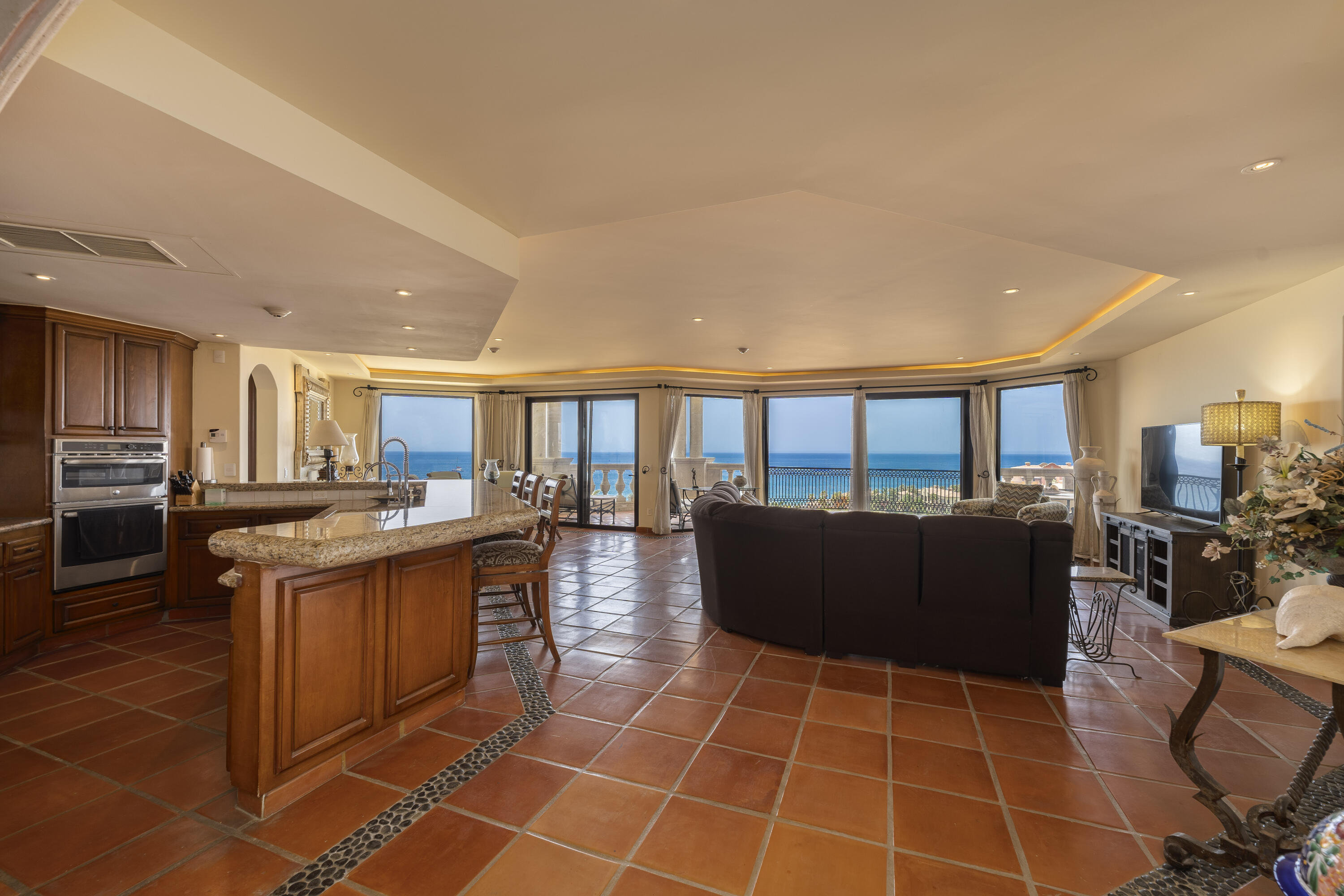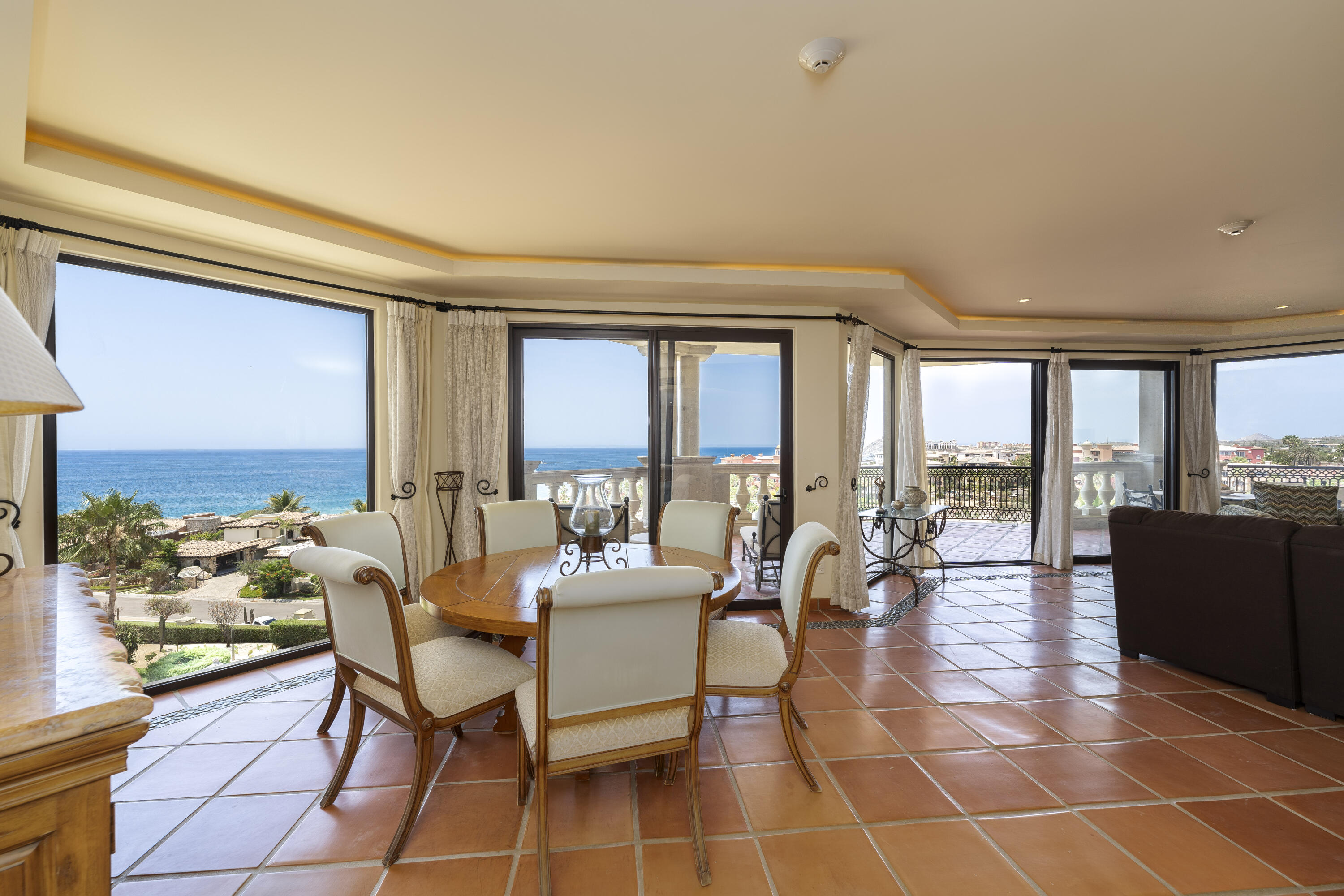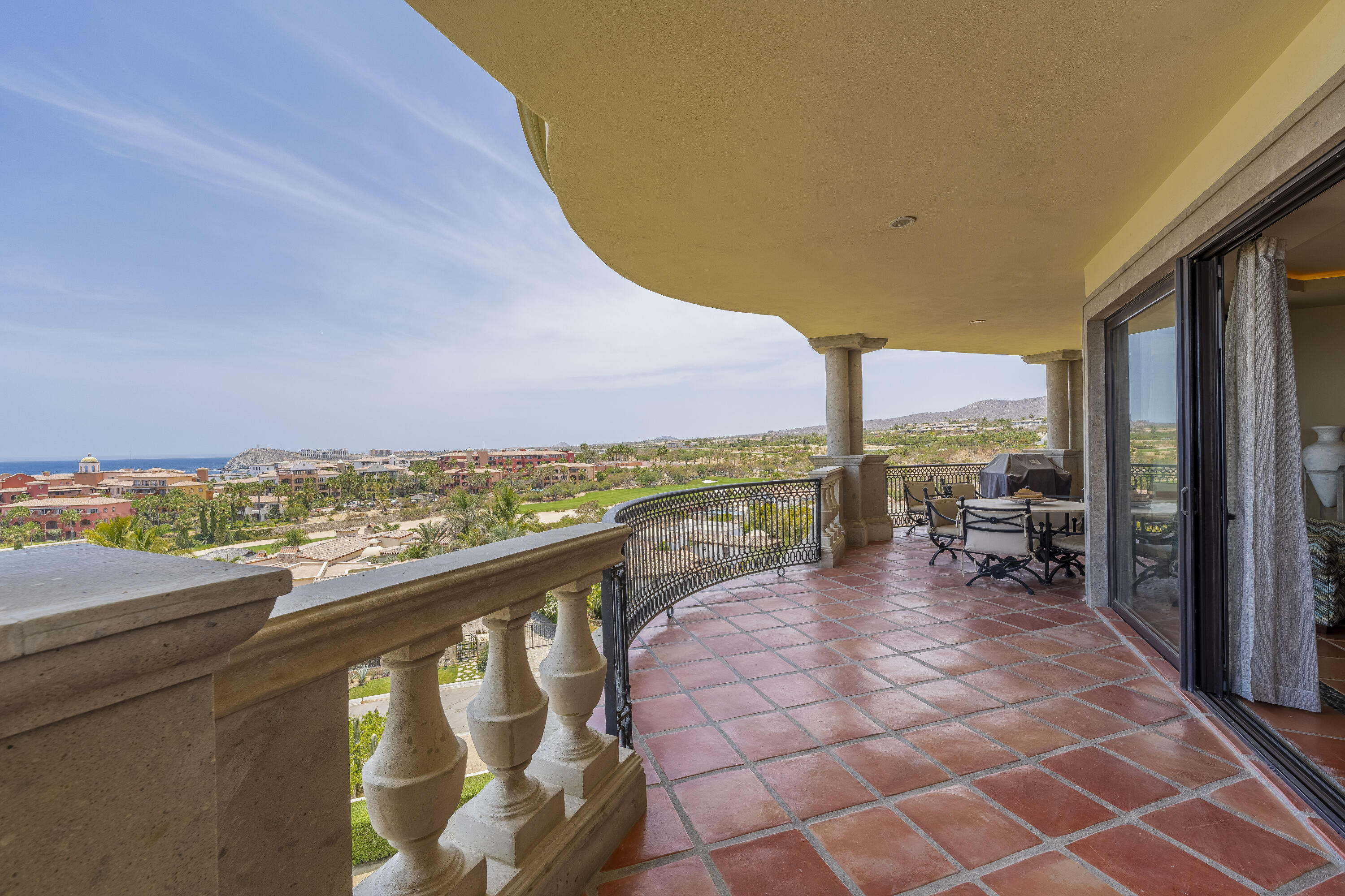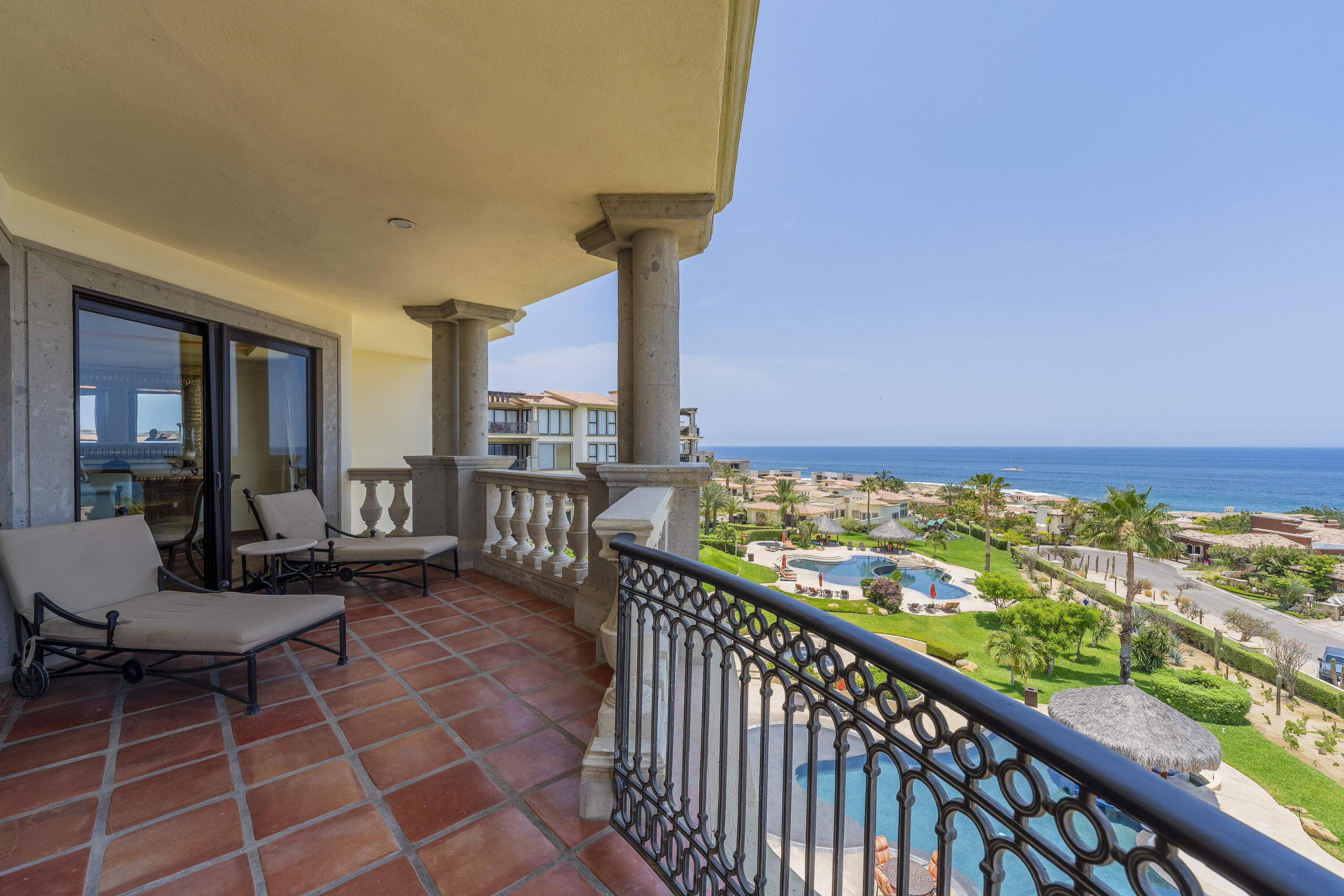This Lovely 3 Bedroom ocean view home is located in Puerta Del Sol, near the Four Seasons, in the stunning golf resort town of Cabo Del Sol.There are three master suites on this property, each with spacious bathroom and you’ll adore the living room and the vista from the large terrace that overlooks the ocean with BBQ and a jacuzzi.There is a fitness facility, a business center and various pools.The beach is only a few minutes away.This condominium is turn -key and fully furnished with high end furnishings and a single car garage spot assigned to it.This is an excellent full time residence or rental property.