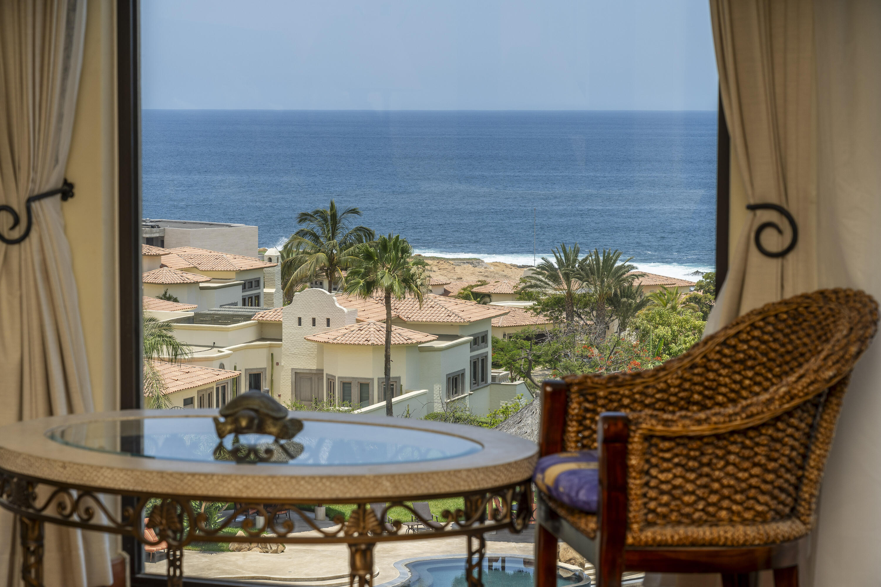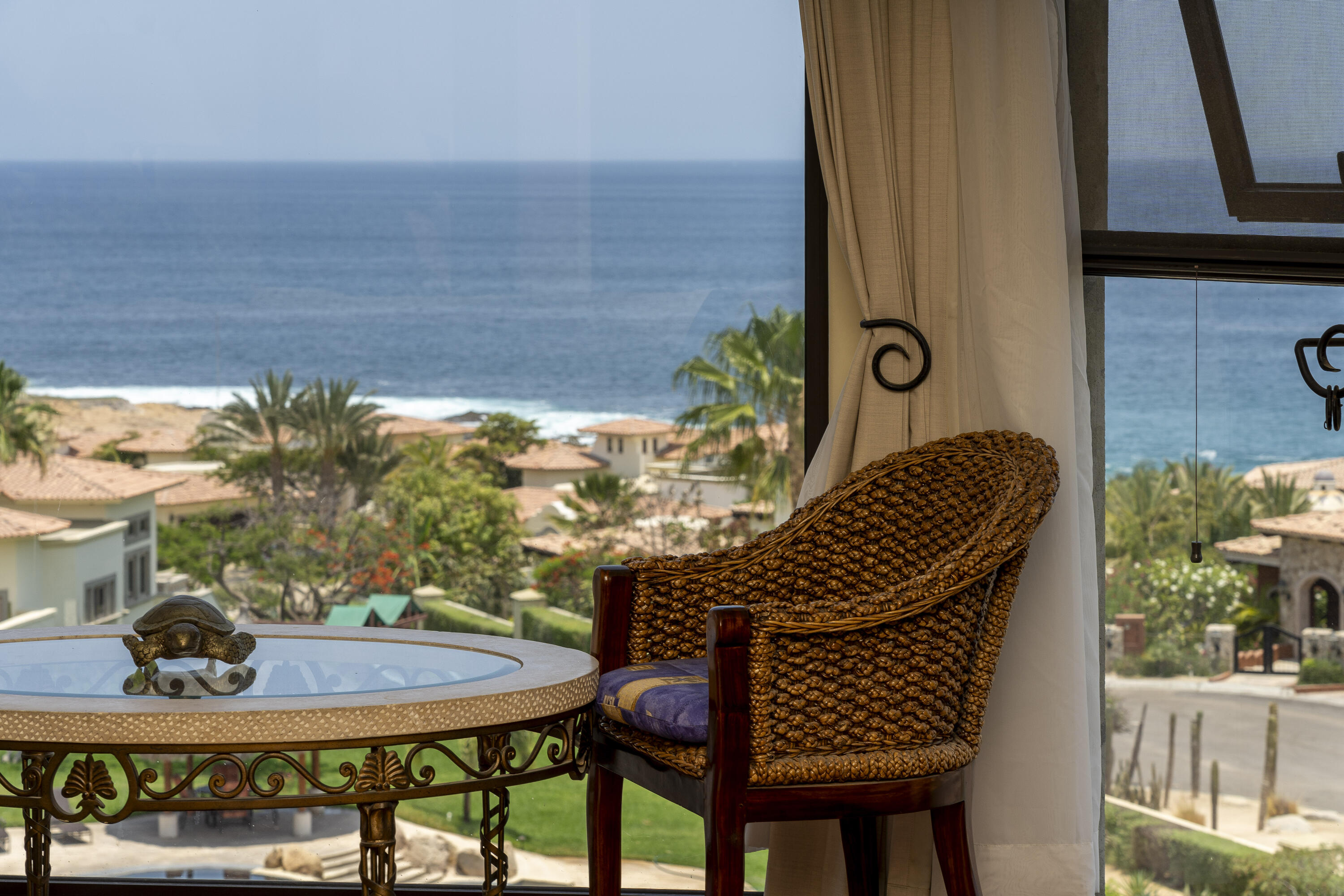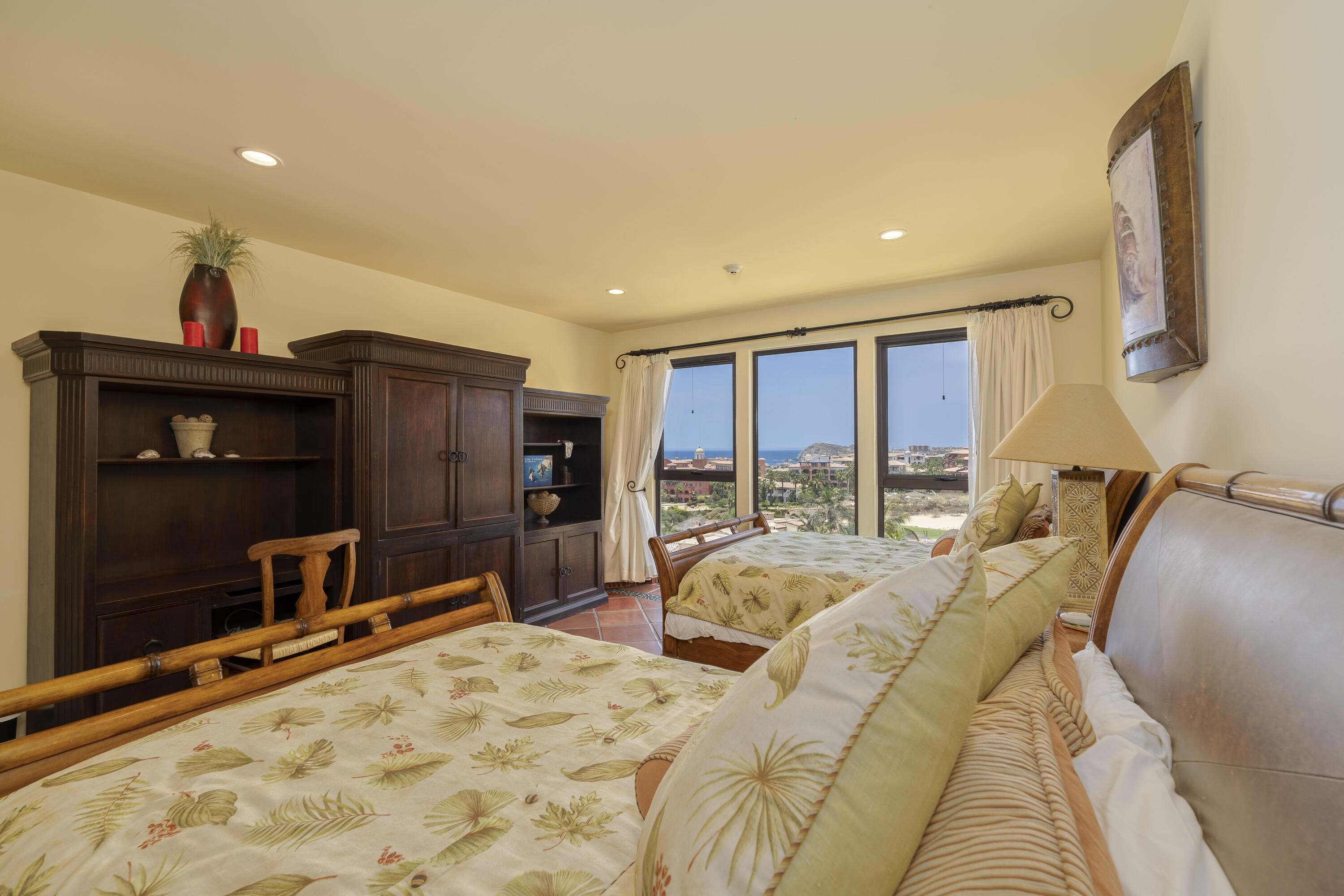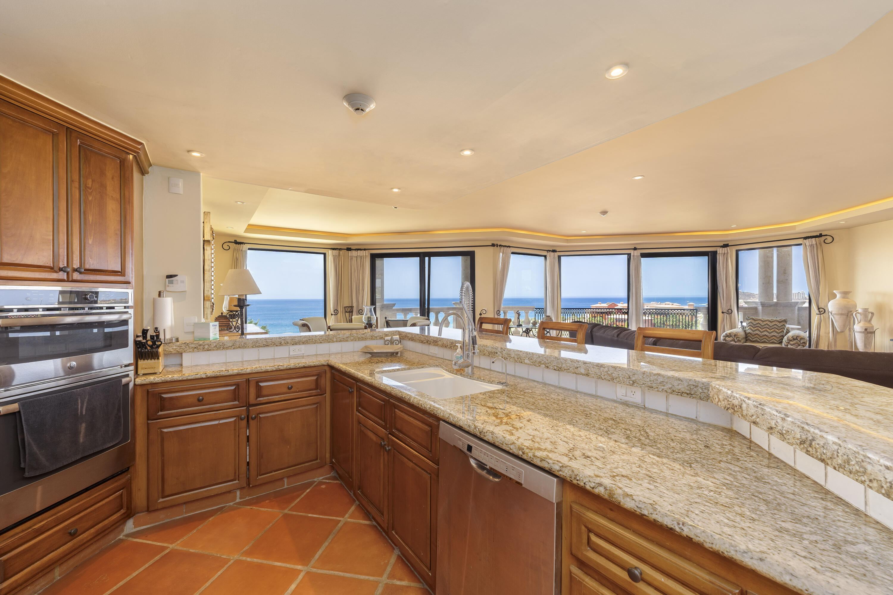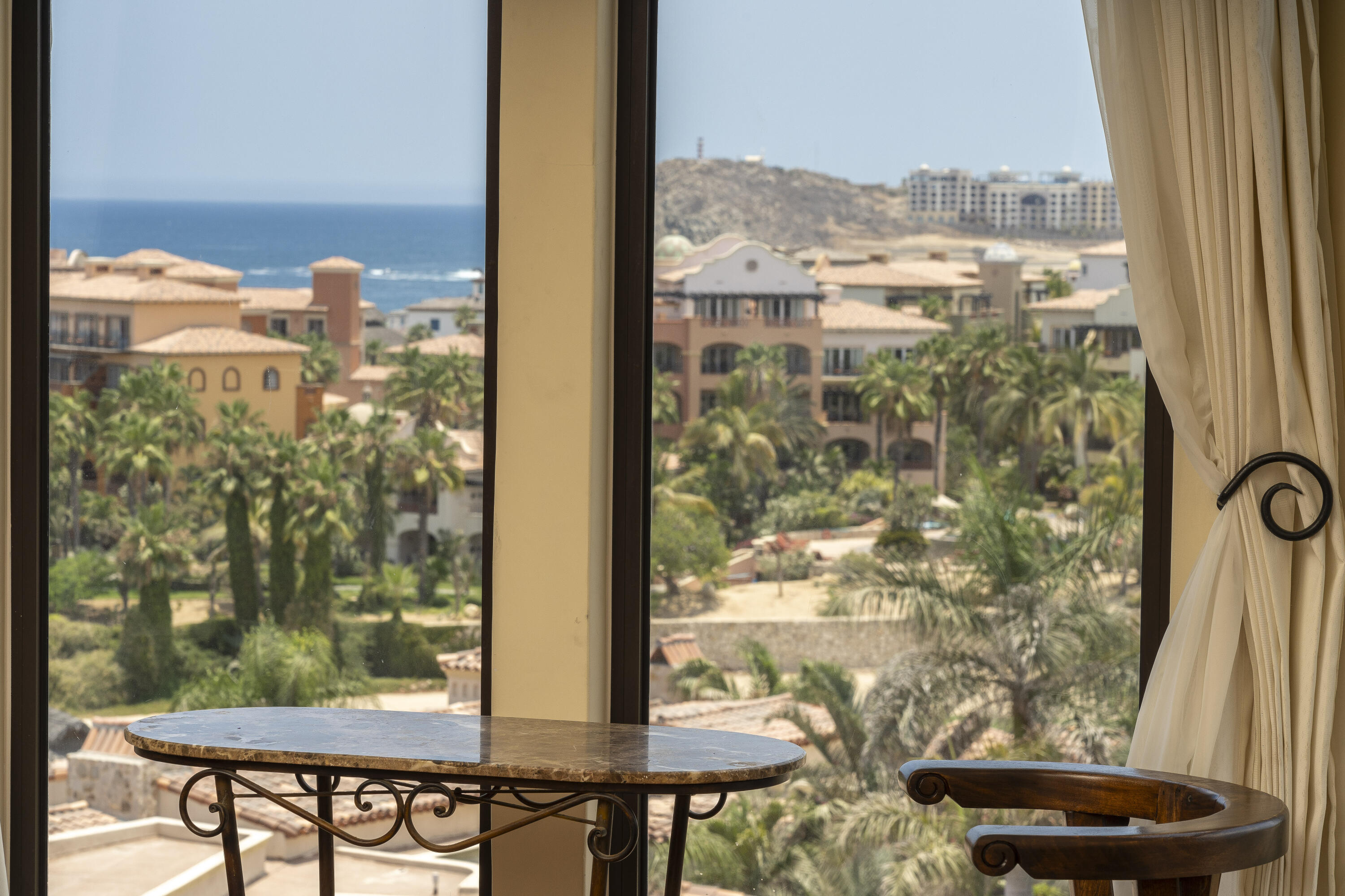This Lovely 3 Bedroom ocean view home is located in Puerta Del Sol, near the Four Seasons, in the stunning golf resort town of Cabo Del Sol.There are three master suites on this property, each with spacious bathroom and you’ll adore the living room and the vista from the large terrace that overlooks the ocean with BBQ and a jacuzzi.There is a fitness facility, a business center and various pools.The beach is only a few minutes away.This condominium is turn -key and fully furnished with high end furnishings and a single car garage spot assigned to it.This is an excellent full time residence or rental property.