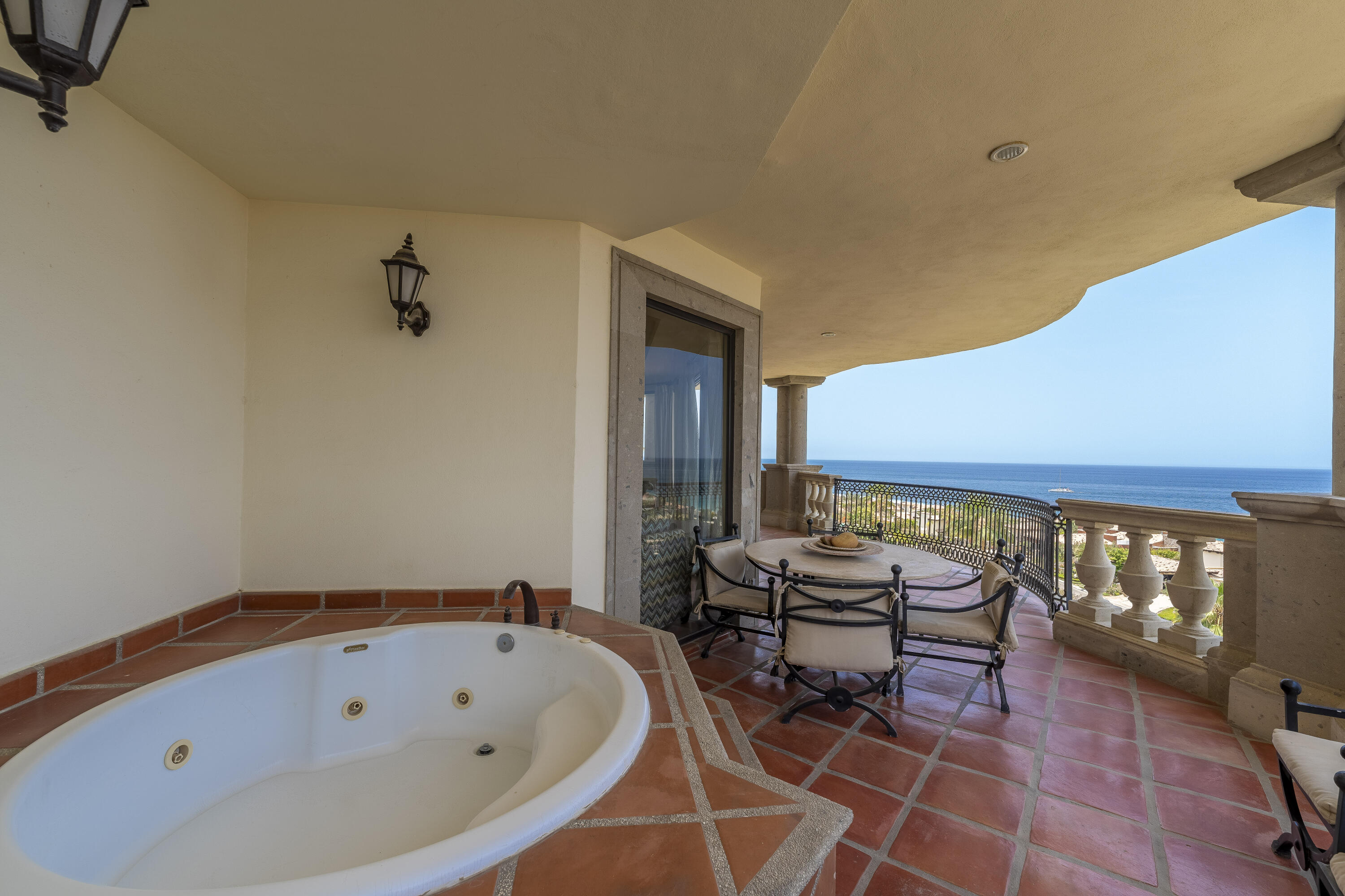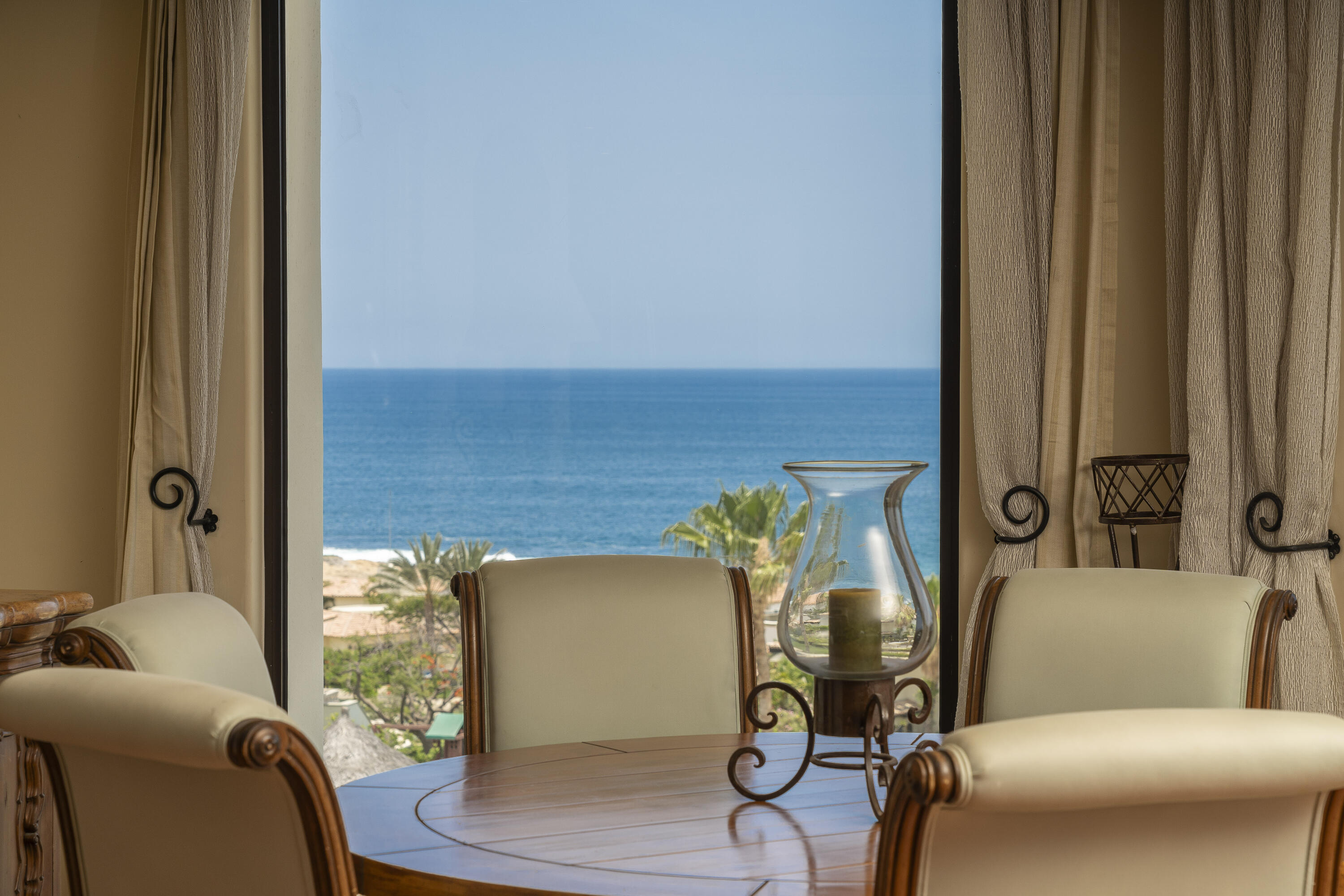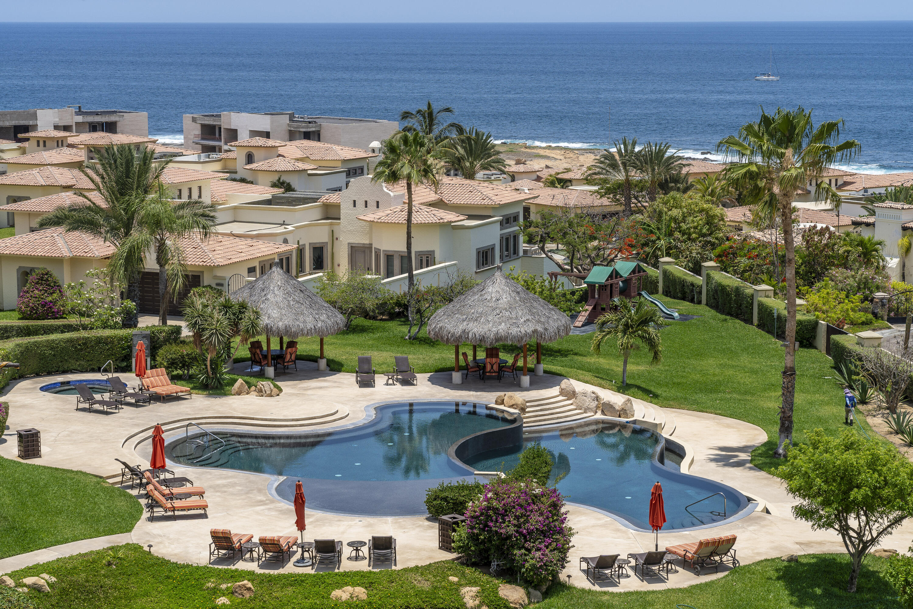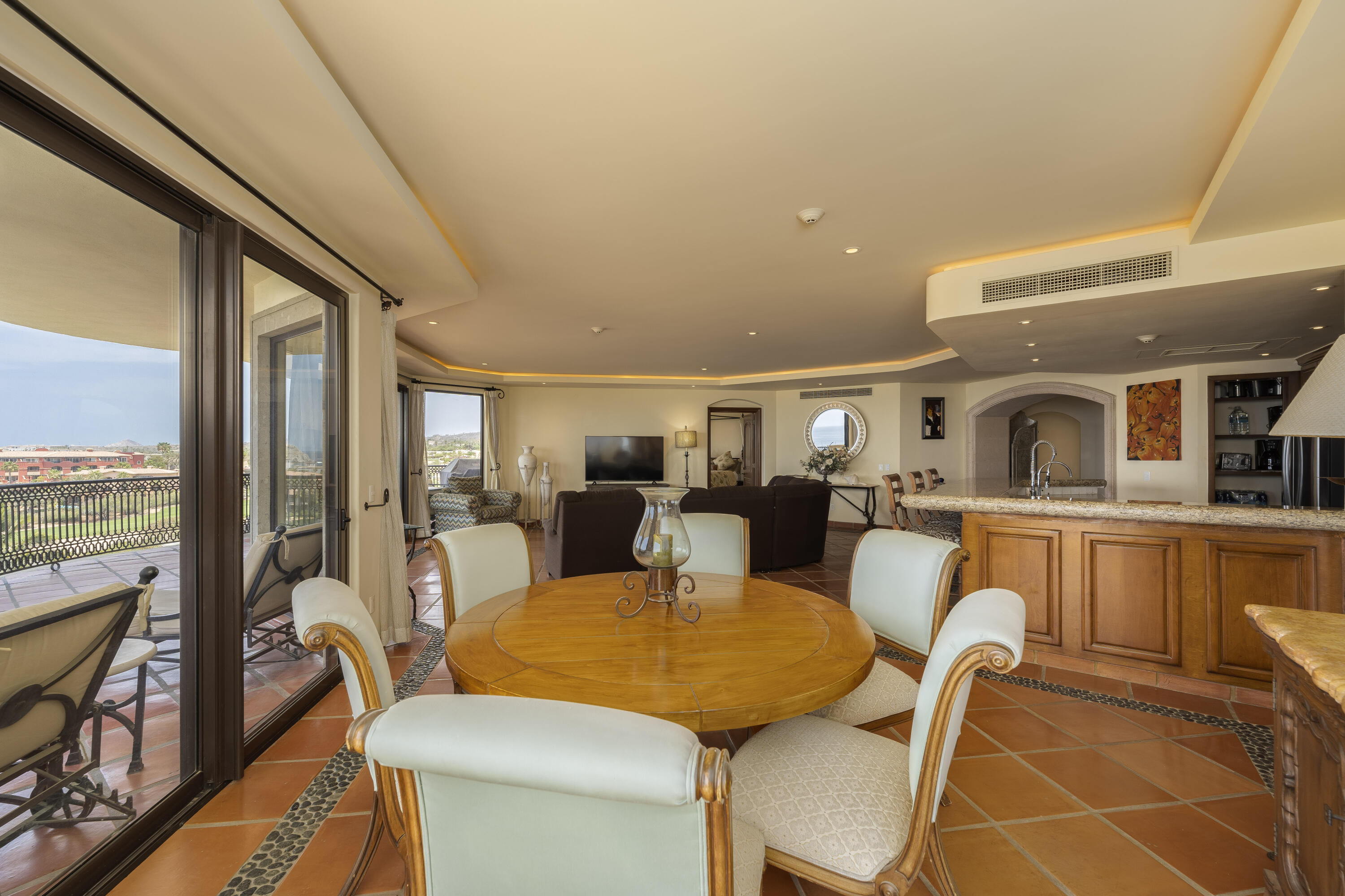 This Lovely 3 Bedroom ocean view home is located in Puerta Del Sol, near the Four Seasons, in the stunning golf resort town of Cabo Del Sol.There are three master suites on this property, each with spacious bathroom and you’ll adore the living room and the vista from the large terrace that overlooks the ocean with BBQ and a jacuzzi.There is a fitness facility, a business center and various pools.The beach is only a few minutes away.This condominium is turn -key and fully furnished with high end furnishings and a single car garage spot assigned to it.This is an excellent full time residence or rental property.