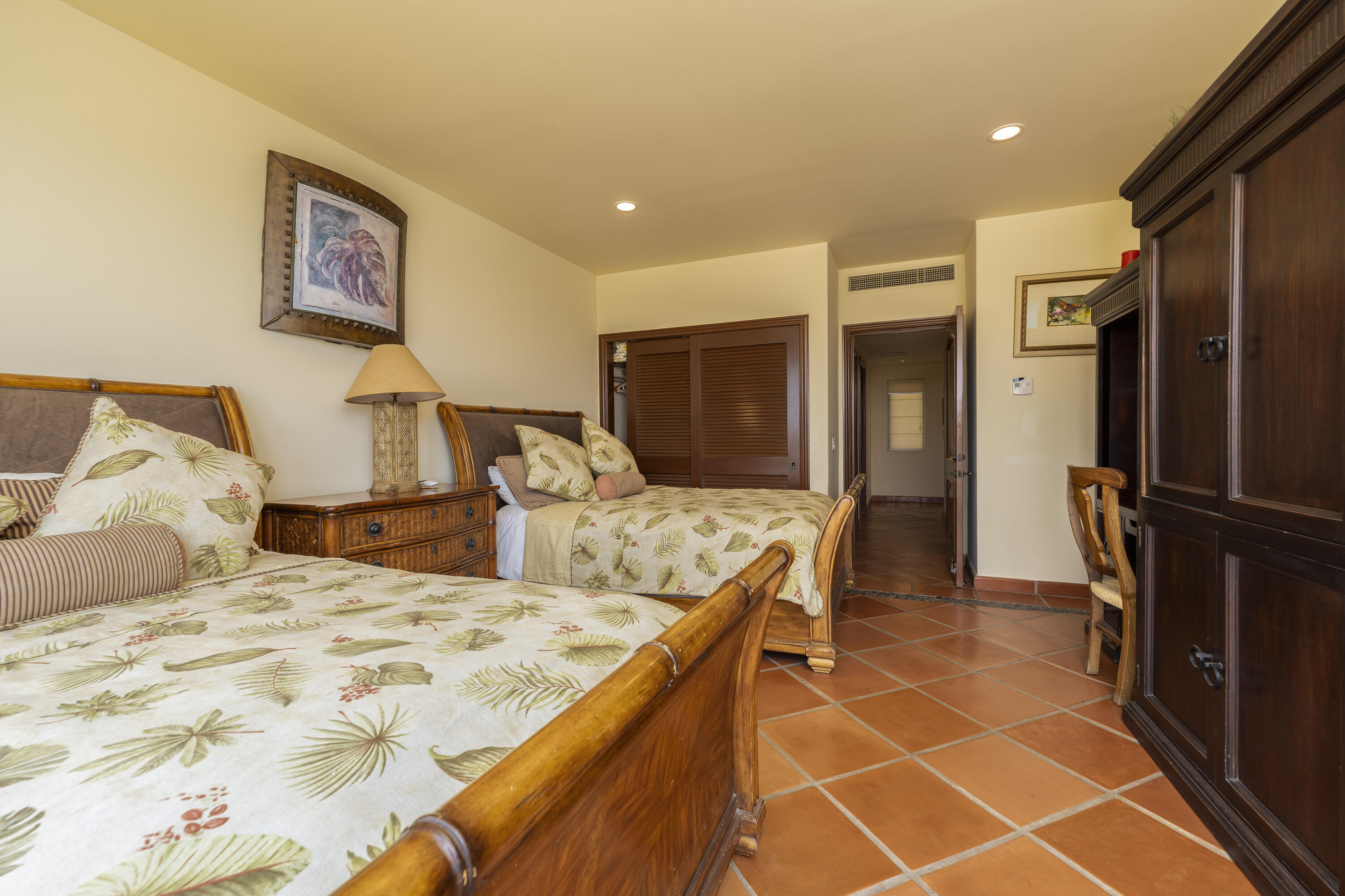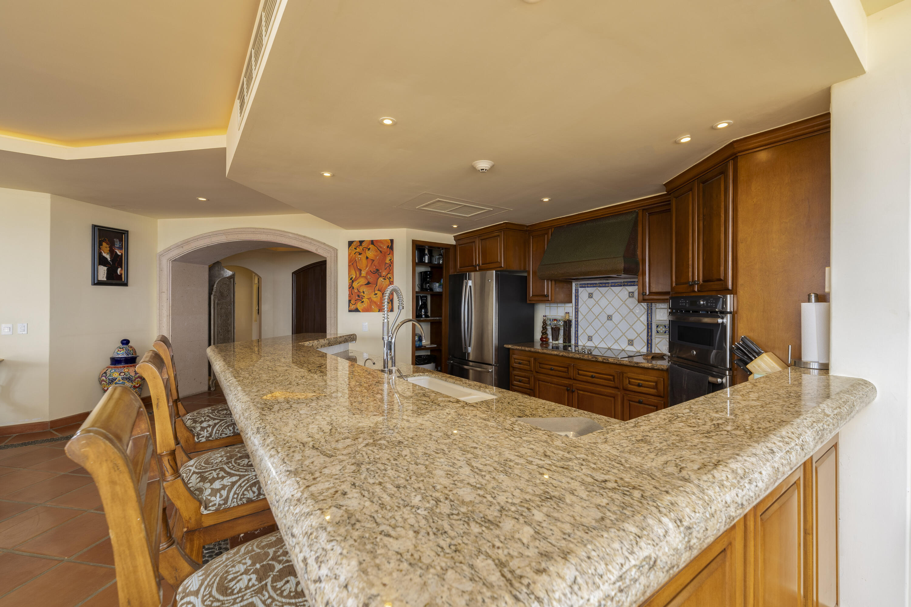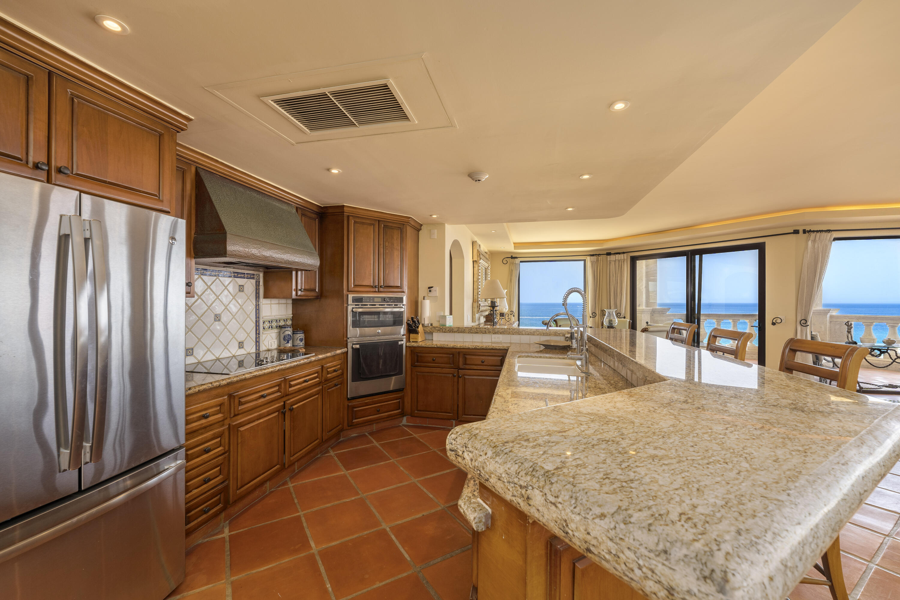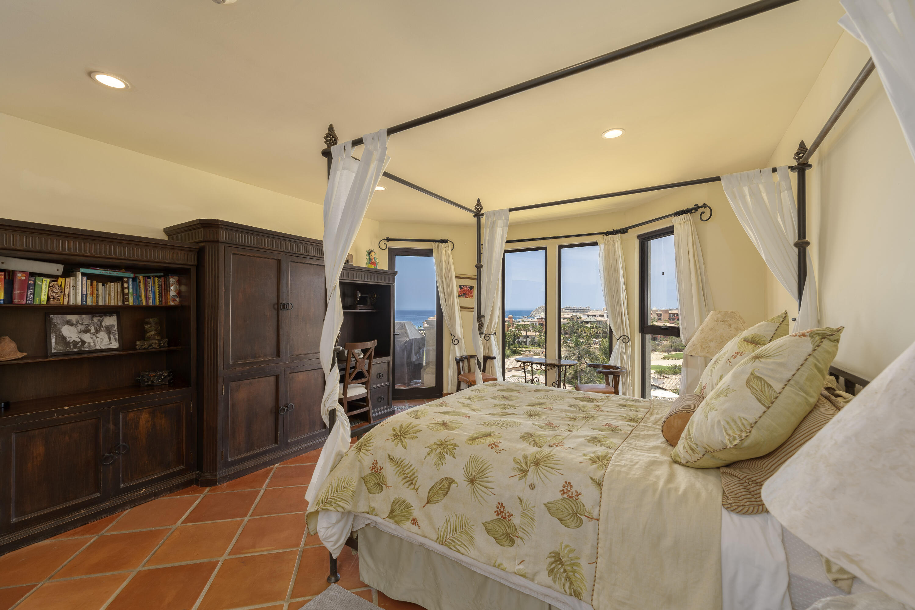 This Lovely 3 Bedroom ocean view home is located in Puerta Del Sol, near the Four Seasons, in the stunning golf resort town of Cabo Del Sol.There are three master suites on this property, each with spacious bathroom and you’ll adore the living room and the vista from the large terrace that overlooks the ocean with BBQ and a jacuzzi.There is a fitness facility, a business center and various pools.The beach is only a few minutes away.This condominium is turn -key and fully furnished with high end furnishings and a single car garage spot assigned to it.This is an excellent full time residence or rental property.