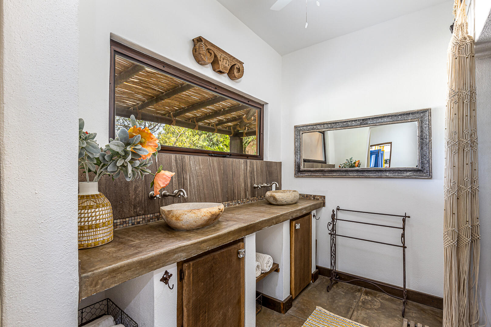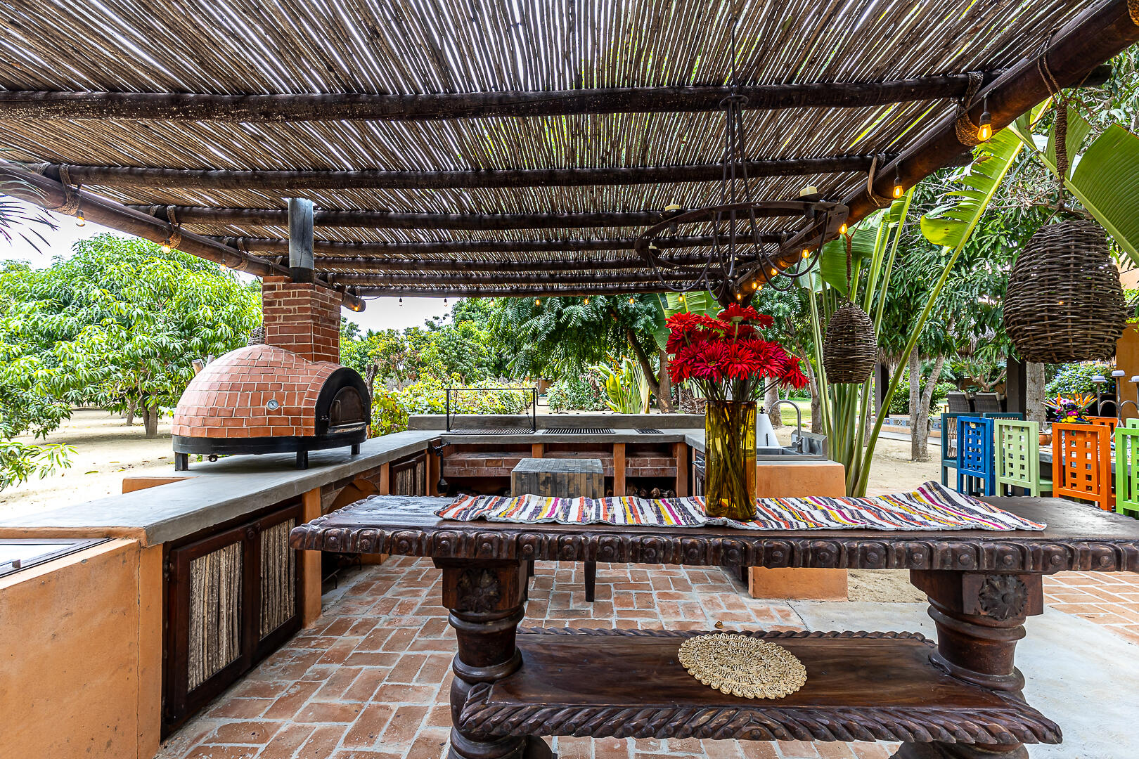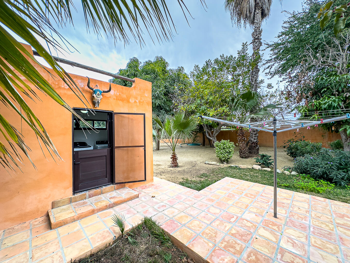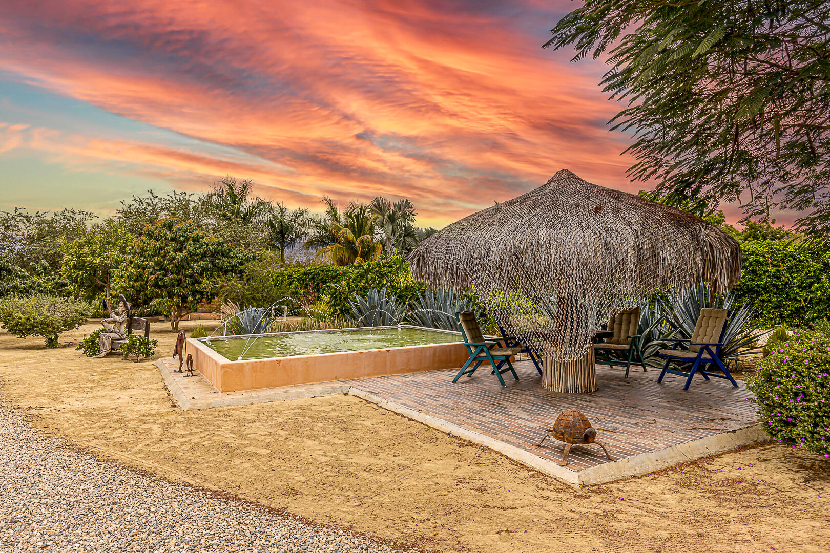 Your Farm Retreat! Discover the charm and versatility of Rancho Sirah, a newly built 2-bedroom farmhouse-style home set on a 3-acre organic farm in the East Cape. The spacious residence features an inviting wrap-around porch, open-concept kitchen, and indoor-outdoor living spaces that flow into a vibrant garden and expansive lawn. Ideal for entertaining, the property boasts a long dining table seating 48, an outdoor kitchen with pizza oven and palapa bar, and a romantic outdoor bathtub. Surrounded by hundreds of avocado, mango, fig, lychee, and citrus trees, this property offers a rare blend of serene country living and lucrative income potential.