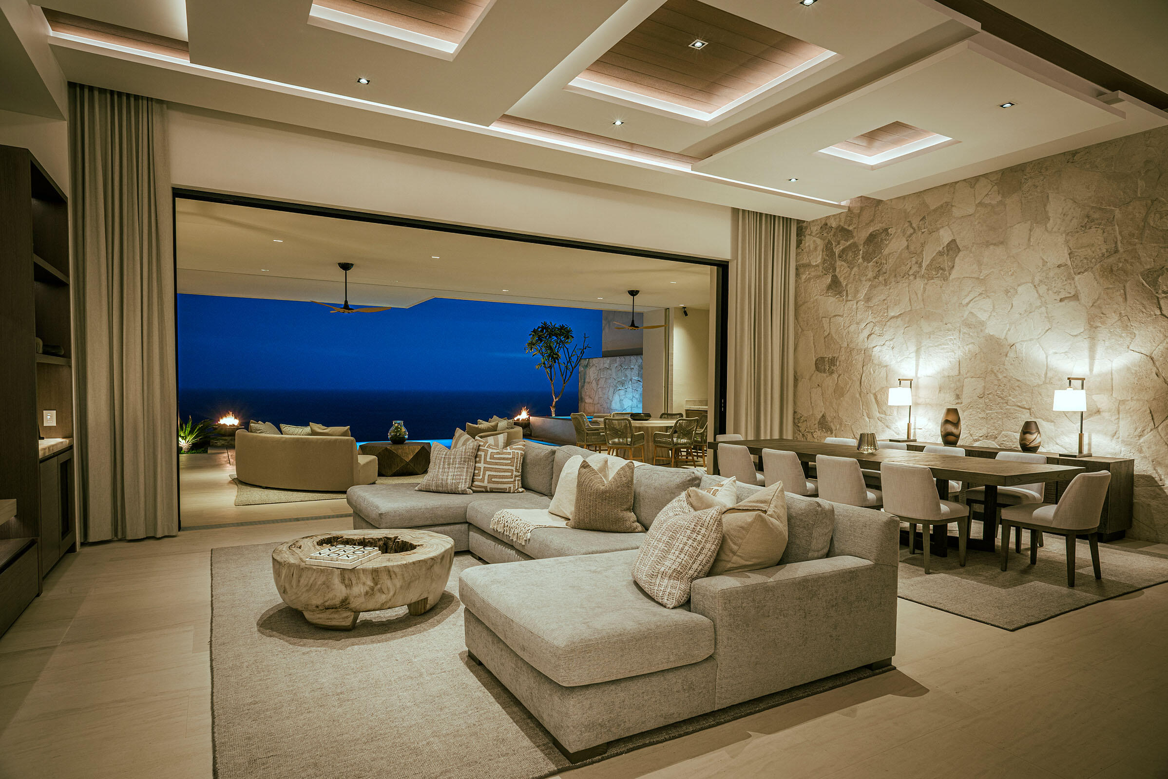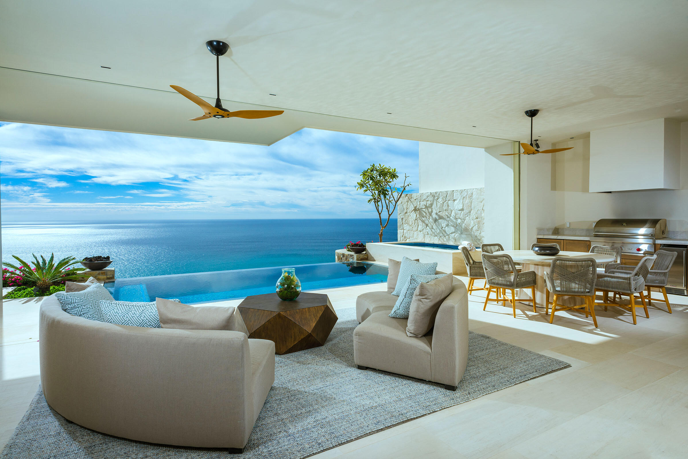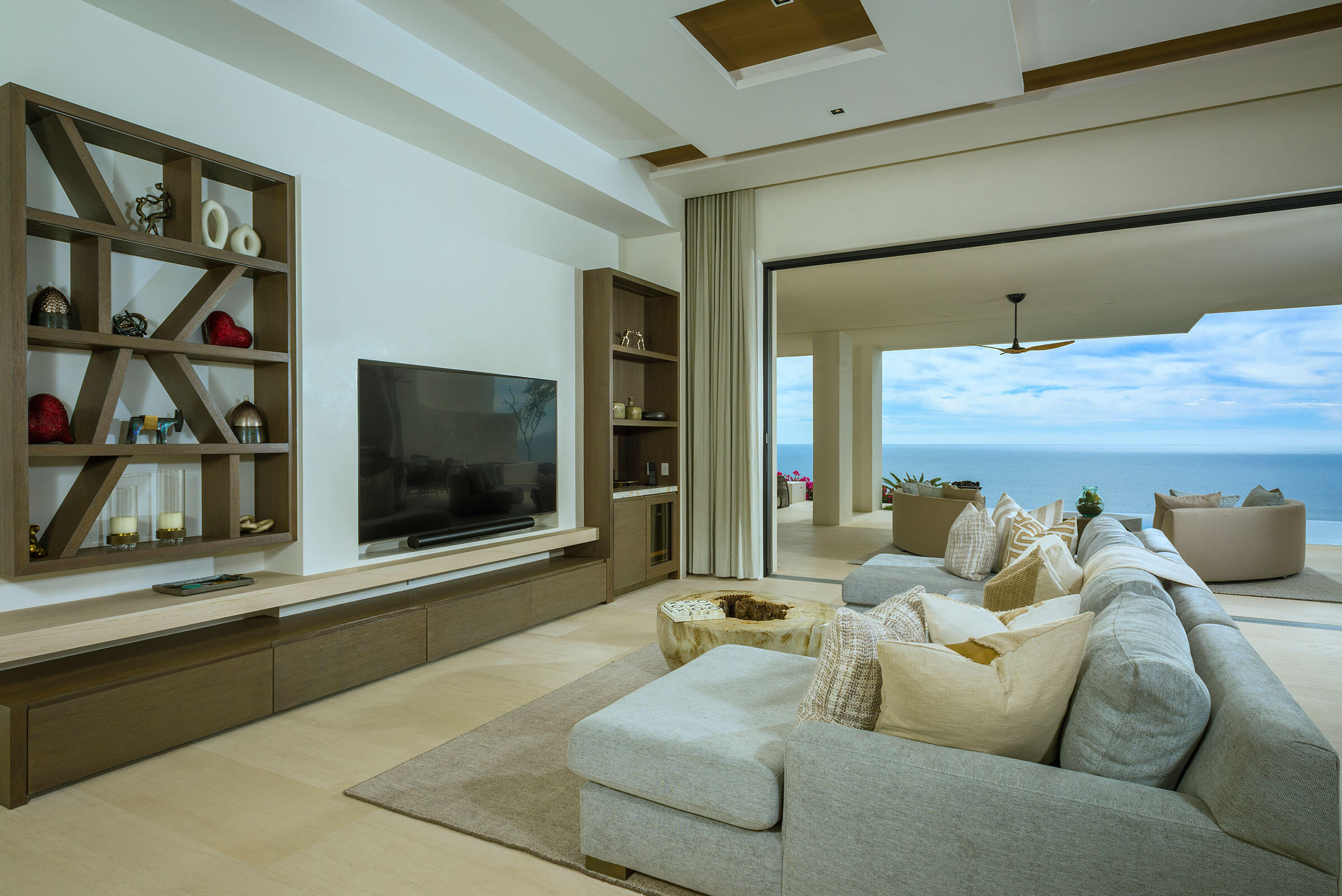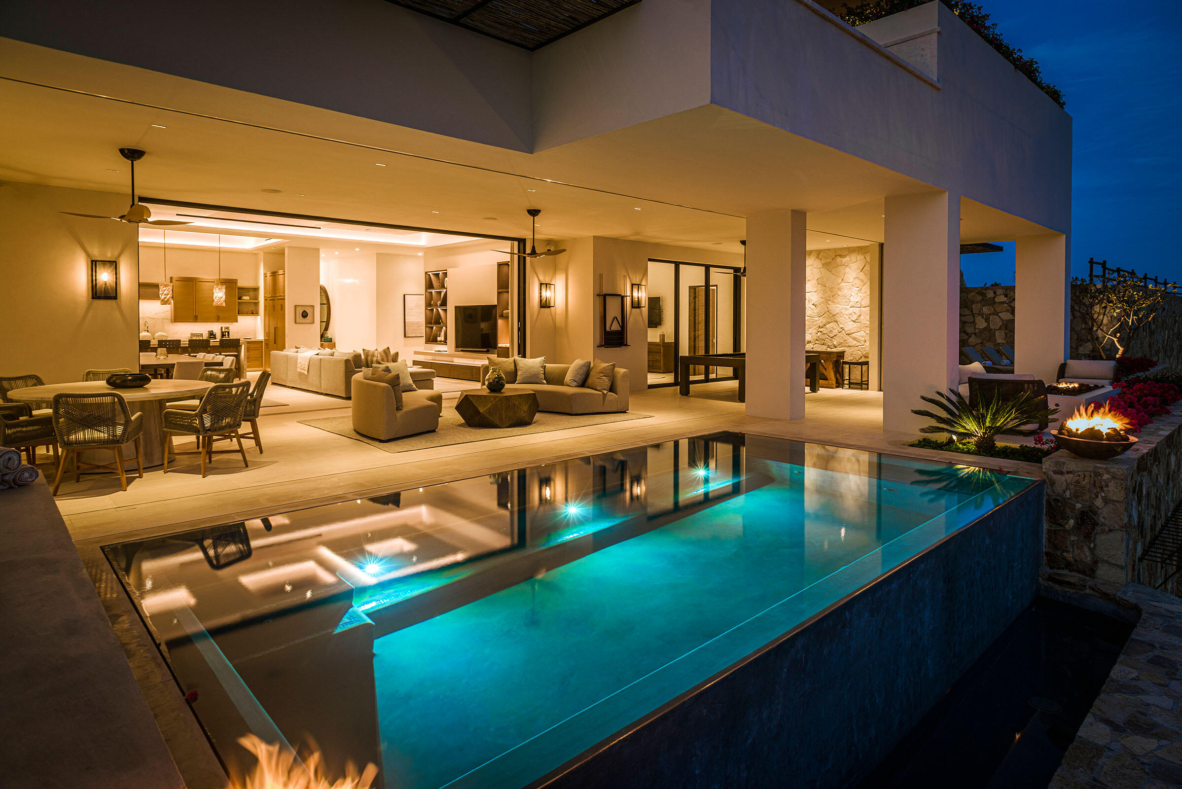 Nestled along the beach and carved into the hillside, offering outstanding views.This 5 bedroom, 5.5 bath home affords generous proportions at over 4,000 square feet of indoor living space and designed in a single-story layout.All the quality of Villas Del Mar craftsmanship and finishes are showcased, including built-in top notched appliances, a cozy fire pit, infinity edge pool with hot tub and a basketball court.