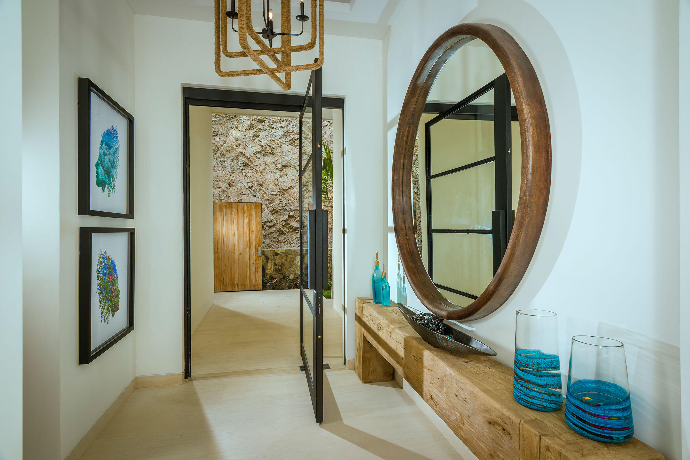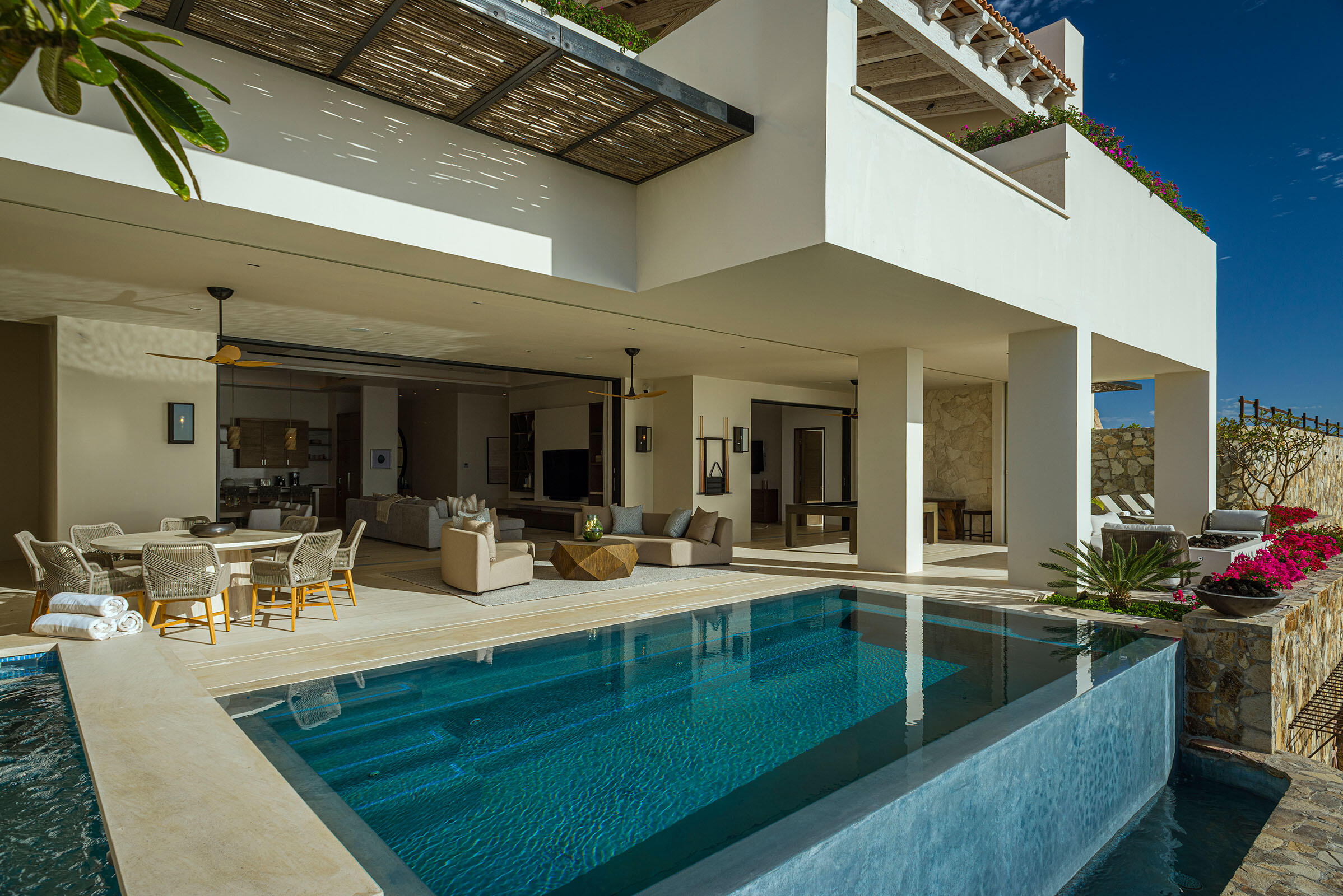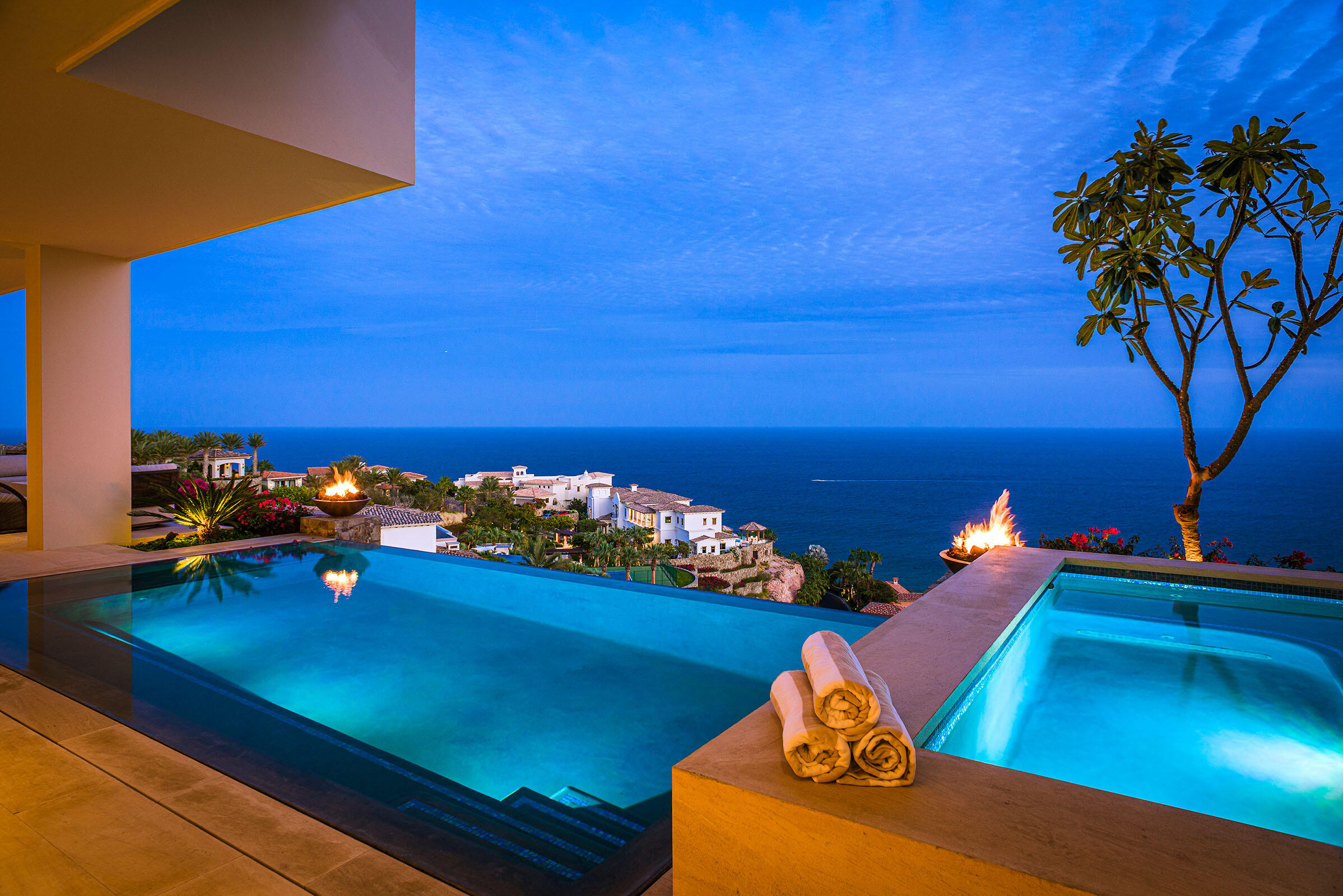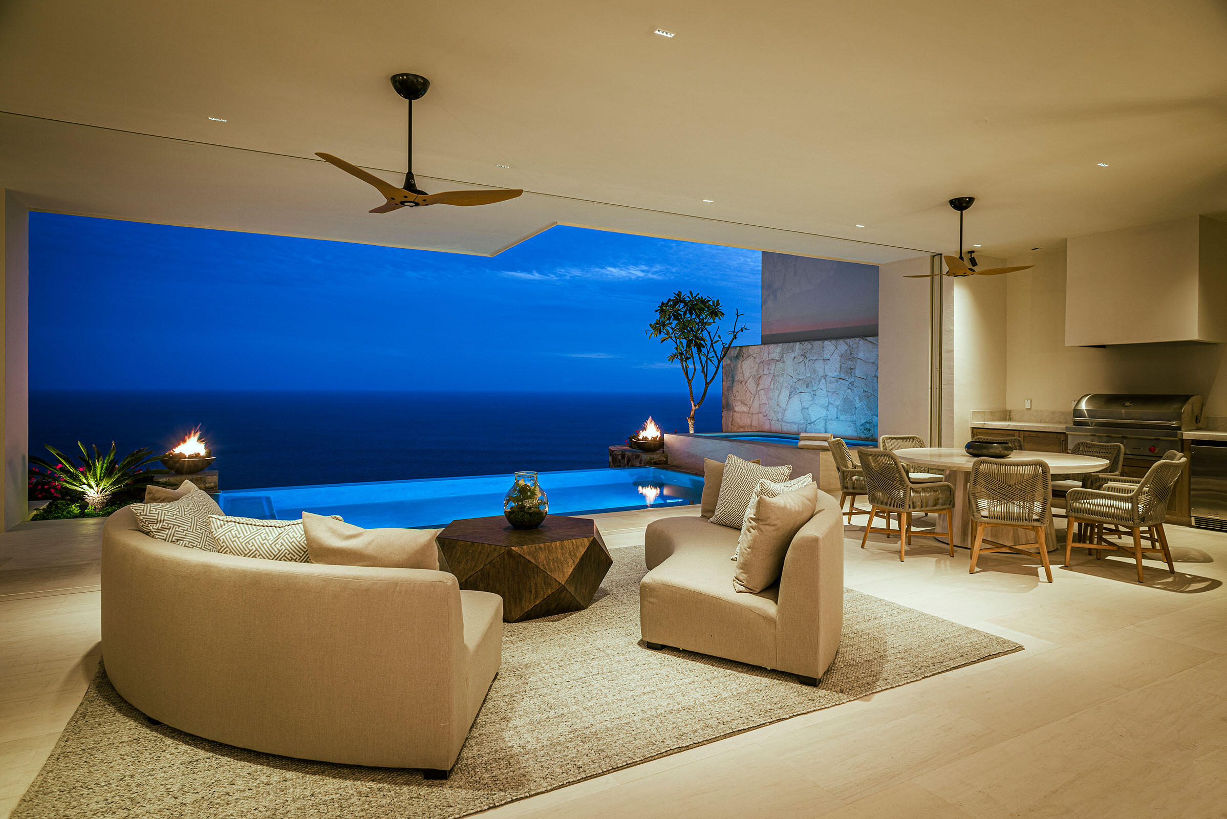 Nestled along the beach and carved into the hillside, offering outstanding views.This 5 bedroom, 5.5 bath home affords generous proportions at over 4,000 square feet of indoor living space and designed in a single-story layout.All the quality of Villas Del Mar craftsmanship and finishes are showcased, including built-in top notched appliances, a cozy fire pit, infinity edge pool with hot tub and a basketball court.