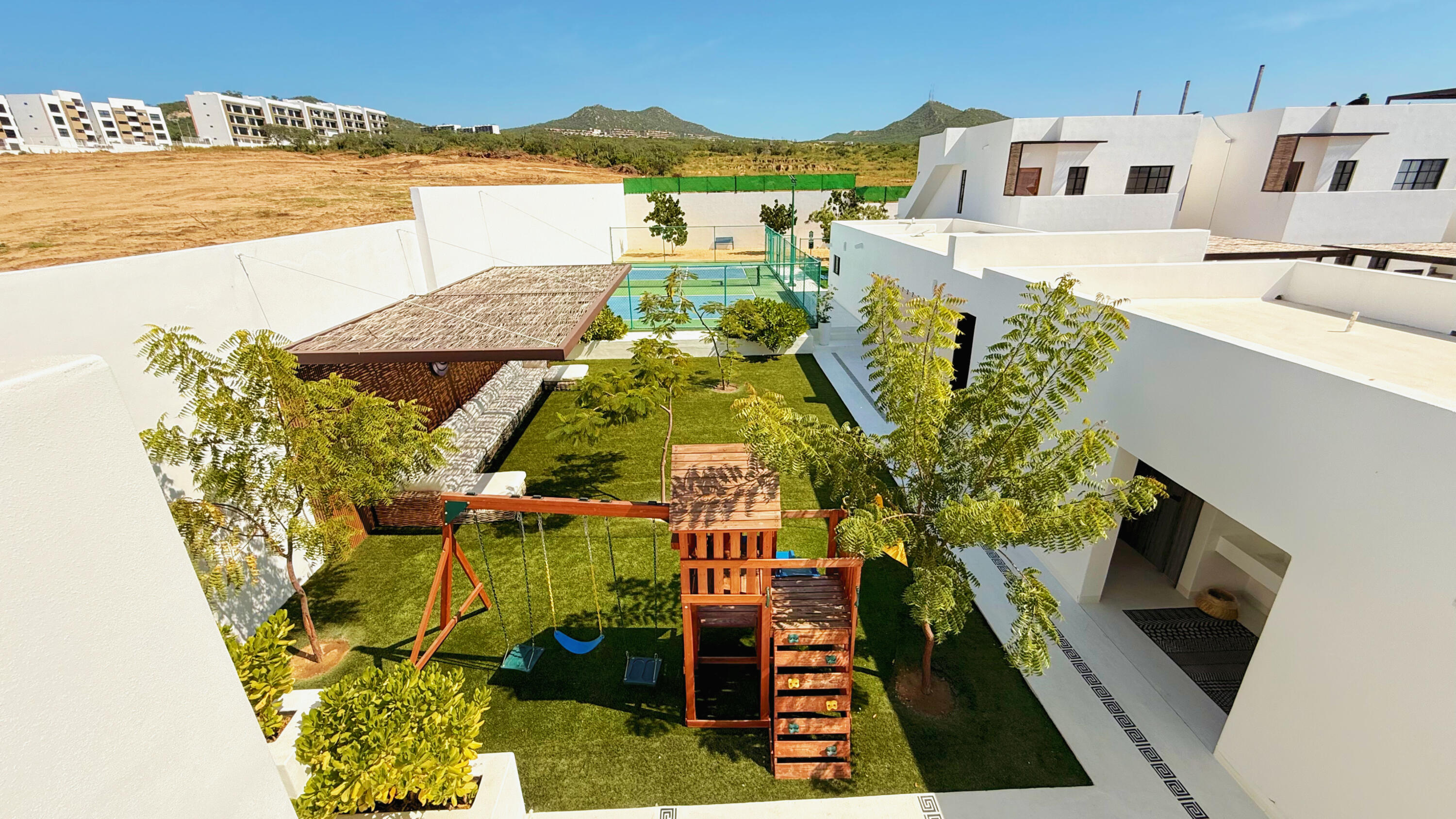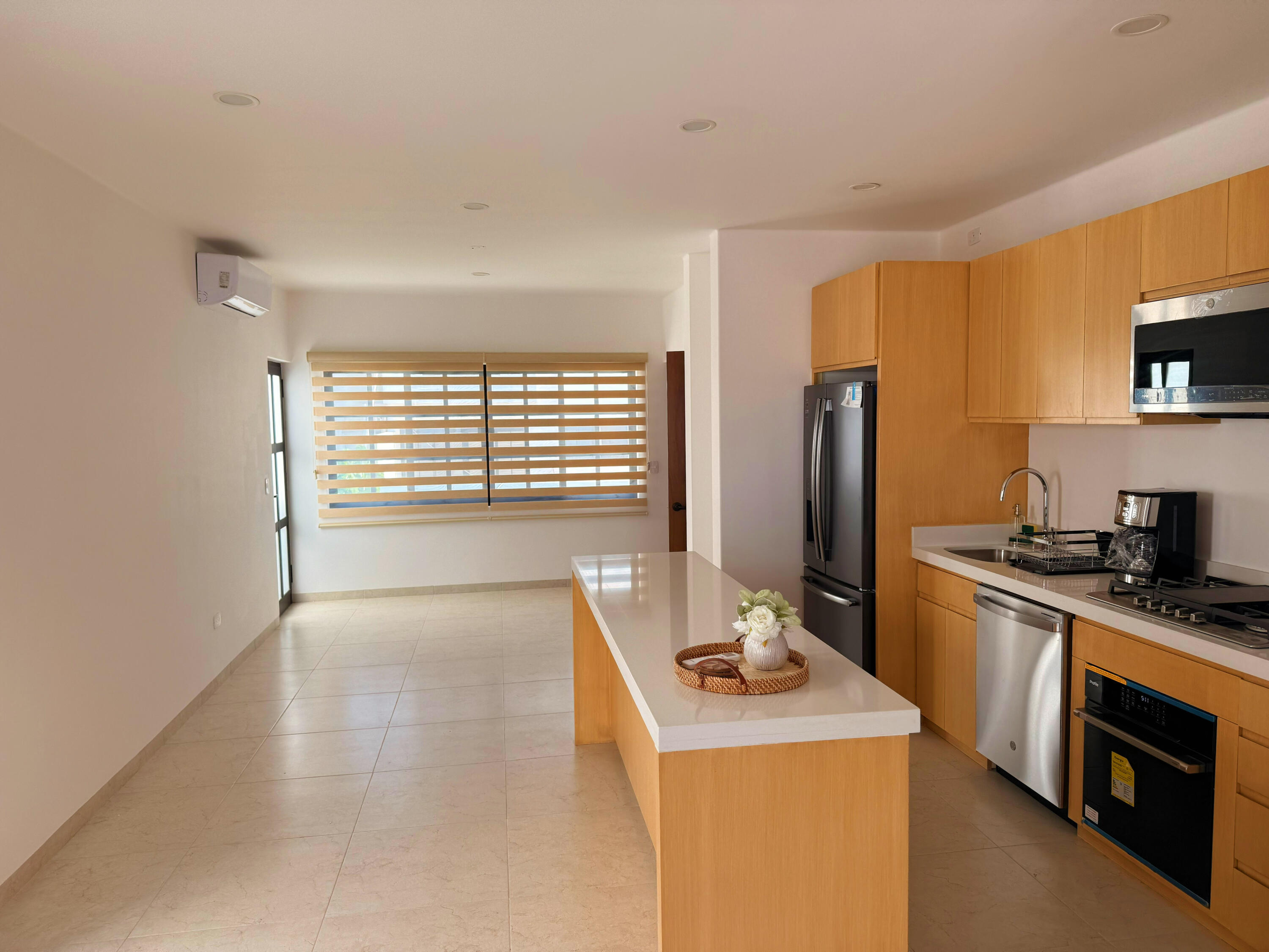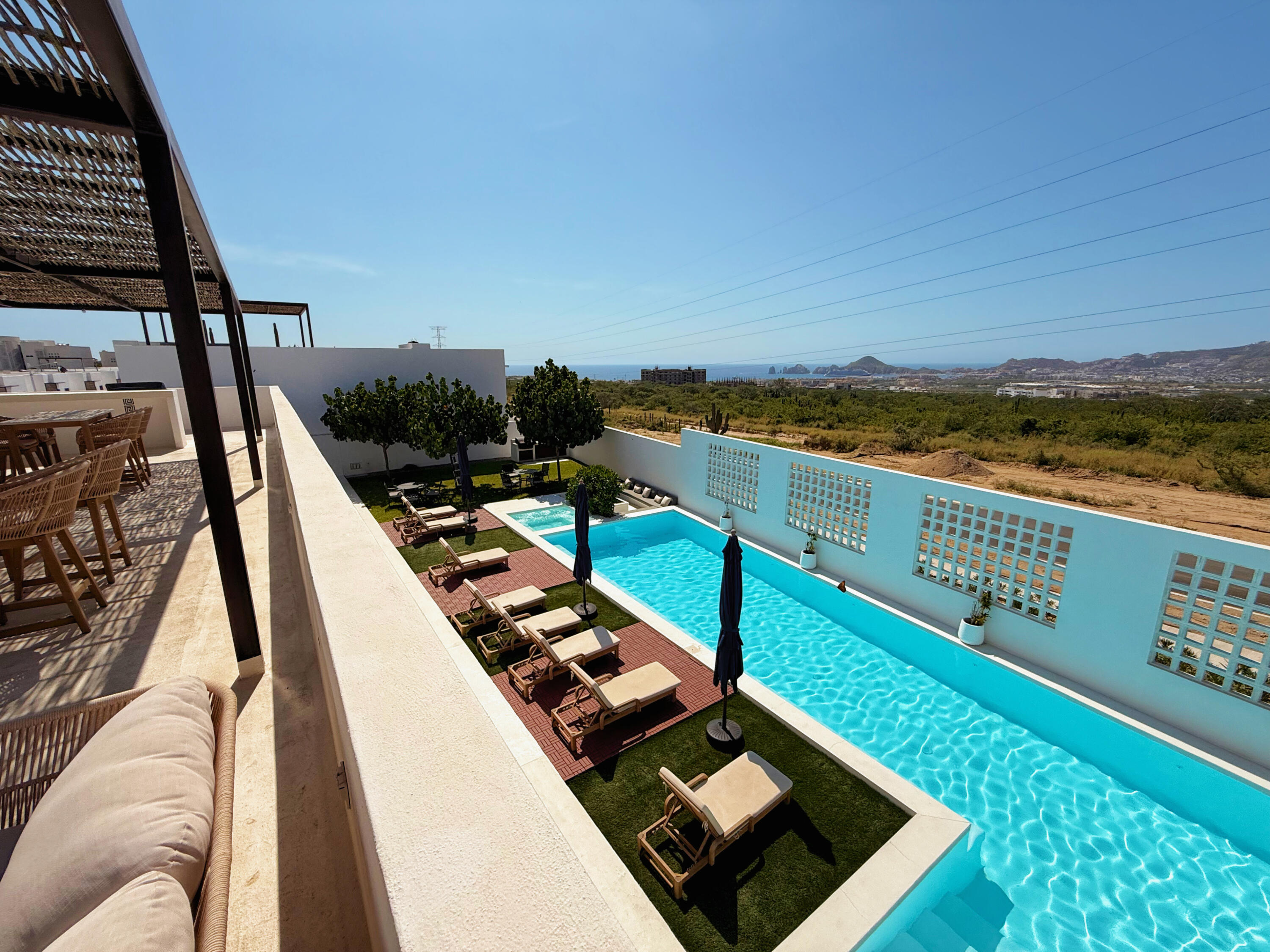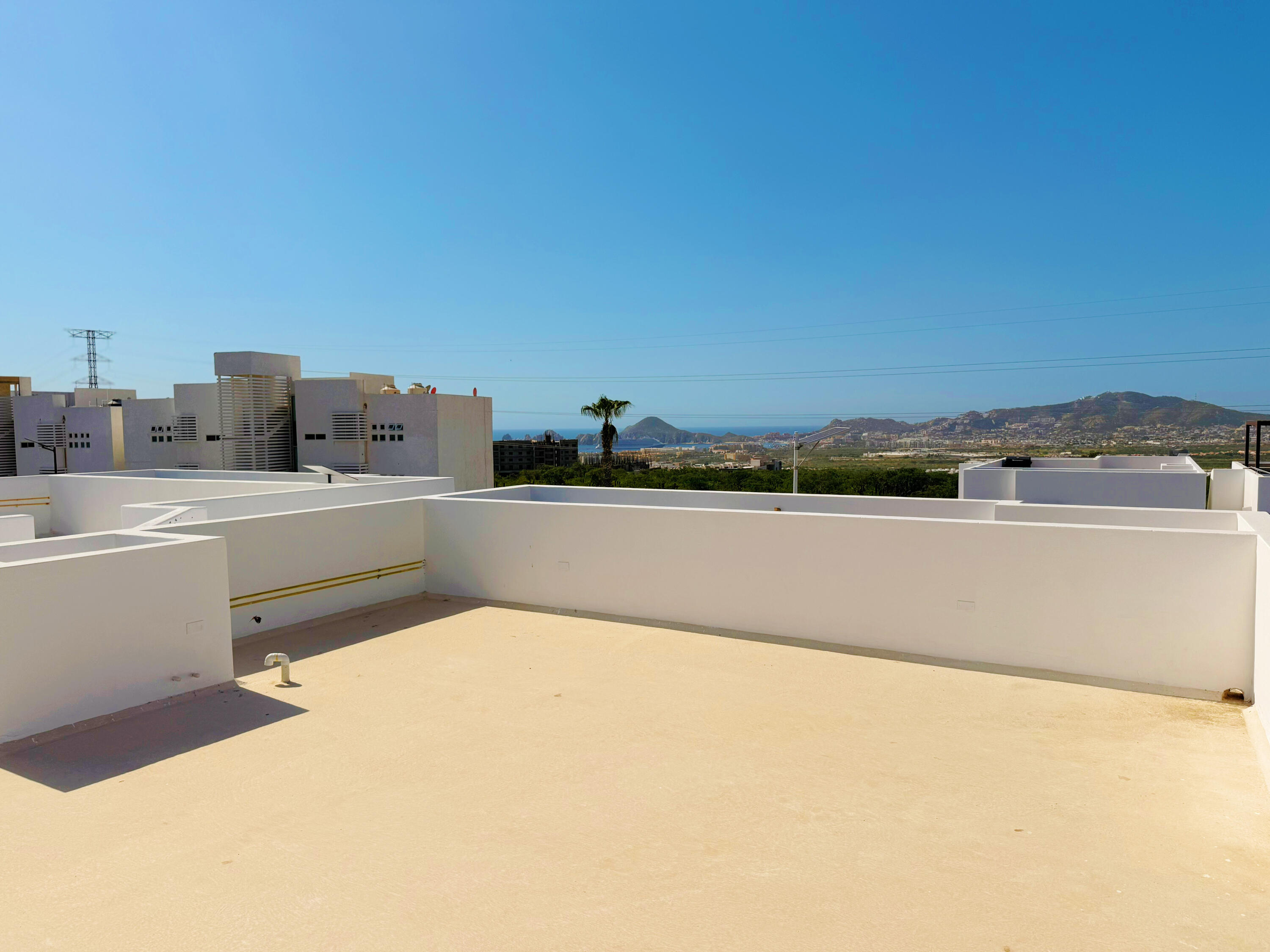 Experience Mediterranean-inspired luxury in this enchanting 2-bed, 2-bath Positano Penthouse. With 86 m of thoughtfully designed interior space and direct access to a private 60 m rooftop terrace, enjoy sweeping ocean, sunset, and city views perfect for intimate evenings or lively entertaining. Thoughtfully appointed with upgraded carpentry and appliance package: custom closets, vanities, kitchen cabinetry, range, microwave, oven, dishwasher, refrigerator, washer & dryer, plus window blinds. Comfort is ensured with mini-split A/C units throughout. Set within a secure, gated community offering outstanding amenities, this brand-new model home blends contemporary Mediterranean charm with modern convenience. Ready to show — a truly captivating Cabo residence.
