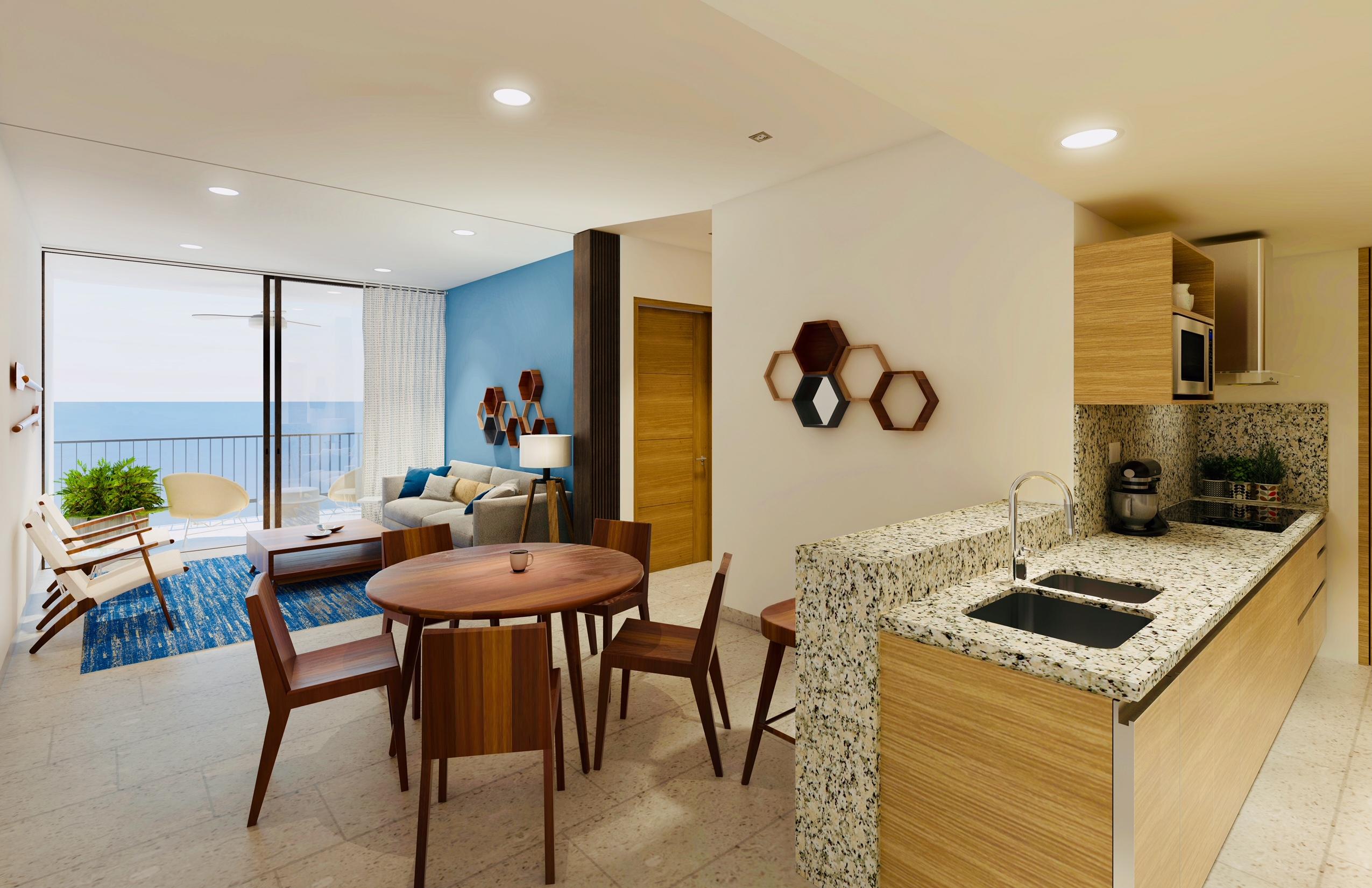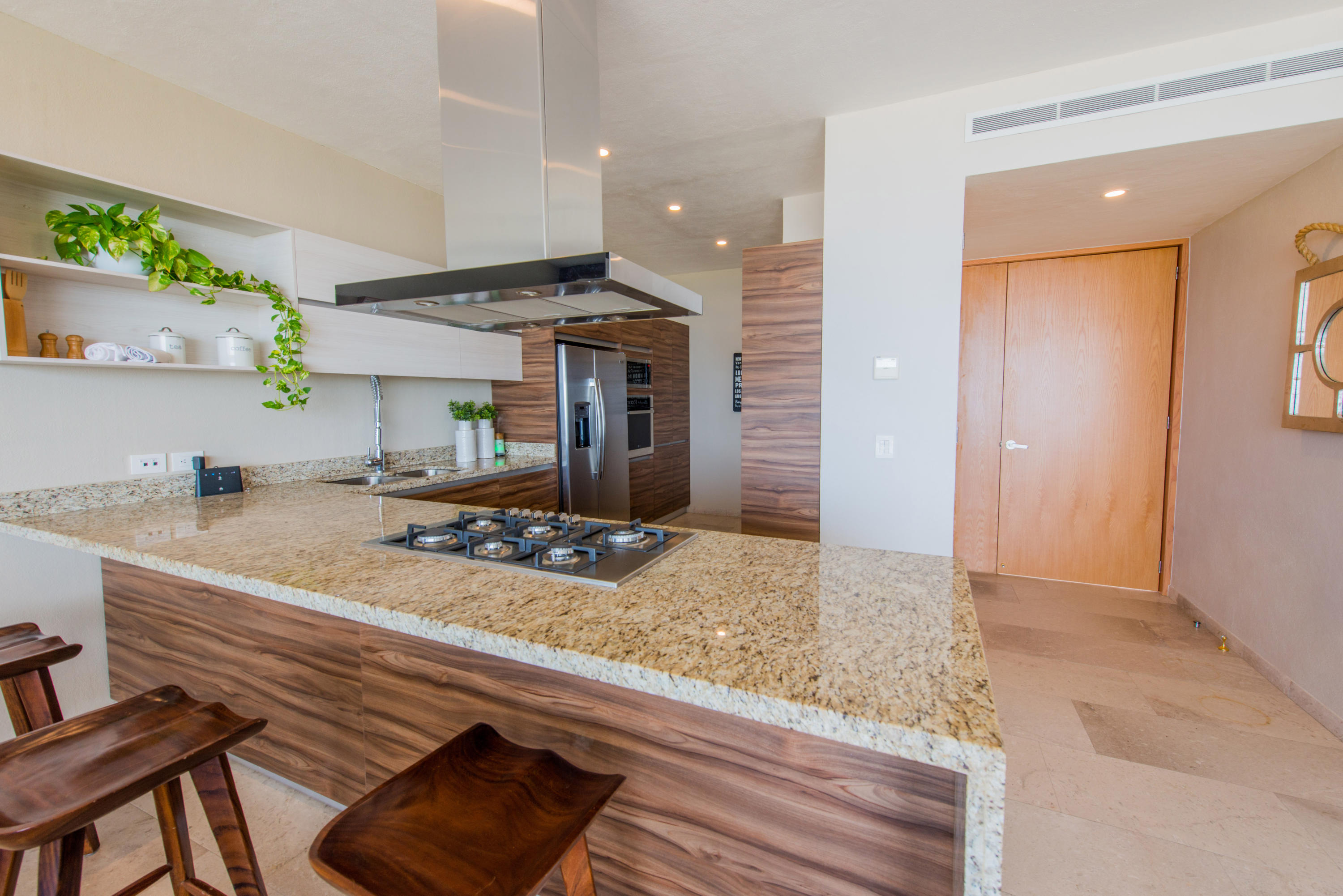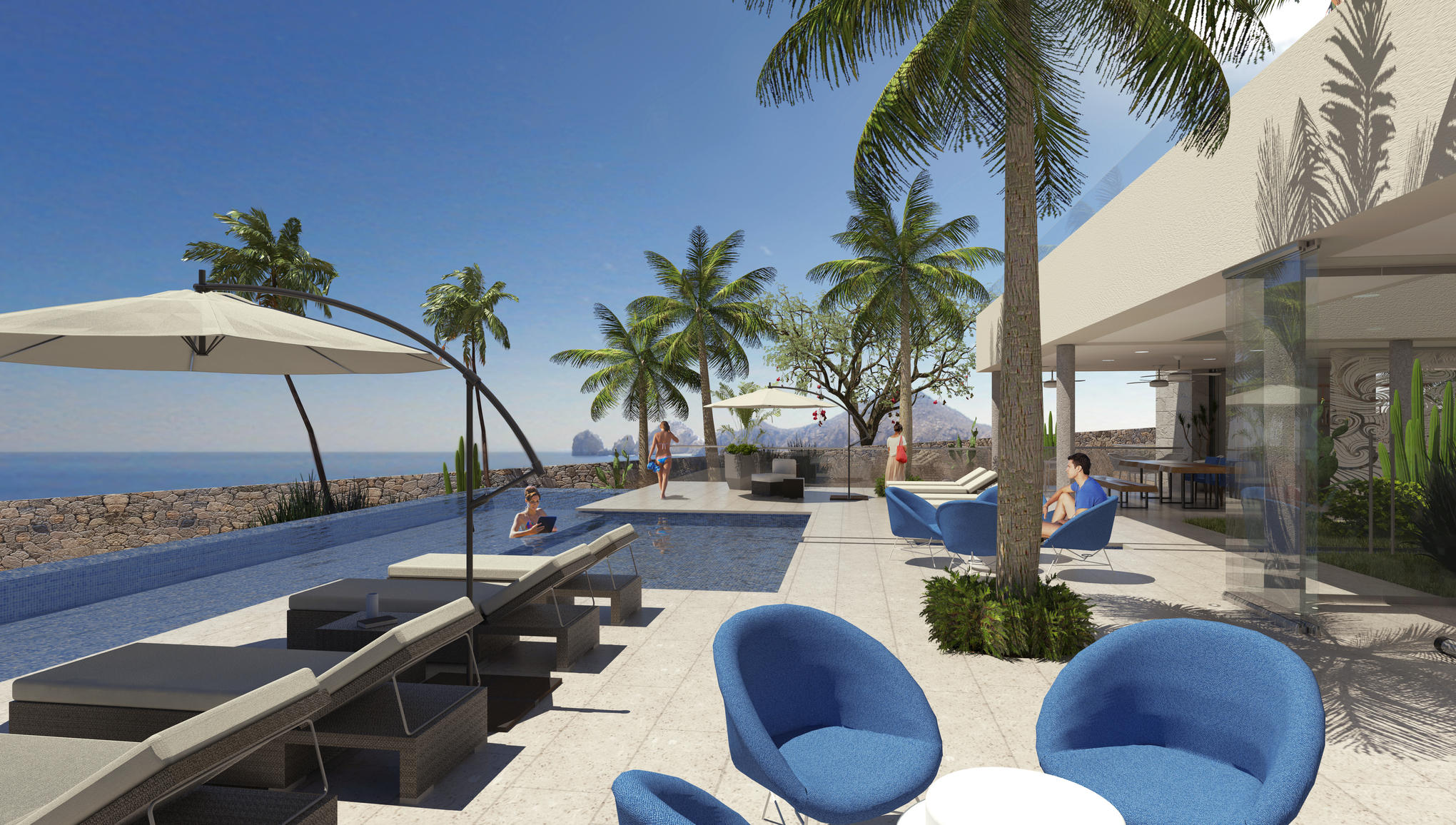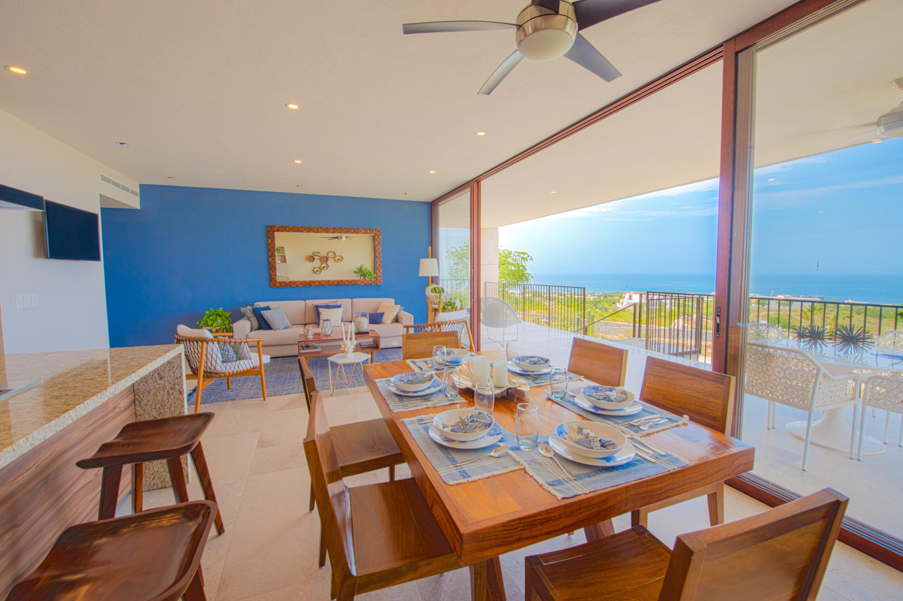 Solaria is a unique, high end condominium development in Cabo San Lucas with a stunning panoramic view of the Arch, the Pacific ocean and the Sea of Cortez. The design and topography of this gated 7.5 acre parcel ensures permanent views for all levels. With all-inclusive services, onsite concierge, and rental/property management, these condos come with every convenience. This 1 Bed/2 Bath Ground Floor Ocean View condo with a private garden has beautiful granite and marble travertine finishes. All units come fully equipped with GE High-Profile appliances, personal storage unit. This low density pet friendly development offers elevators, underground parking, Tennis (PickleBall) court, kid’s play area with a separate pool, covered common area with grilling and dining locations. The community
