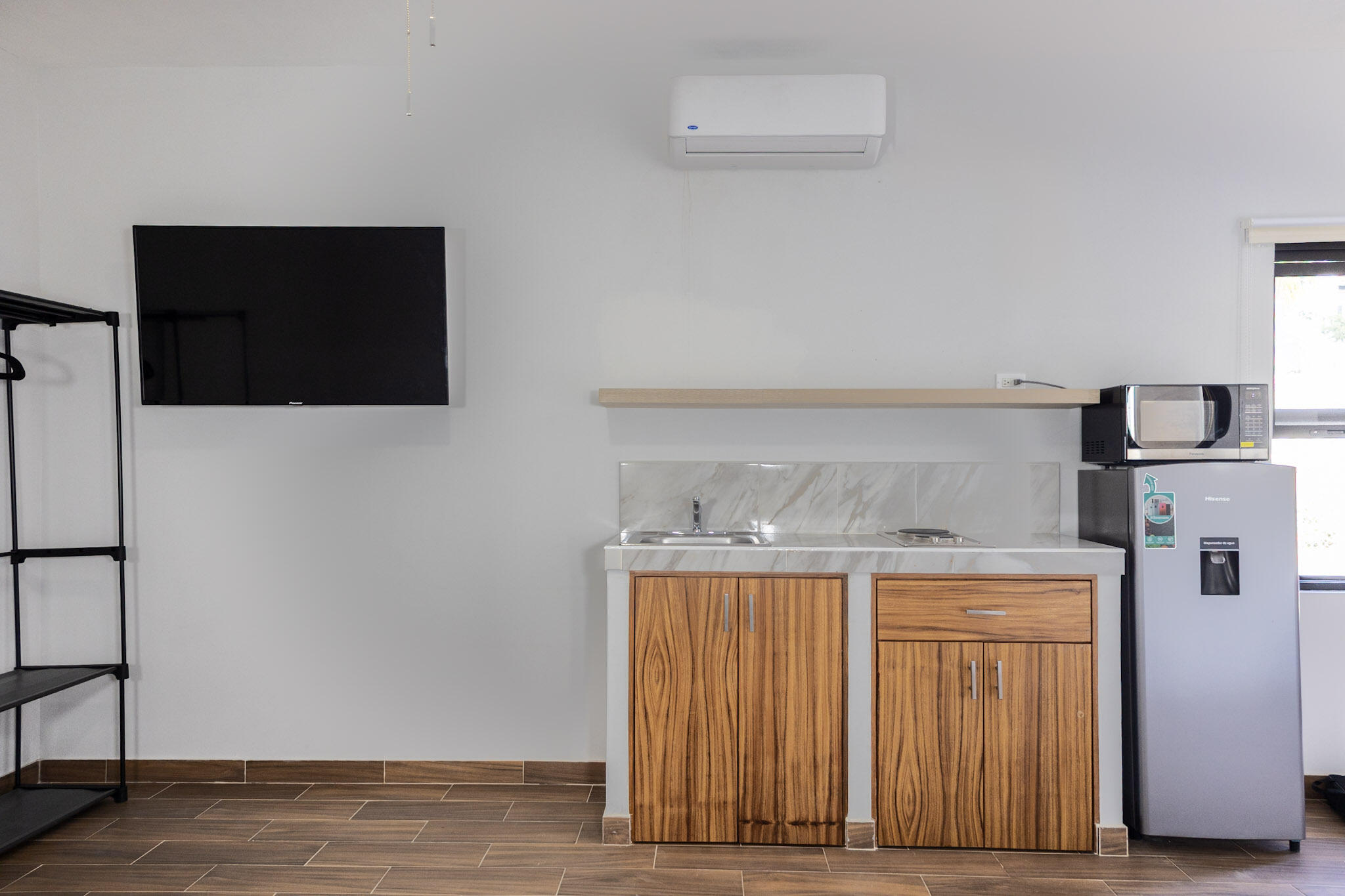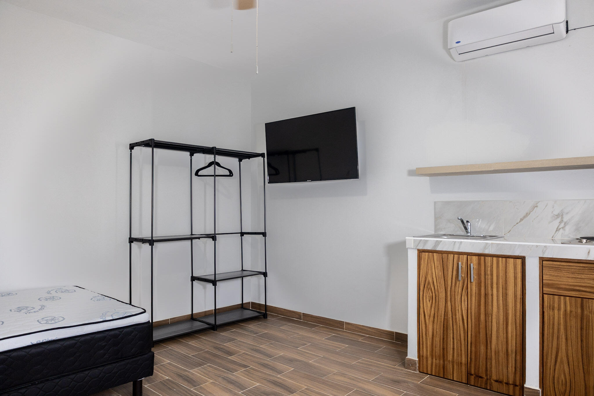 New 2024 construction in El Tezal offering a flexible multi-use layout on a corner lot. Currently arranged as three independent studio units, the property also includes a floor plan designed for a three-bedroom home, giving future owners the option to convert the layout or expand with shared areas. Modern finishes, secure perimeter walls, and gated parking add practical value, while the lot size and configuration create strong potential for additional improvements.