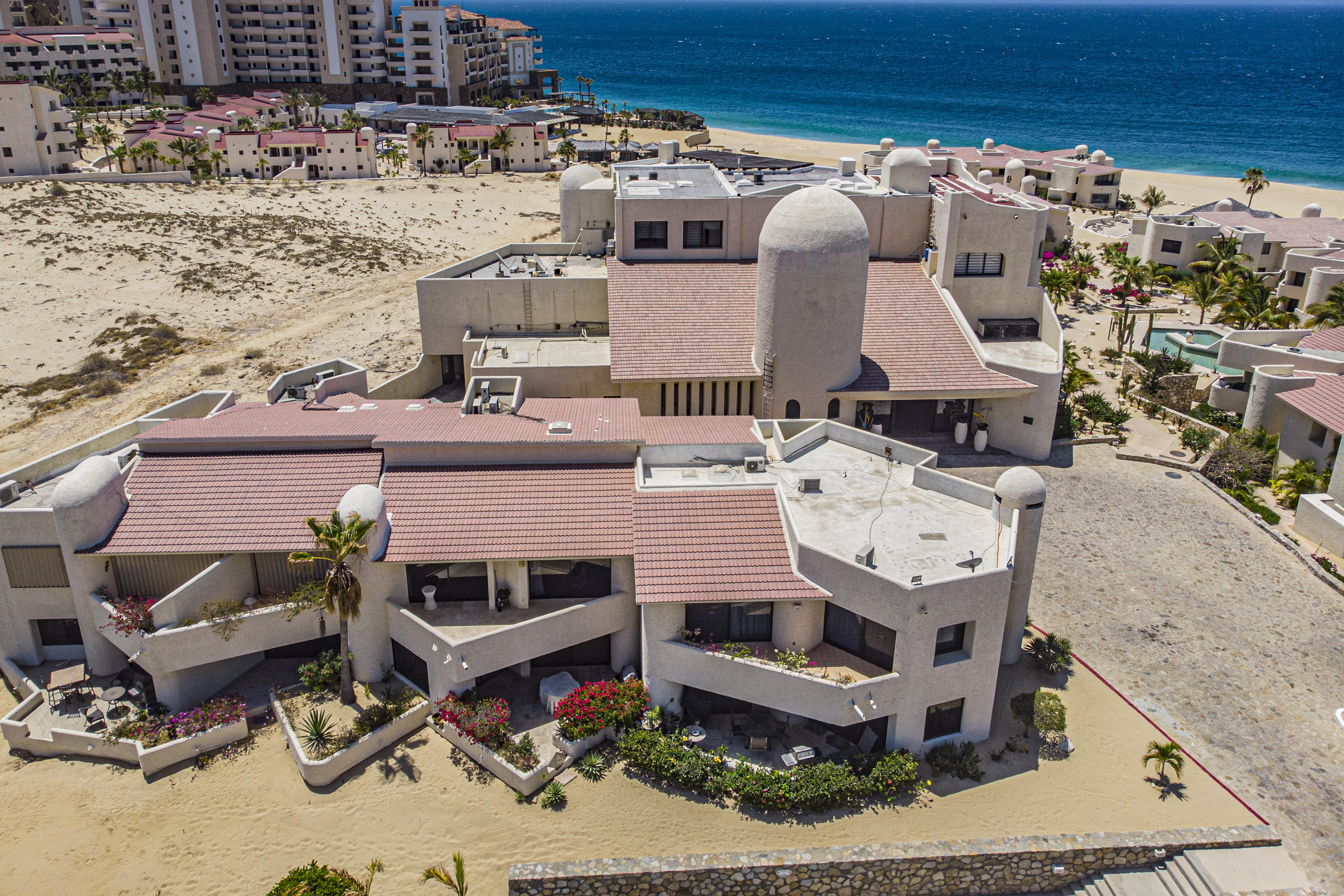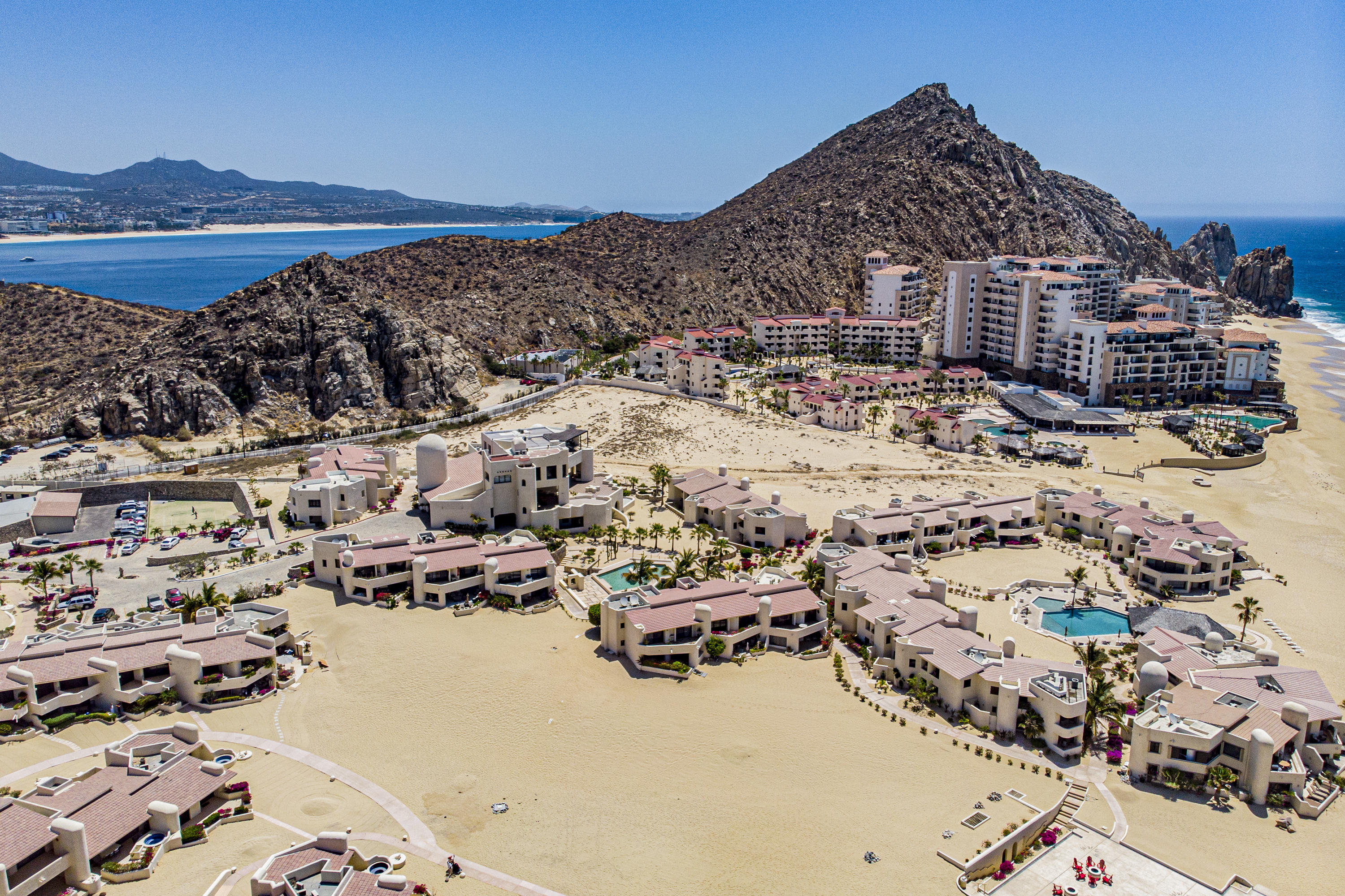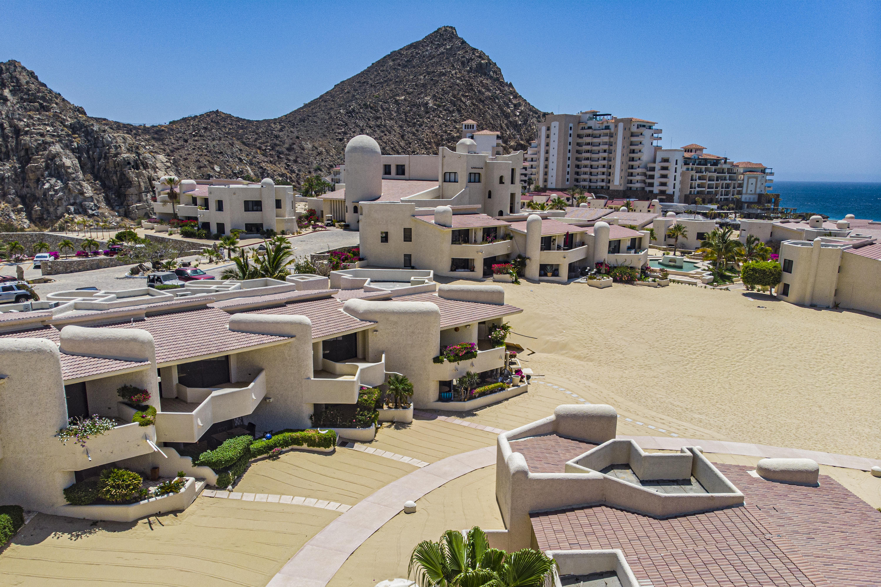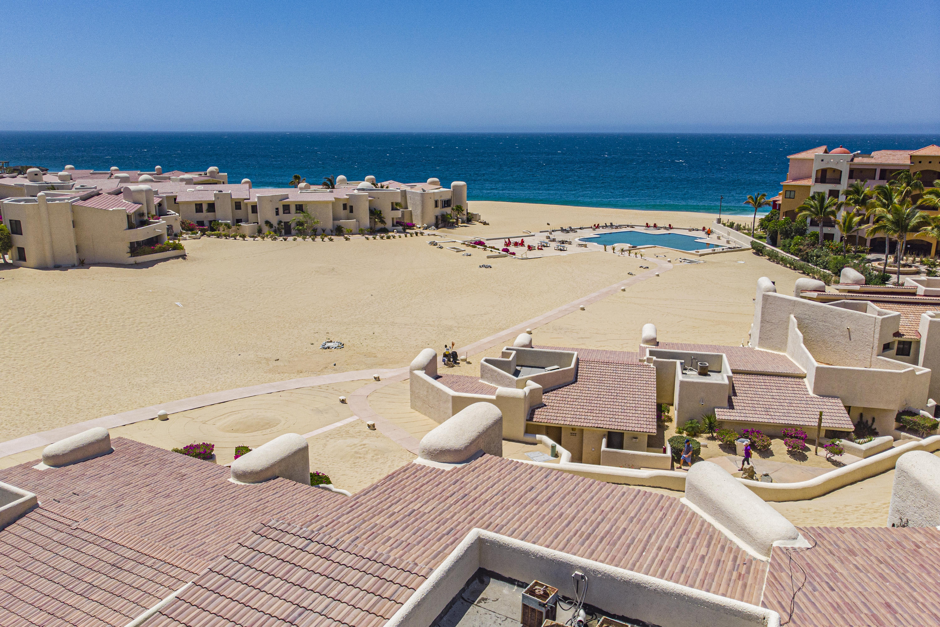 Walk on to the beach from your safe, secure, affordable luxury, one level beach condo, coffee in hand. WAKE UP to an OCEAN VIEW! Open kitchen featuring granite tops, & new stainless appliances. 2 bdrm-2 bath. Walk off your private deck from your living room, or master bdrm. Built on one of the most beautiful and pristine 1 mile stretches of beach at the very tip of Baja Sur, where the Pacific meets the Sea of Cortez. GREAT ROI! An easy access, first floor unit, opening on to beach, convenient parking and a short walk to the marina, restaurants and town. 2 ocean front pools, 1 with Swim-up palapa bar. Wired for automatic sound, light, air cond, TV, & auto door lock as u enter unit. Fully automated; front door panel controls everything on and off from the touch of a switch.