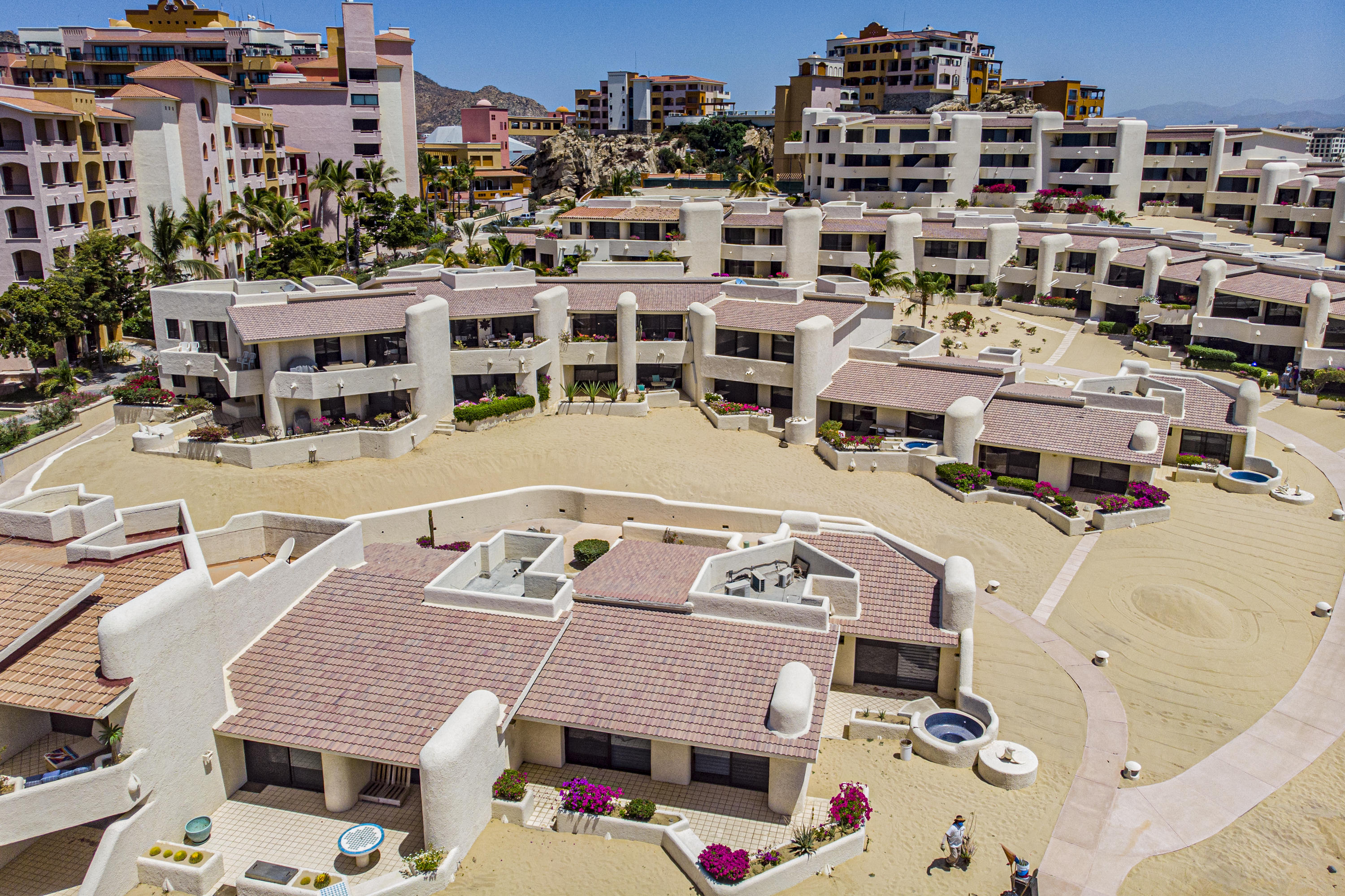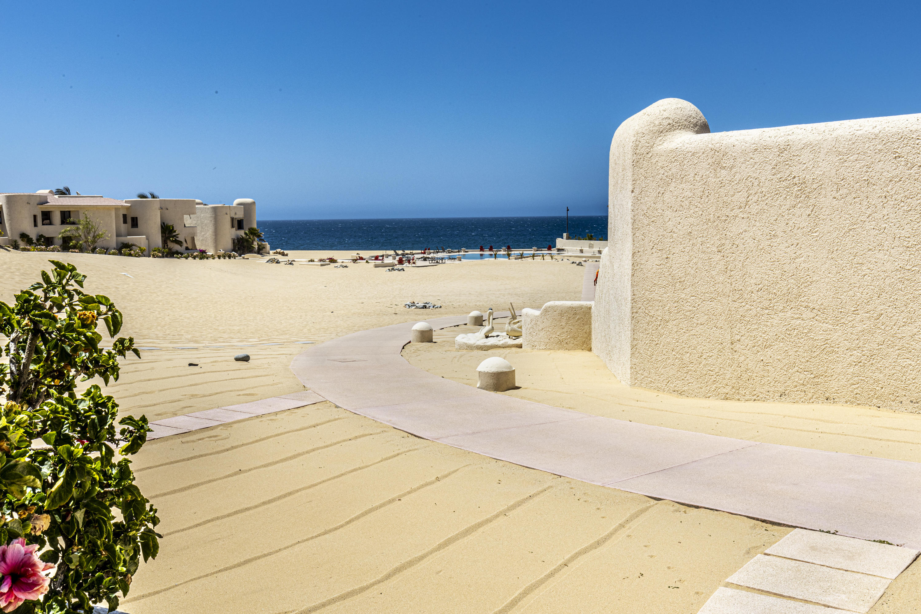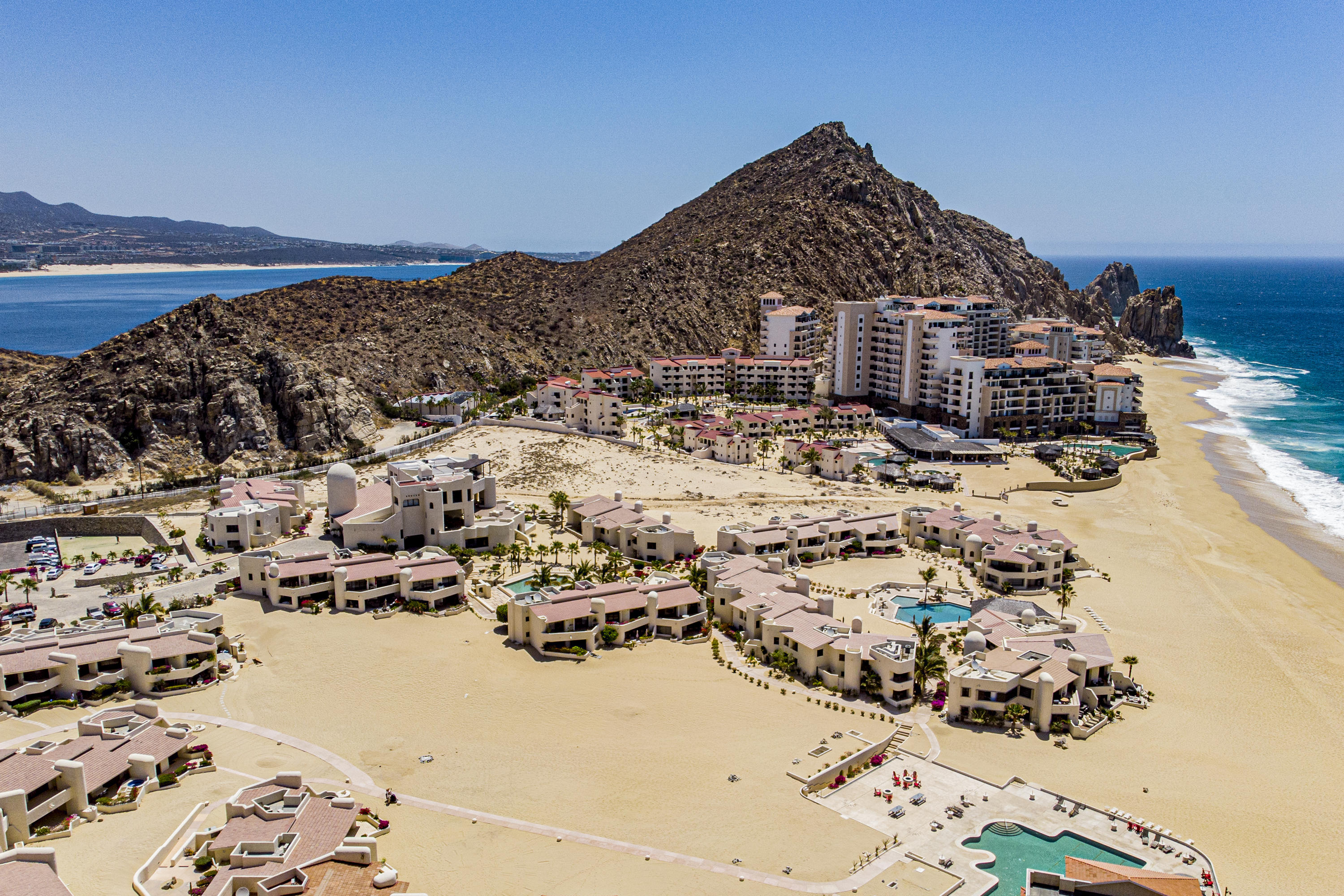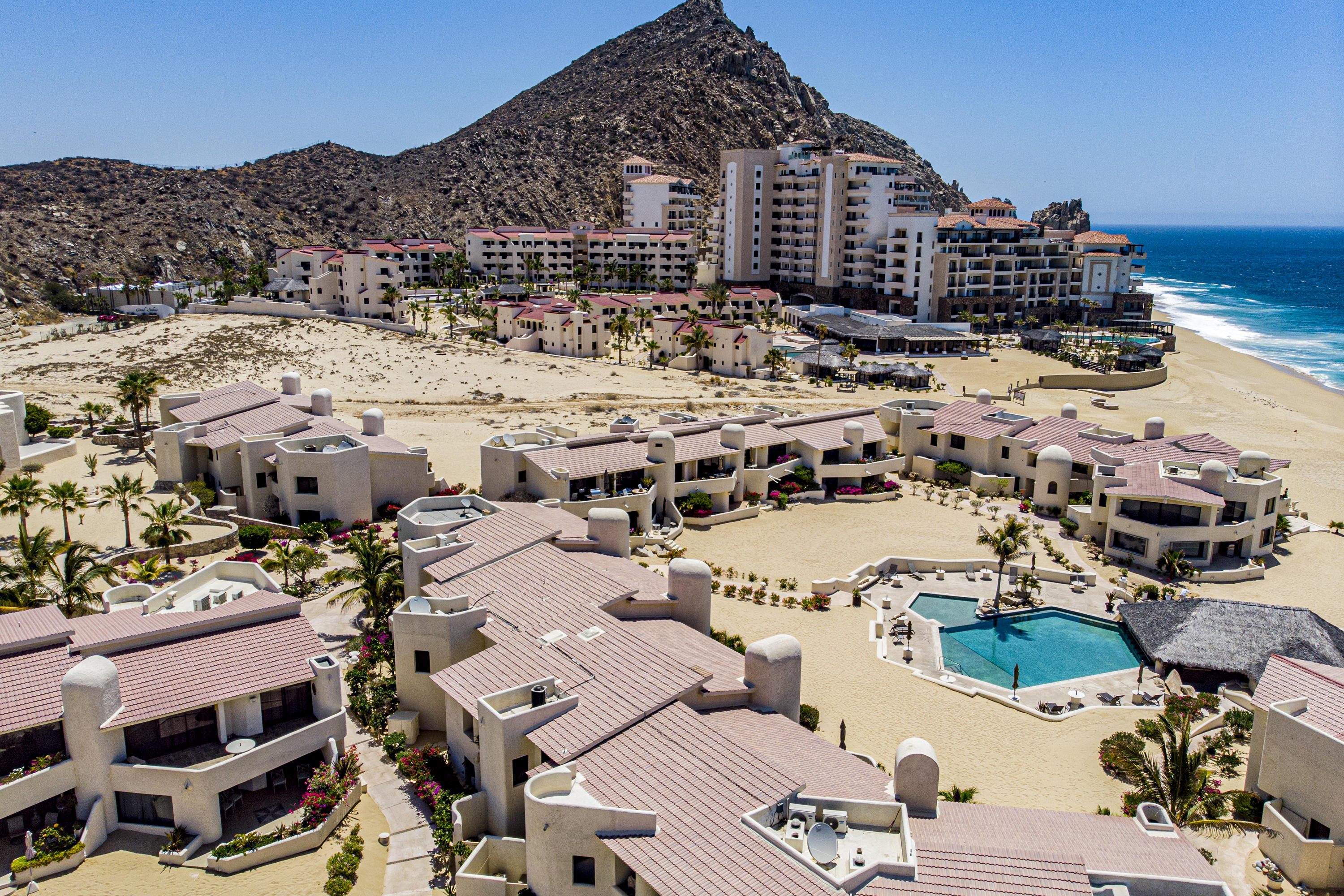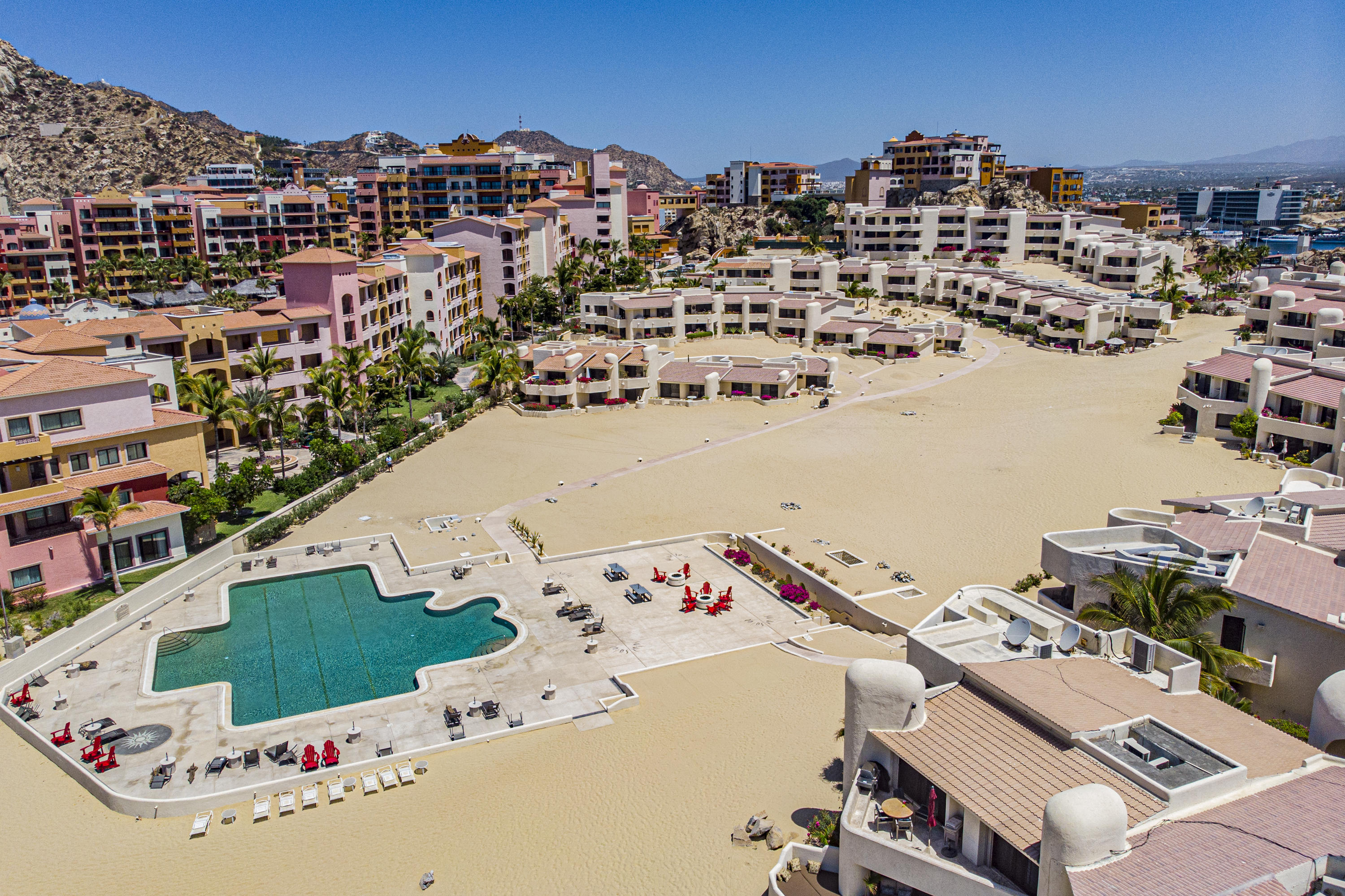 Walk on to the beach from your safe, secure, affordable luxury, one level beach condo, coffee in hand. WAKE UP to an OCEAN VIEW! Open kitchen featuring granite tops, & new stainless appliances. 2 bdrm-2 bath. Walk off your private deck from your living room, or master bdrm. Built on one of the most beautiful and pristine 1 mile stretches of beach at the very tip of Baja Sur, where the Pacific meets the Sea of Cortez. GREAT ROI! An easy access, first floor unit, opening on to beach, convenient parking and a short walk to the marina, restaurants and town. 2 ocean front pools, 1 with Swim-up palapa bar. Wired for automatic sound, light, air cond, TV, & auto door lock as u enter unit. Fully automated; front door panel controls everything on and off from the touch of a switch.