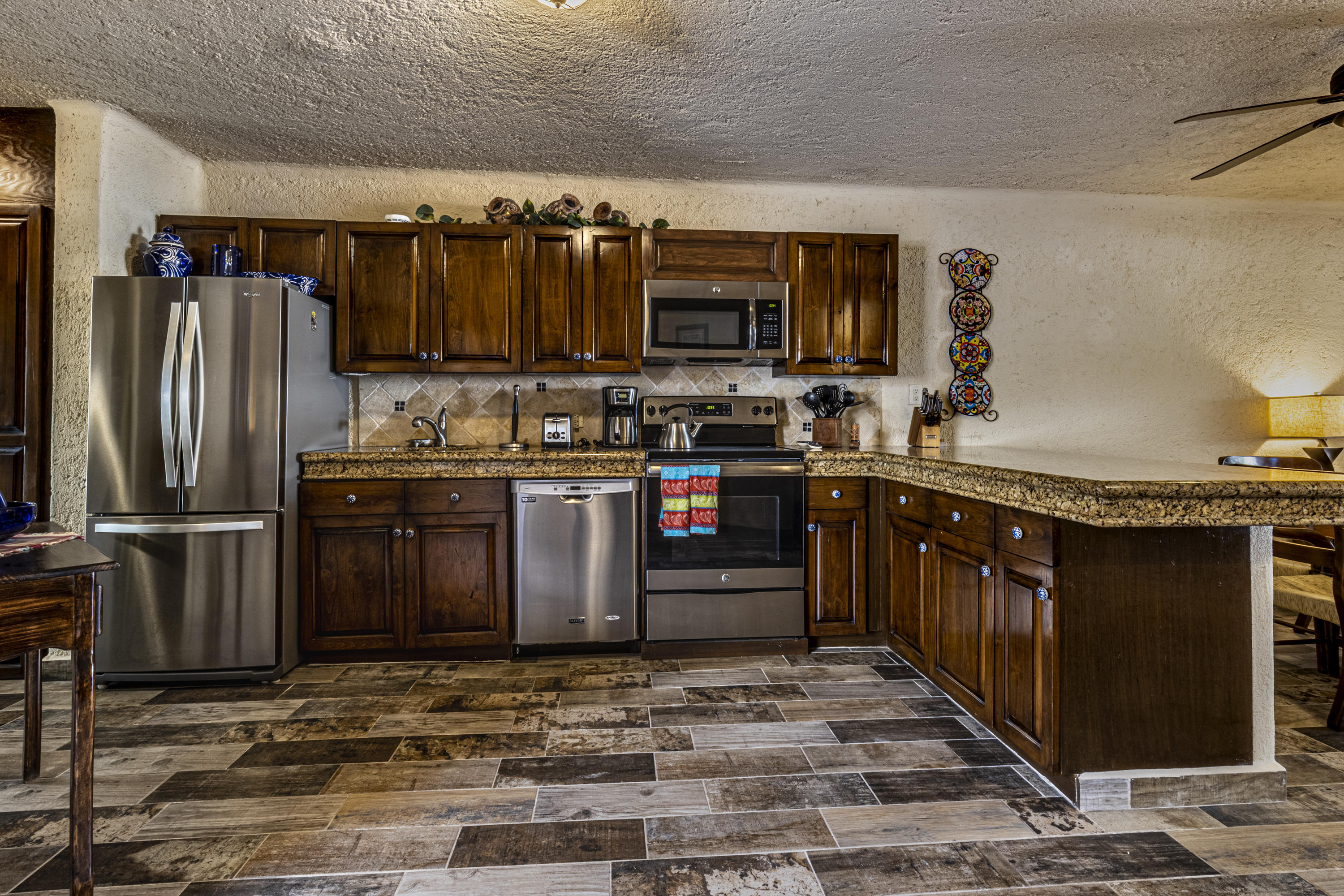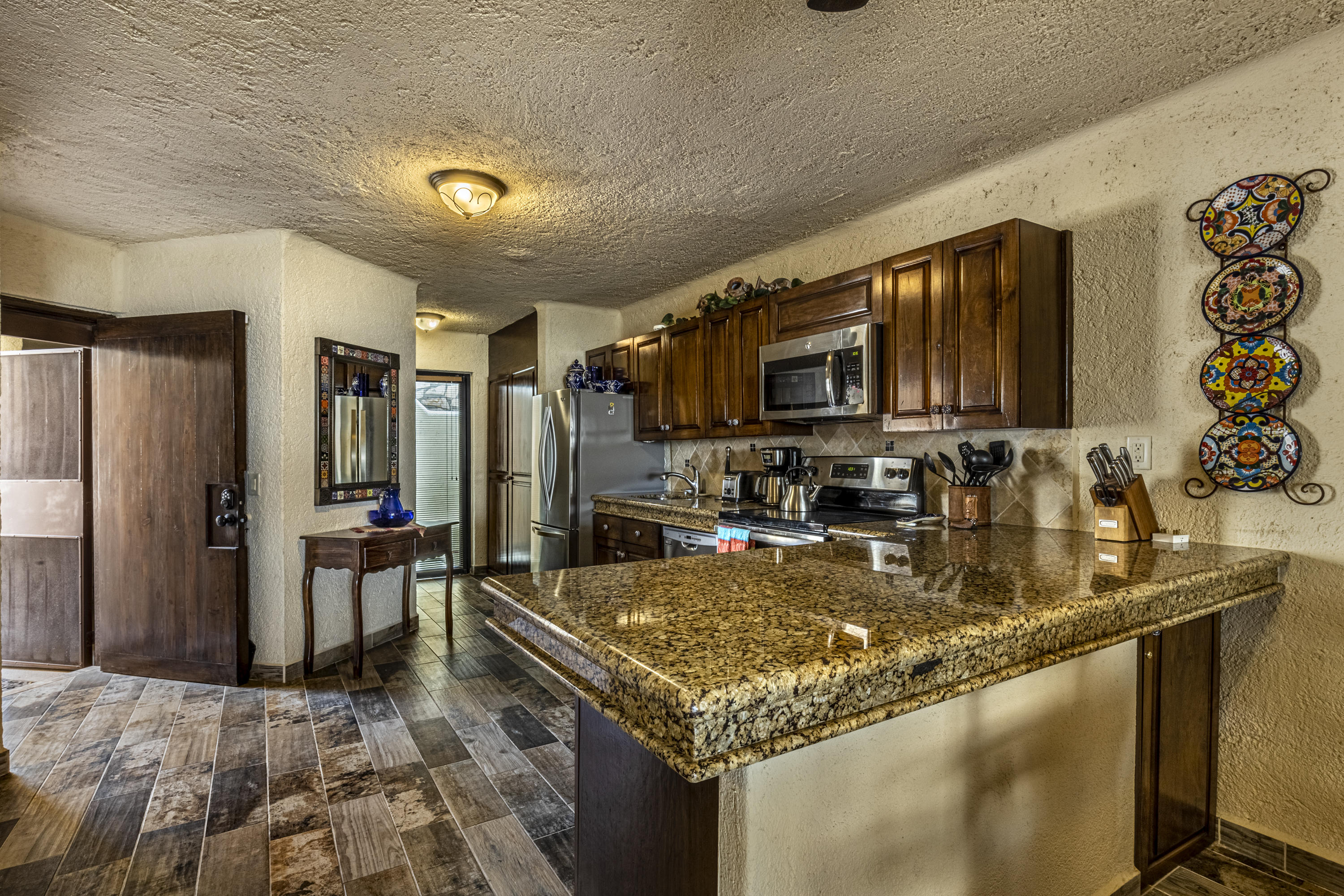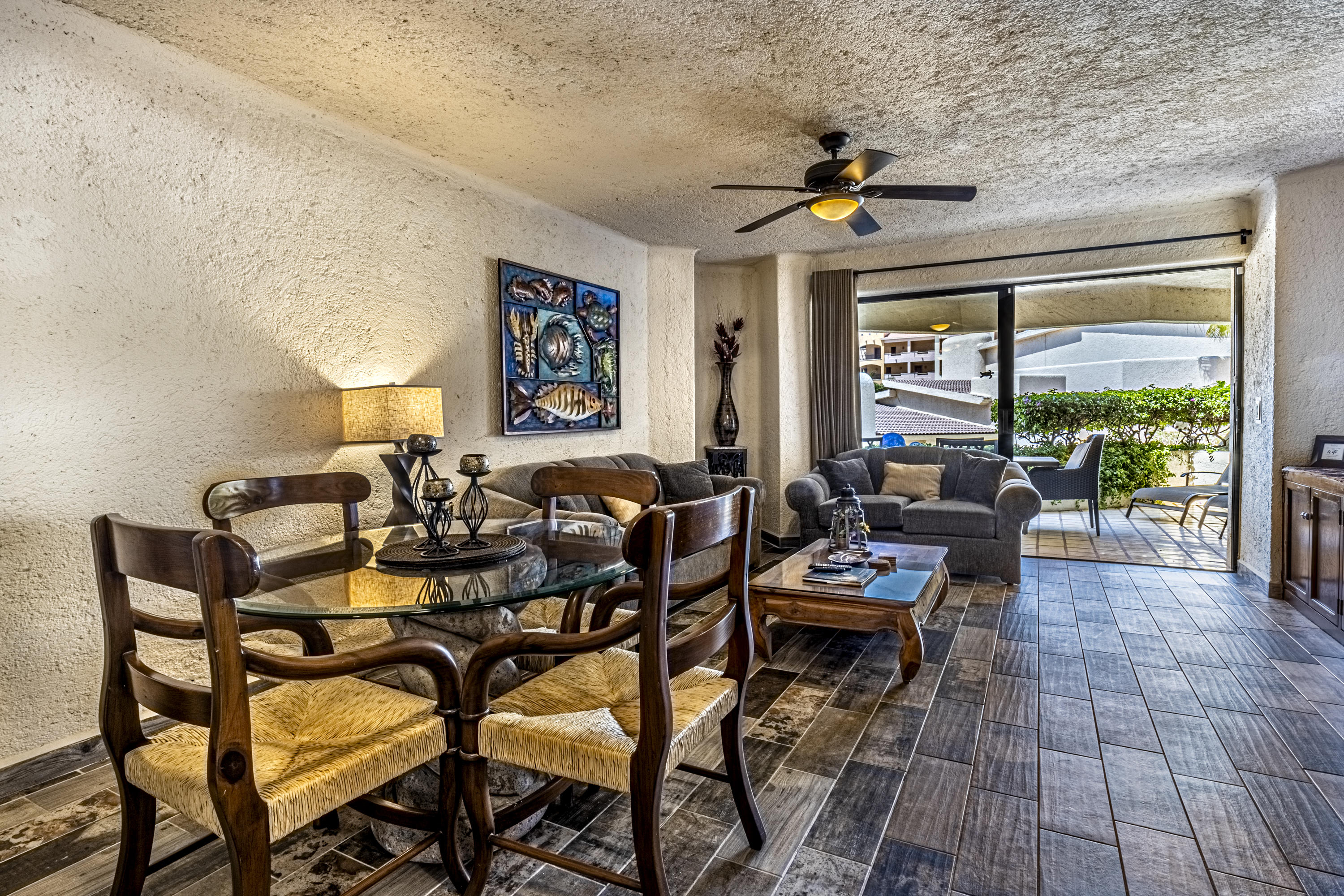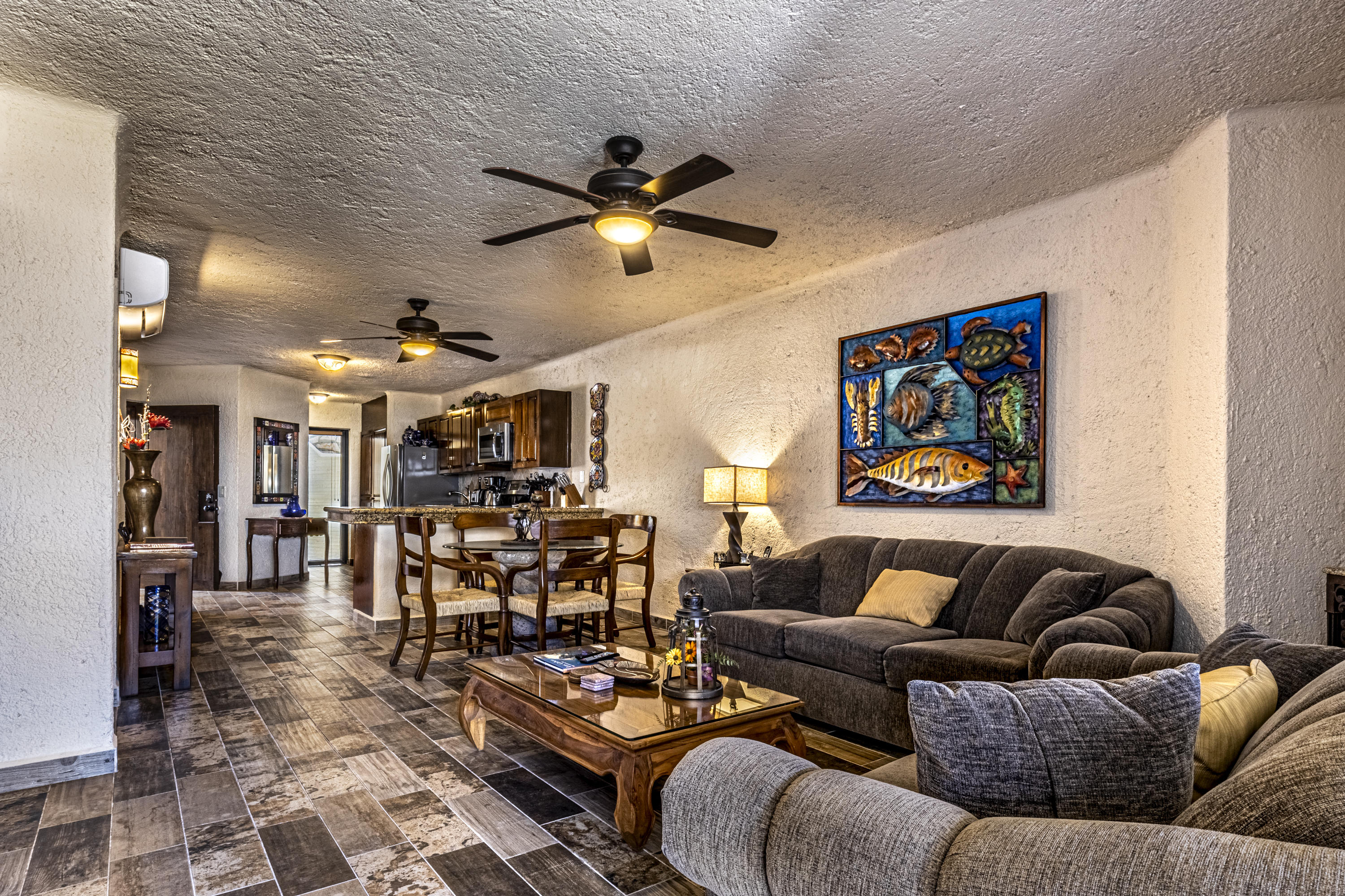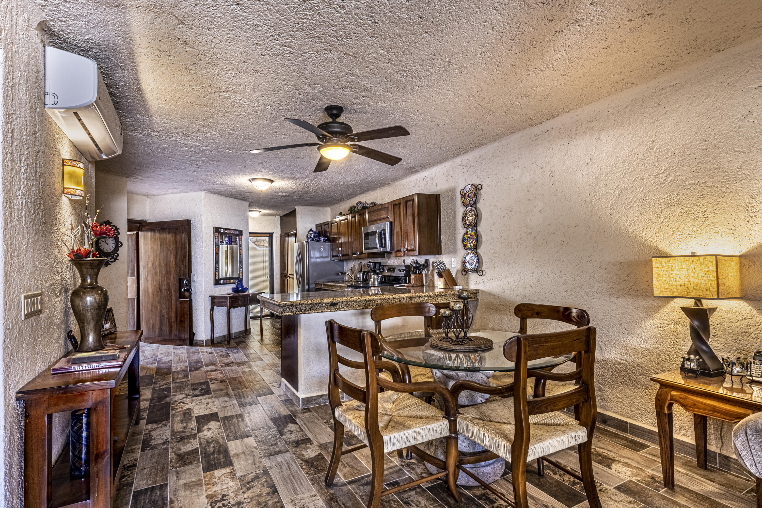 Walk on to the beach from your safe, secure, affordable luxury, one level beach condo, coffee in hand. WAKE UP to an OCEAN VIEW! Open kitchen featuring granite tops, & new stainless appliances. 2 bdrm-2 bath. Walk off your private deck from your living room, or master bdrm. Built on one of the most beautiful and pristine 1 mile stretches of beach at the very tip of Baja Sur, where the Pacific meets the Sea of Cortez. GREAT ROI! An easy access, first floor unit, opening on to beach, convenient parking and a short walk to the marina, restaurants and town. 2 ocean front pools, 1 with Swim-up palapa bar. Wired for automatic sound, light, air cond, TV, & auto door lock as u enter unit. Fully automated; front door panel controls everything on and off from the touch of a switch.