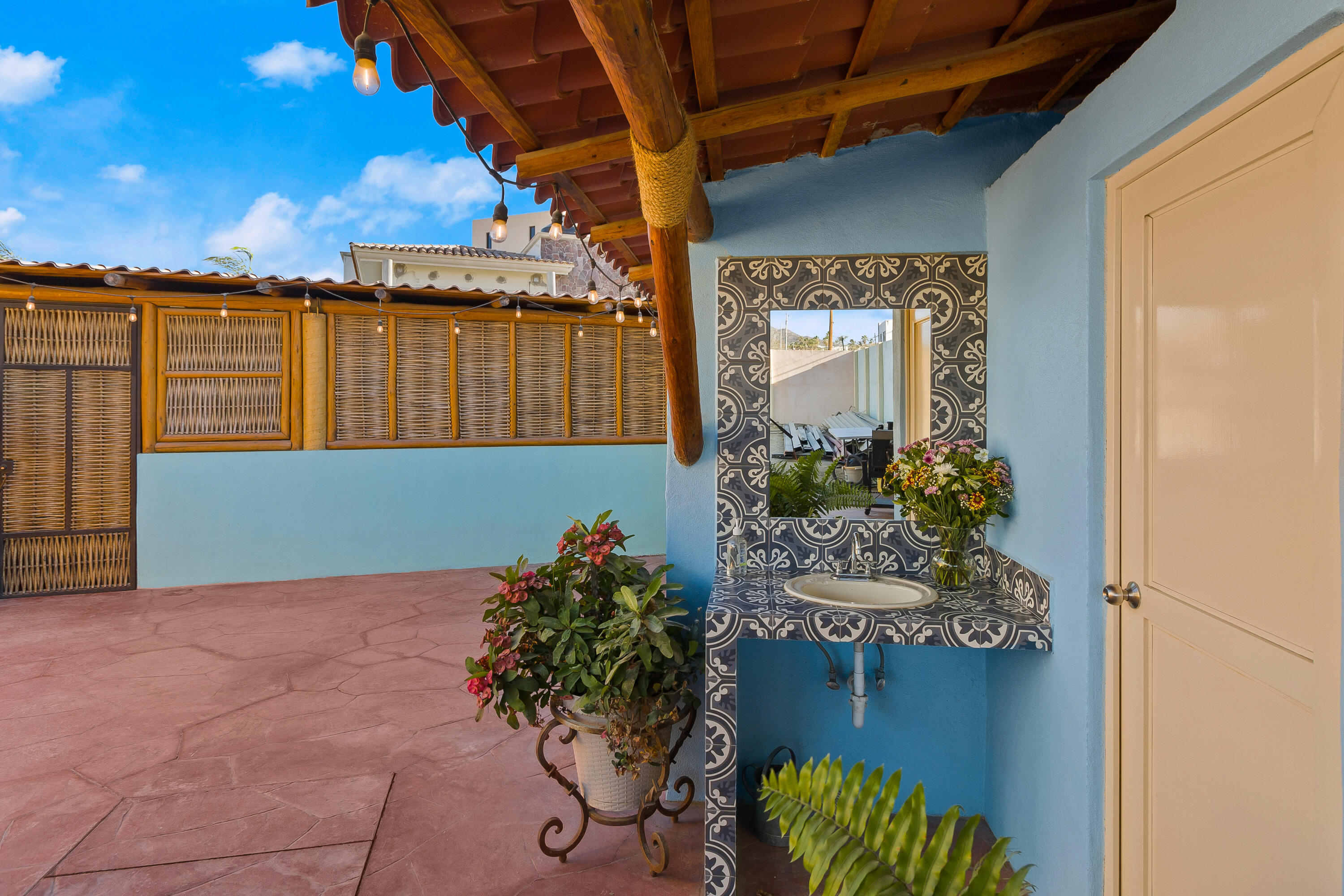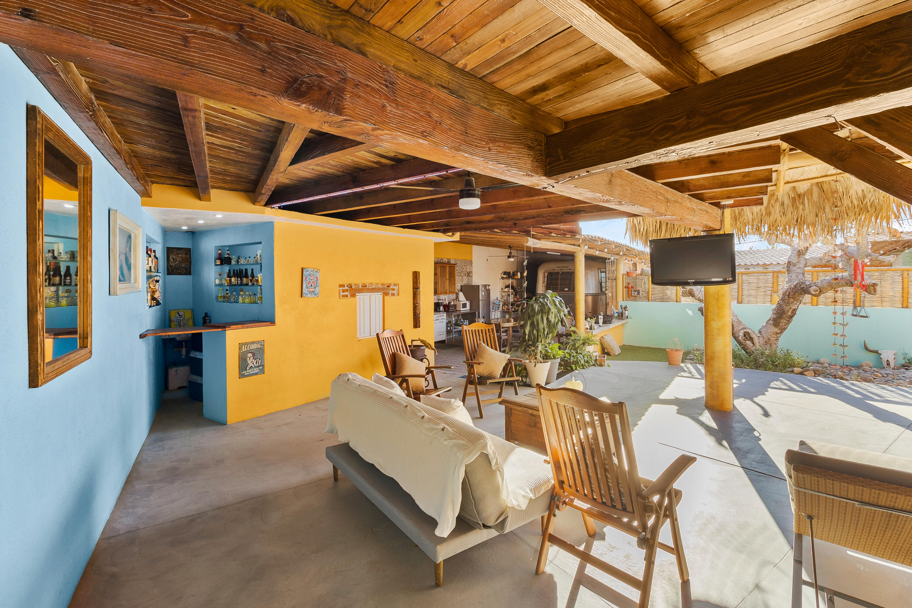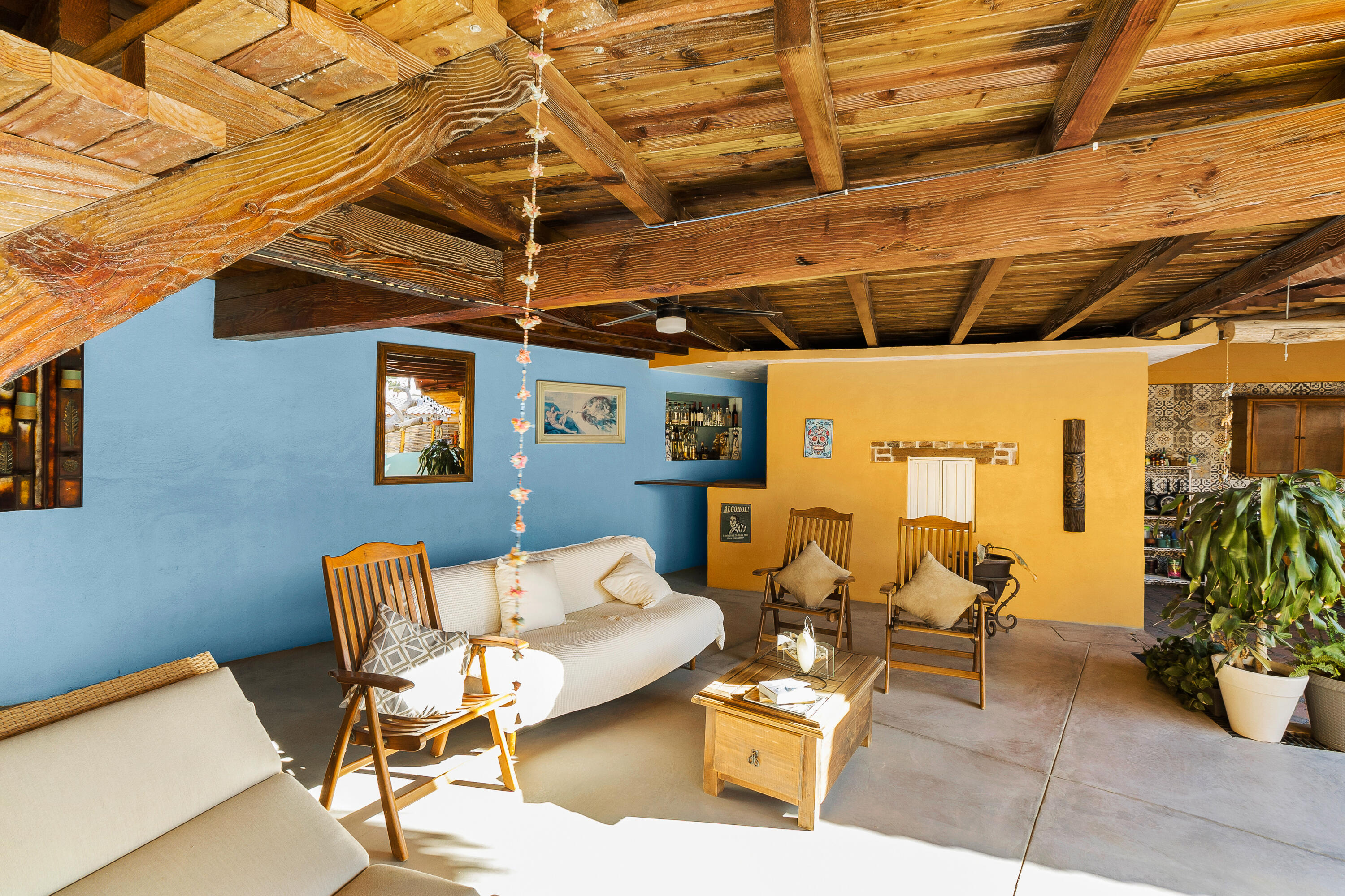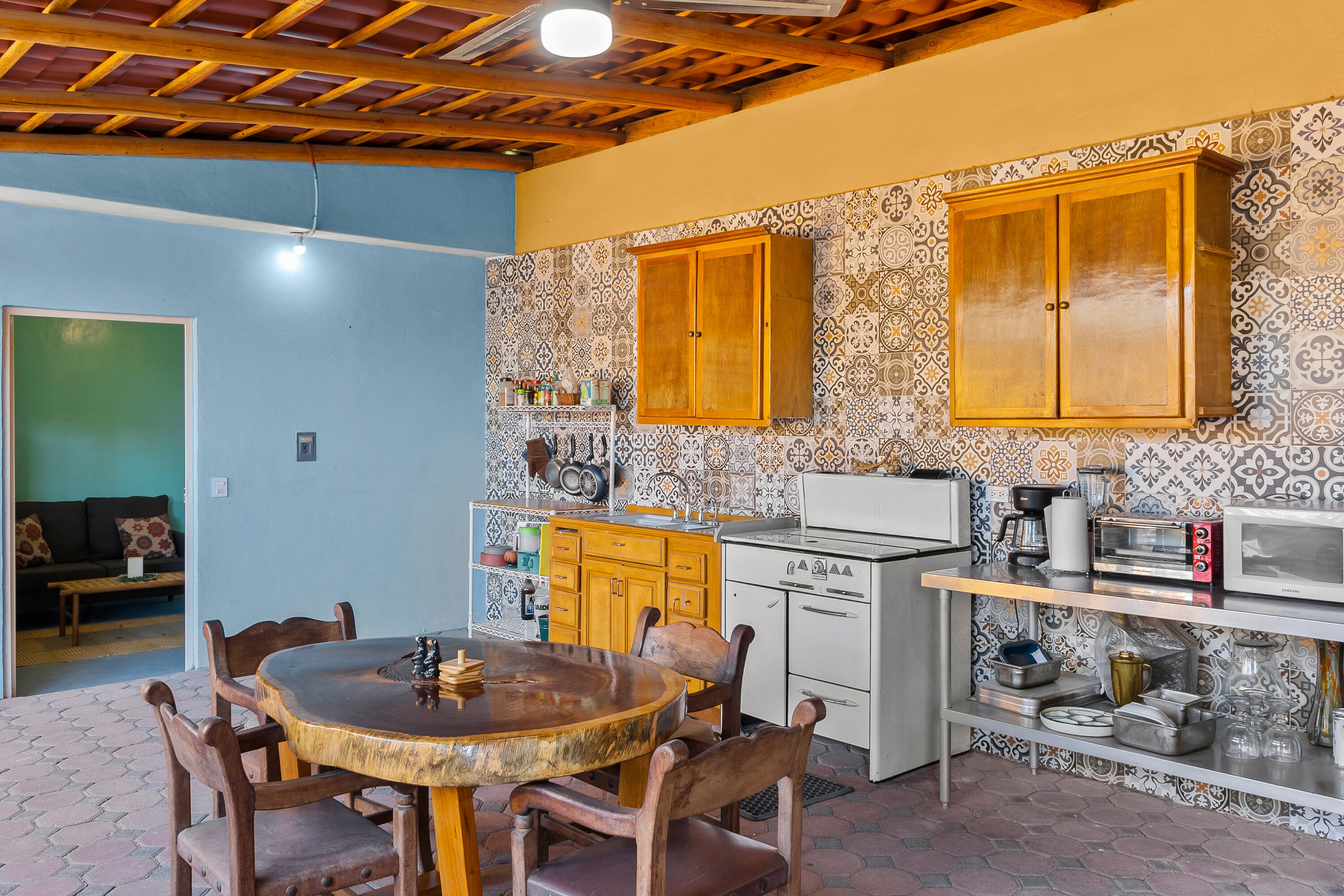 This 7739.78 square feet corner lot, The Cabo Bungalow Escape, is one-of-a-kind Bohemian bungalow that will blow you away with its unique open floor design. The Cabo Bungalow Escape is situated in the lovely, breezy community of El Tezal, Cabo San Lucas only 3 minutes away from the main road ”Cabo Corridor”. This property features one master bedroom with a half bathroom, and a palapa ceiling providing you a refreshing air flow. As the living room provides a lively open space, it boasts a bar and lounge to keep your guests entertained. Connected with is the lushly landscaped kitchen with a fully functioning vintage stove. This property also has a fantastic studio for all of your creative needs. Next to the kitchen there is a 10 meter long Avion RV with another bedroom and living room.
