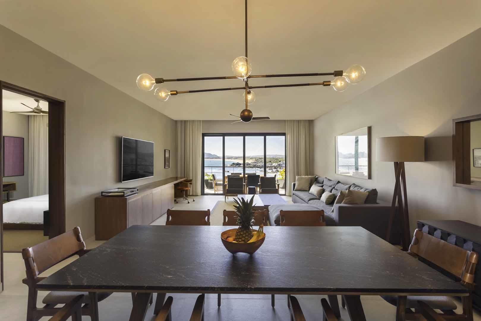 As close to the Sea of Cortez as you can get in this ocean-corner two bedroom sprawled over 2,800 square feet. One of only two, two bedroom residences with a panoramic ocean window in the second bedroom. As a detached lock-off, each bedroom features separately keyed entries and its own ocean-front patio. Excellent rental income from a seamless fully-managed revenue share rental program operated through the hotel. Fully furnished and accessorized by Javier Sanchez Interiors, the architect group responsible for the design of this award winning resort. Steps to Monuments beach, a seemingly private surfers paradise. The resort amenities include a salt water pool, full-service spa, rooftop lounge, surfside sushi bar, Manta restaurant by Enrique Olvera, fitness by Moduvated & infinity-edge pool.