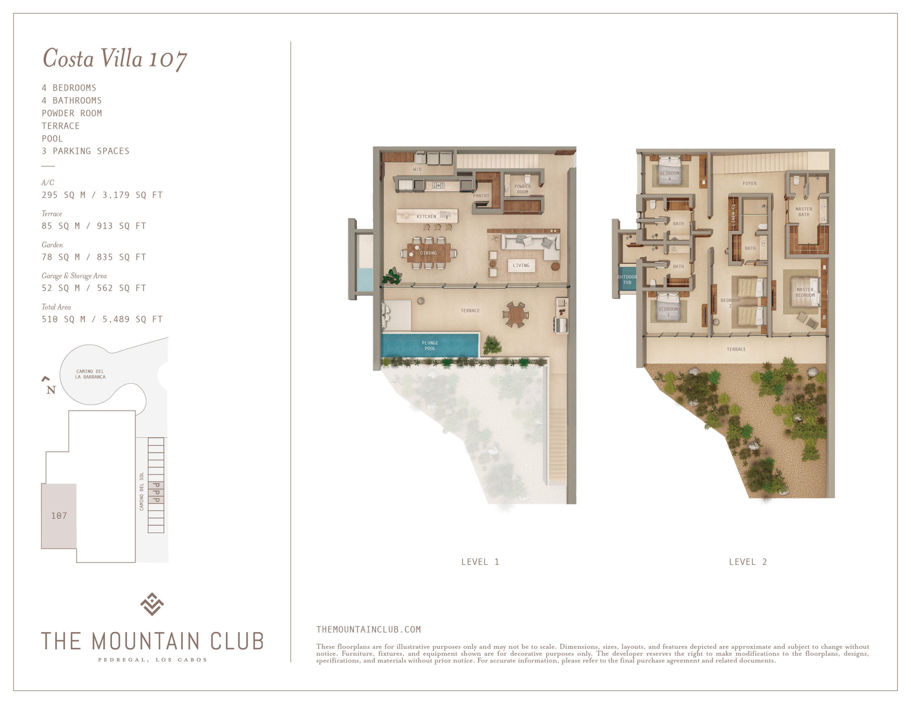 Introducing the Mountain Club, an intimate community of over 40 coastal Baja homes in Pedregal, Los Cabos. Harnessing the organic beauty of the dramatic mountainside to offer unobstructed Pacific Ocean views and a connection to nature.Alonso de Garay, renowned Mexico City architect, created dwellings that coexist harmoniously with the elementsBeginning with a collection of eight exclusive homes in Phase 1, each cradled by rugged coastline, Costa Villa 107 is situated at the far left end of this luxury townhome collection, offering wide-angle, uninterrupted ocean views and a thoughtfully placed outdoor shower. Carved into the Pedregal mountains, this villa boasts four bedrooms, four-and-a-half bathrooms, and three parking spaces, featuring an ample terrace, plunge pool, and garden
