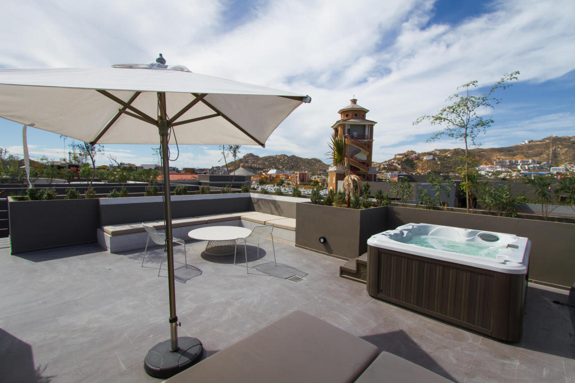 BRAND NEW LUXURY CONDOS in the heart of Cabo San Lucas! The Paraiso Residences are designed for those desiring an urban lifestyle adjacent to boutique shopping, gourmet dining and Medano Beach. Resort style amenities include concierge, bell service, housekeeping and lobby staff. Comprising 2292.51 total sf, this one-bedroom, two-bath residence offers contemporary design with a private back terrace affording indoor/outdoor living at its best. A spiral staircase leads to a private rooftop veranda with Jacuzzi. 24-hour security with exclusive elevator access. Gated parking. Fiber optic internet. In-house property management and rental services available. Amenities include a fitness center, lounge, security gated parking and individual storage bodegas.