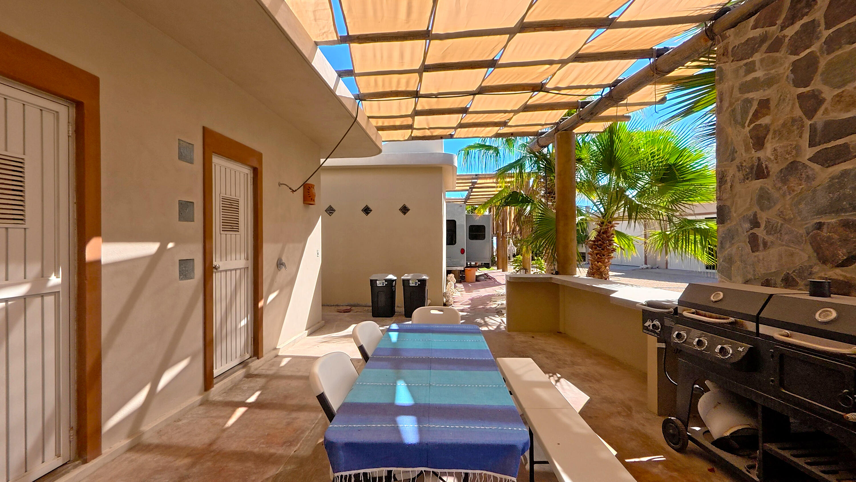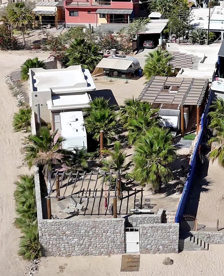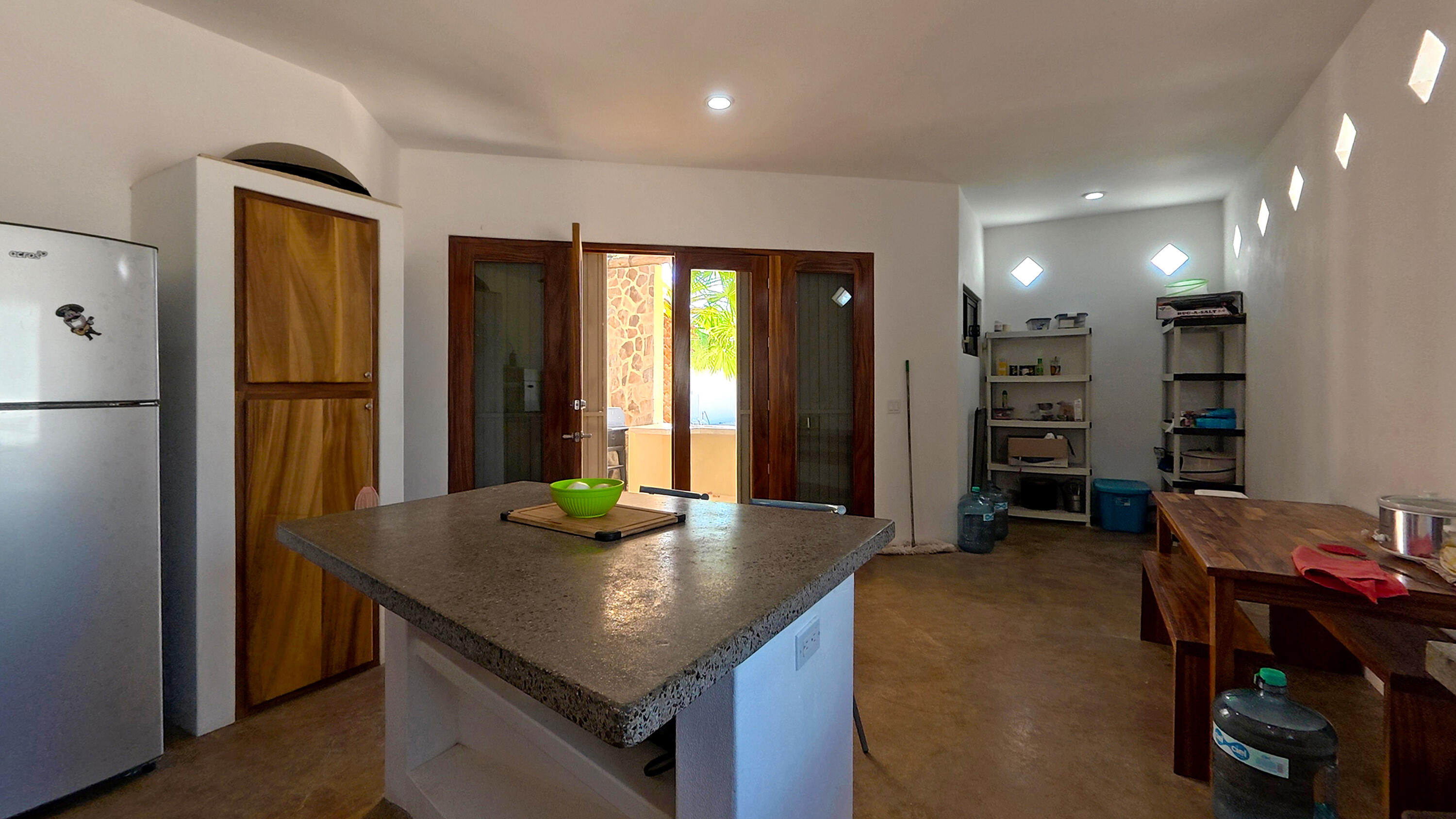The Singing Kitchen is 1,022 M2 Beach Front next to Accesso 9. This versatile beach front is currently set up for communal use and can easily transition into a private residence, rental compound, or an expanded build project. Included is a garage, 3 individual bodegas, communal kitchen, communal shower room, toilet room and laundry room. Is on city water and has CFE Account.