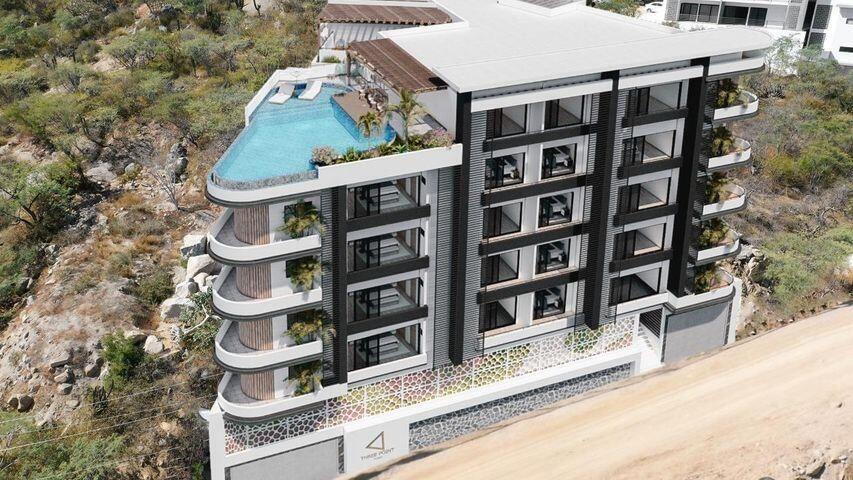 Three Point Tower. Point #1: Location, #2 Lifestyle, #3 Value. Be one of the fortunate 22 residents of this unique condominium. This is the last 2 bedroom, 2.5 bath unit, it is surely one of Cabo’s best values. The property boasts five floors accessed by elevator, roof top pool and grill area, underground parking and spectacular views of the marina and on out to the Sea of Cortez. Scheduled completion Dic 2022. Now is the time to make a reservation and lock in these amazing pre-construction price.