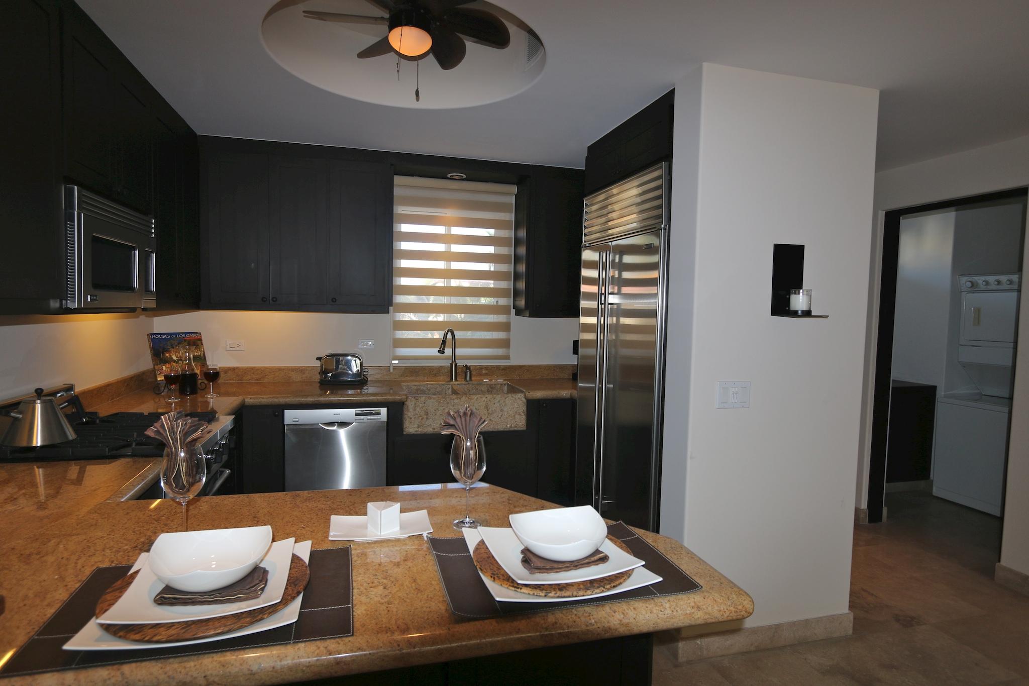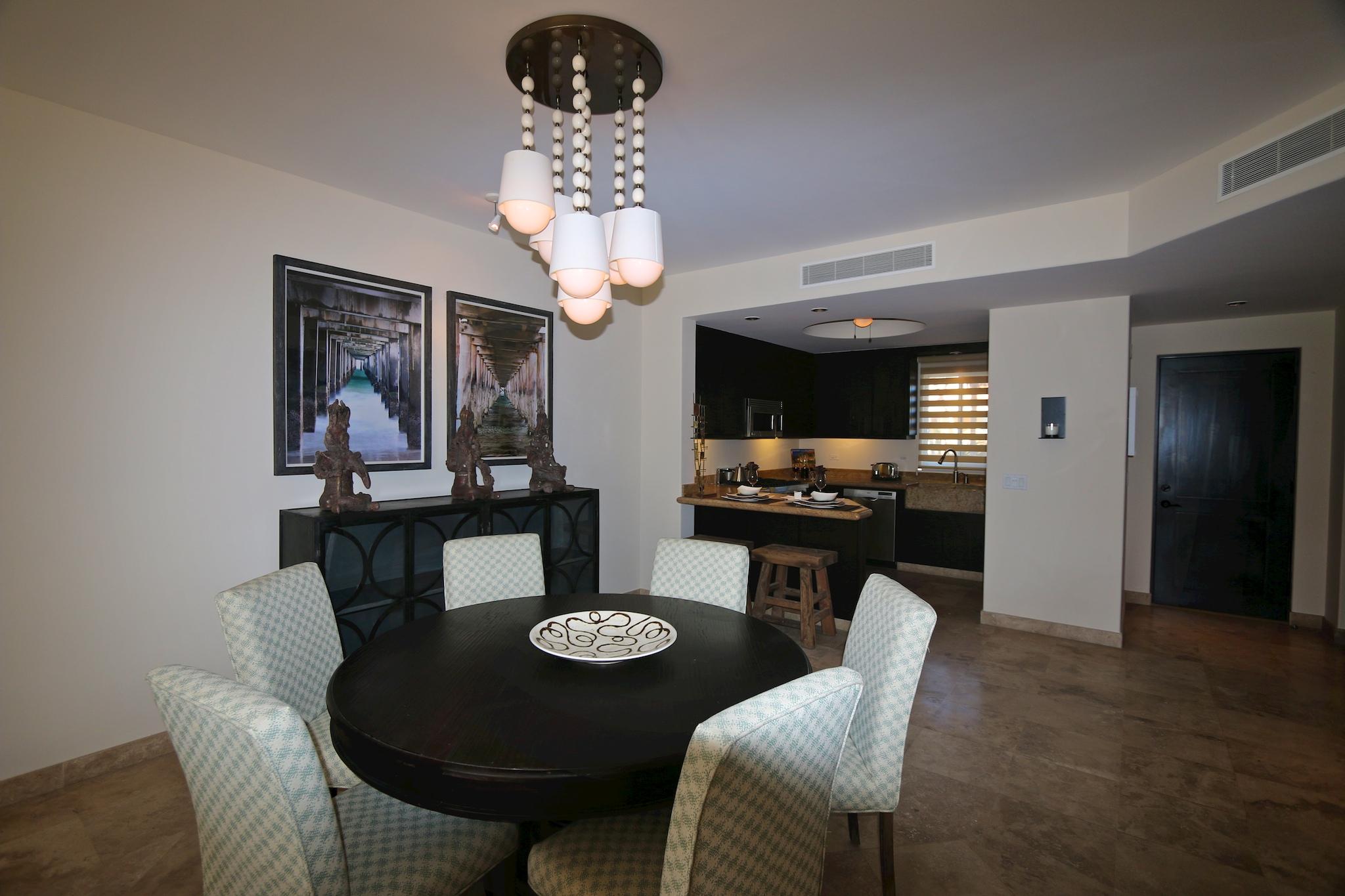 Never been lived in, 2 bedroom model at Tortuga Bay. Beachfront with stunning views of San Jose Bay and Palmilla Point. Now is the time to consider owning in this luxury beachfront resort. The condos offer the finest location, design, quality and amenities. High concept with attention to detail include high ceilings, sliding pocket doors, travertine floors, granite kitchen counters and professional line appliances. Furniture package and garage available for separate purchase.