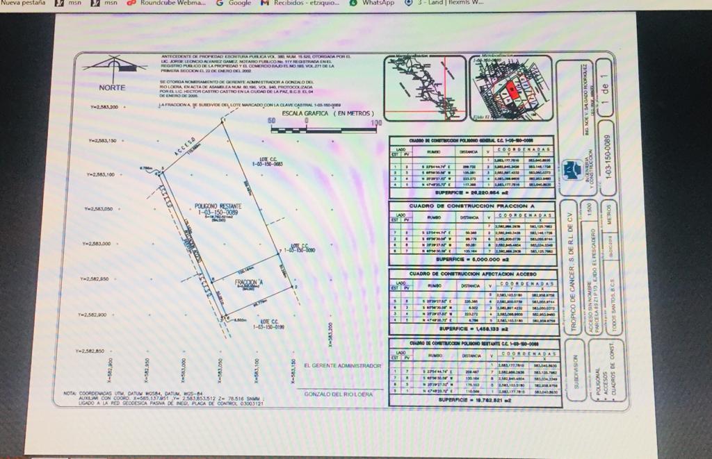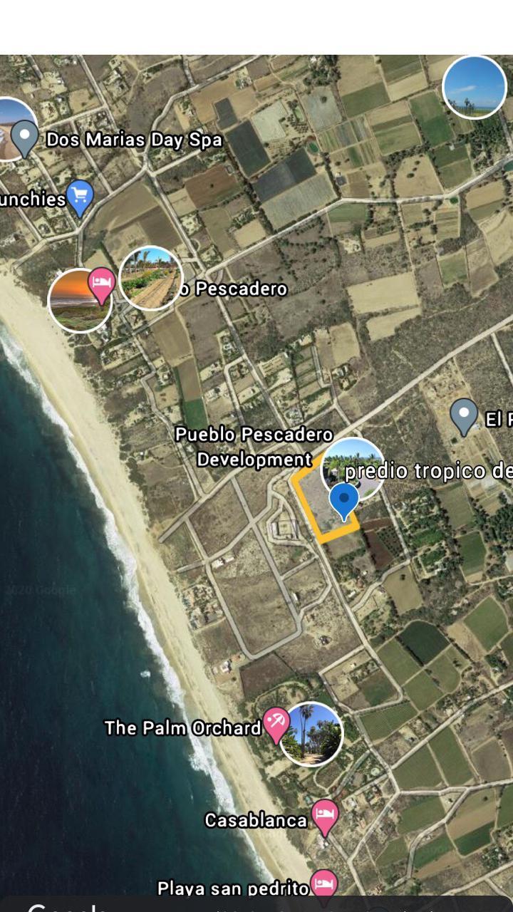 This magnificent parcel includes 19,762 square meters and is located in beautiful town named El pescadero, Baja California Sur, only 200 meters away from the beach. This great property is a flat surface ready for you to developp your project. El Pescadero is located on the Pacific side between Cabo San Lucas and Todos Santos magic town. El pescadero, is one of the places in Baja with the best climate and is one of the most important areas for organics products and a peaceful place to live at.Esta Magnifica parcela de 19,762 M2 de superficie plana, se encuentra ubicada en la zona de El Pescadero, a solo 200 mts. de la playa. Esta ‘propiedad tiene potencial para la produccion de organicos o cualquier proyecto turistico que usted tenga en mente.