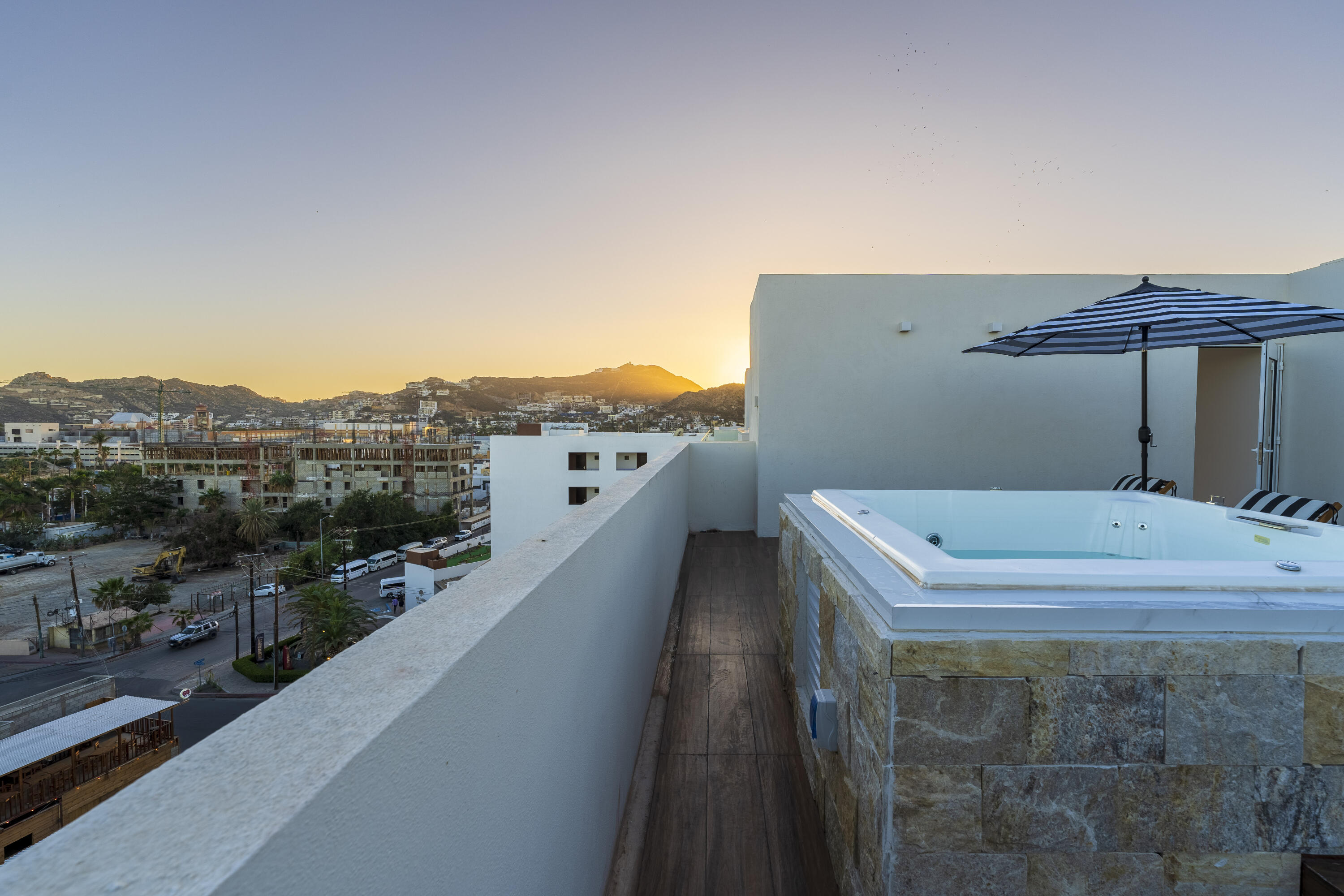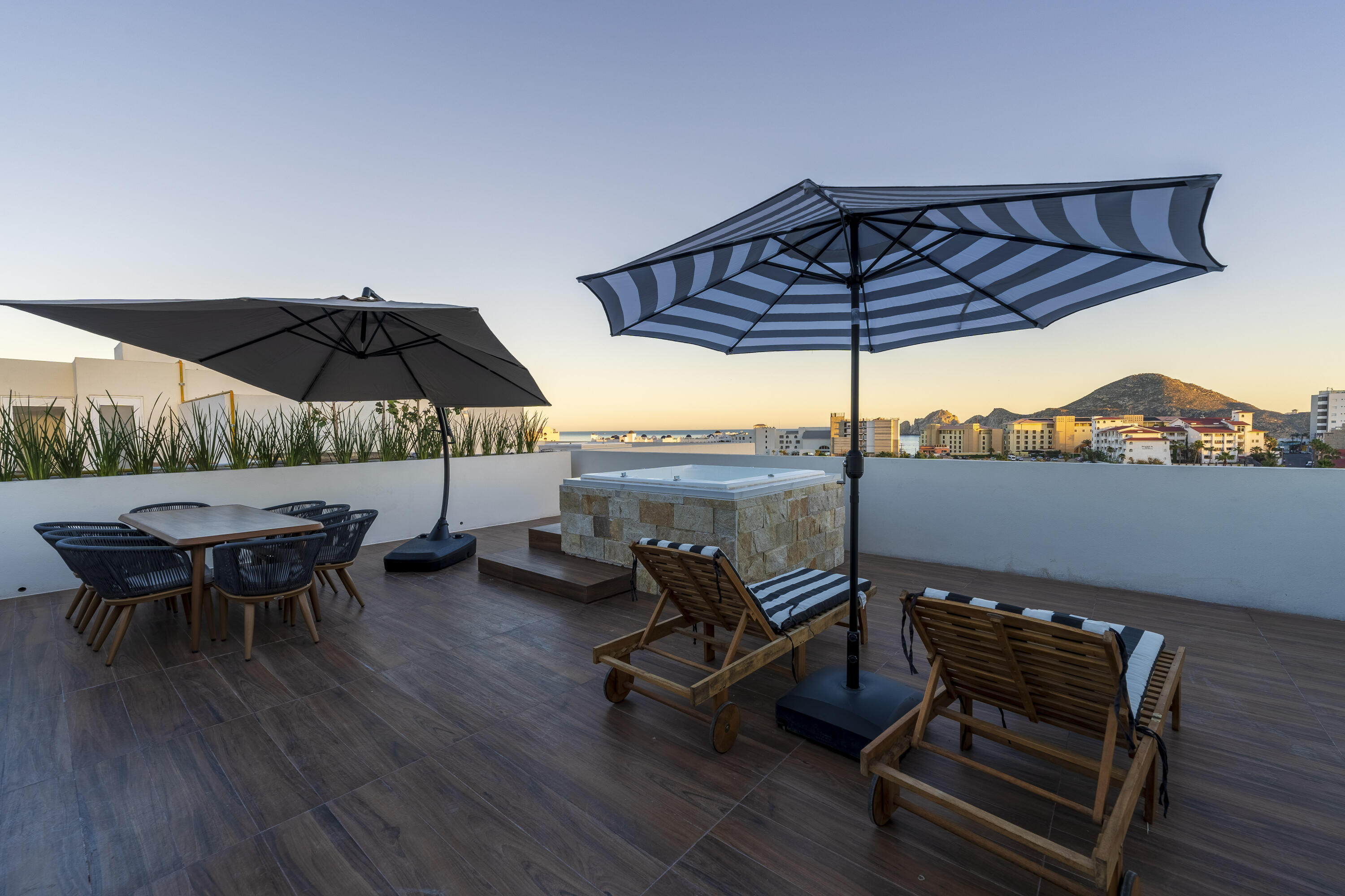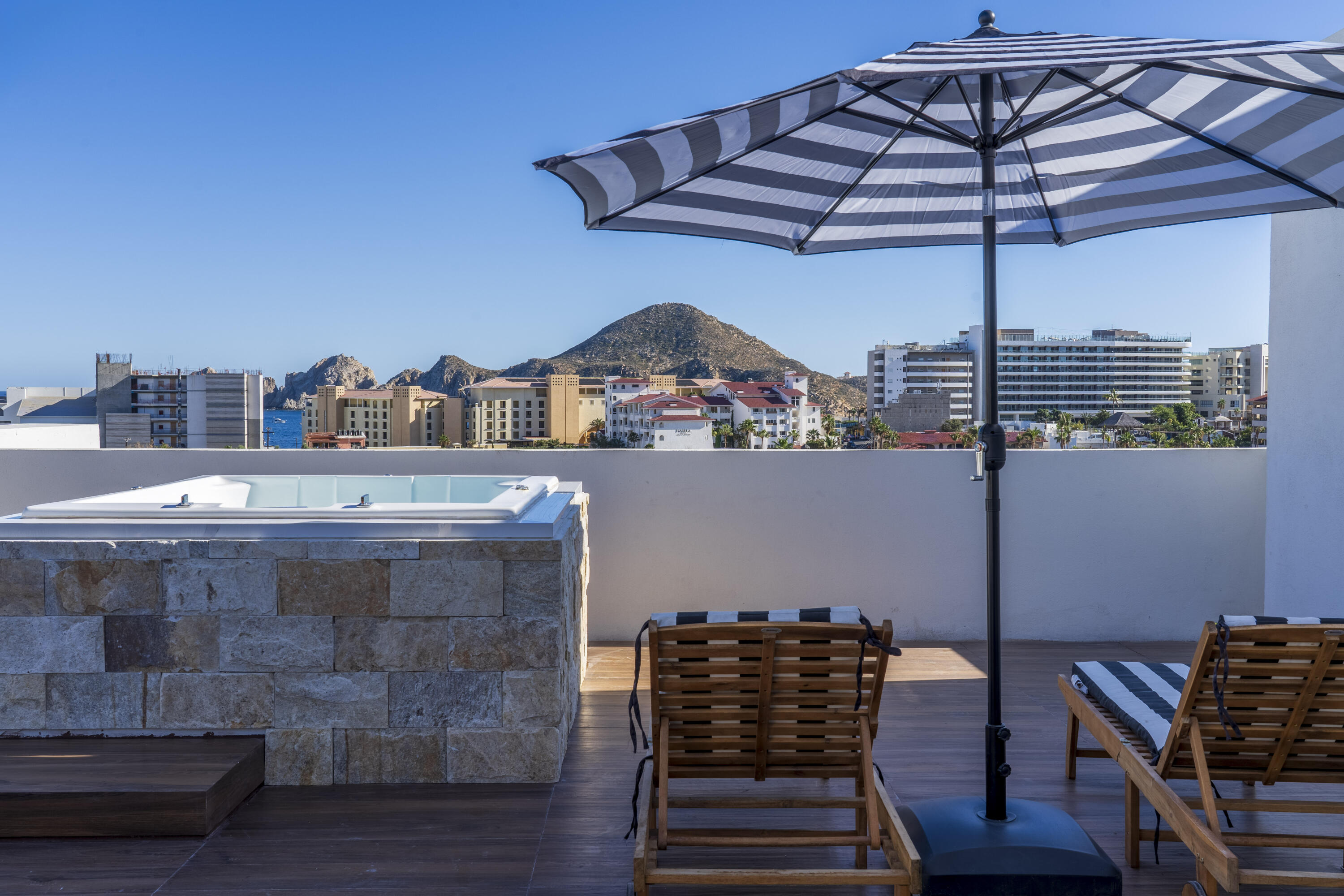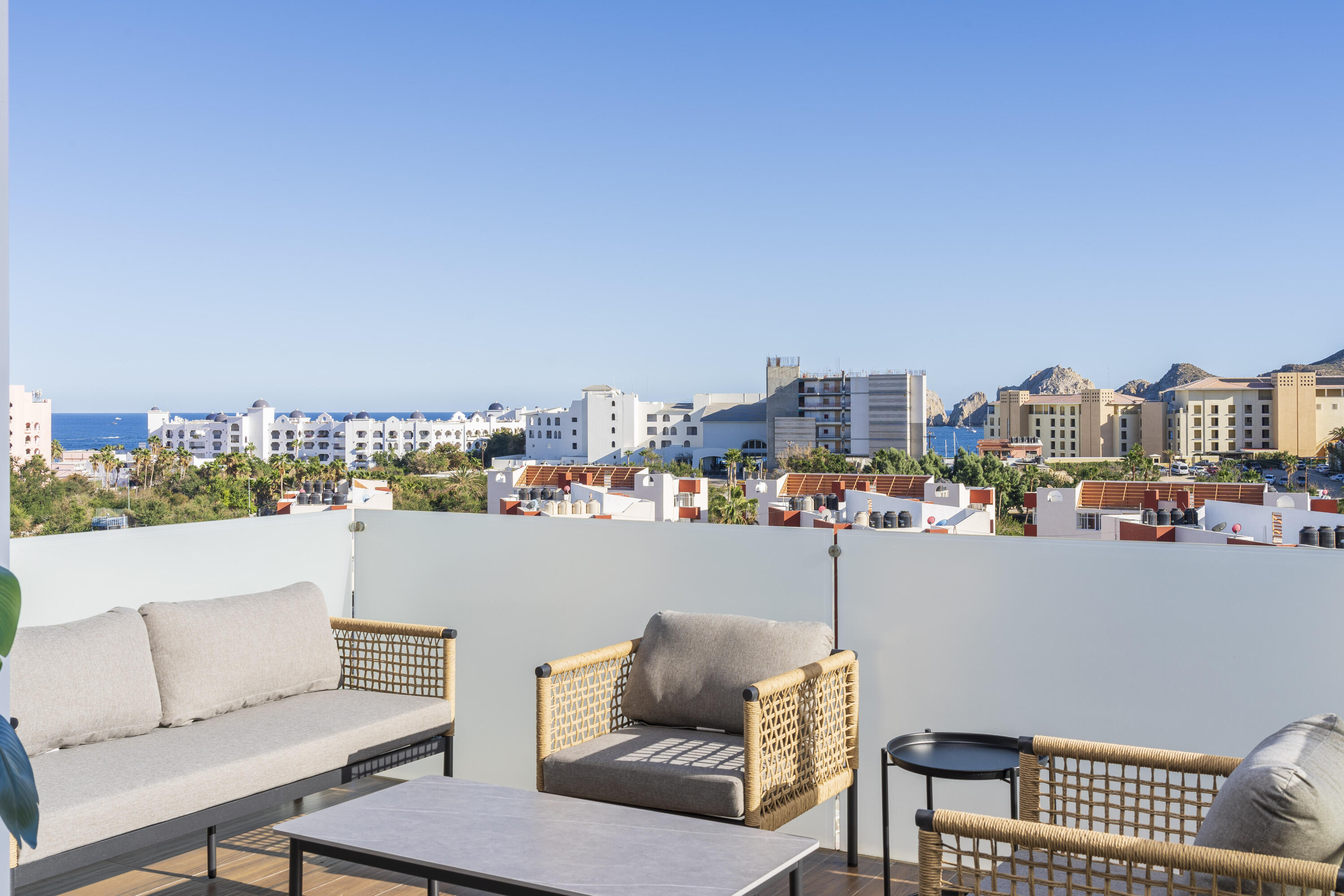 This Vibrant 3 Bedroom Penthouse is located in Downtown Cabo San Lucas inside the spectacular new development Marea.The Vibrant Penthouse has a fully equipped opened kitchen, a living room with beautiful natural light an private terrace, master bedroom with en-suite bathroom, walking closet, working area and balcony, second bedroom with en-suite bathroom, closet and balcony, third bedroom with closet and balcony, a full bathroom. The access to the Private roof top is conveniently located in within the social and private area of the main floor, it has a jacuzzi , a BBQ area, sink ,dining and living area , 2 daybeds and umbrellas and full bathroom.Vibrant PH is a turnkey property with great ROI