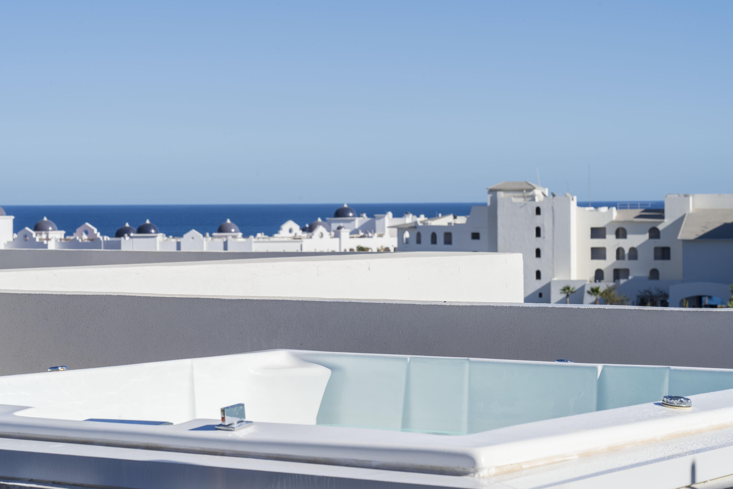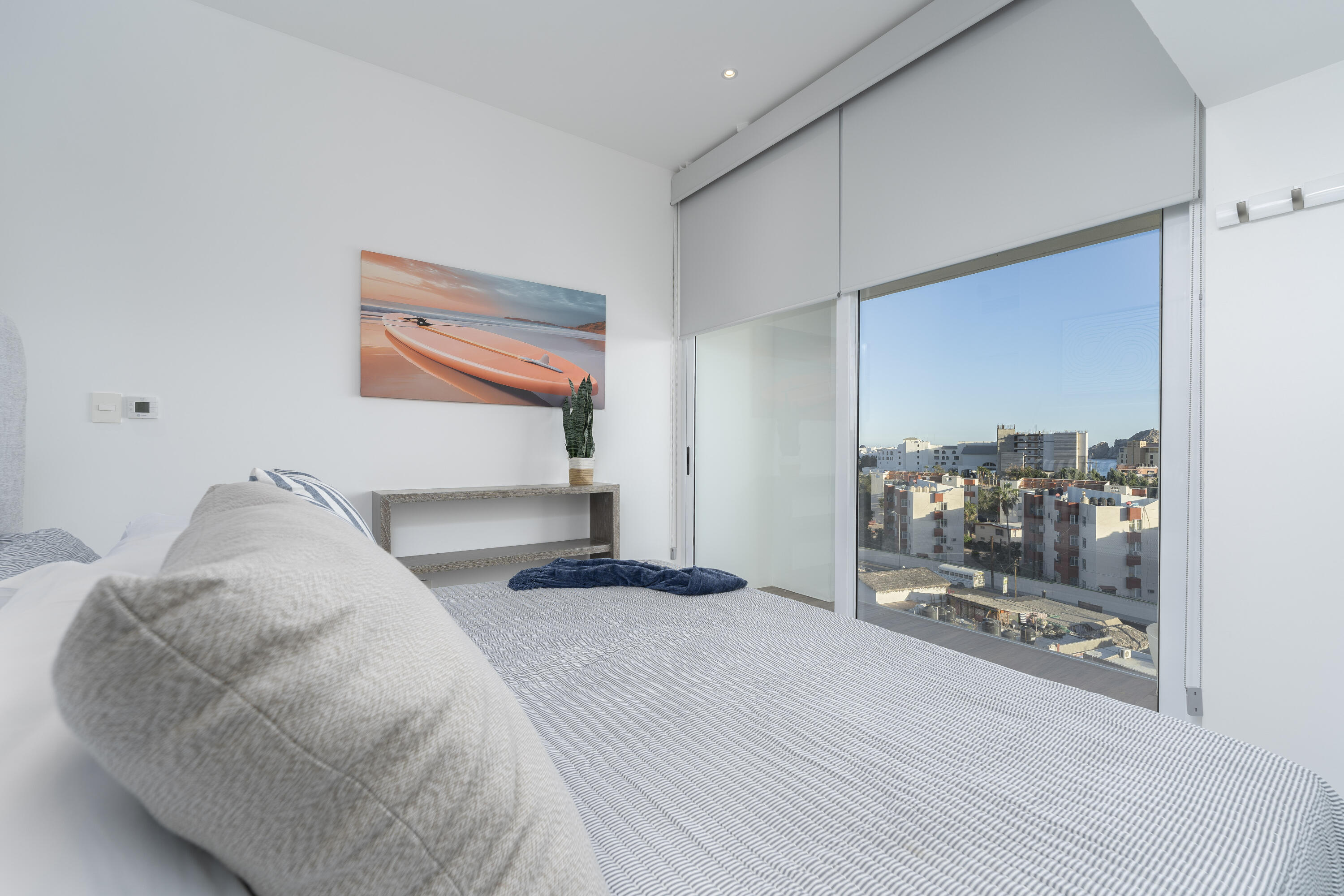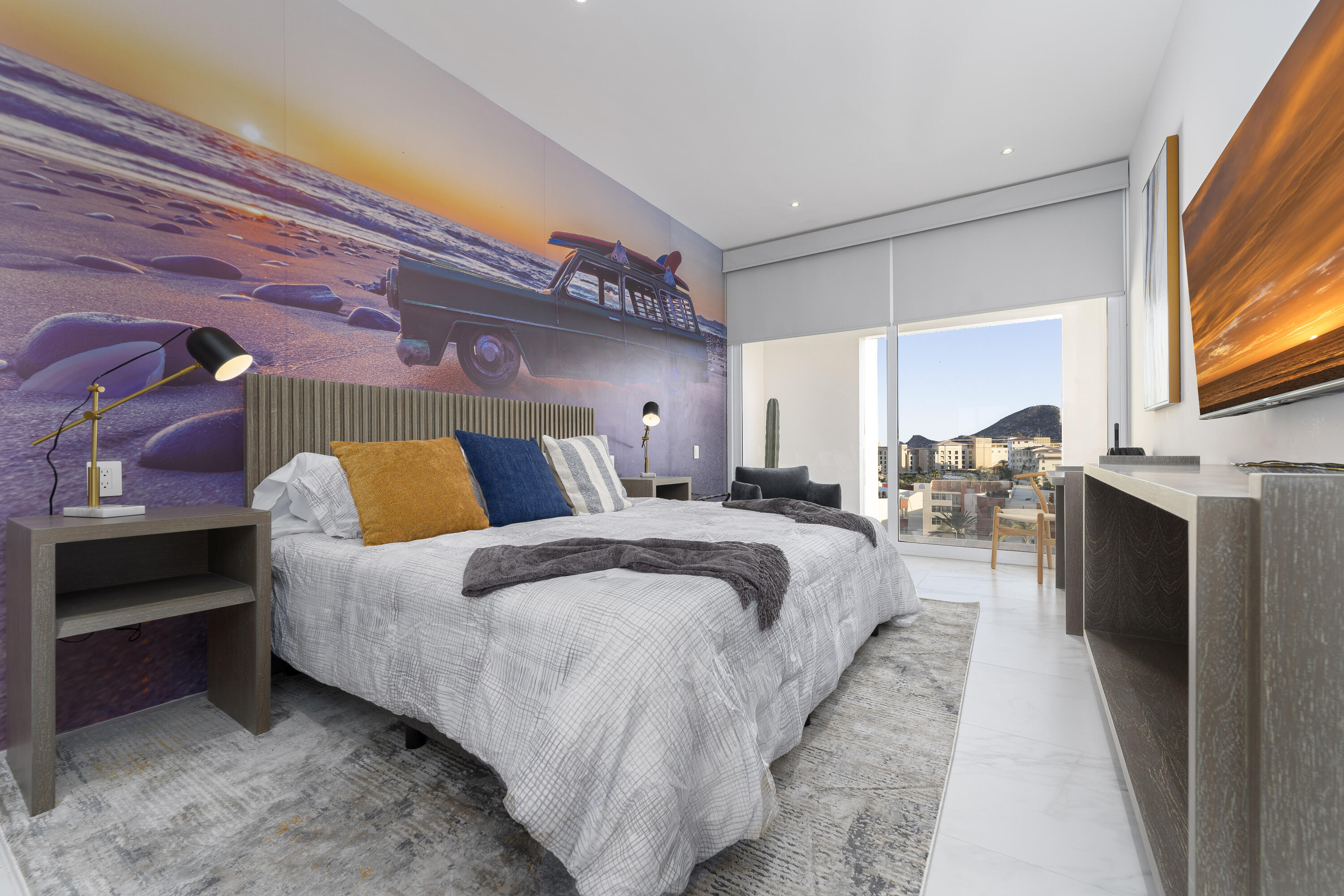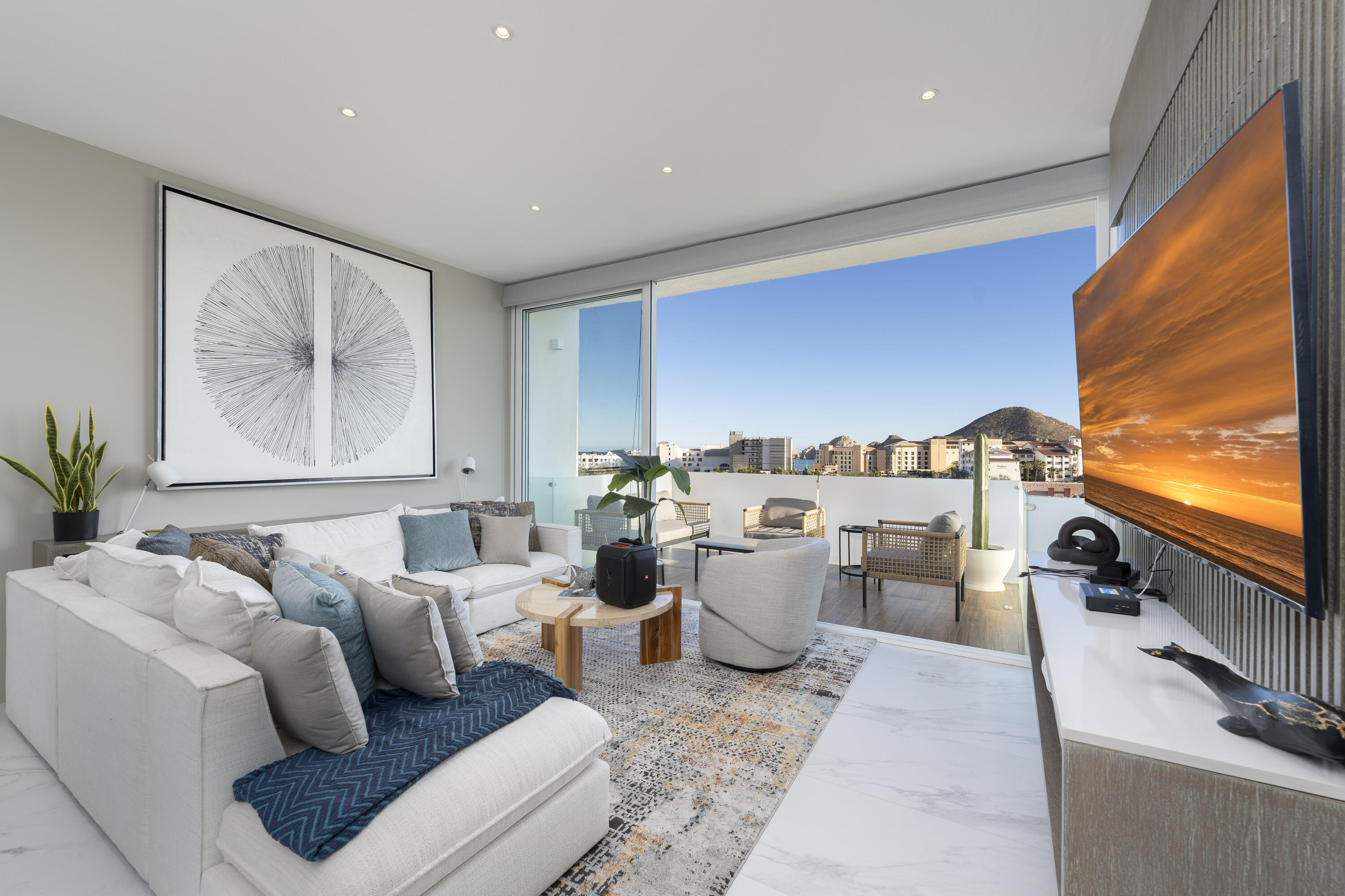 This Vibrant 3 Bedroom Penthouse is located in Downtown Cabo San Lucas inside the spectacular new development Marea.The Vibrant Penthouse has a fully equipped opened kitchen, a living room with beautiful natural light an private terrace, master bedroom with en-suite bathroom, walking closet, working area and balcony, second bedroom with en-suite bathroom, closet and balcony, third bedroom with closet and balcony, a full bathroom. The access to the Private roof top is conveniently located in within the social and private area of the main floor, it has a jacuzzi , a BBQ area, sink ,dining and living area , 2 daybeds and umbrellas and full bathroom.Vibrant PH is a turnkey property with great ROI
