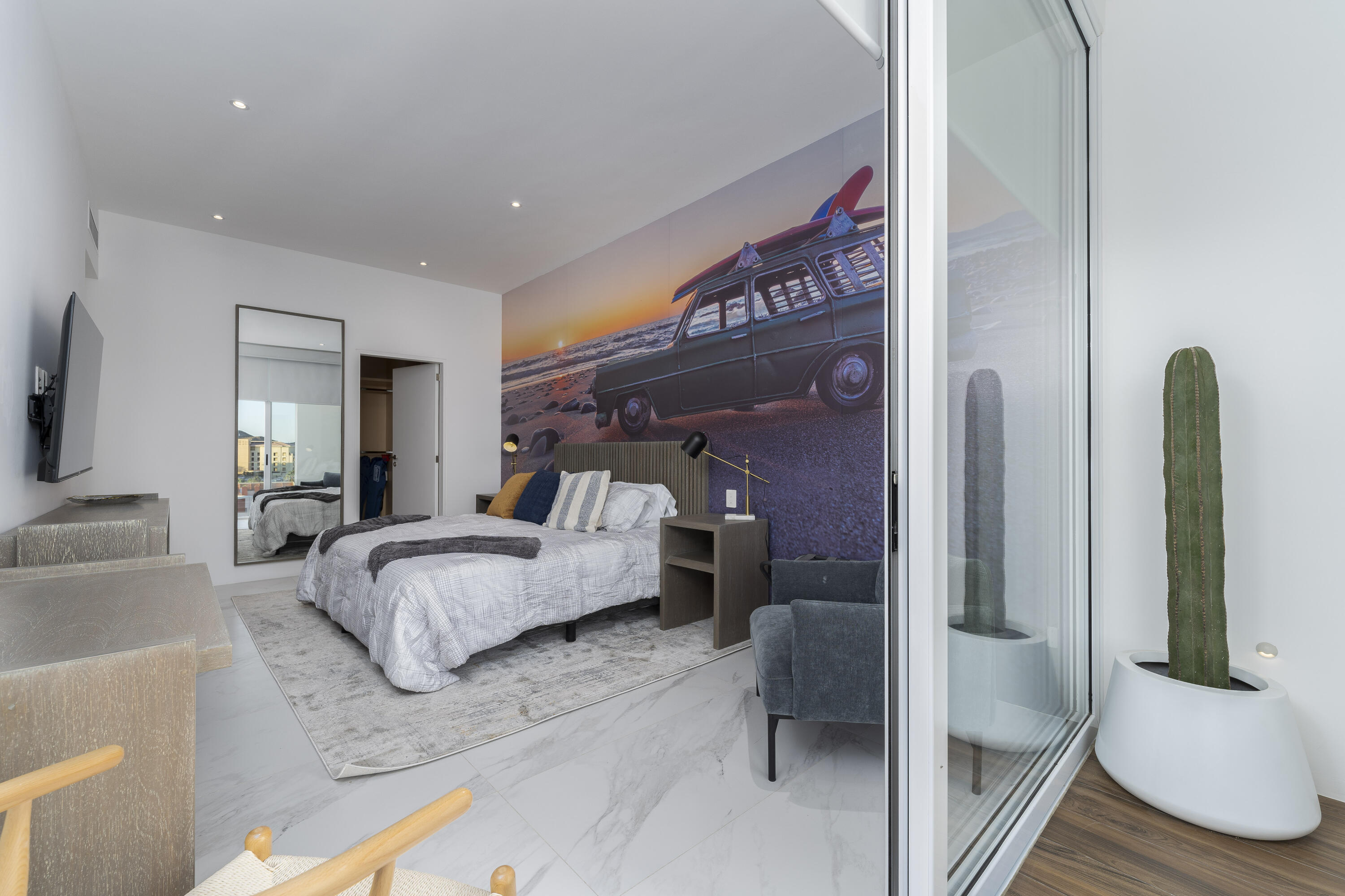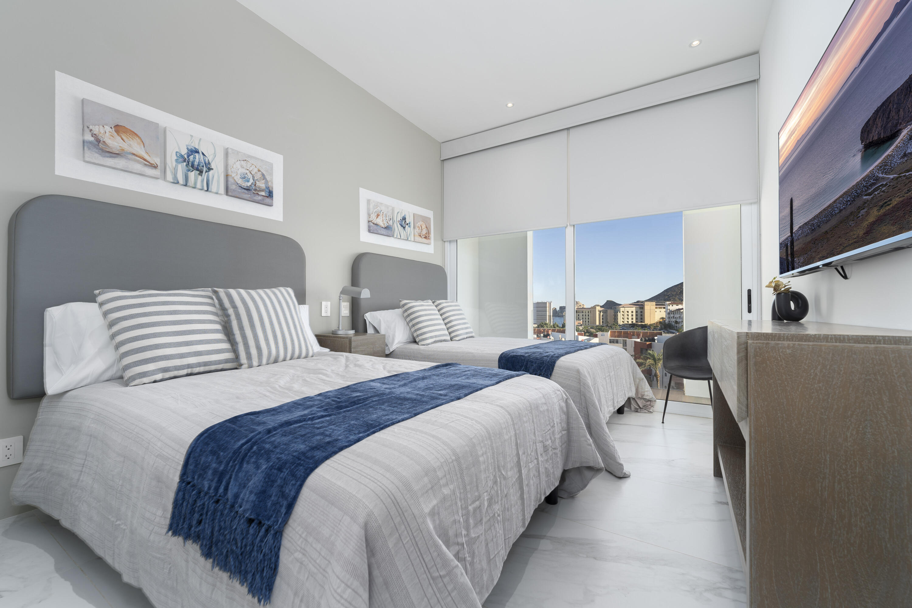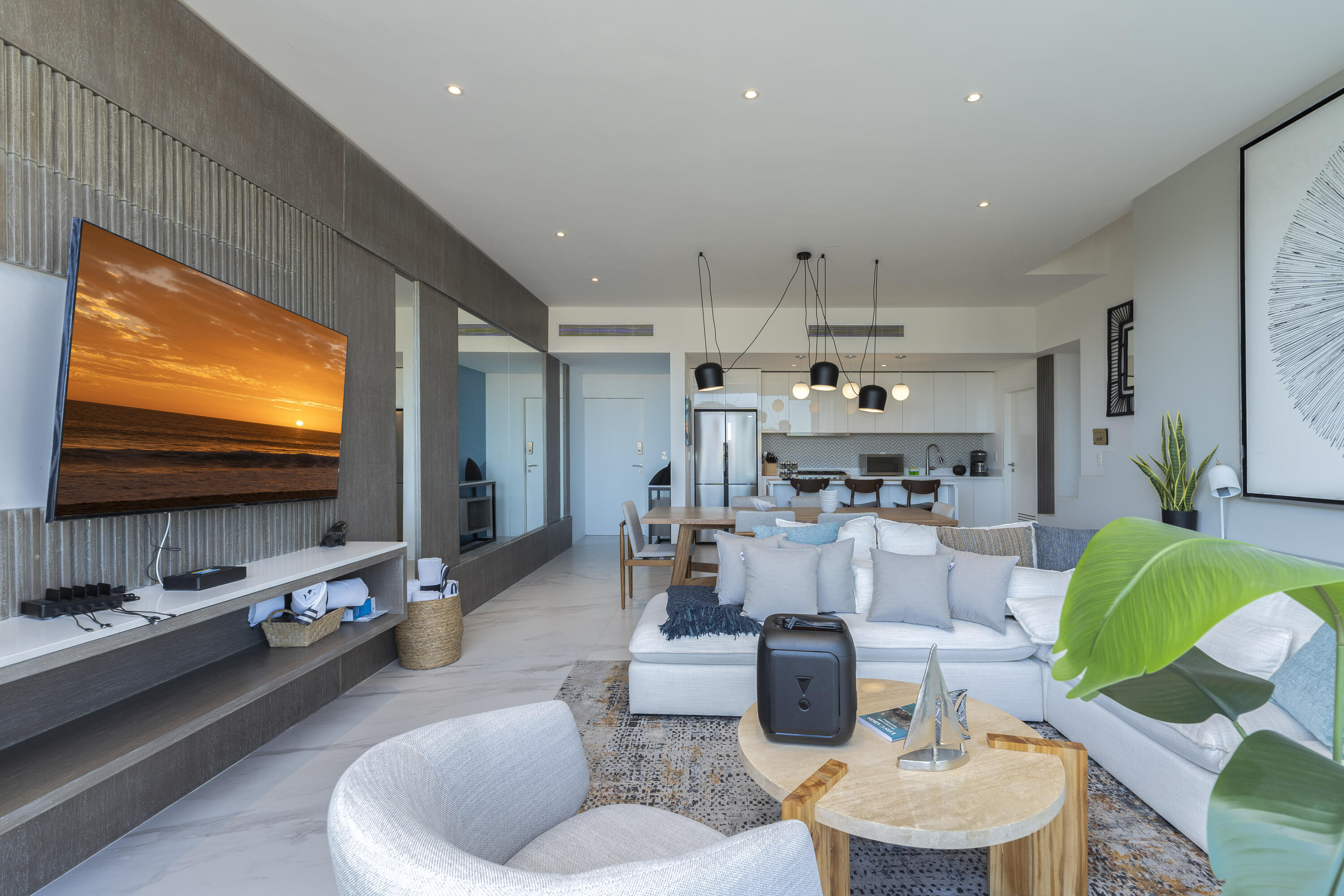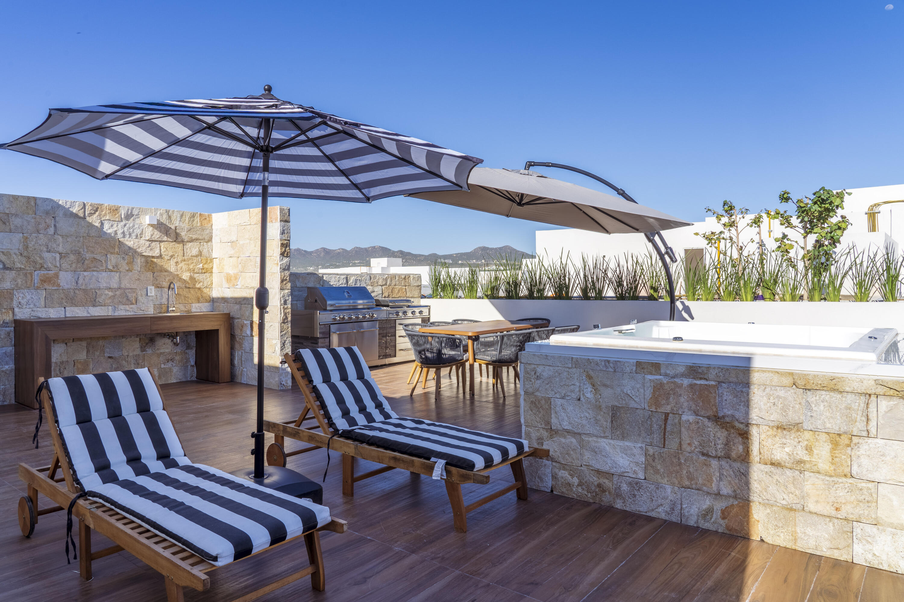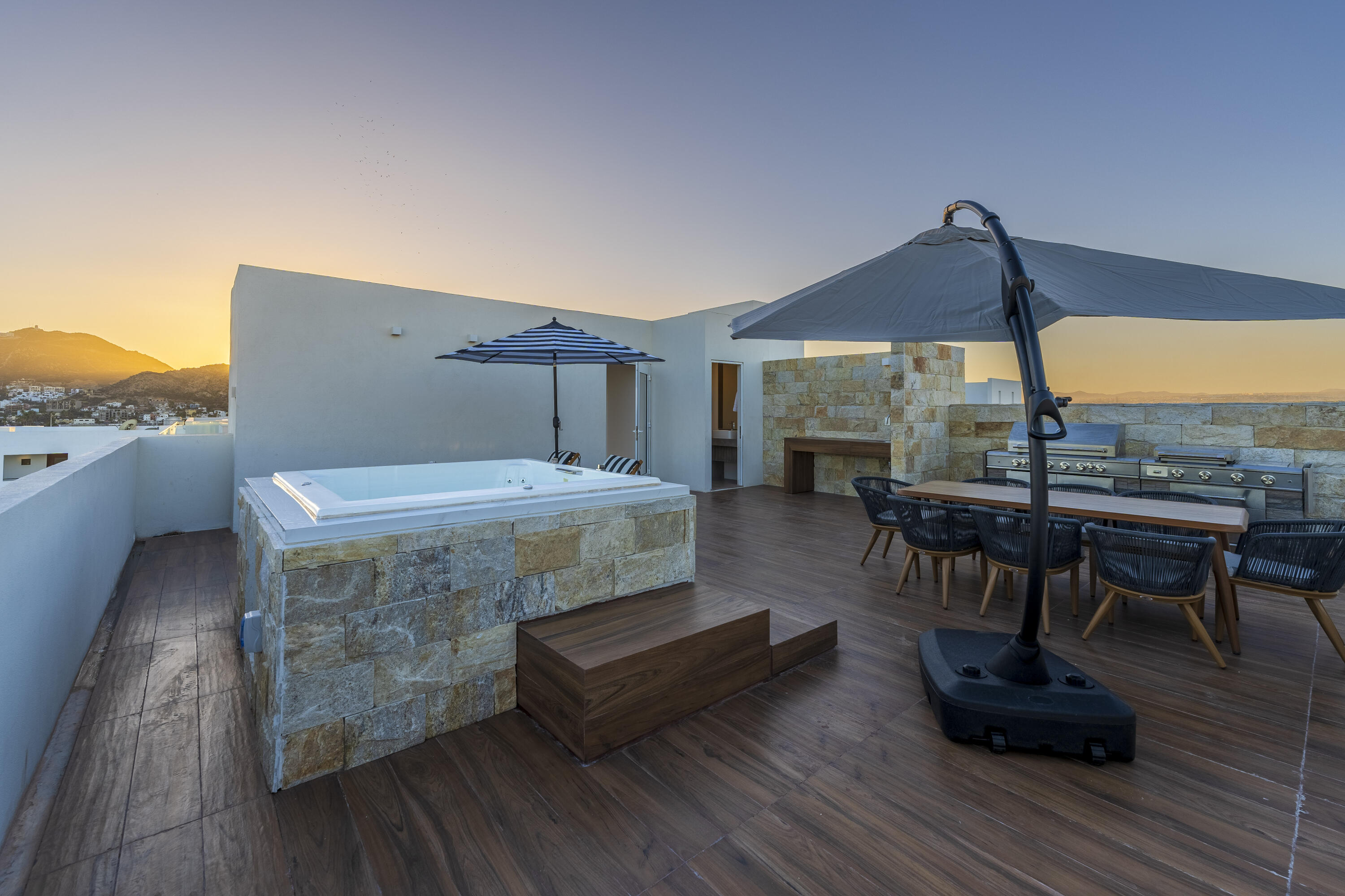 This Vibrant 3 Bedroom Penthouse is located in Downtown Cabo San Lucas inside the spectacular new development Marea.The Vibrant Penthouse has a fully equipped opened kitchen, a living room with beautiful natural light an private terrace, master bedroom with en-suite bathroom, walking closet, working area and balcony, second bedroom with en-suite bathroom, closet and balcony, third bedroom with closet and balcony, a full bathroom. The access to the Private roof top is conveniently located in within the social and private area of the main floor, it has a jacuzzi , a BBQ area, sink ,dining and living area , 2 daybeds and umbrellas and full bathroom.Vibrant PH is a turnkey property with great ROI