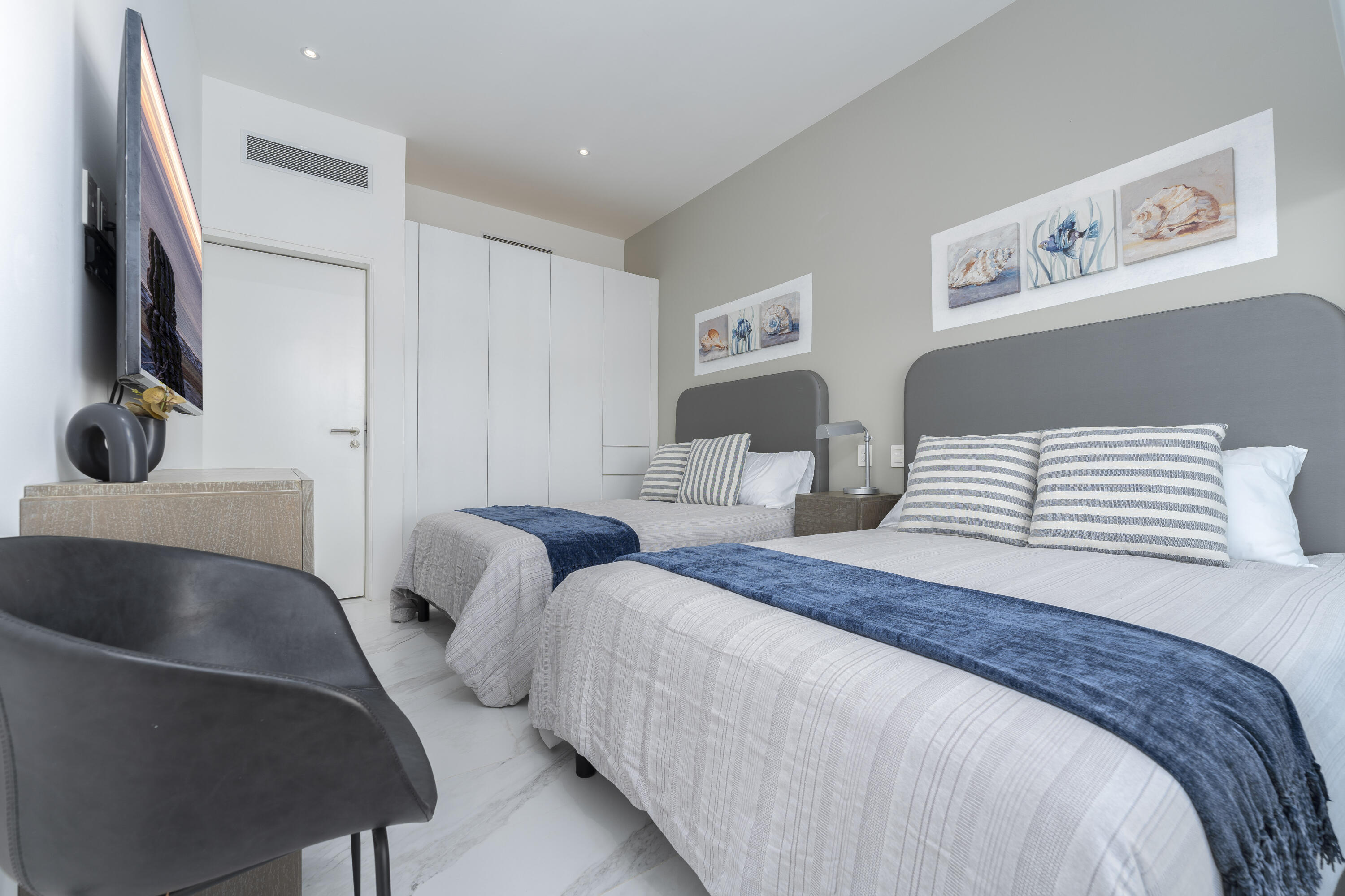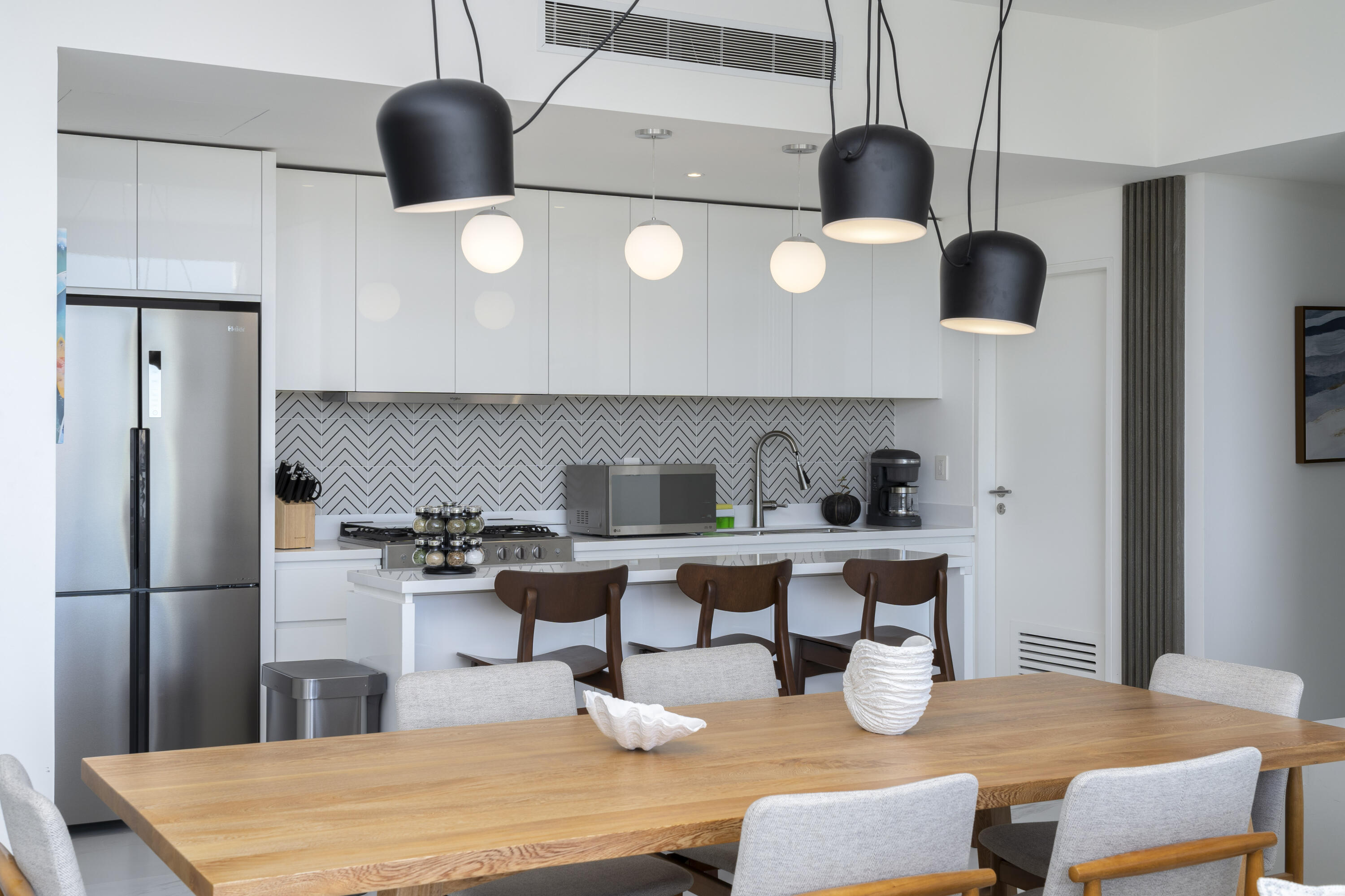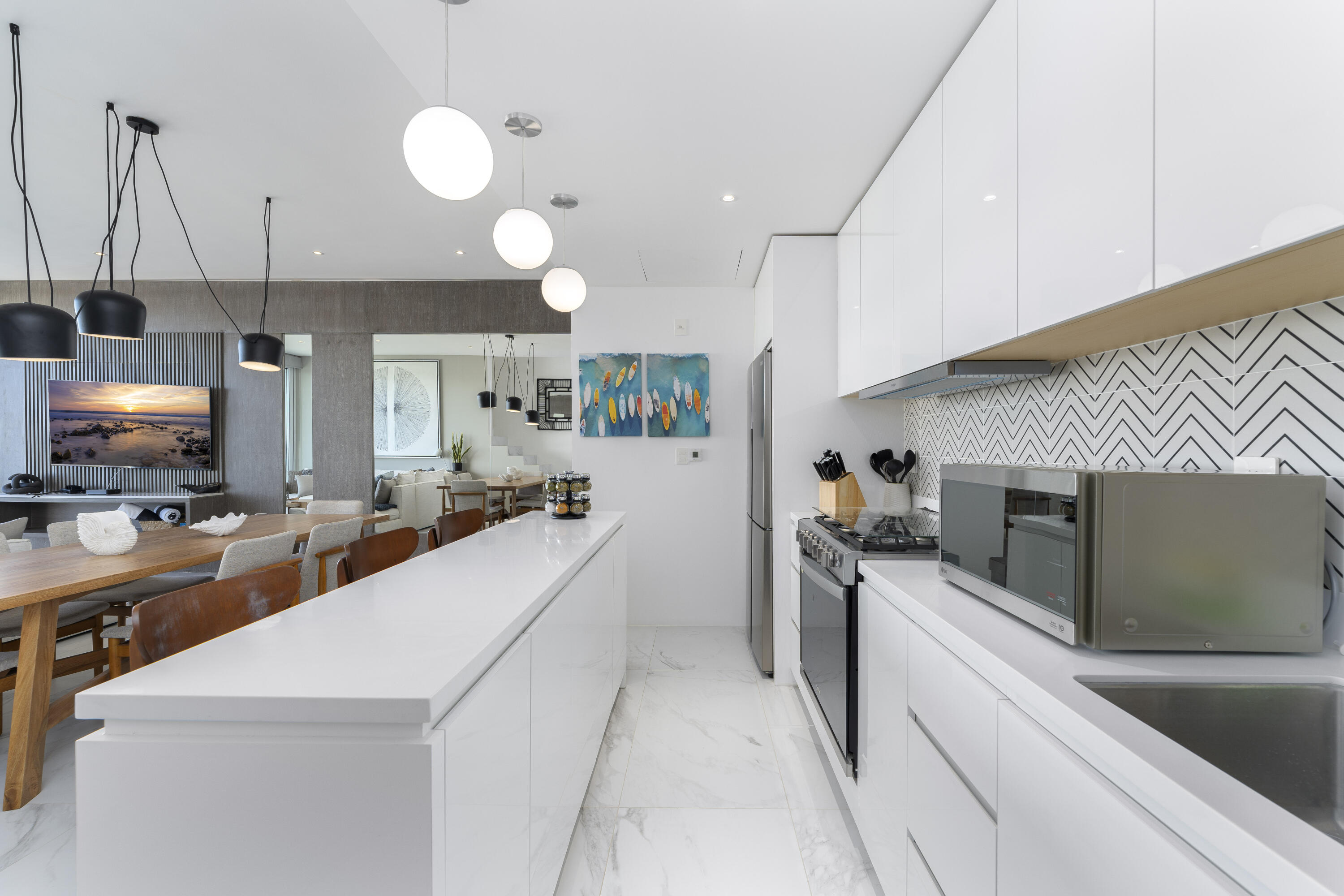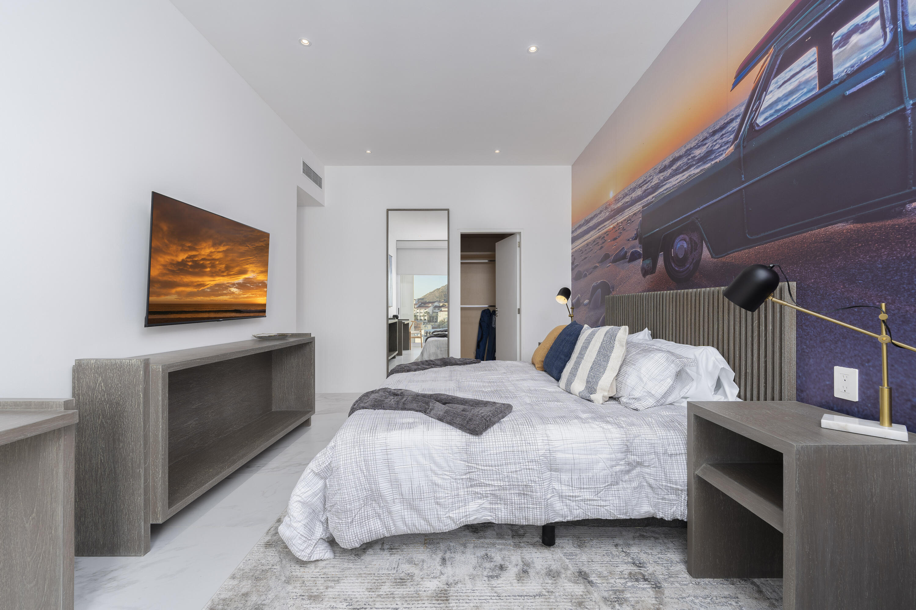 This Vibrant 3 Bedroom Penthouse is located in Downtown Cabo San Lucas inside the spectacular new development Marea.The Vibrant Penthouse has a fully equipped opened kitchen, a living room with beautiful natural light an private terrace, master bedroom with en-suite bathroom, walking closet, working area and balcony, second bedroom with en-suite bathroom, closet and balcony, third bedroom with closet and balcony, a full bathroom. The access to the Private roof top is conveniently located in within the social and private area of the main floor, it has a jacuzzi , a BBQ area, sink ,dining and living area , 2 daybeds and umbrellas and full bathroom.Vibrant PH is a turnkey property with great ROI