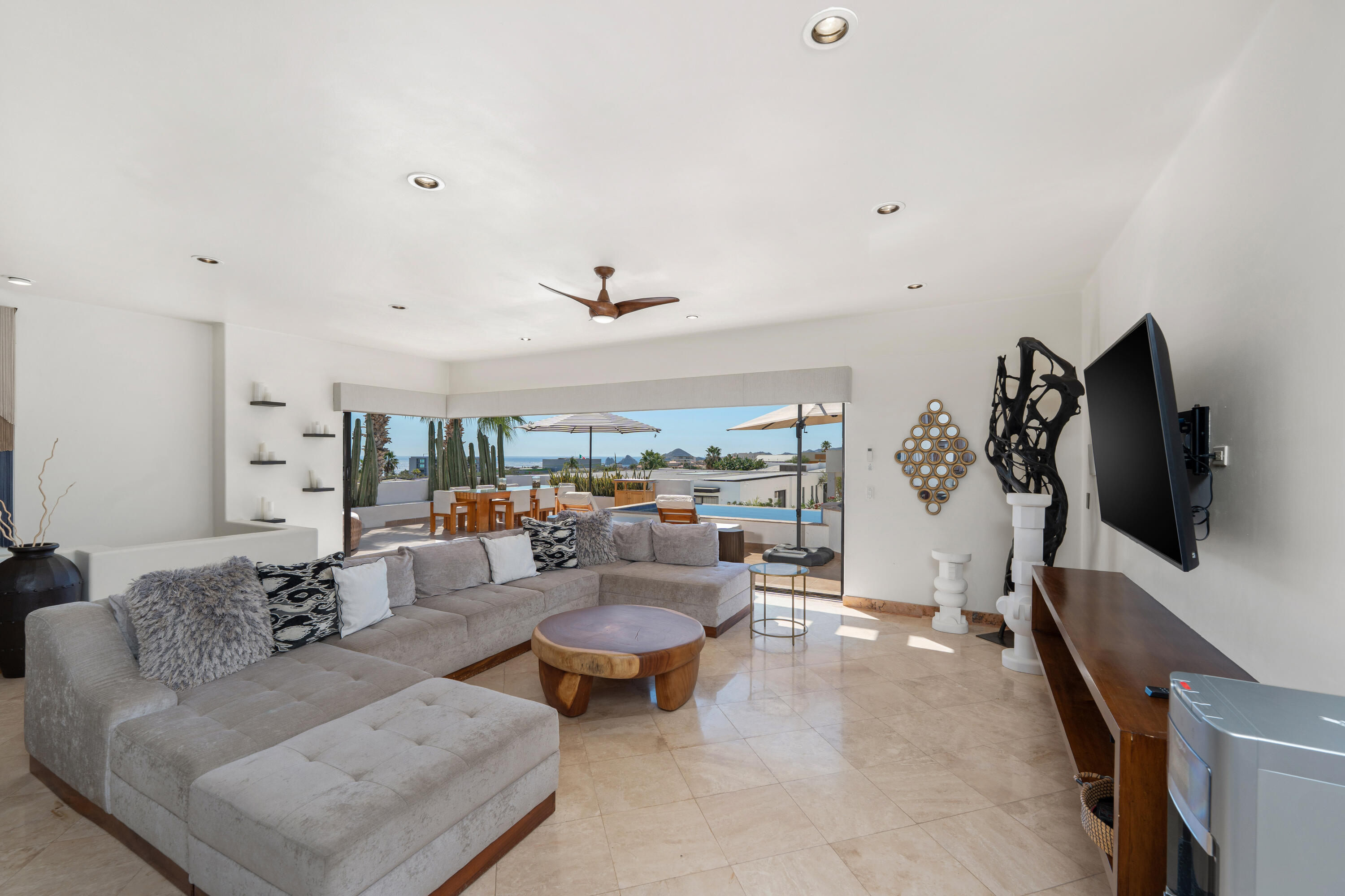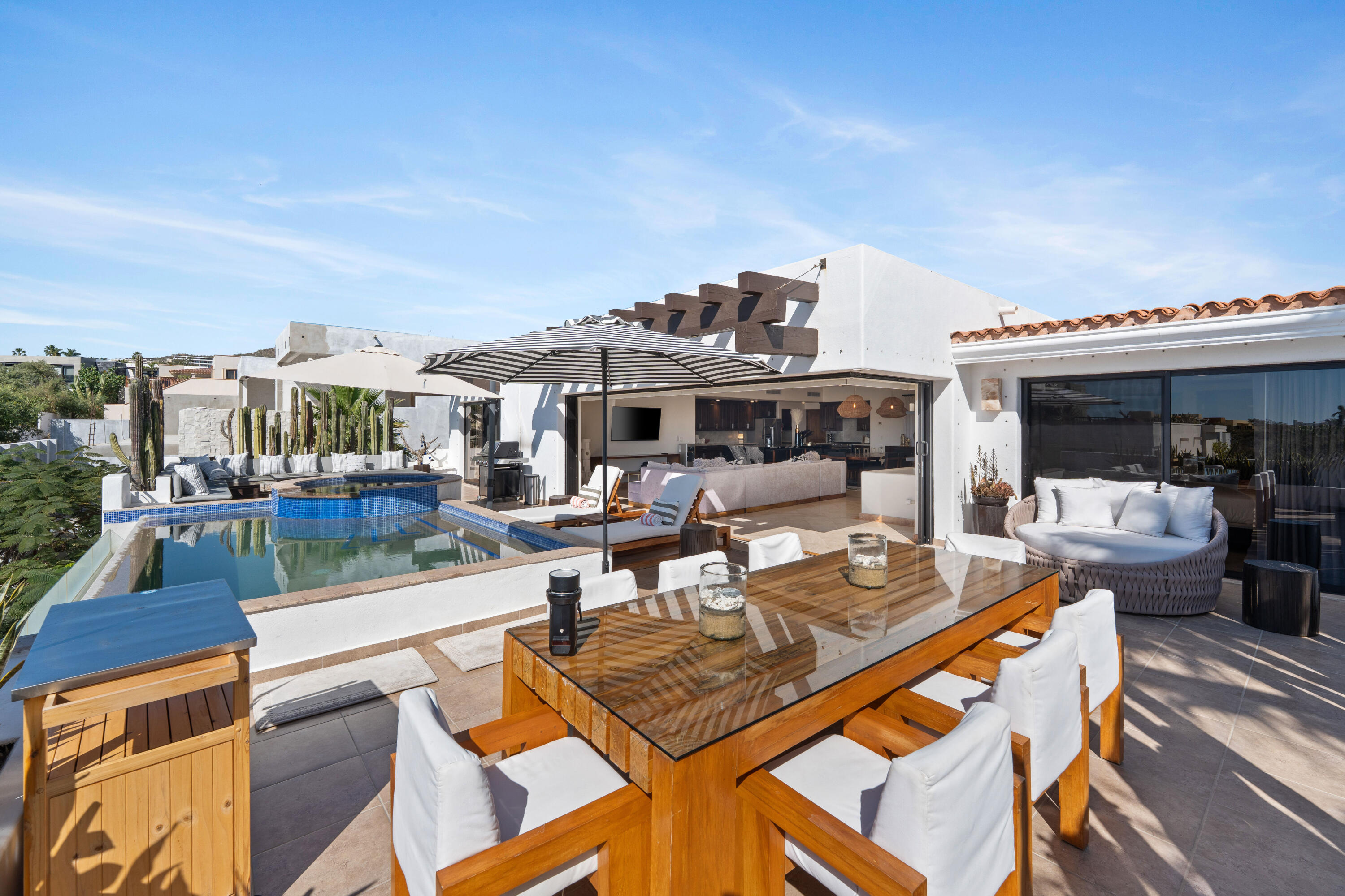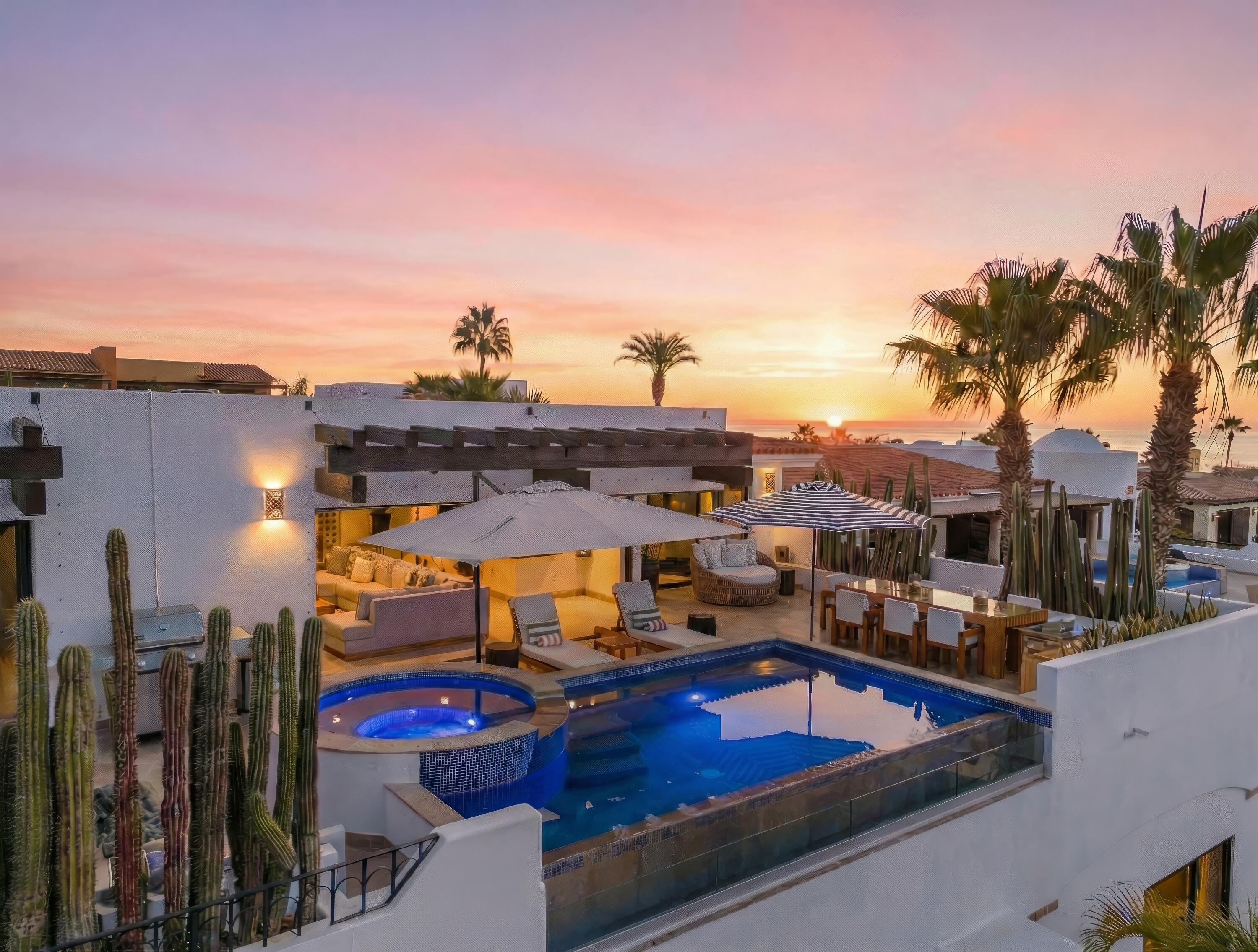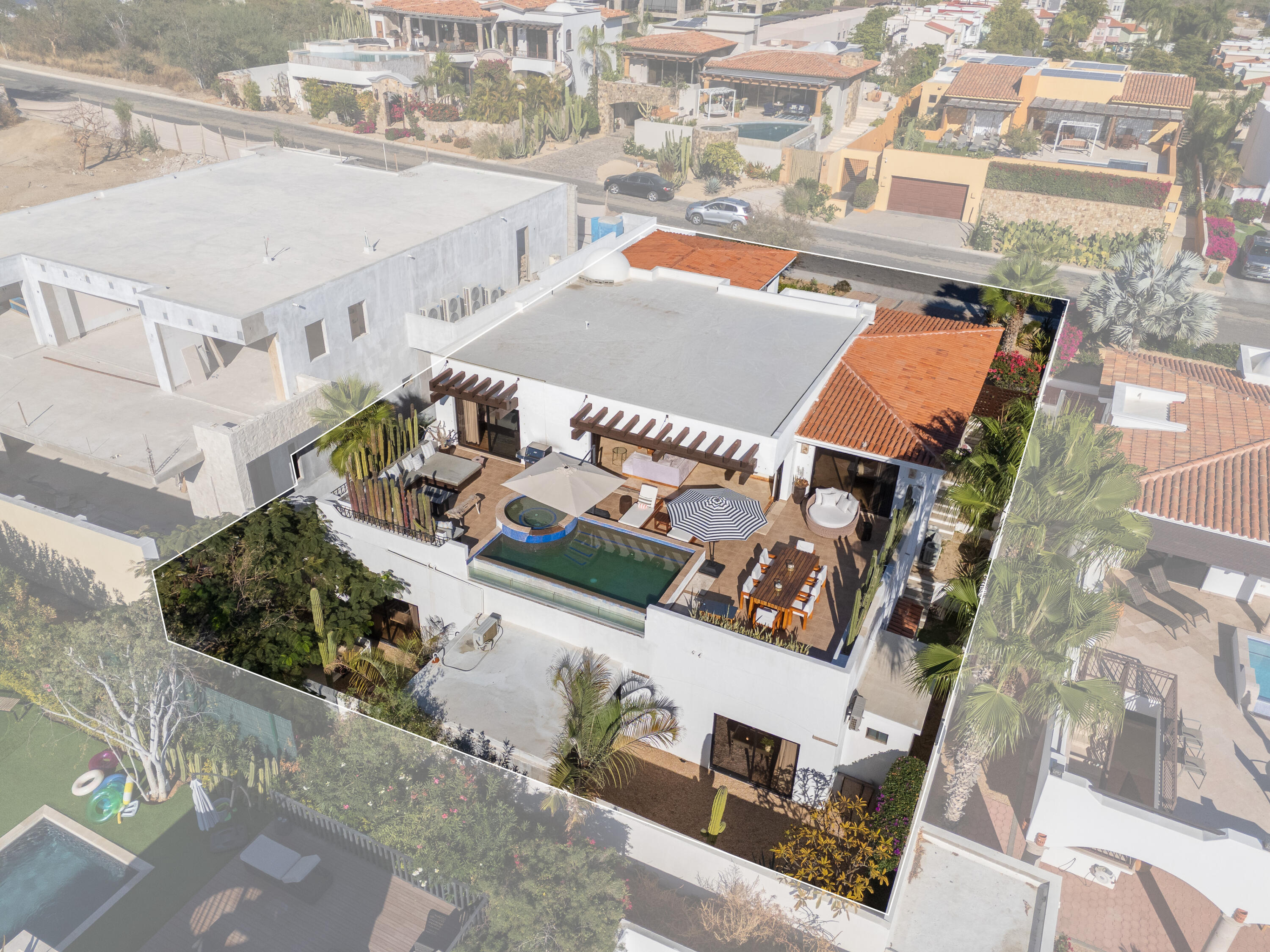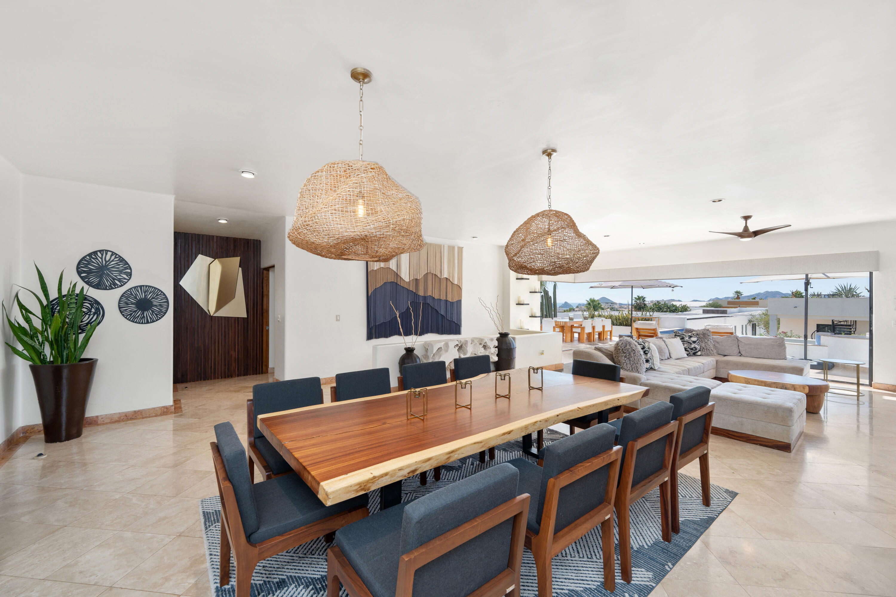 Elegant 463 m villa in Cabo San Lucas offering six bedrooms and 6.5 bathrooms across two thoughtfully designed levels. The home features high ceilings, abundant natural light, and a refined blend of contemporary design with subtle Mexican architectural elements. Open living areas connect seamlessly to a well-appointed kitchen with custom wood cabinetry and quality appliances. Each bedroom provides privacy and comfort, while bathrooms are finished with travertine and tasteful details. Outdoor living is enhanced by a spacious terrace ideal for relaxing or entertaining. A well-balanced residence designed for comfort, style, and effortless Cabo living.