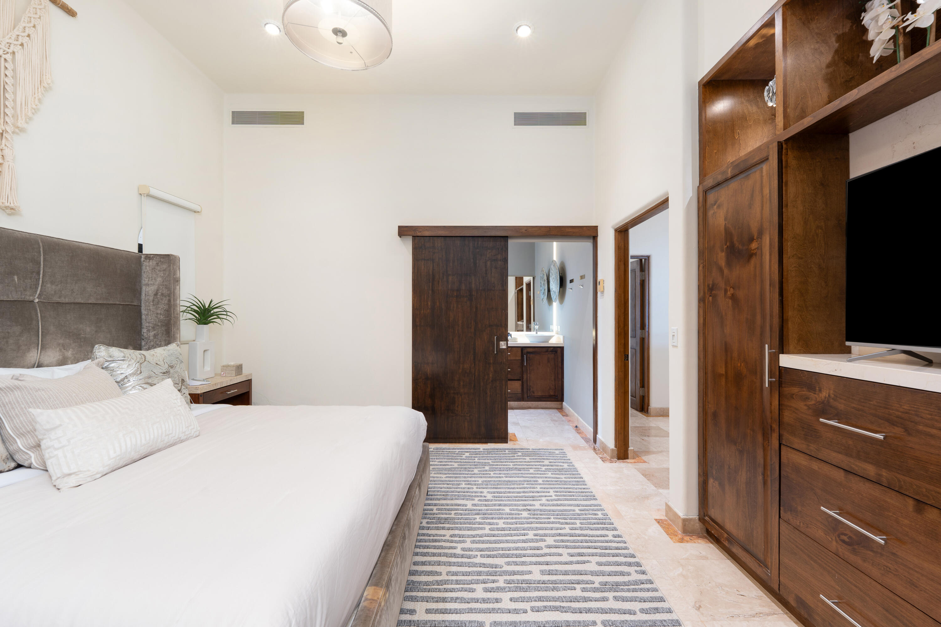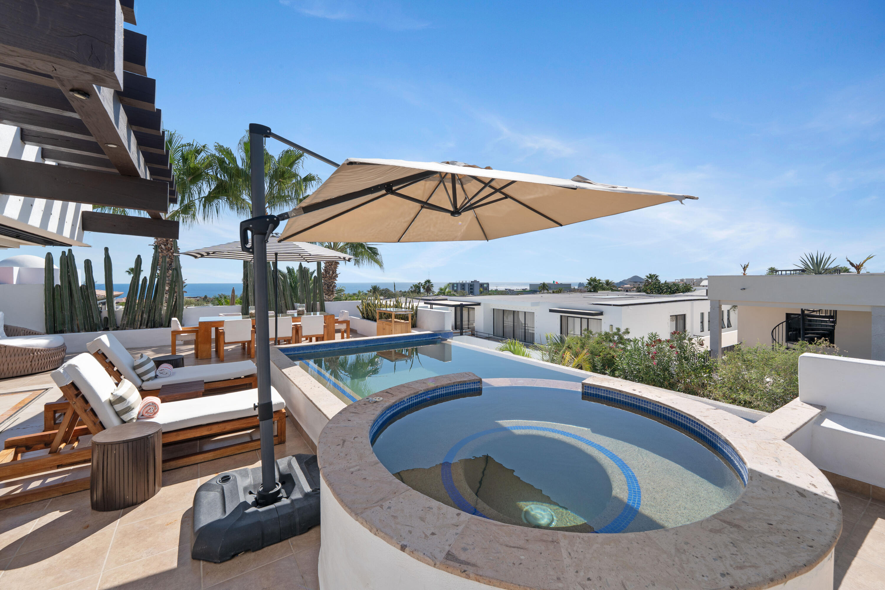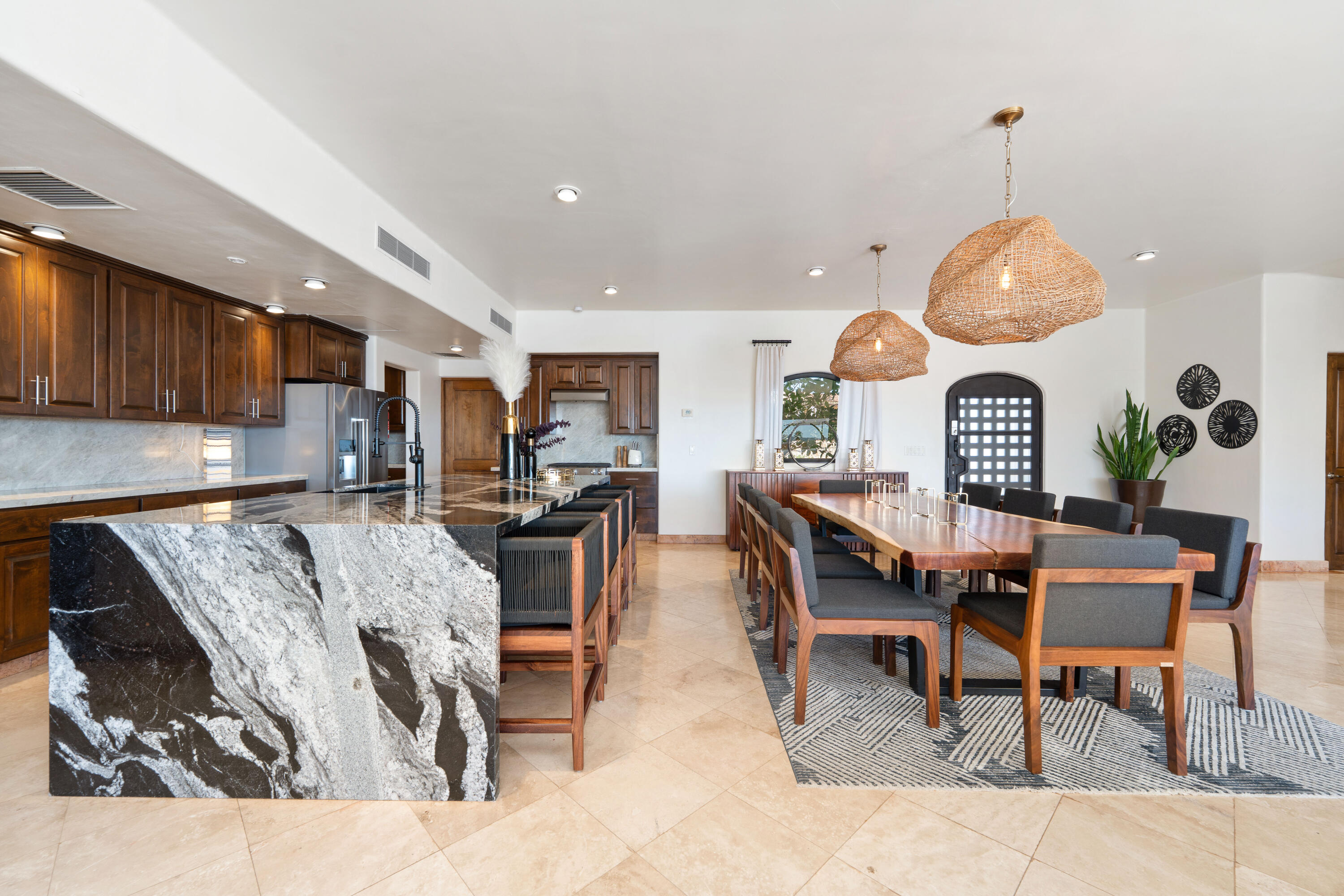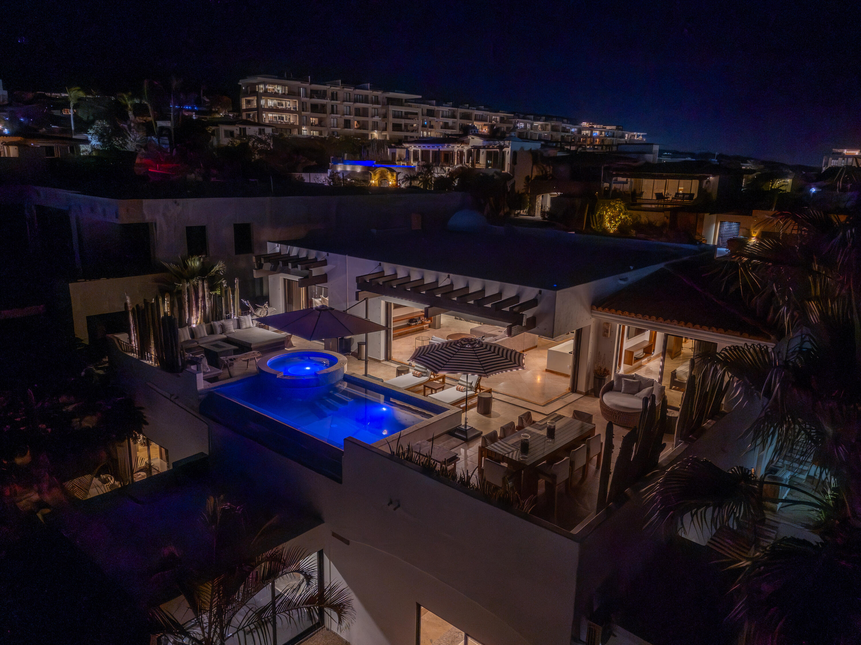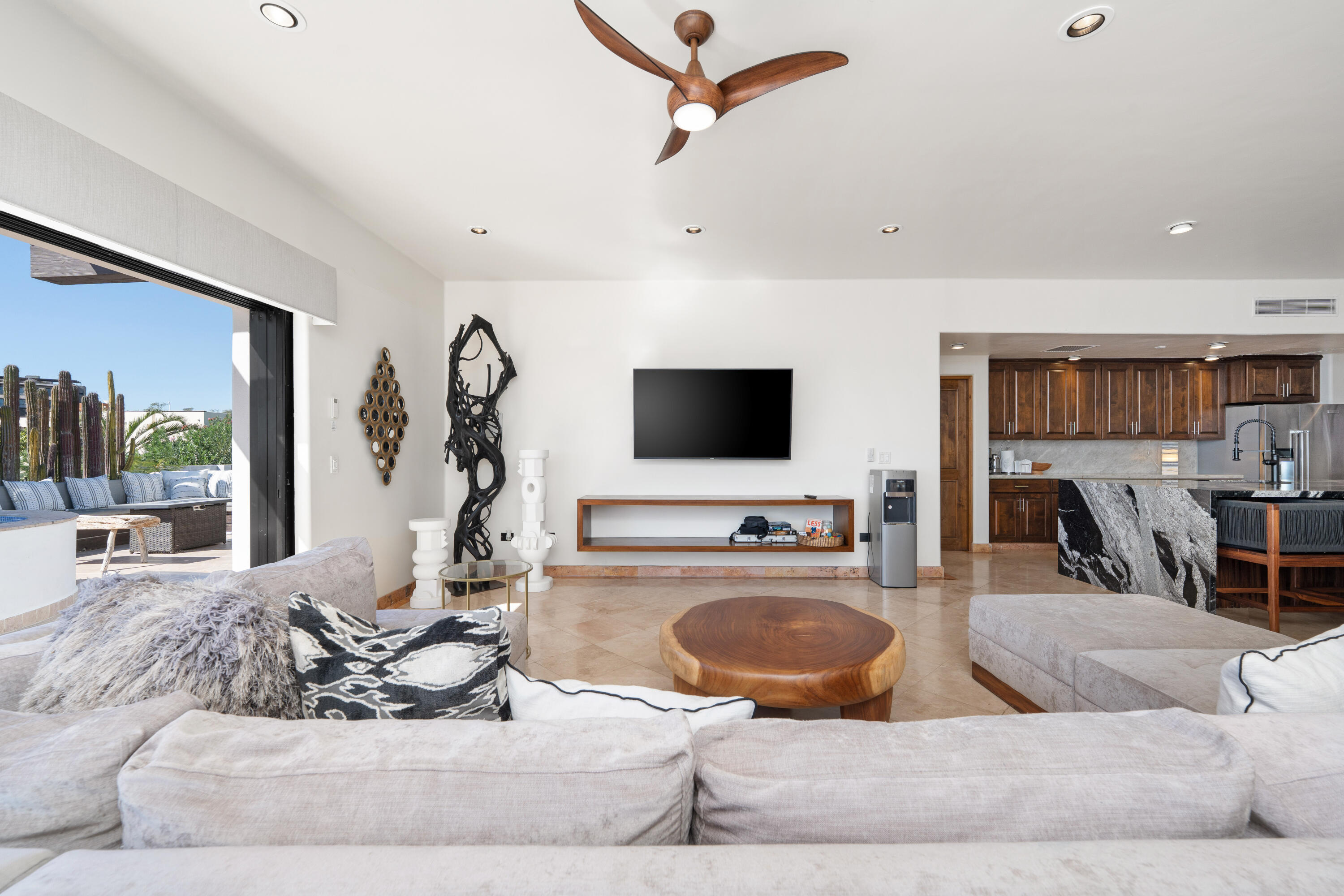 Elegant 463 m villa in Cabo San Lucas offering six bedrooms and 6.5 bathrooms across two thoughtfully designed levels. The home features high ceilings, abundant natural light, and a refined blend of contemporary design with subtle Mexican architectural elements. Open living areas connect seamlessly to a well-appointed kitchen with custom wood cabinetry and quality appliances. Each bedroom provides privacy and comfort, while bathrooms are finished with travertine and tasteful details. Outdoor living is enhanced by a spacious terrace ideal for relaxing or entertaining. A well-balanced residence designed for comfort, style, and effortless Cabo living.