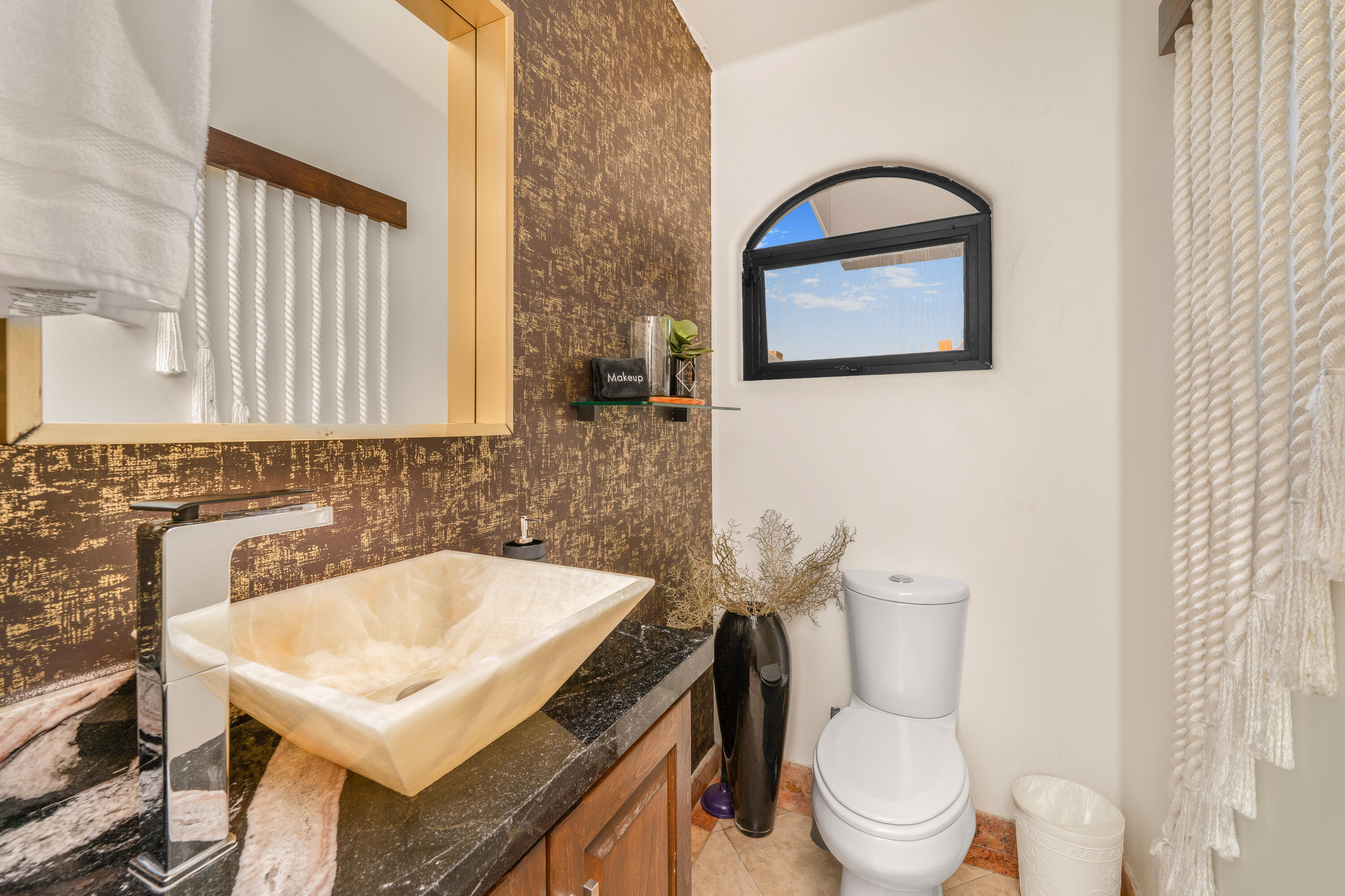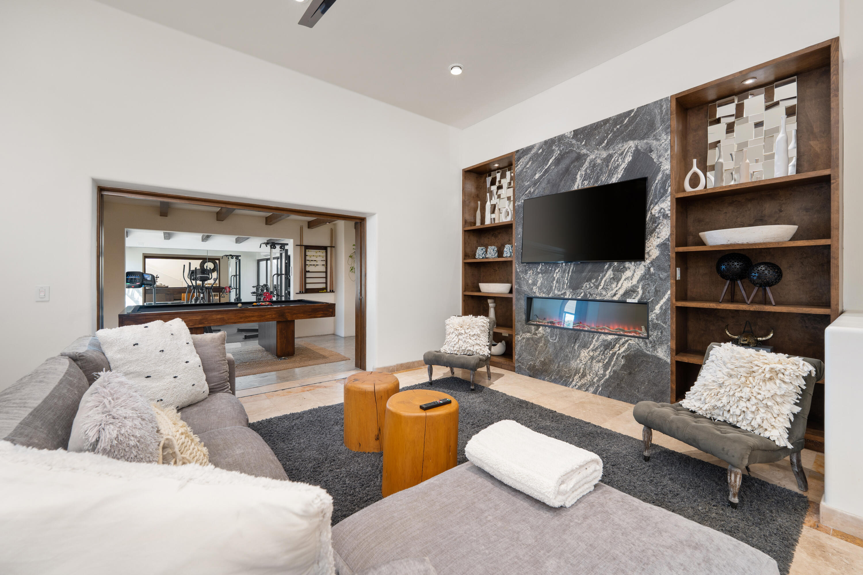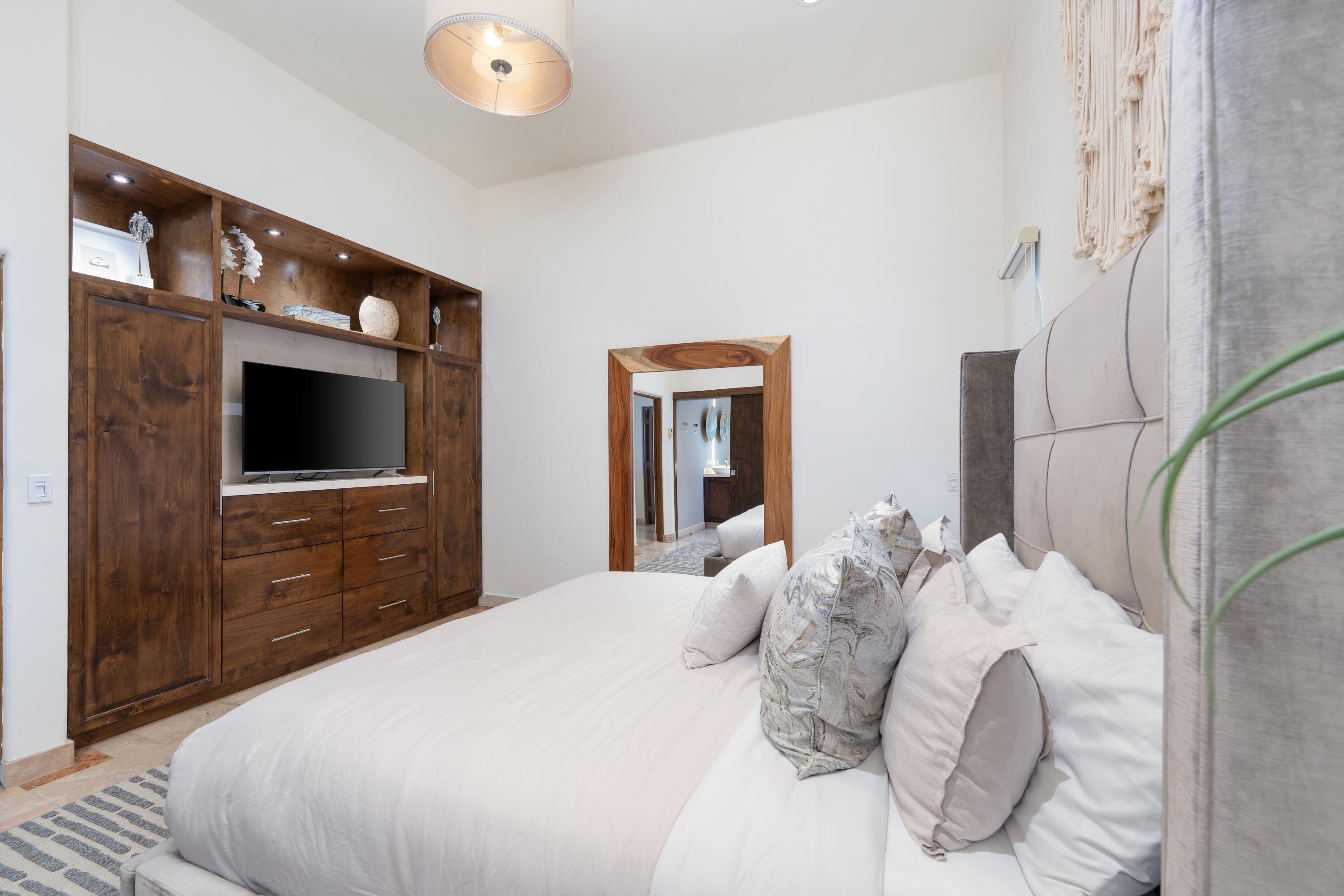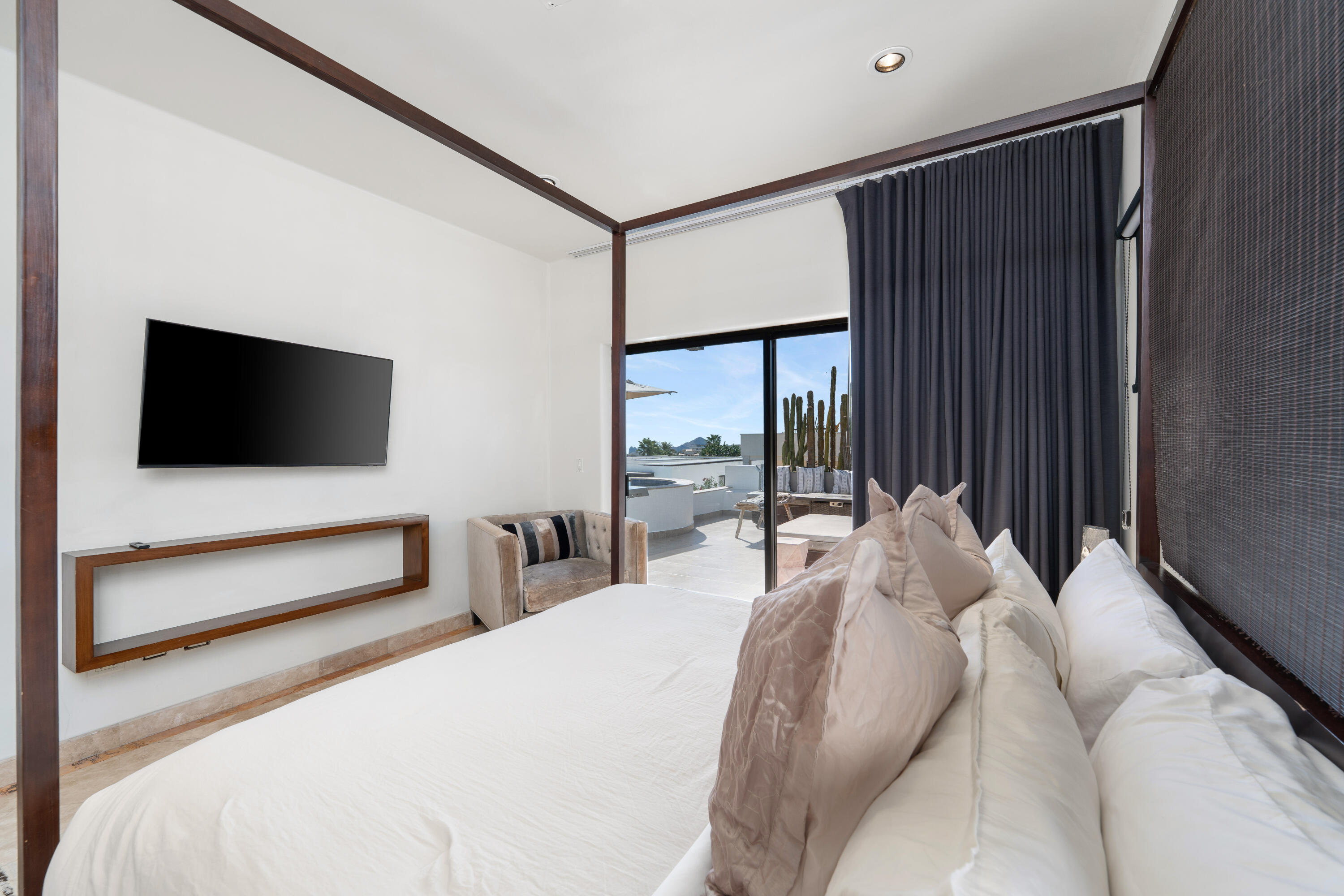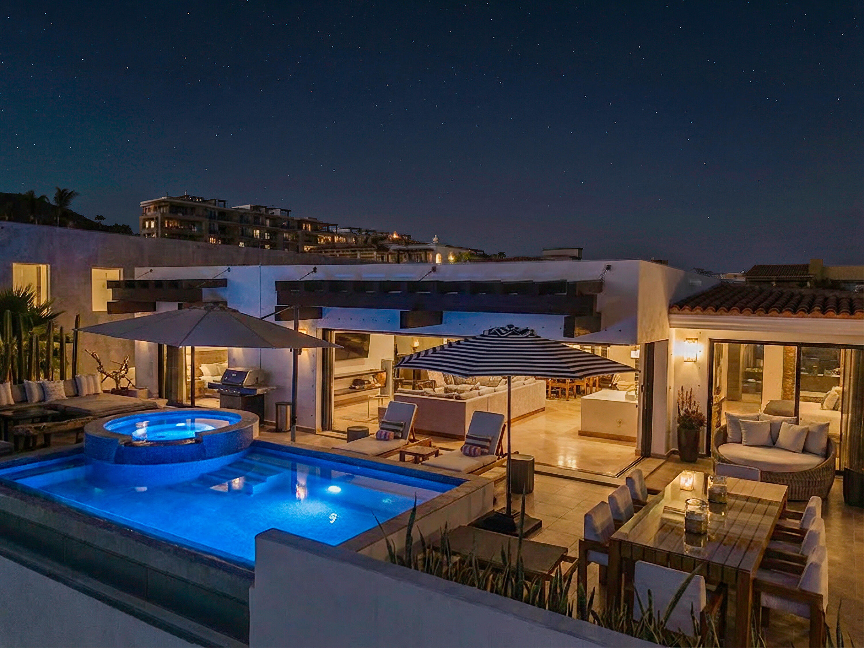 Elegant 463 m villa in Cabo San Lucas offering six bedrooms and 6.5 bathrooms across two thoughtfully designed levels. The home features high ceilings, abundant natural light, and a refined blend of contemporary design with subtle Mexican architectural elements. Open living areas connect seamlessly to a well-appointed kitchen with custom wood cabinetry and quality appliances. Each bedroom provides privacy and comfort, while bathrooms are finished with travertine and tasteful details. Outdoor living is enhanced by a spacious terrace ideal for relaxing or entertaining. A well-balanced residence designed for comfort, style, and effortless Cabo living.