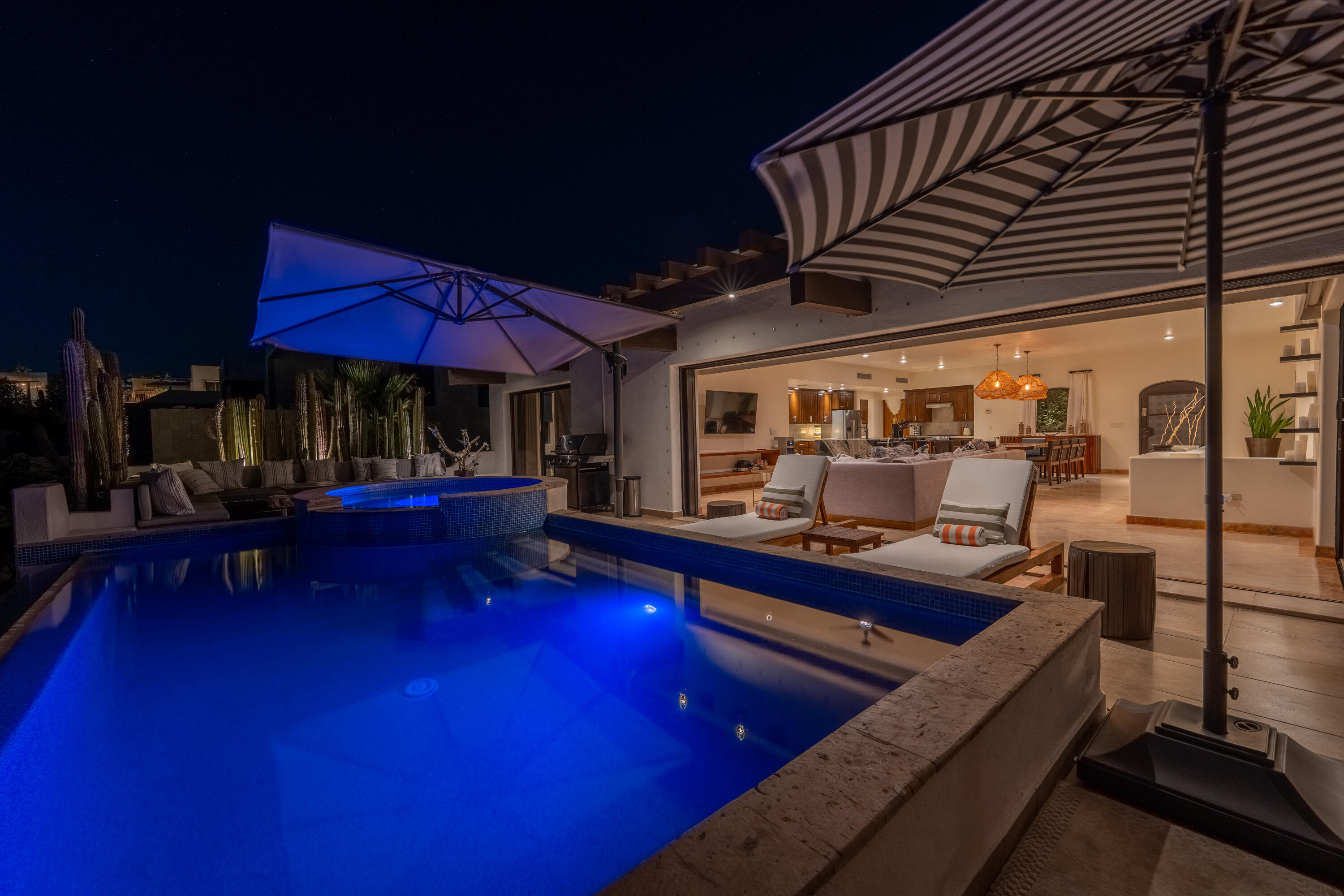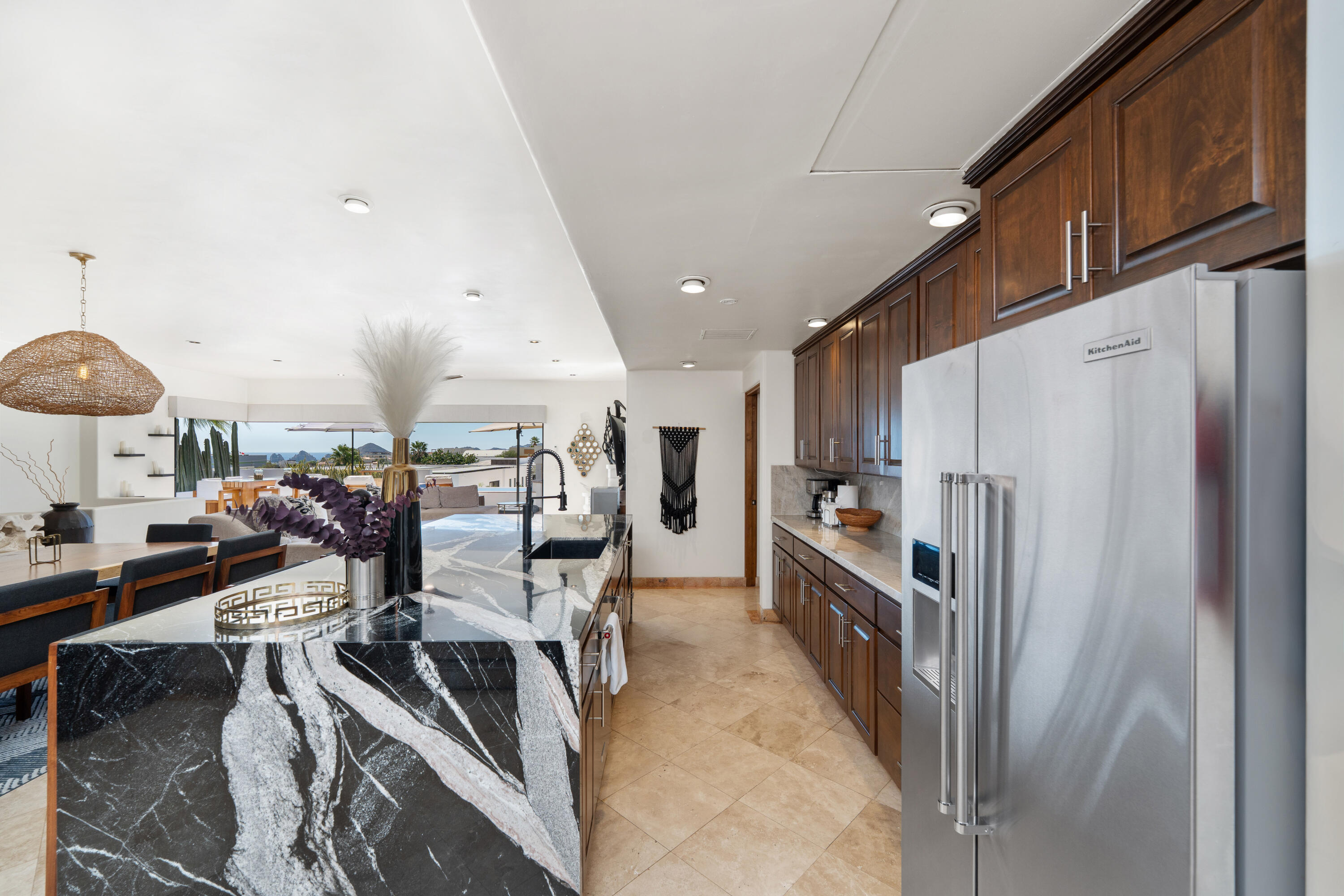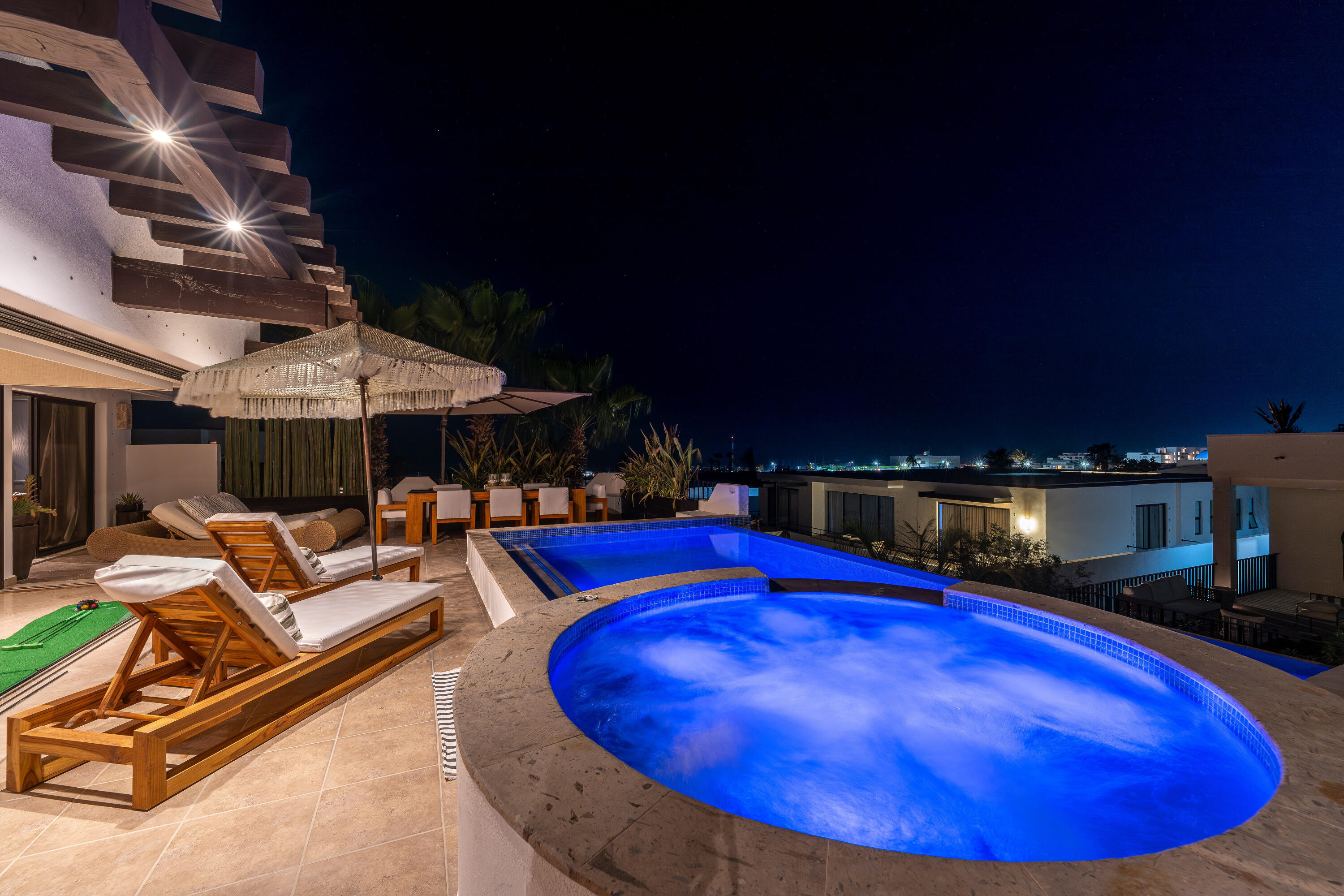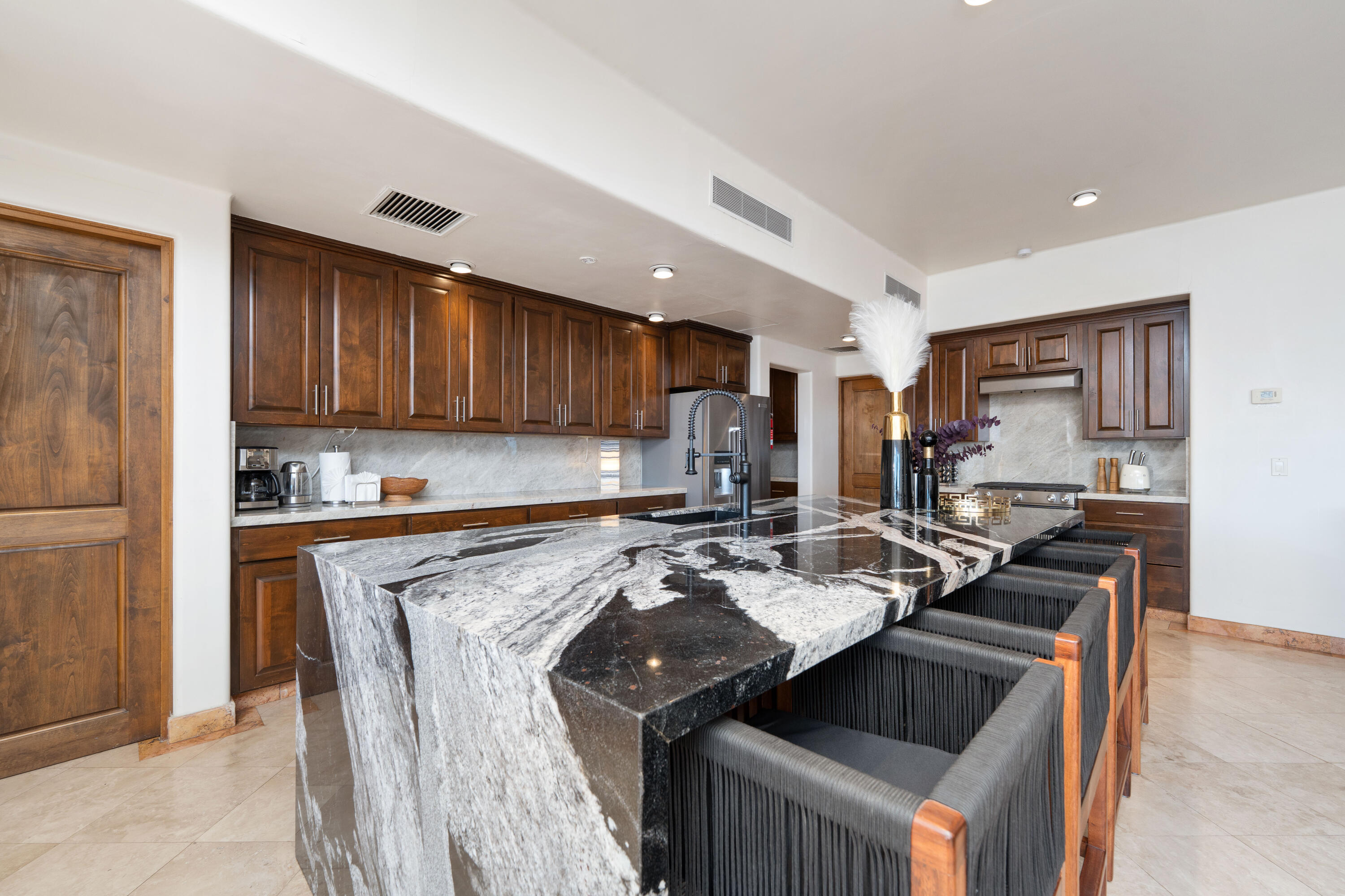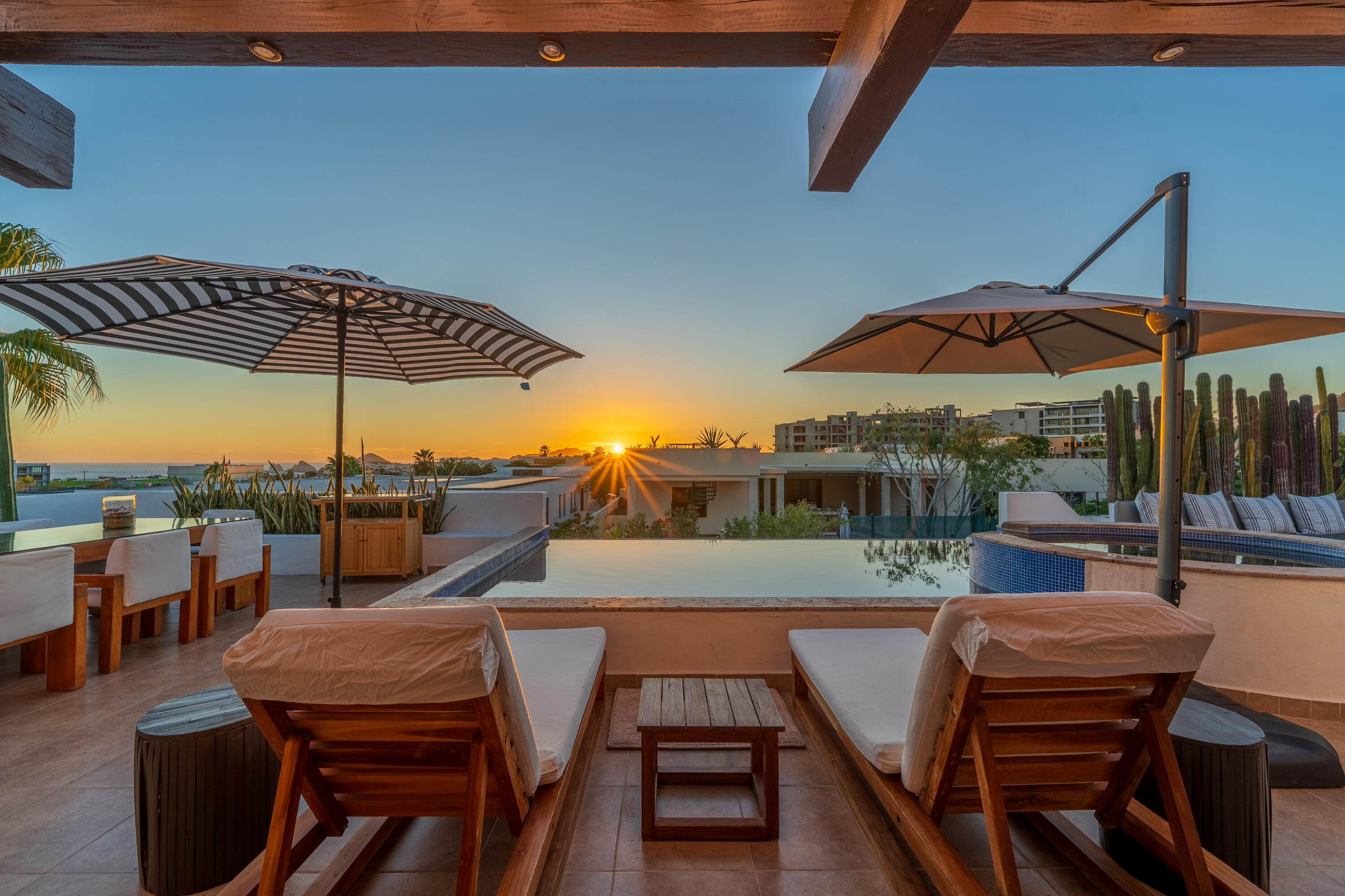 Elegant 463 m villa in Cabo San Lucas offering six bedrooms and 6.5 bathrooms across two thoughtfully designed levels. The home features high ceilings, abundant natural light, and a refined blend of contemporary design with subtle Mexican architectural elements. Open living areas connect seamlessly to a well-appointed kitchen with custom wood cabinetry and quality appliances. Each bedroom provides privacy and comfort, while bathrooms are finished with travertine and tasteful details. Outdoor living is enhanced by a spacious terrace ideal for relaxing or entertaining. A well-balanced residence designed for comfort, style, and effortless Cabo living.