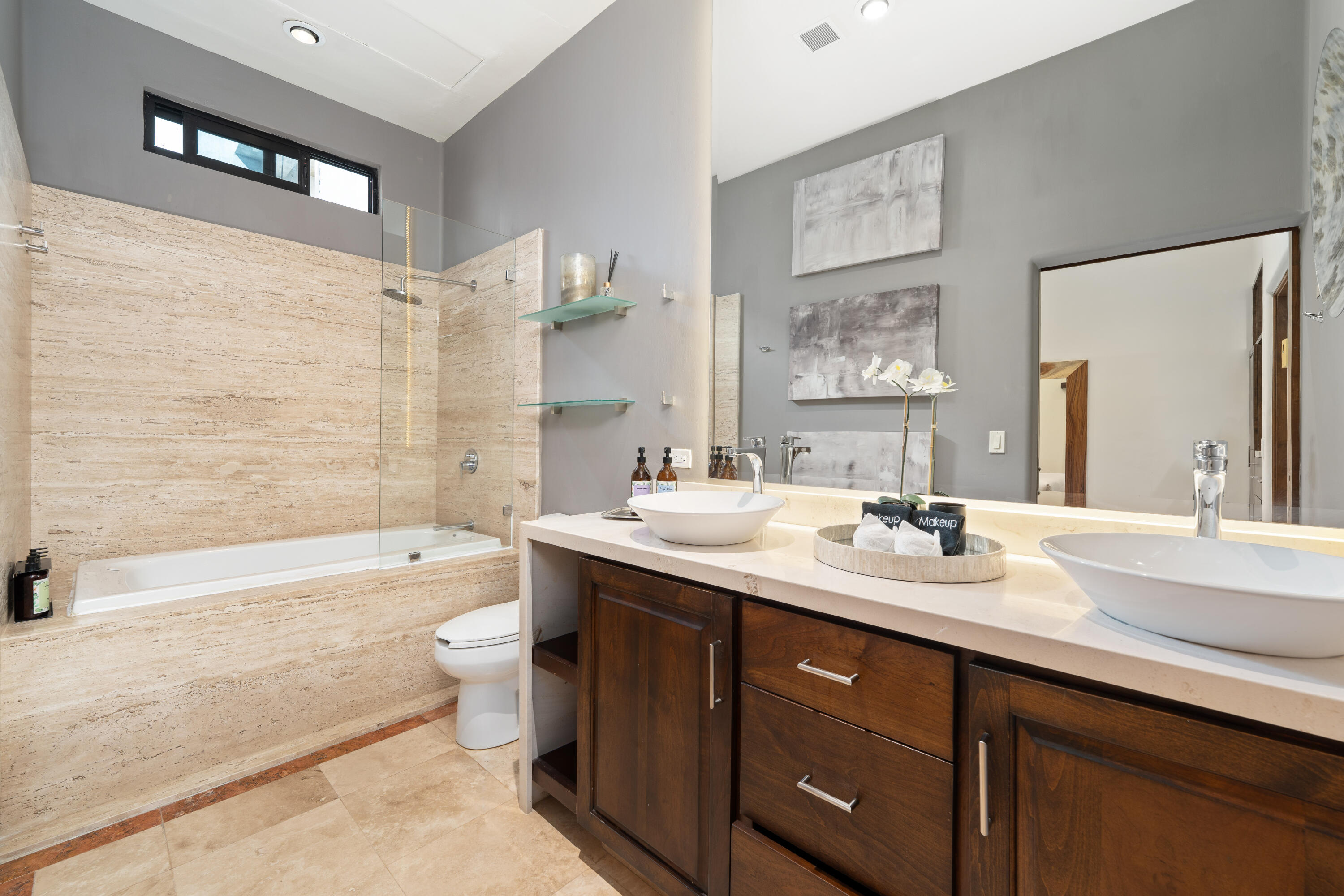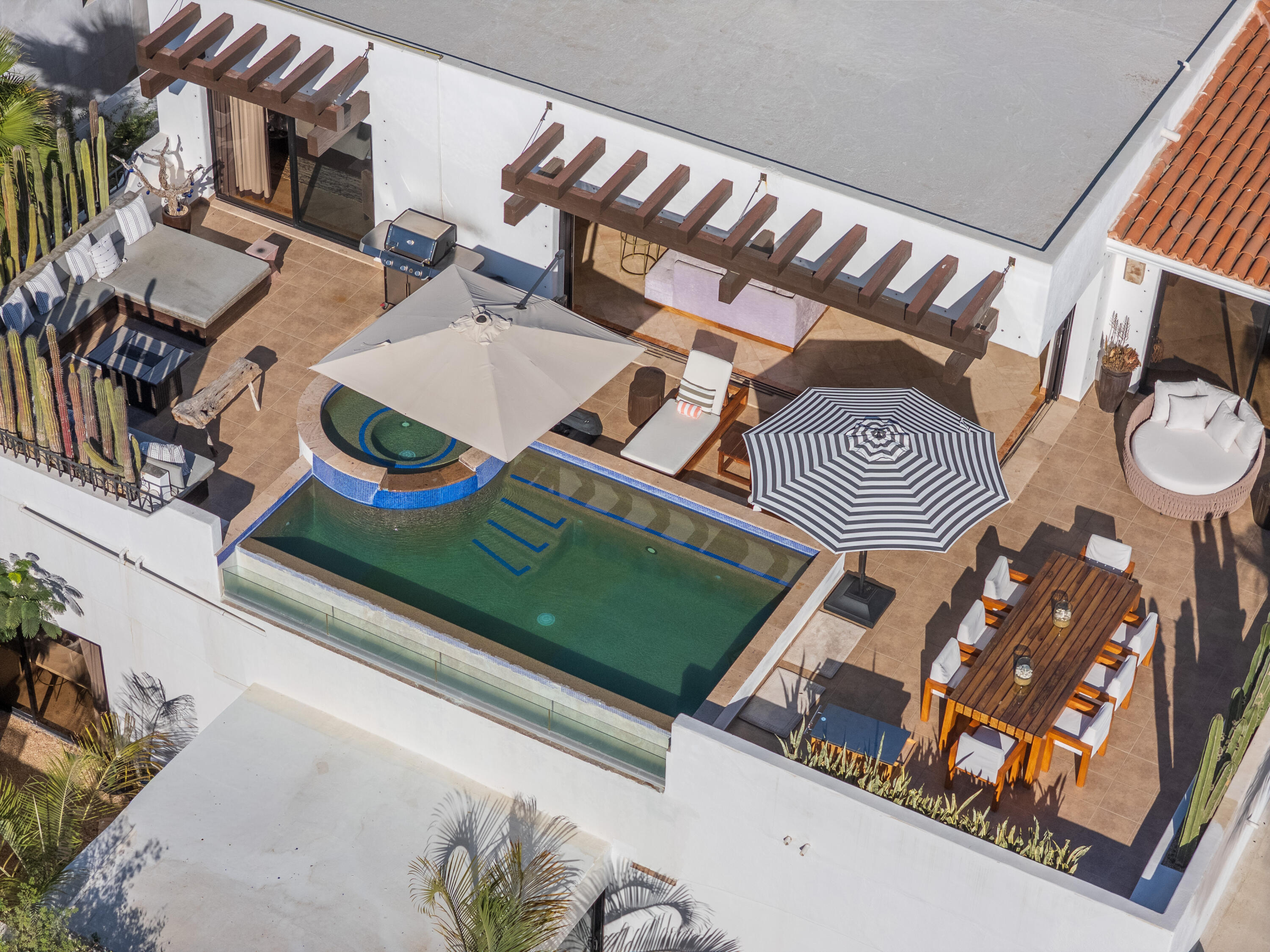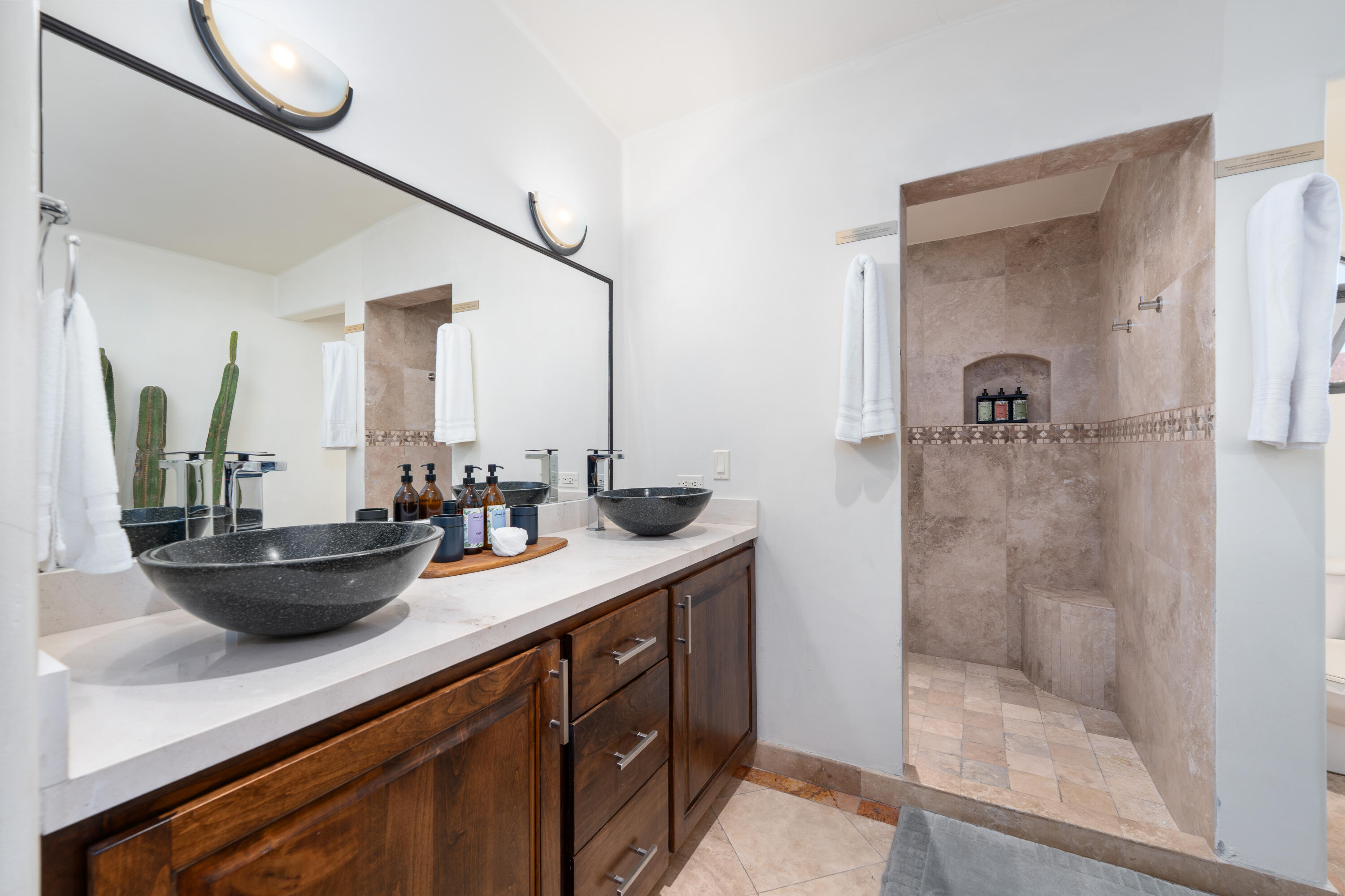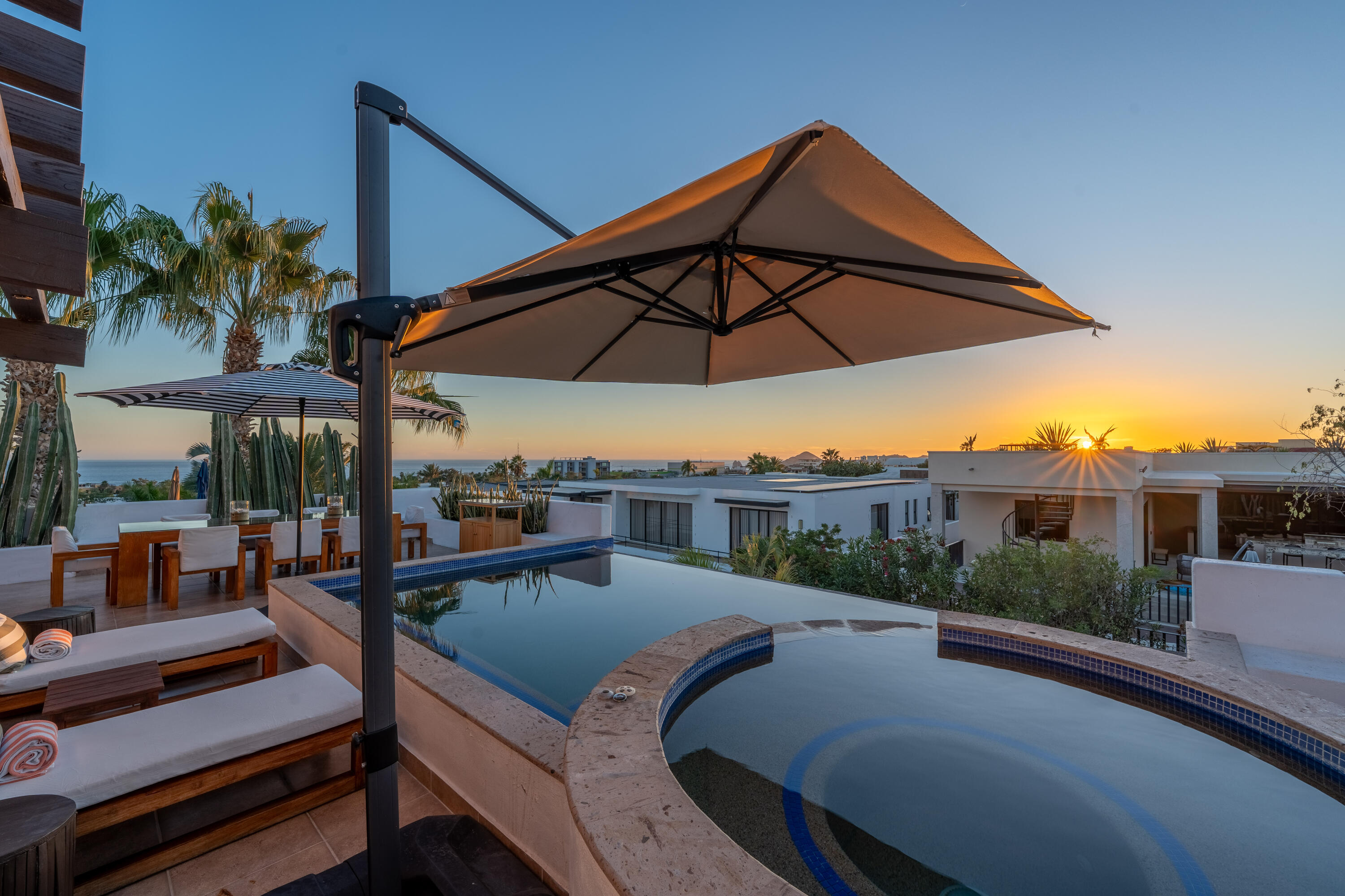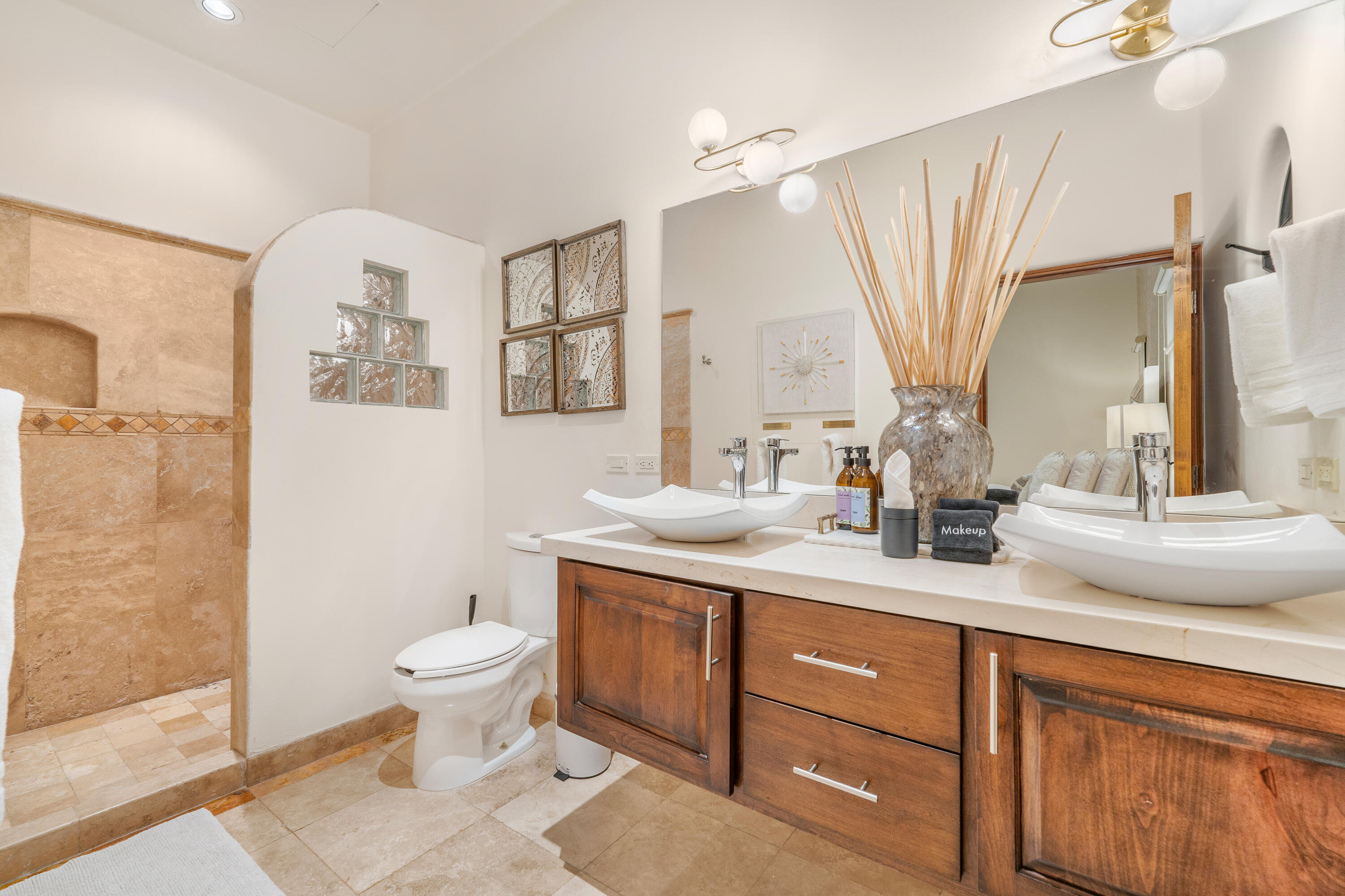 Elegant 463 m villa in Cabo San Lucas offering six bedrooms and 6.5 bathrooms across two thoughtfully designed levels. The home features high ceilings, abundant natural light, and a refined blend of contemporary design with subtle Mexican architectural elements. Open living areas connect seamlessly to a well-appointed kitchen with custom wood cabinetry and quality appliances. Each bedroom provides privacy and comfort, while bathrooms are finished with travertine and tasteful details. Outdoor living is enhanced by a spacious terrace ideal for relaxing or entertaining. A well-balanced residence designed for comfort, style, and effortless Cabo living.