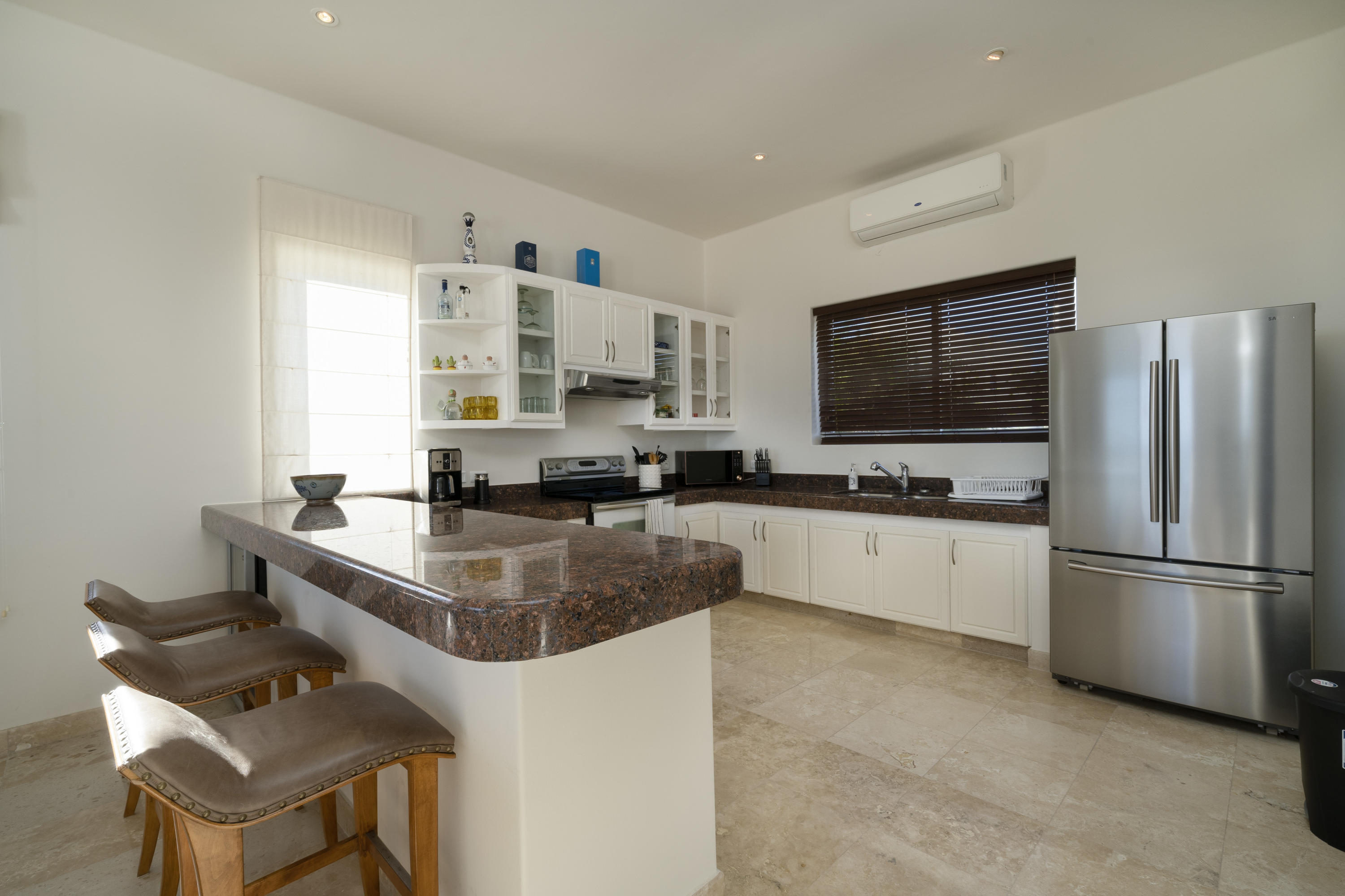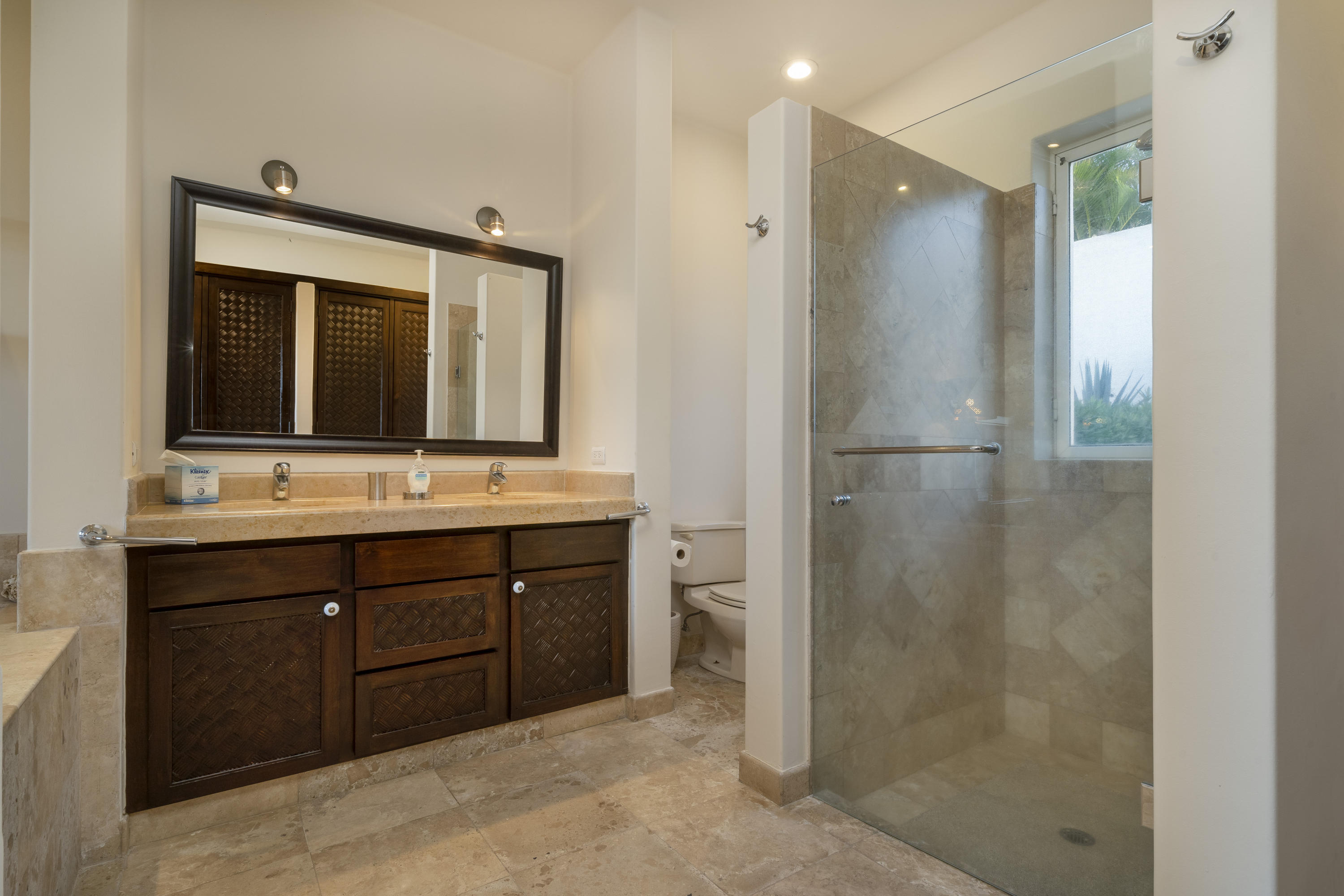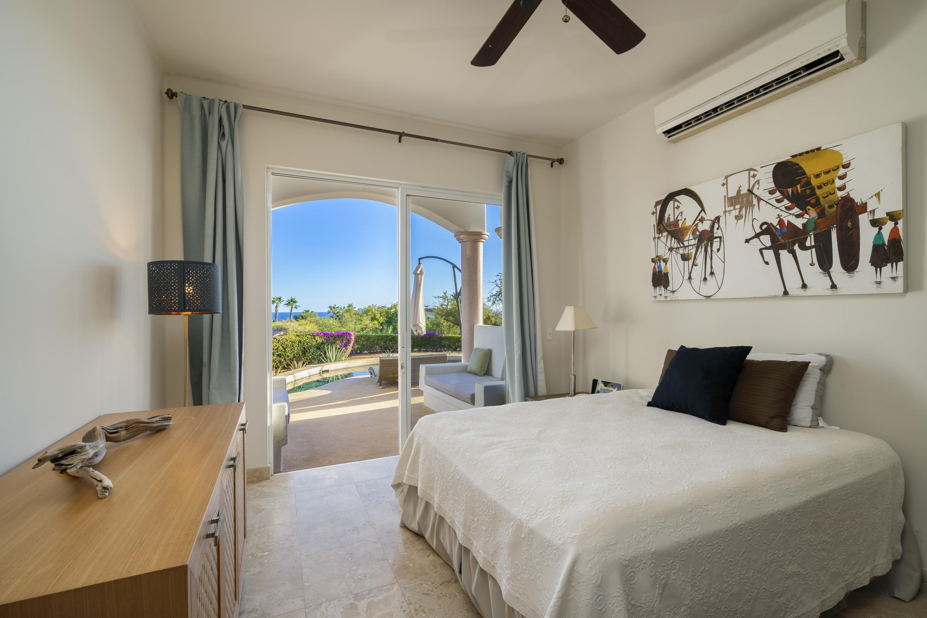 The Villa Samadhi is located in Residencial Cabo Bello, it is a fusion of modern and contemporary style, it has ample spaces, a simple and elegant decoration. The three bedrooms are located on the first floor, there is also the laundry area, the Master bedroom has large closets, a bathroom with a partial ocean view tub and access to the pool of the house, the other two rooms have closets, one with access to the backyard and another with access to the pool. On the second floor is the living room, dining room, kitchen, a service room, terraces, a full bathroom and all overlooking the ocean. The house has a private pool, garden, backyard, garage. The Cabo Bello residential has direct access to the sea, 24 hour security, easy access to the tourist corridor, shopping centers and schools.