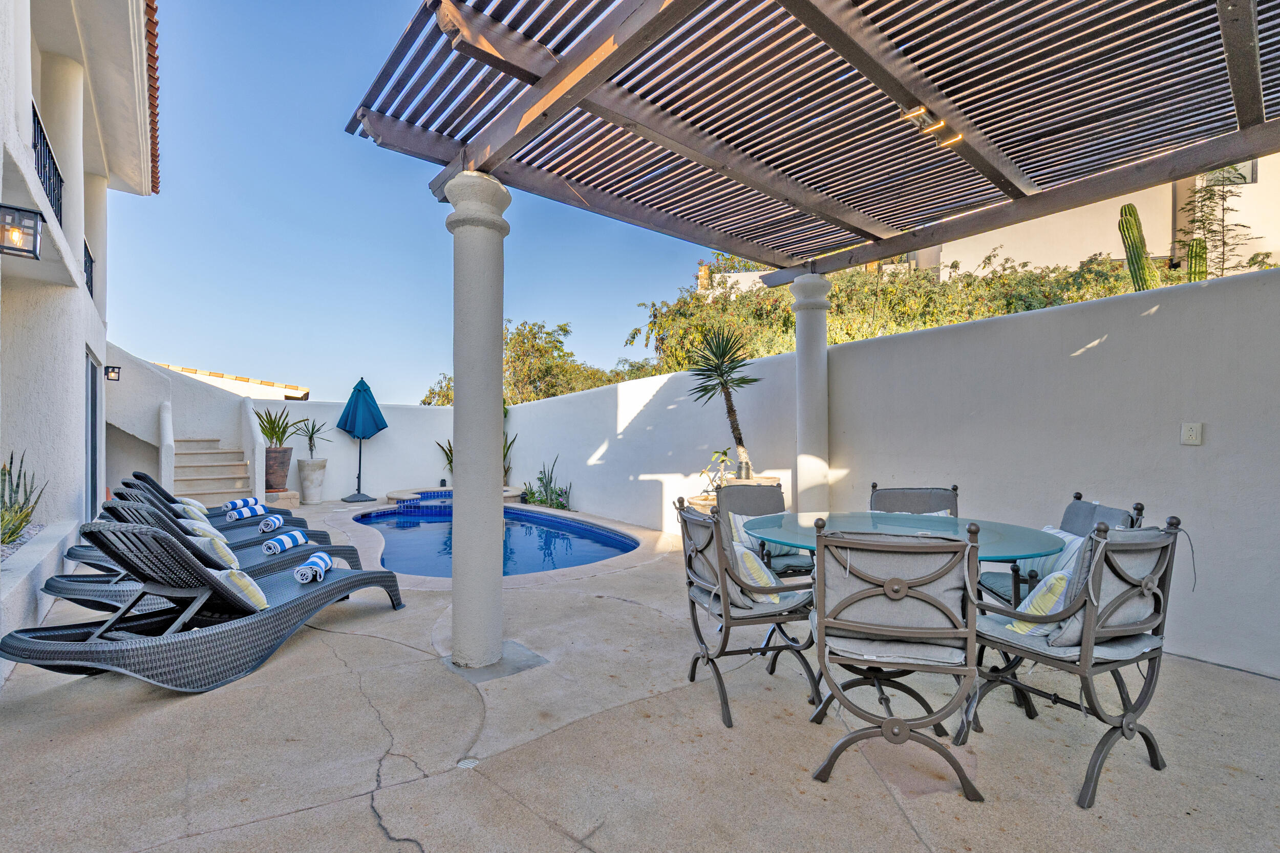 Looking for your dream home in Pedregal de Cabo San Lucas? Explore Villa Tamika, each of its 3 bedrooms offers a private bathroom. With an open floor plan walking from the living room to a terrace overlooking the lower level pool area. Well-equipped featuring a wonderful terrace with a swimming pool, jacuzzi, lounge chairs and a shaded dining area on the patio. Fire up the outdoor grill and enjoy with friends and family. Admire views of the Pedregal hillsides as you soak up the sunshine next to your pool. Ideally located steps to downtown Cabo and the Marina.Within the exclusive community of Pedregal de Cabo San Lucas, residents and guests enjoy the local amenities redefining the Cabo lifestyle and to the most discerning individuals who call this their home away from home. From beach