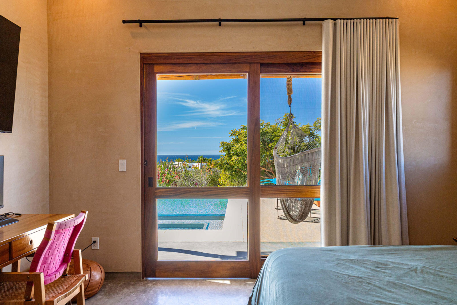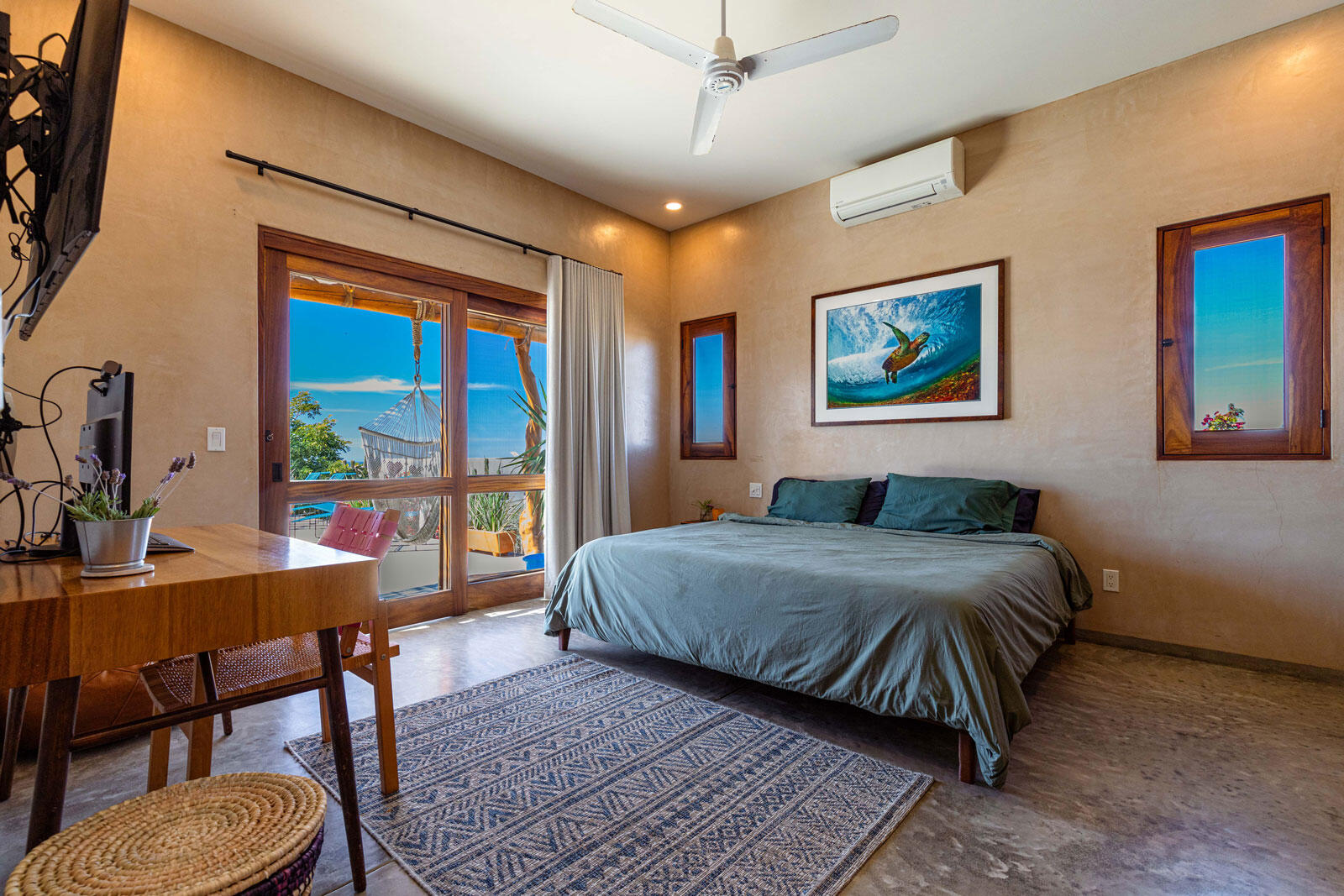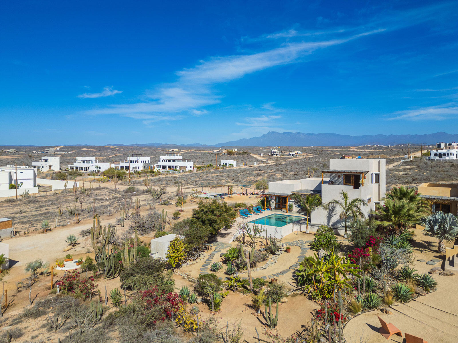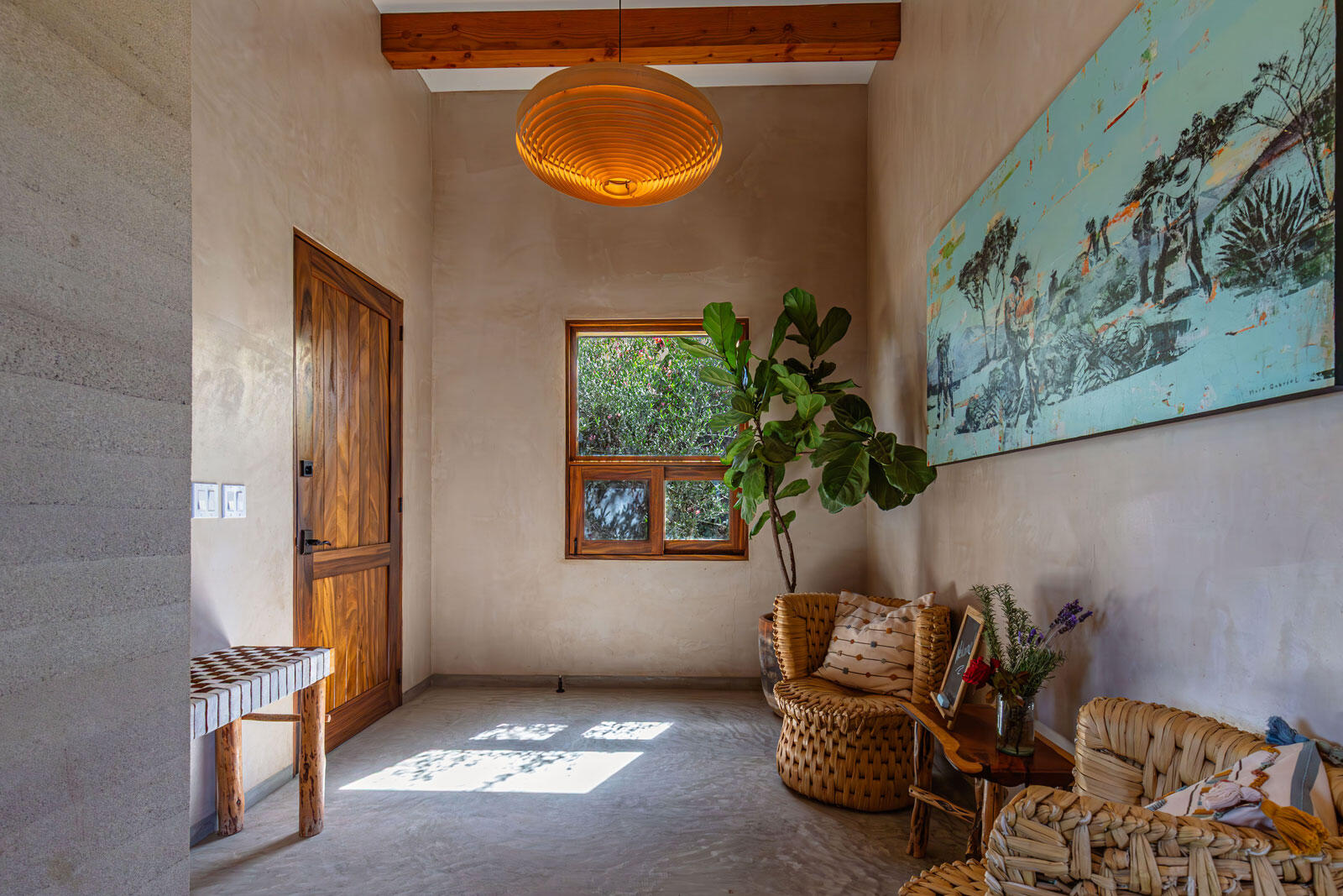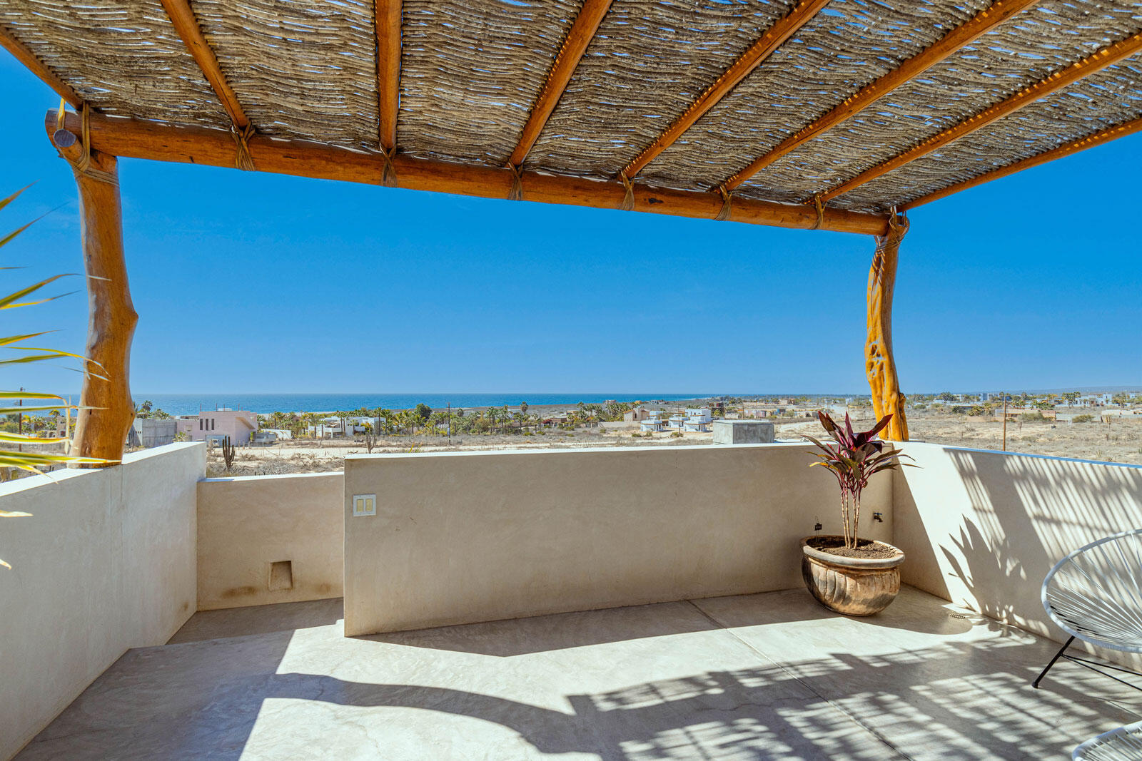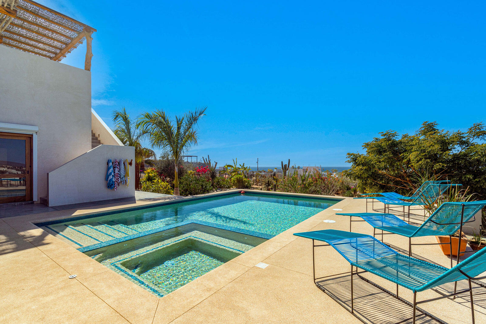 A luxury retreat built by Casa Baja, fully furnished by Casa de Todos, and ready to move in or rent! This 3-bed, 3.5-bath home features soaring wood-beamed ceilings, custom parota finishes, and a striking rammed earth accent wall. Designed for seamless indoor-outdoor living, it boasts a spacious patio, phantom screens, hurricane shutters, Bose speakers, and lush landscaping with fruit trees. The extra-large saltwater pool, oversized hot tub (electric & propane heat), and outdoor shower complete the oasis. A generator, whole-house water filtration, covered parking, and a secure bodega with a second fridge offer convenience. Option to purchase with adjacent Casita Serenidad for a rare 3,200m compound.